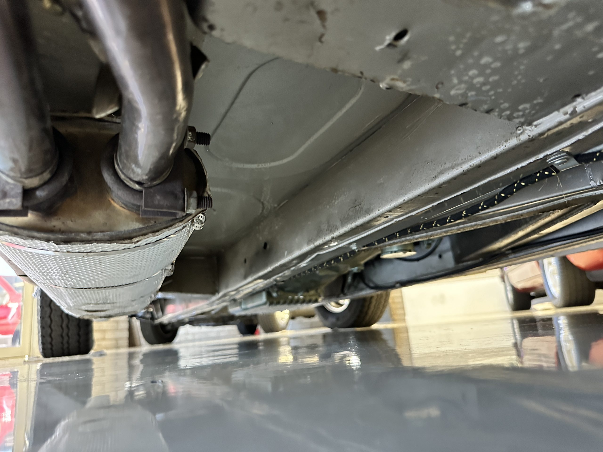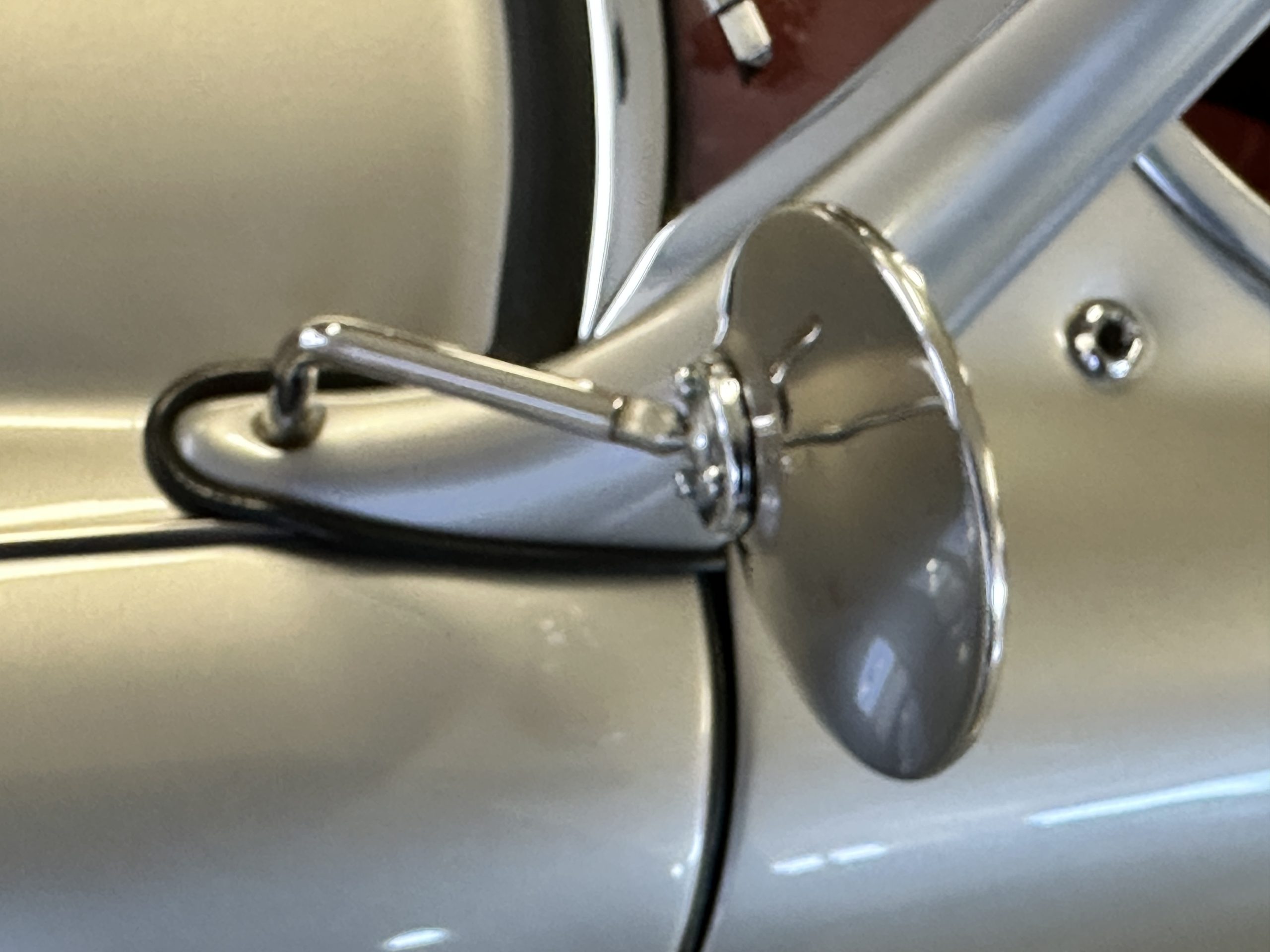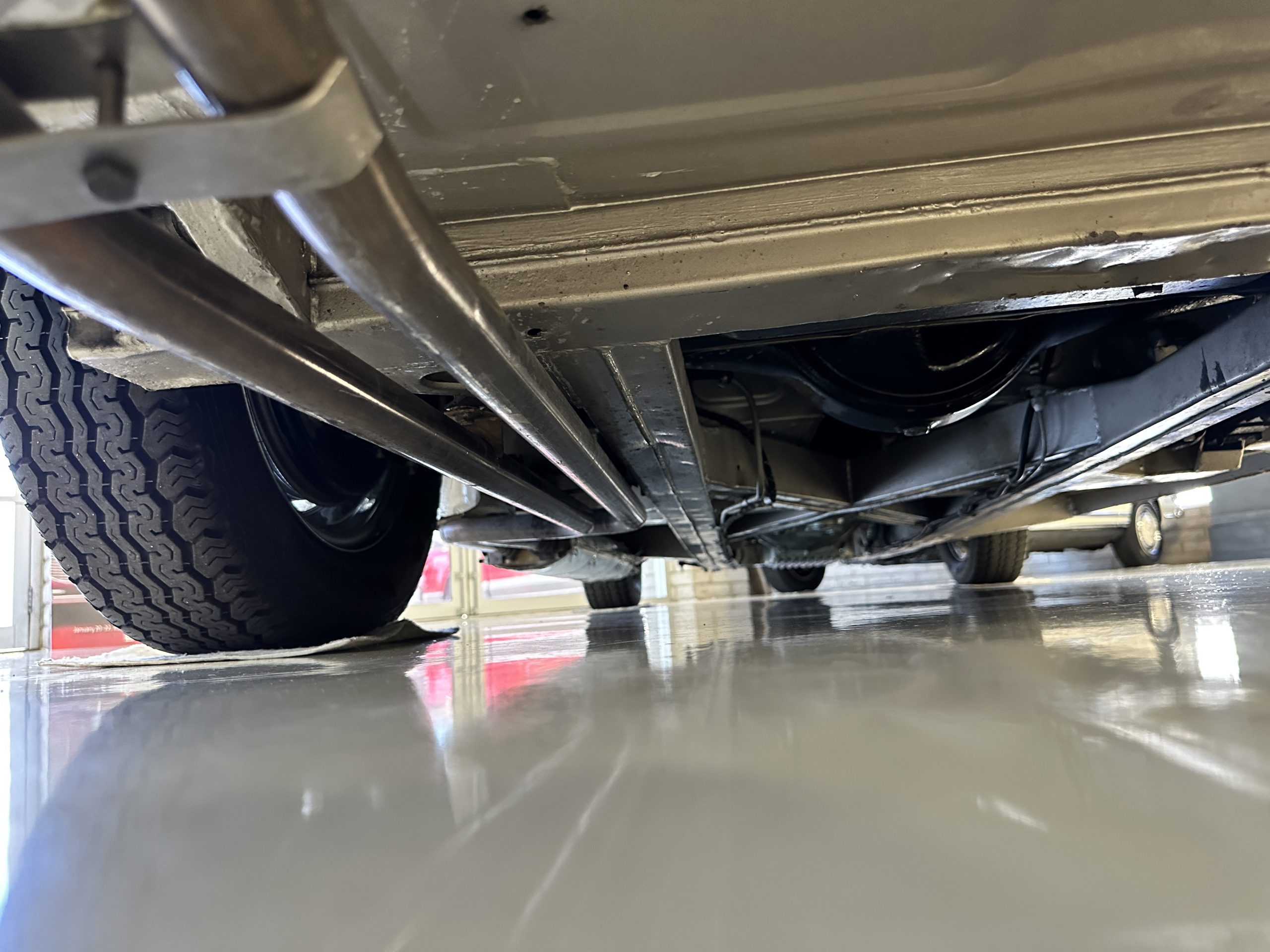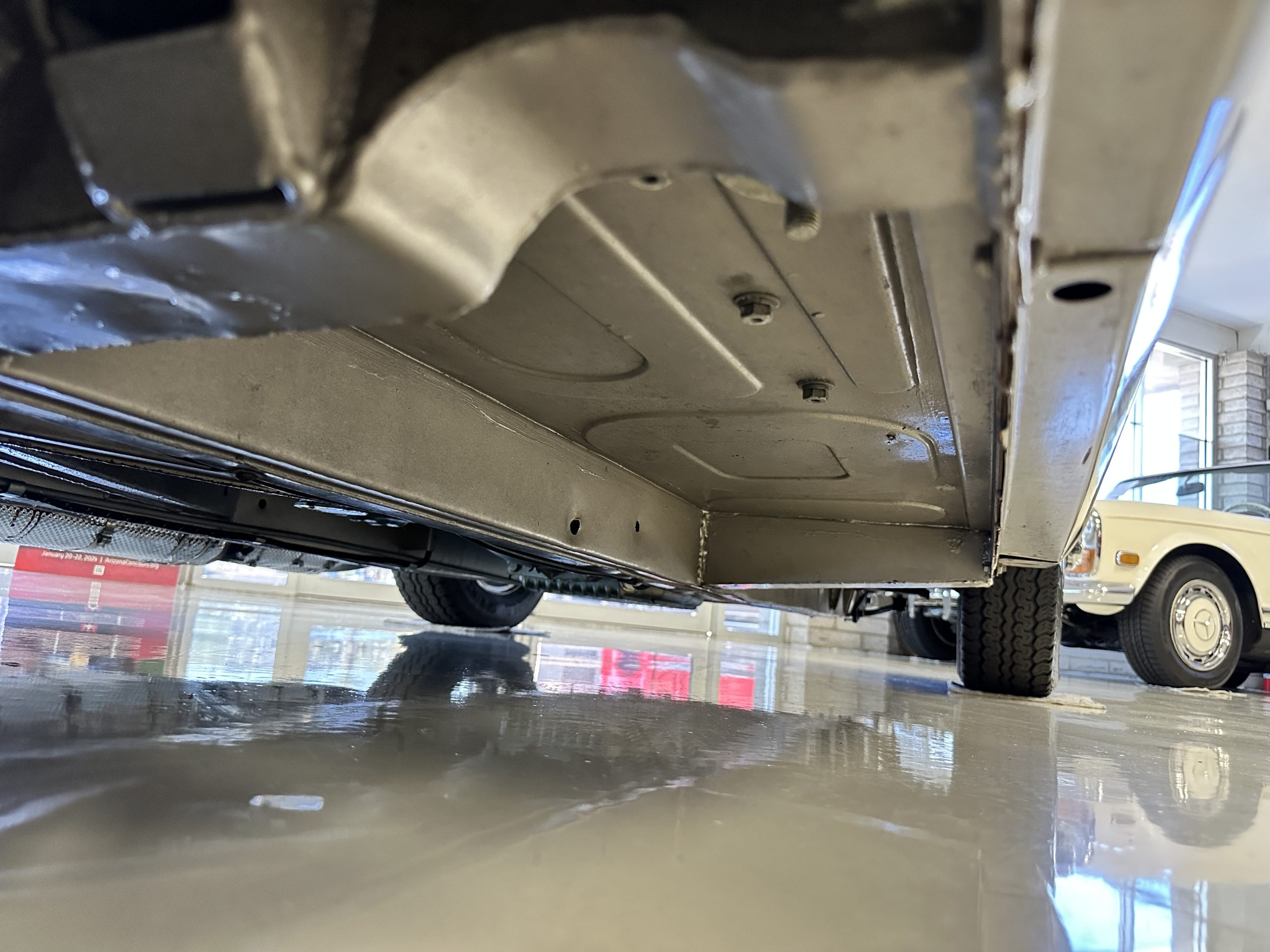 The Kurt Tanner restoration was very thorough and the attention to detail is spectacular. This car was completely disassembled down to a bare rolling chassis with only the front and rear shrouds still attached. The chassis was then power washed with a 3500psi steam cleaner. All exterior body panels were carefully hand-stripped to bare metal using aircraft stripper, then “dusted” with shotblasting to remove any corrosion. At that point, any sheet metal repairs were made. The chassis was then seam-sealed, primed, and painted Golden Beige Metallic along with the backs of all the body panels. The body parts were then refitted to the car and carefully gapped. Bodywork and Golden Beige Metallic paint were then carried out to concours standards, with exceptional results. The car displays factory-correct panel fit and shut lines.