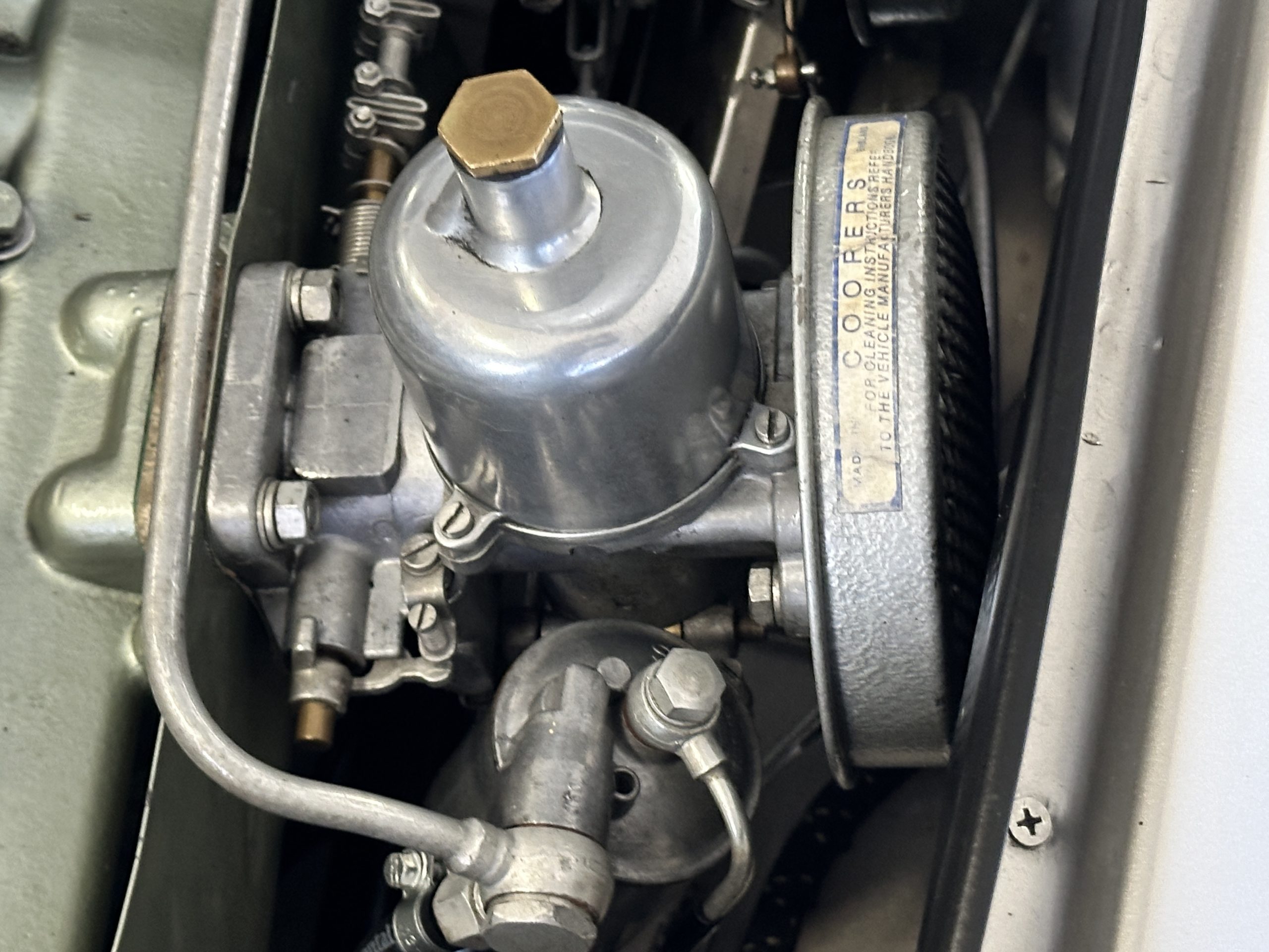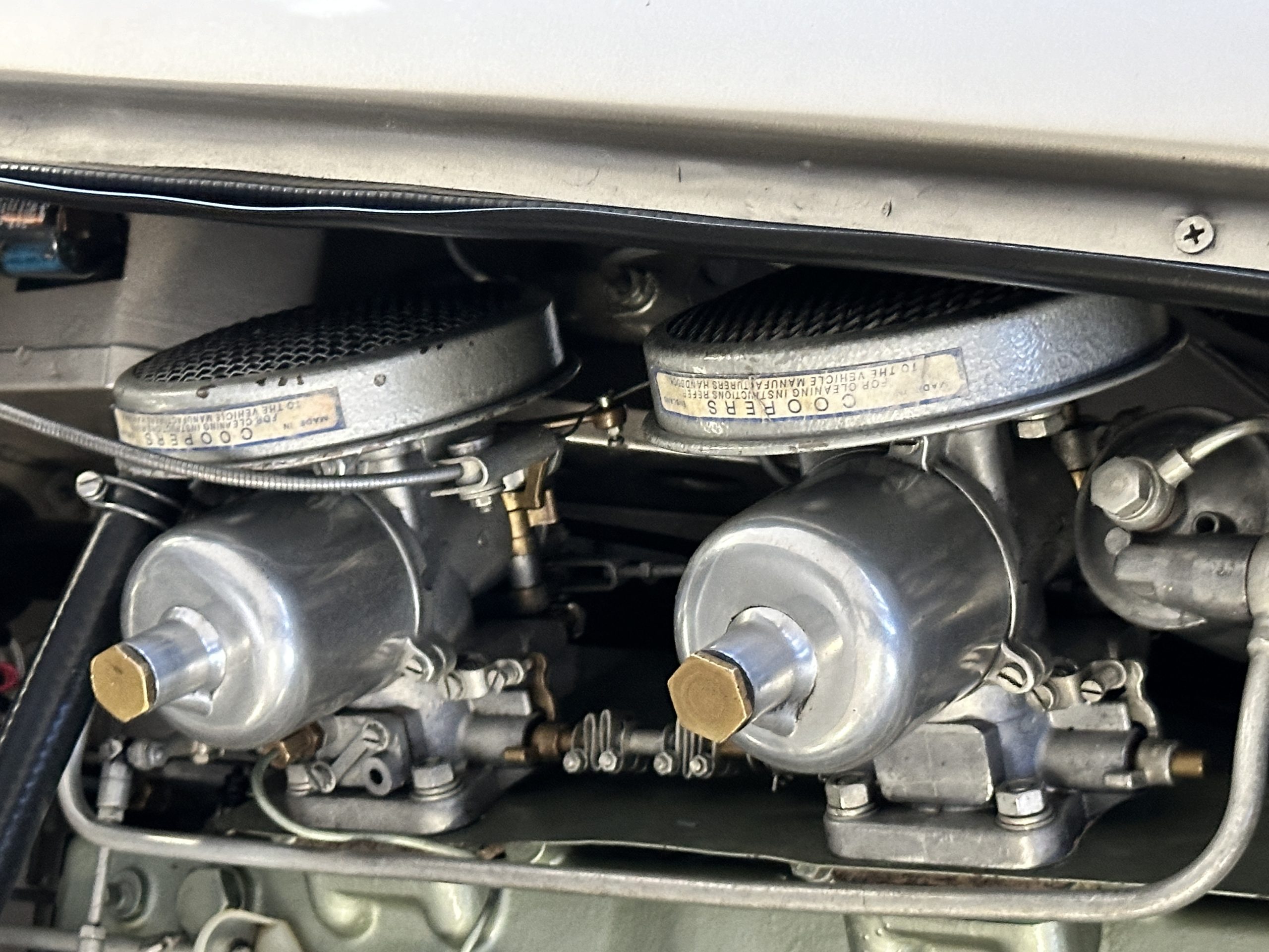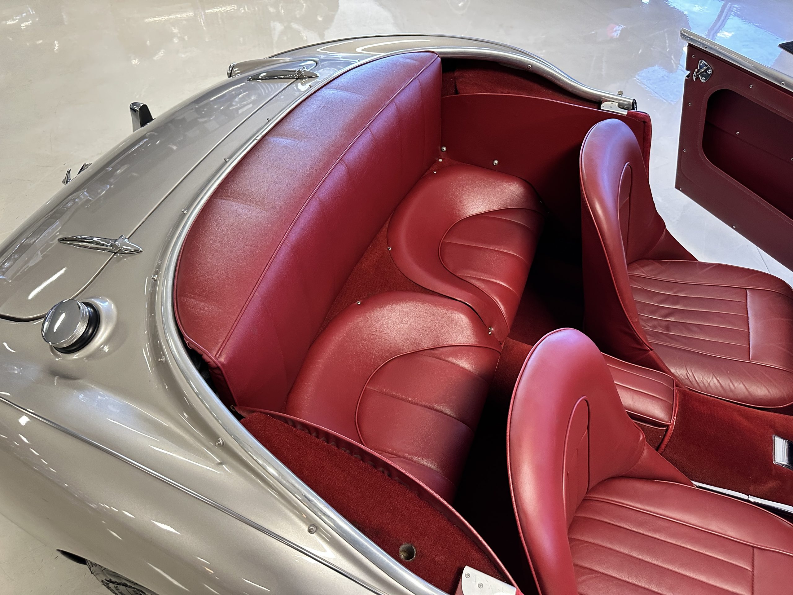 Other restoration details include a new cotton cloth wiring harness, restored dashboard fittings, new air vent heater hoses, a stainless-steel exhaust system that is partially wrapped for heat protection as it is routed near the driver’s door for an especially sporty look and sound. This car includes a matching 5th tire and spare rim, correct Everflex top and tonneau cover, restored original side screen set with bag, reprint of the owner’s handbook, new knock off hammer, and a BMIHT certificate attesting to the car’s authenticity.