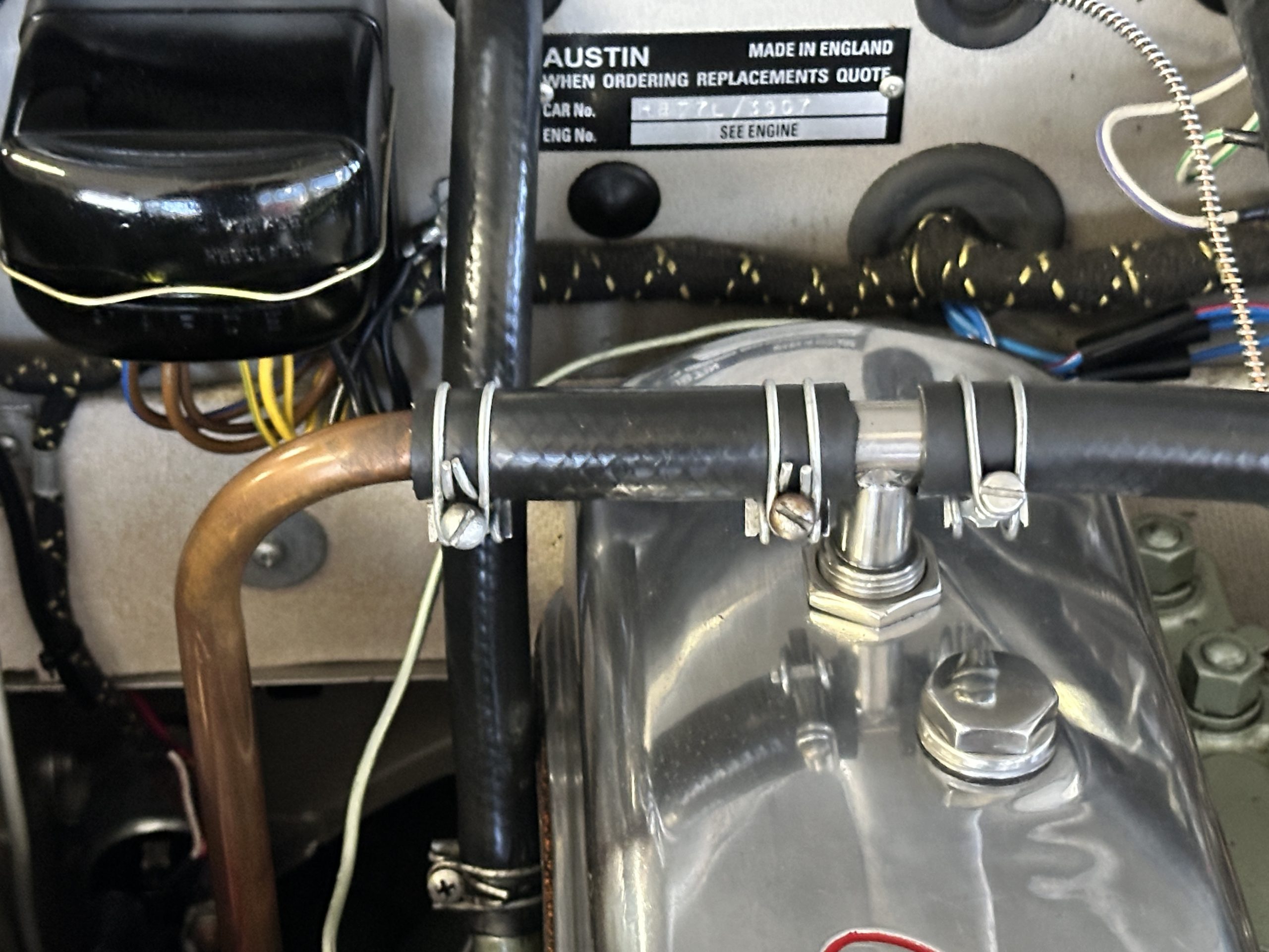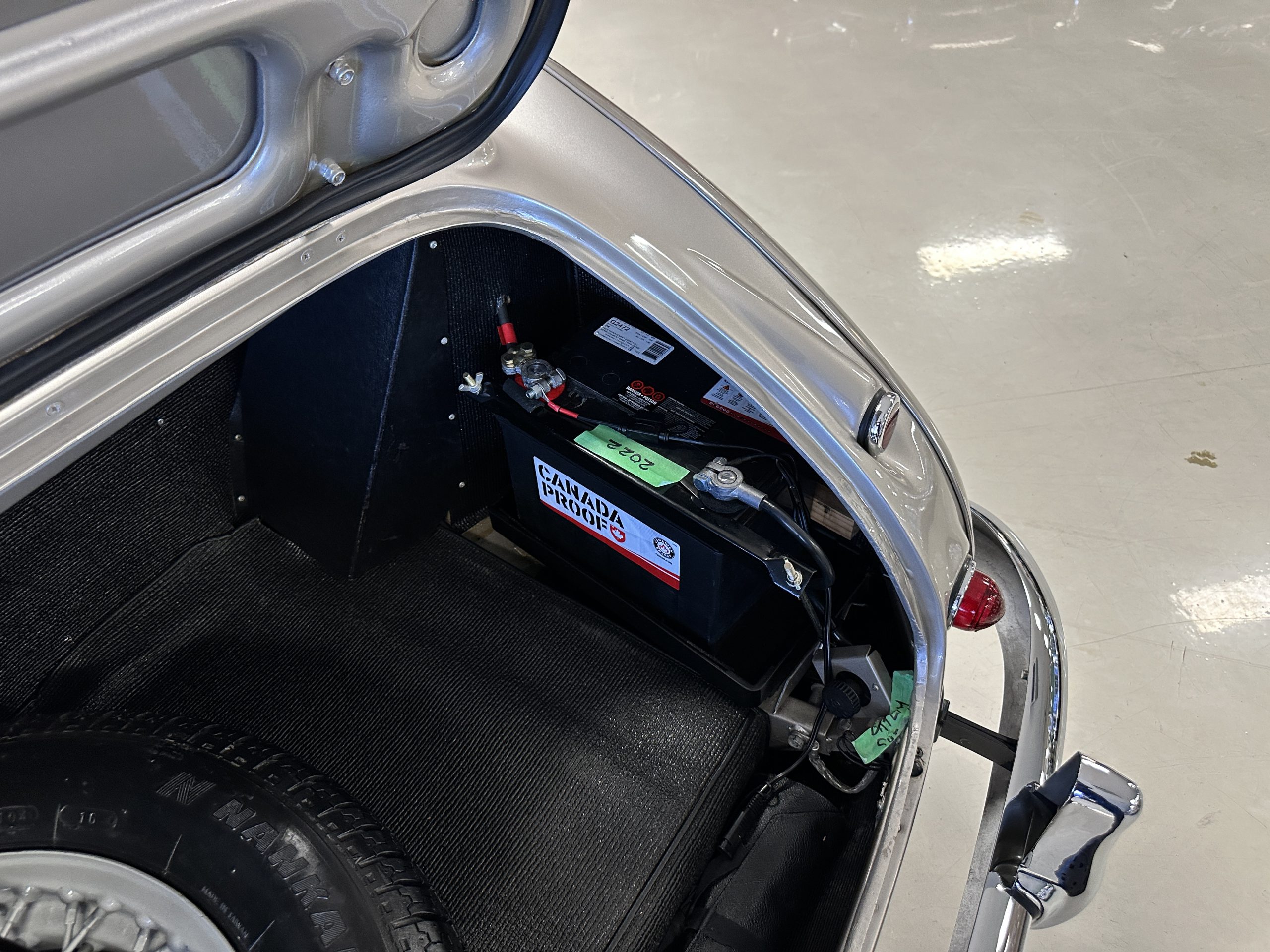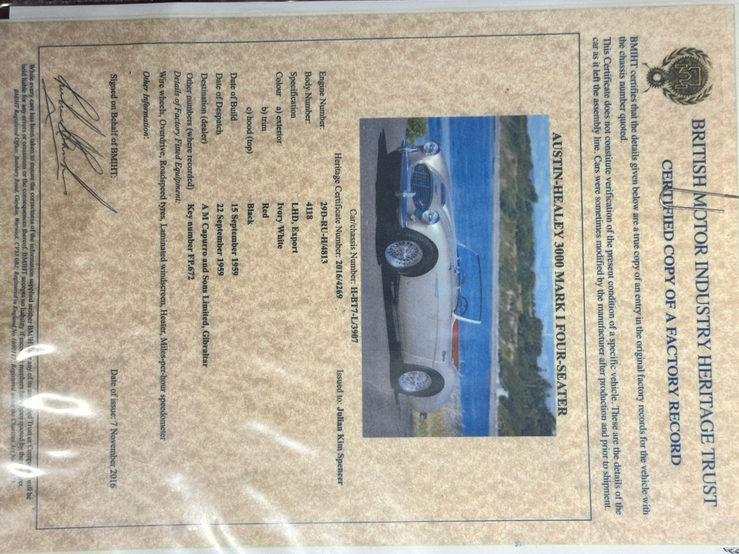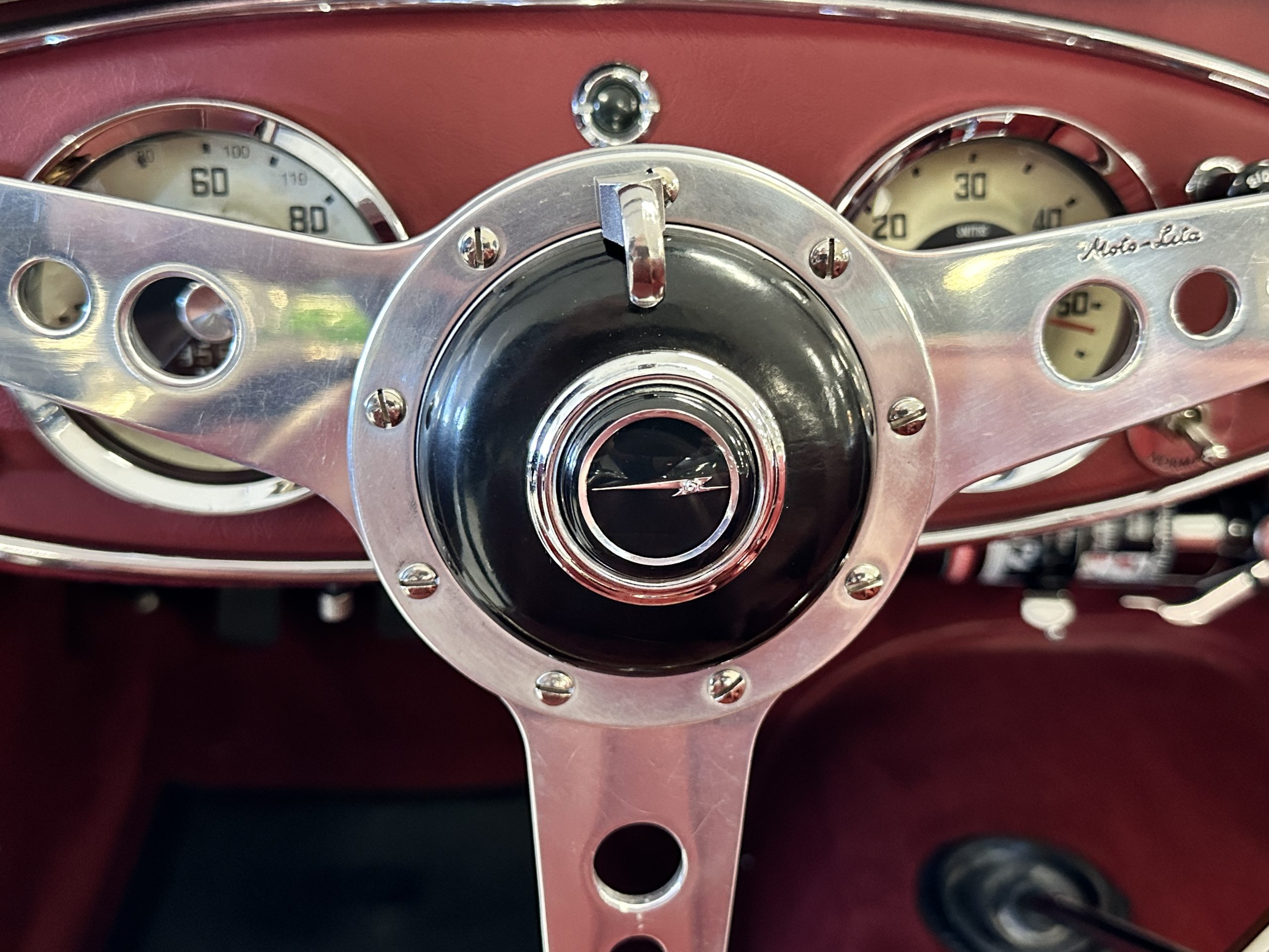 Other restoration details include a new cotton cloth wiring harness, restored dashboard fittings, new air vent heater hoses, a stainless-steel exhaust system that is partially wrapped for heat protection as it is routed near the driver’s door for an especially sporty look and sound. This car includes a matching 5th tire and spare rim, correct Everflex top and tonneau cover, restored original side screen set with bag, reprint of the owner’s handbook, new knock off hammer, and a BMIHT certificate attesting to the car’s authenticity.