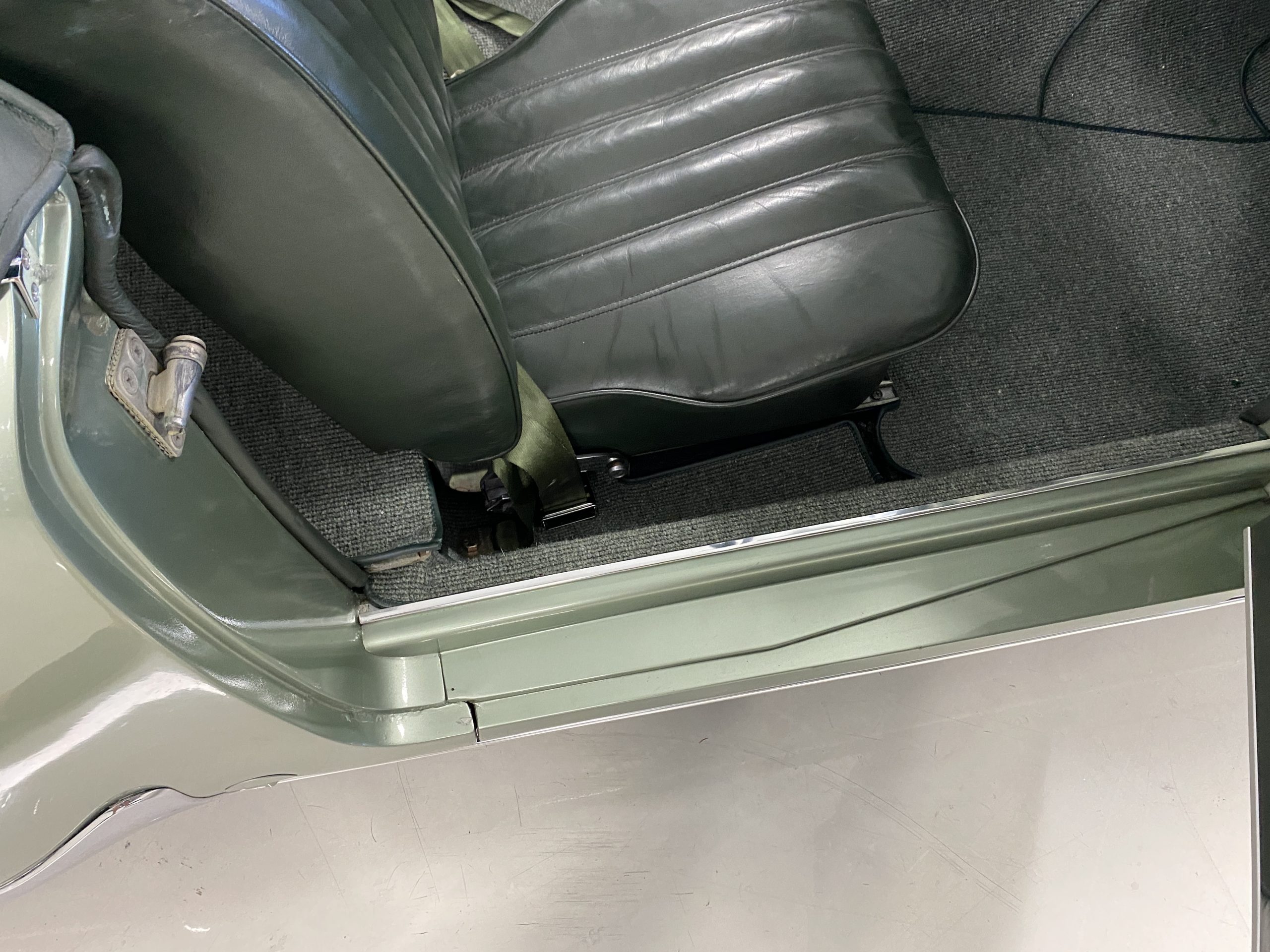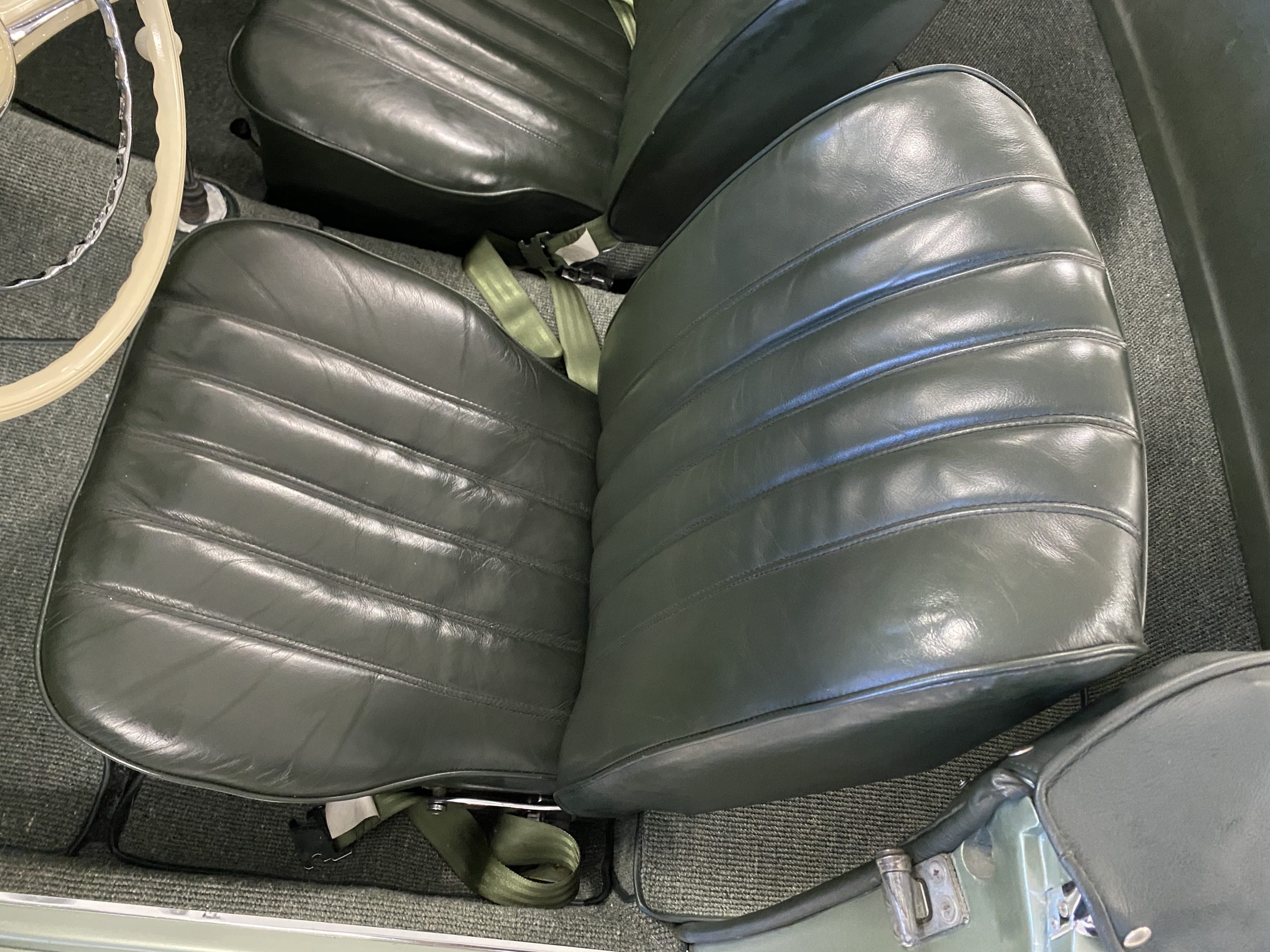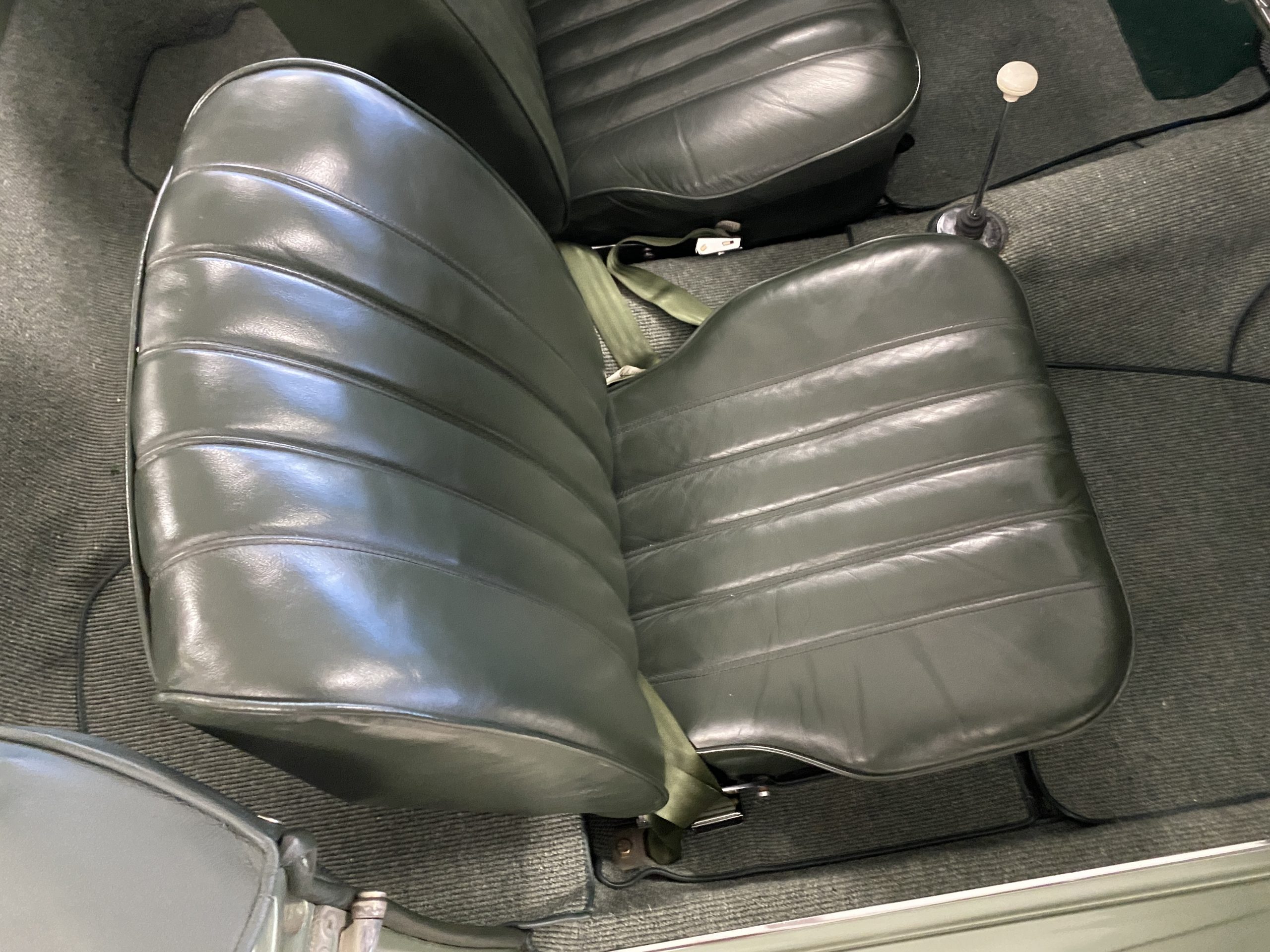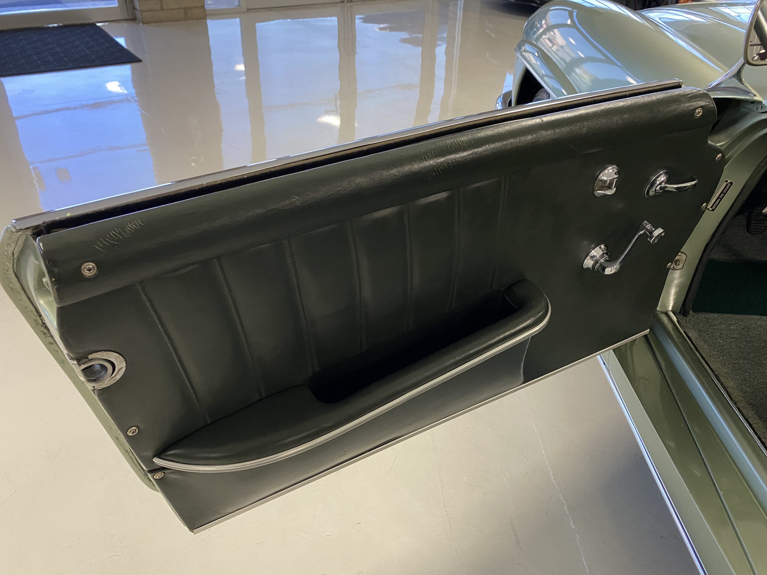 The Dark Green Leather (Code 1073) interior is also stunning in contrast to the ample use of chrome throughout the interior dash and doors as well as the light green metallic paint. The carpet is also a mid green with darker green binding which compliments the interior, making it an elegant and sporty look.