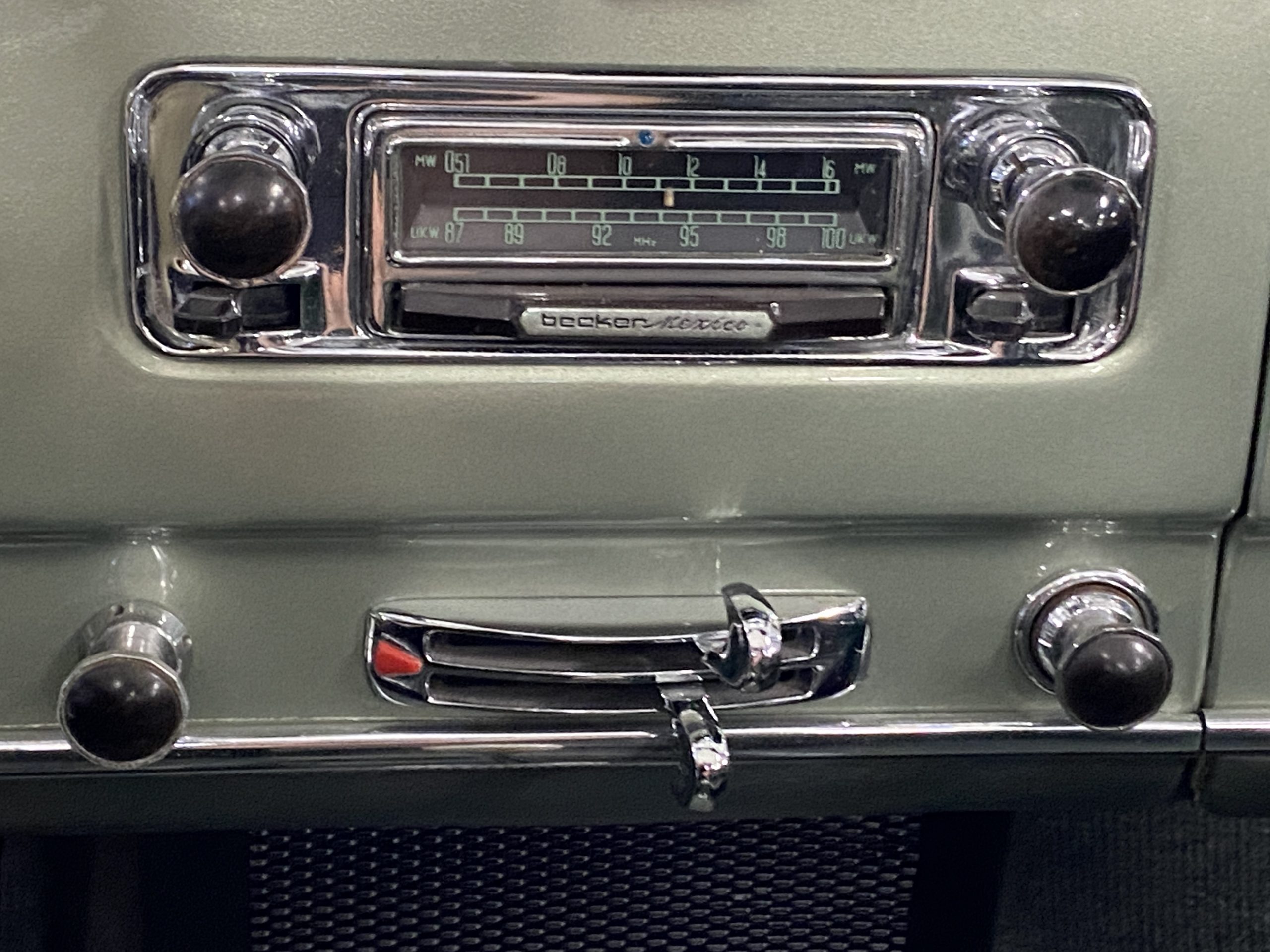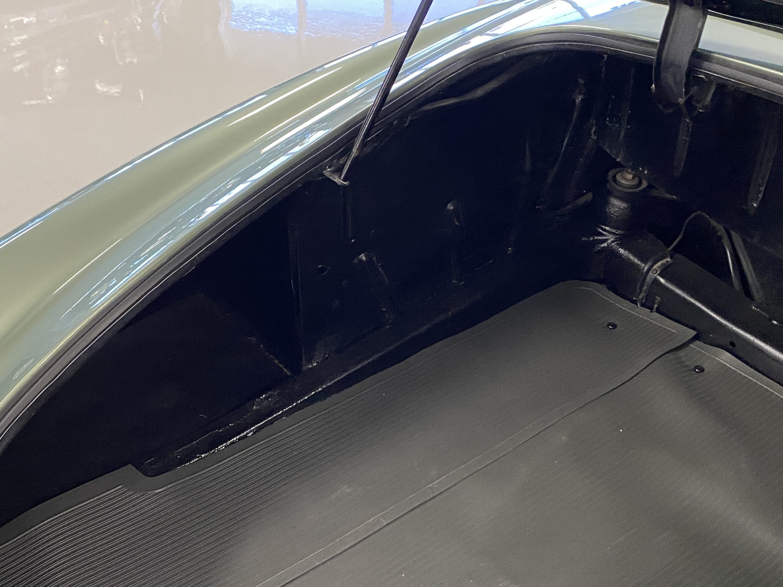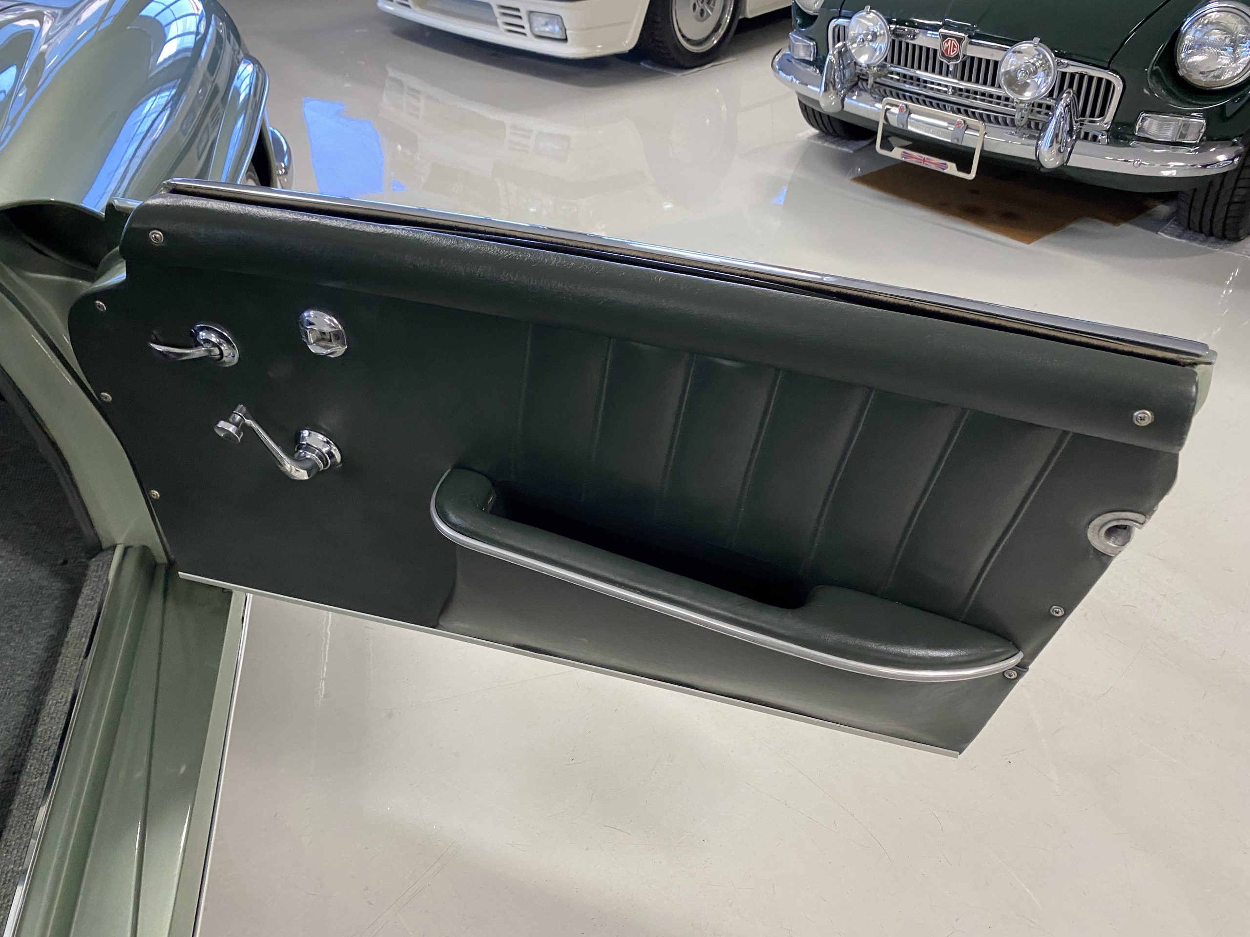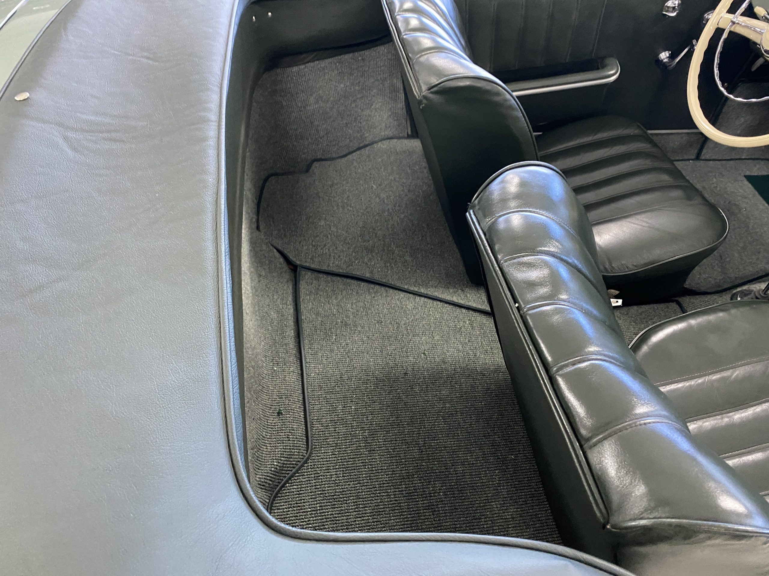 The Dark Green Leather (Code 1073) interior is also stunning in contrast to the ample use of chrome throughout the interior dash and doors as well as the light green metallic paint. The carpet is also a mid green with darker green binding which compliments the interior, making it an elegant and sporty look.