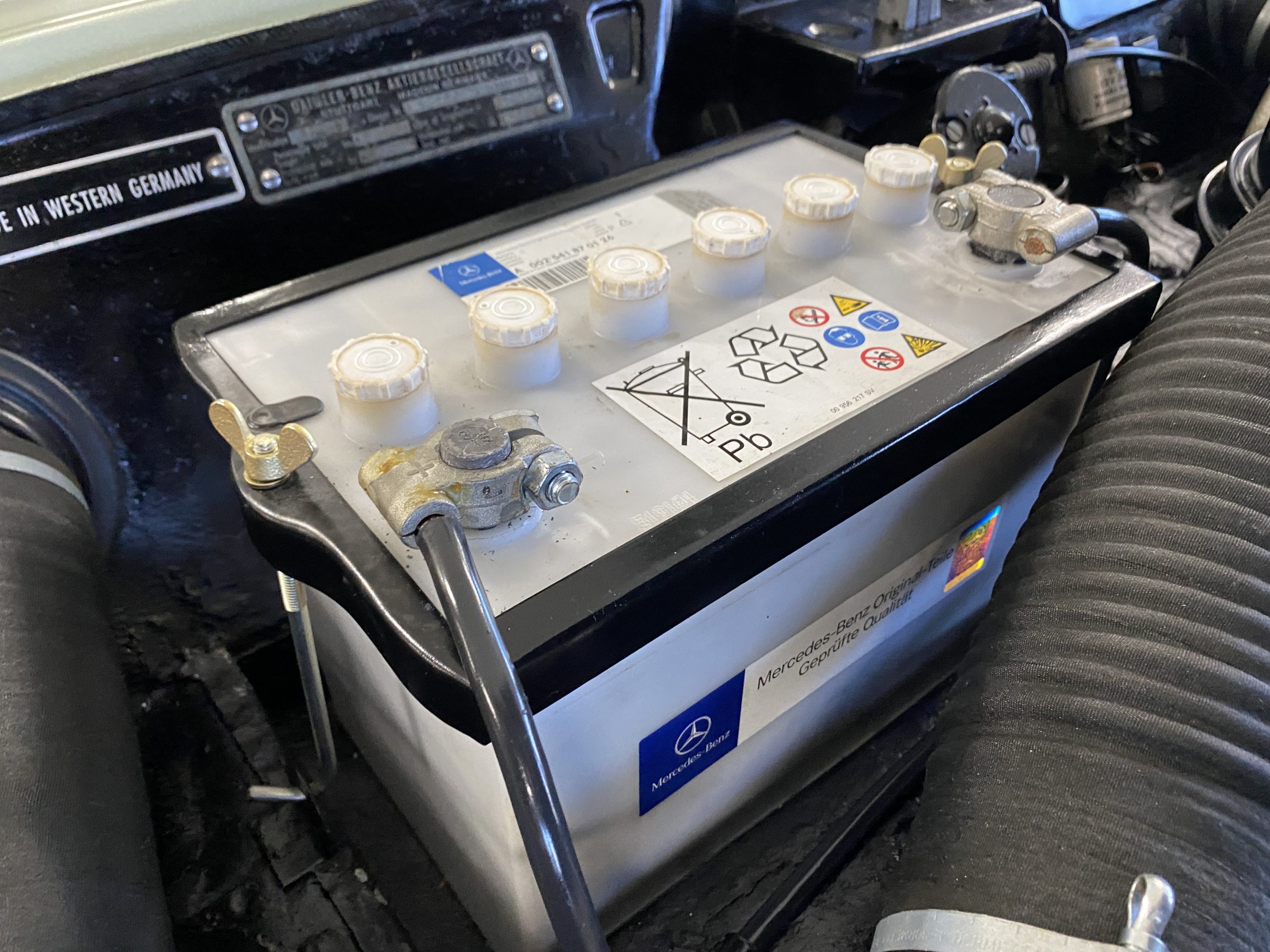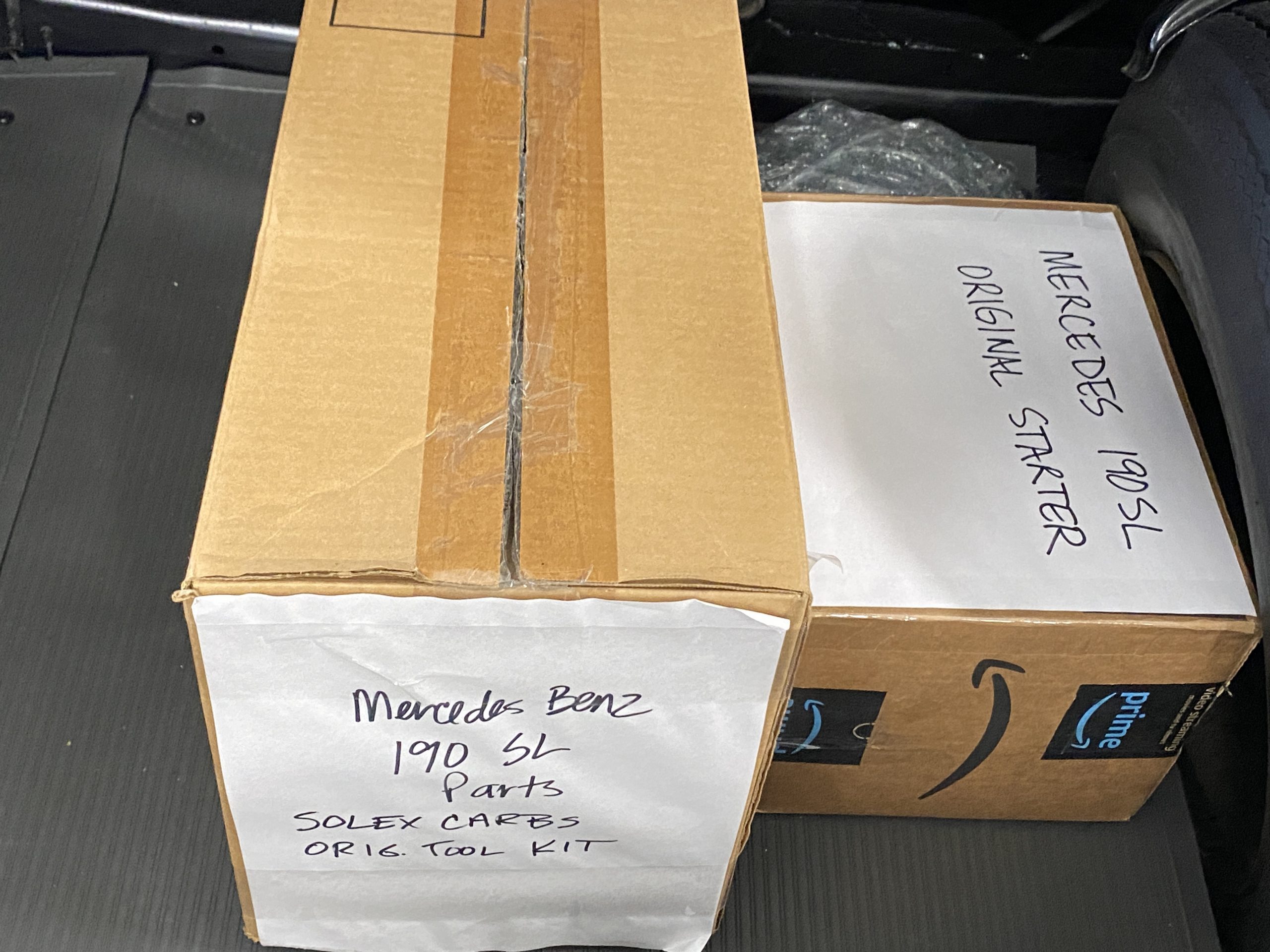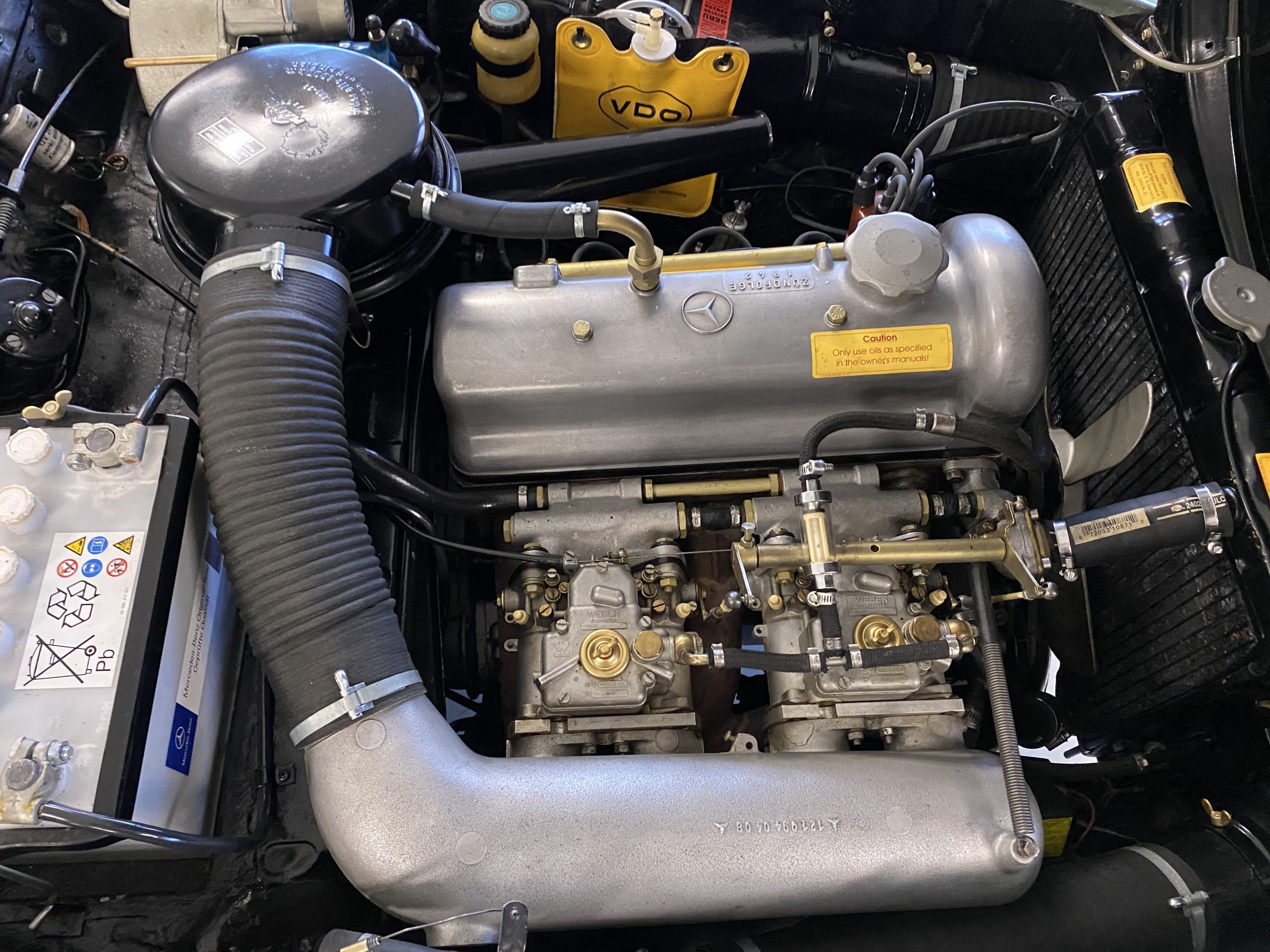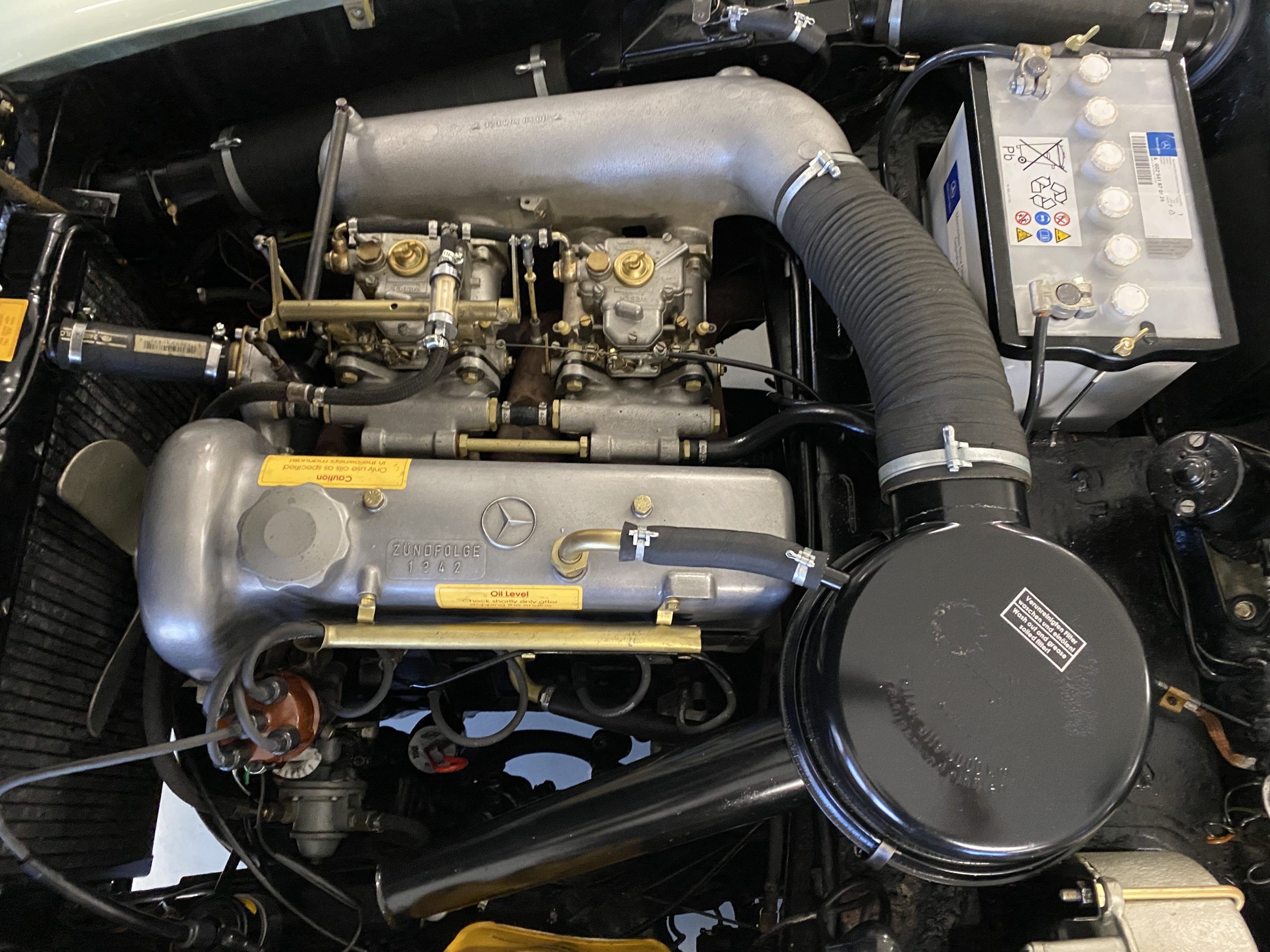 The engine compartments is very well detailed, well enough for showing at regional car shows. The original Solex carbs are included in the sale but have been replaced with Weber carburetors (thank goodness) for performance and reliability. The original starter has also been replaced with a faster more efficient starter, with the original starter included in the sale. Also included in the sale are a load of spare parts, all new, an owners manual, original complete tool set and roll as well as the correct 190SL tire pressure gauge.