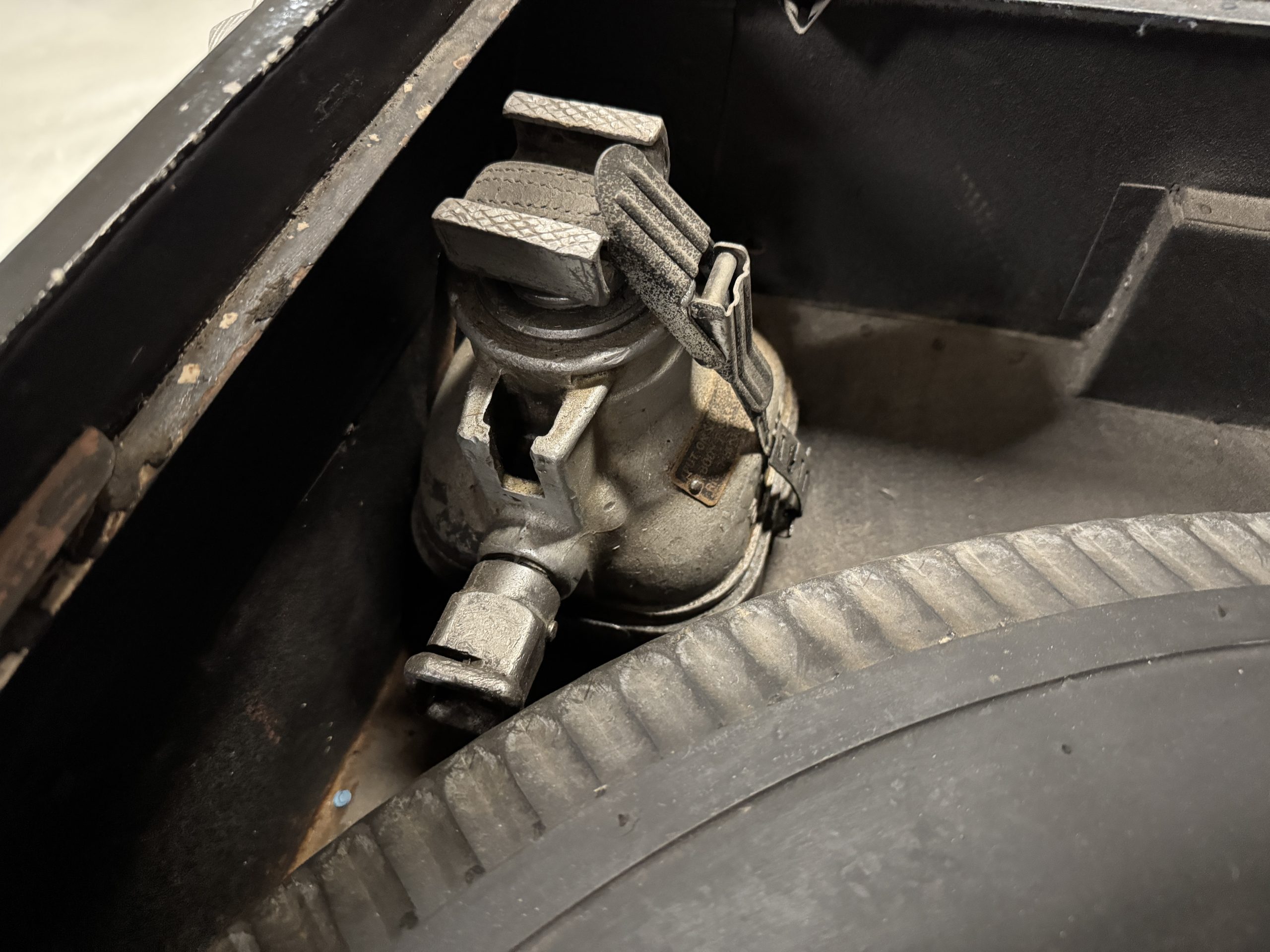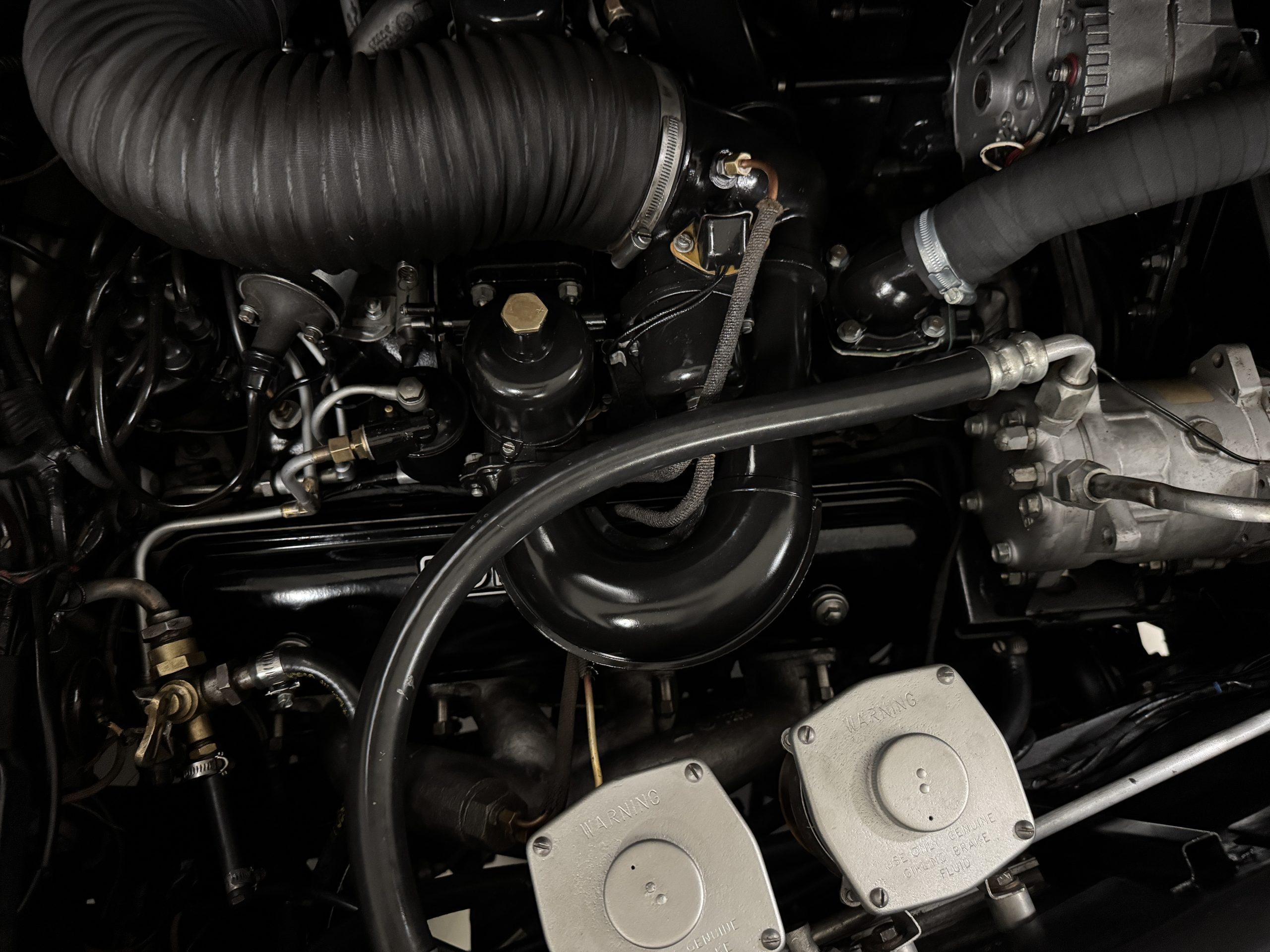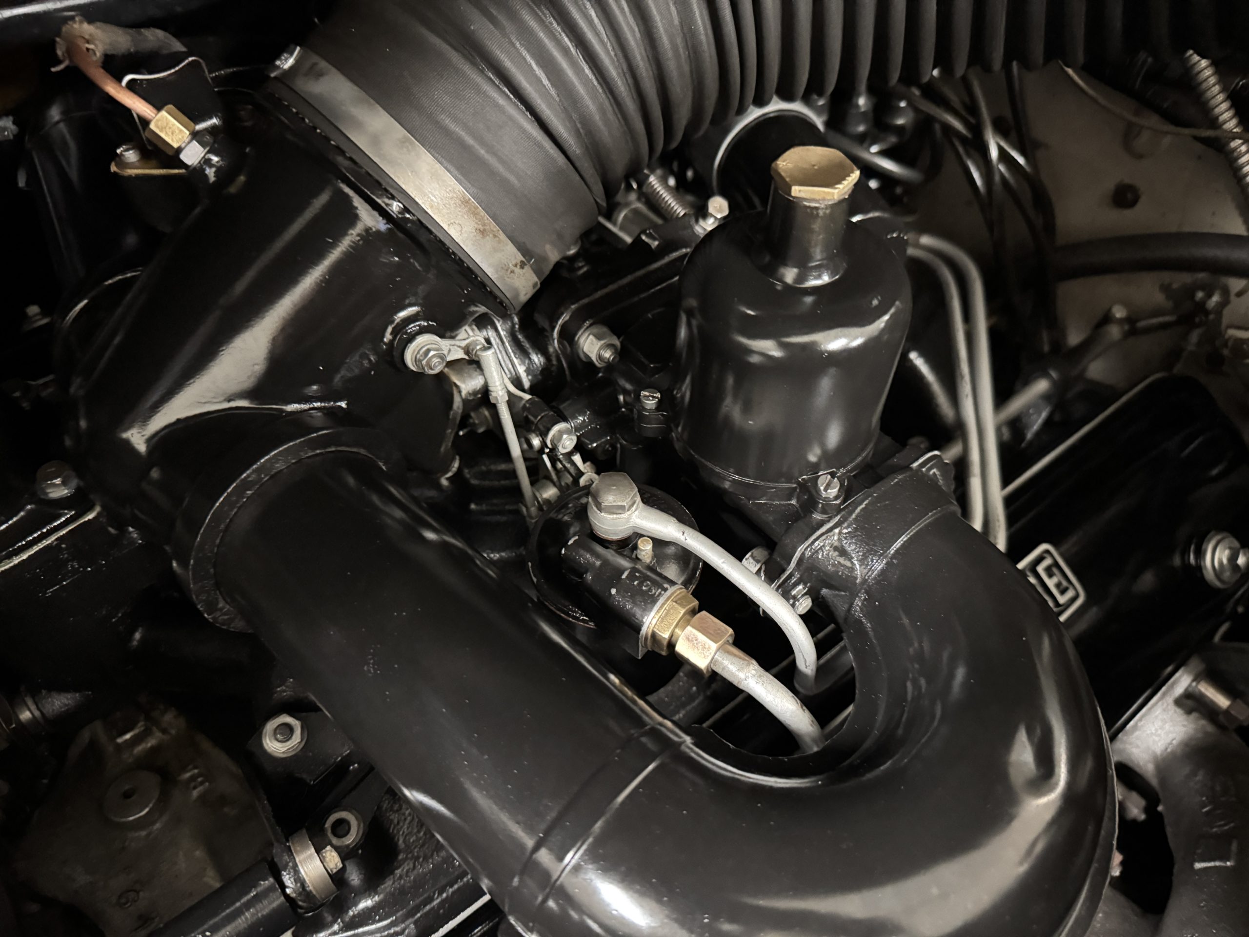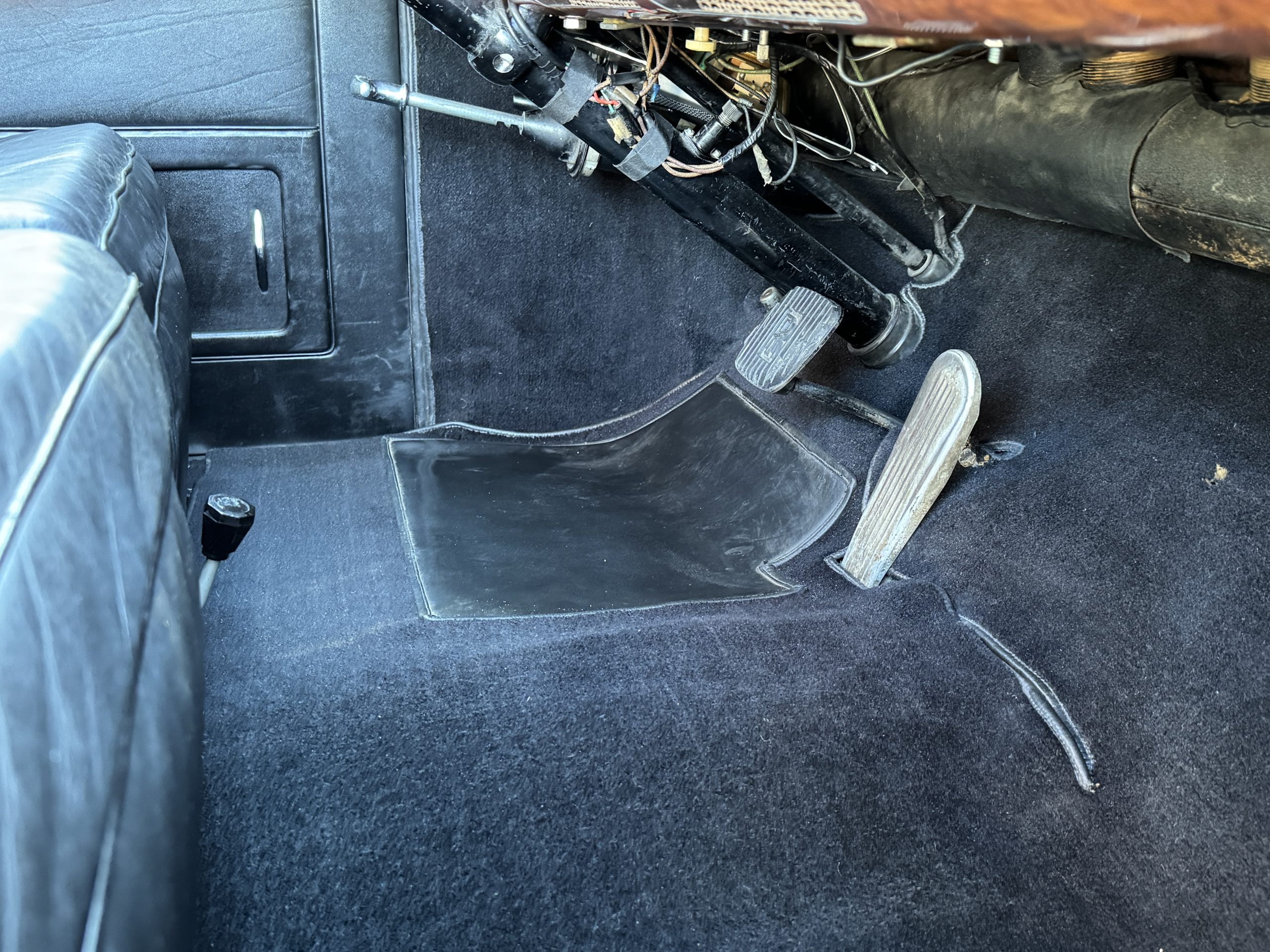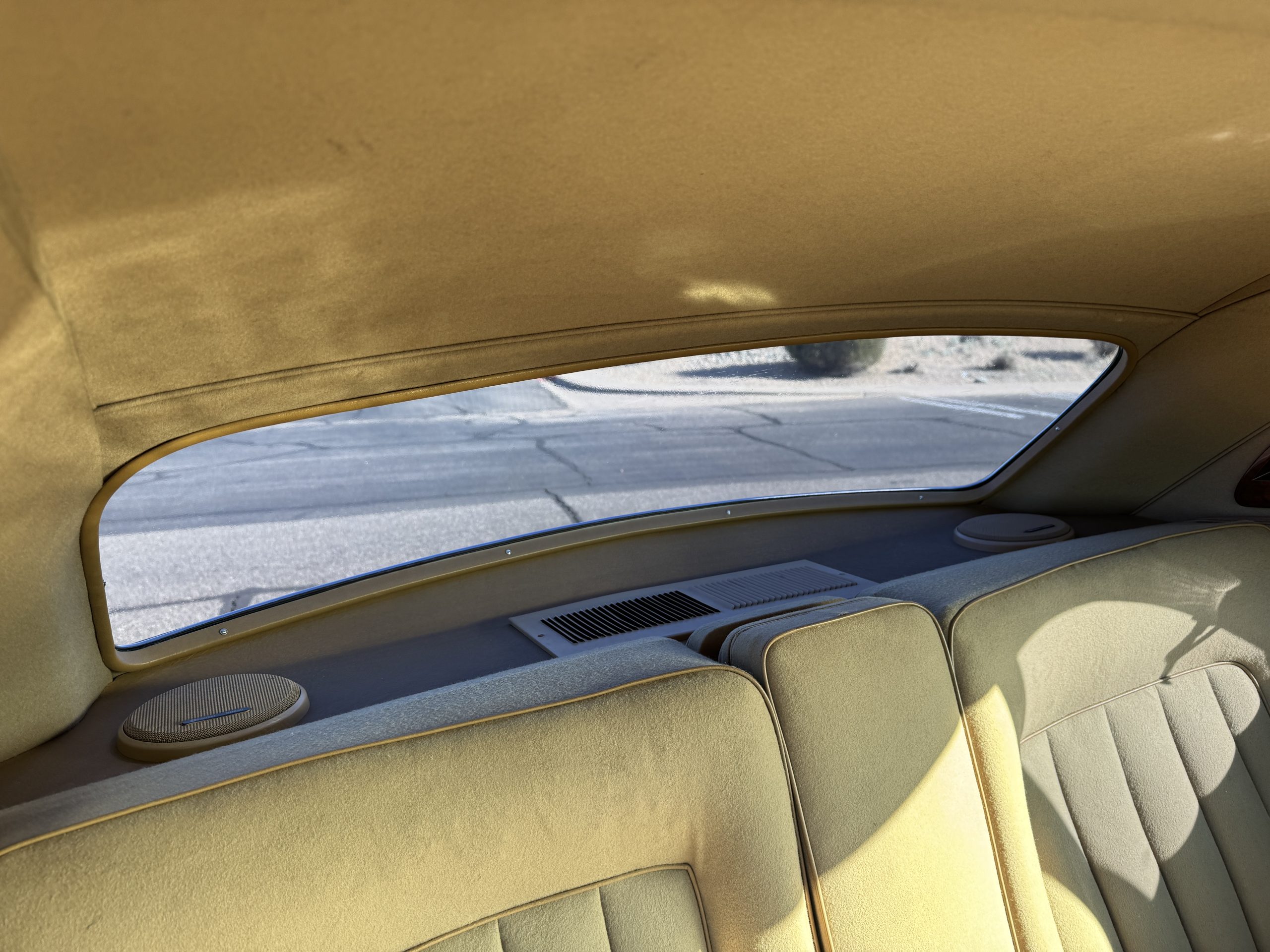 The livery is formal and stately in its original Black paint with complementary tan pinstripes.  The paint is about one-third original and two-thirds repainted and the shine and luster are excellent.  The stainless steel and chrome trim are overall in excellent condition.  The Lucas driving lights and rear mounted color matched TV antenna accessorizes the Phantoms stunning exterior.  The Rolls originally was ordered with white walled tires and is presently fitted with blackwalled bias ply tires.  The next owner can decide to update it with radials, add whitewall tires or keep it as it is.