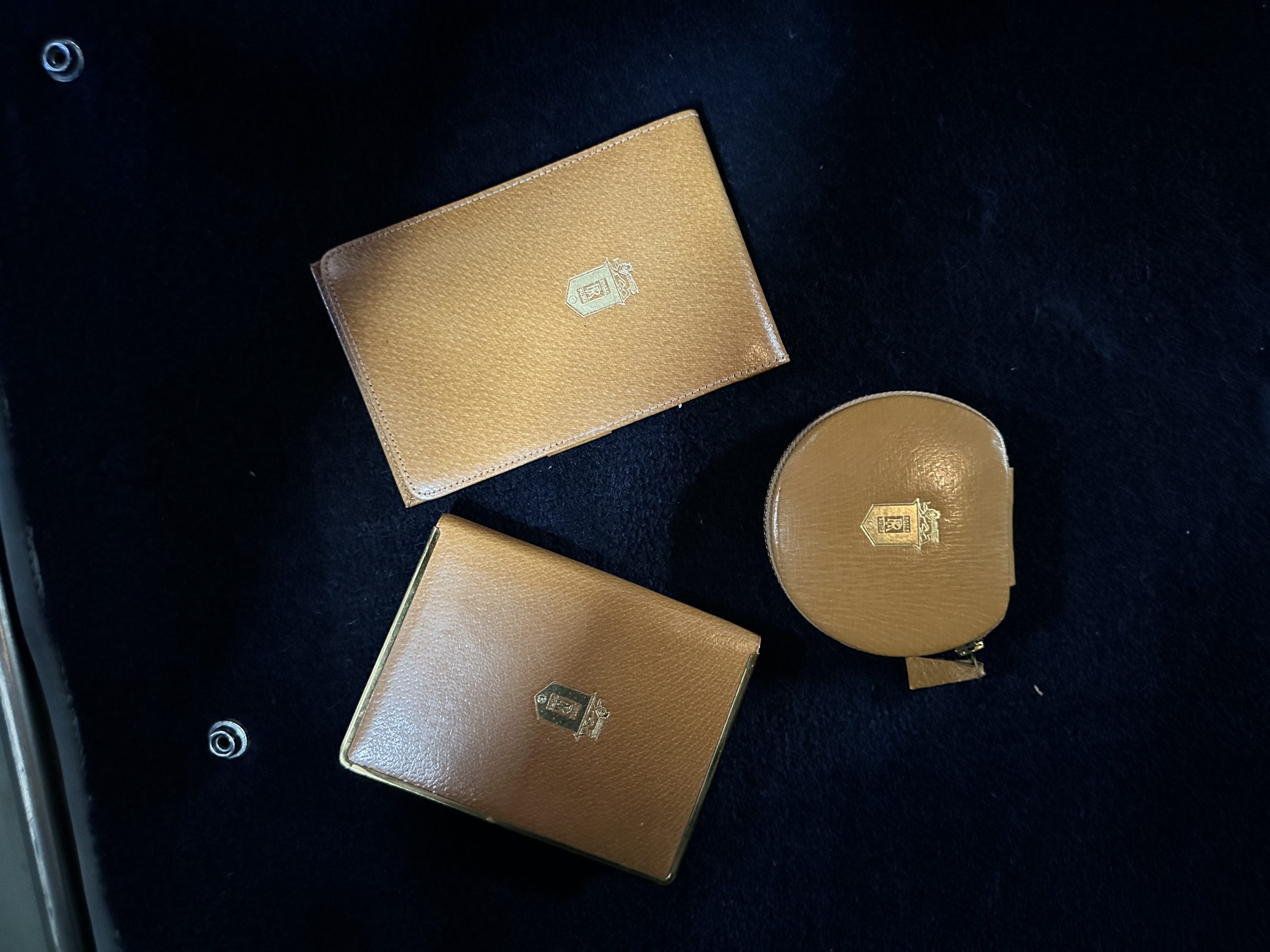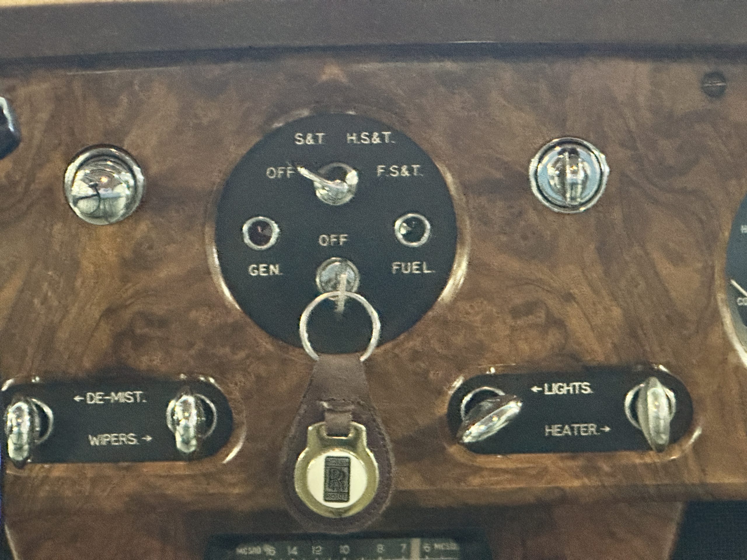 Hidden inside the rear seat center armrest is a complete original Roll-Royce vanity set in as-new condition. The front compartment contains the controls for the air conditioning system and its Radiomobile radio.