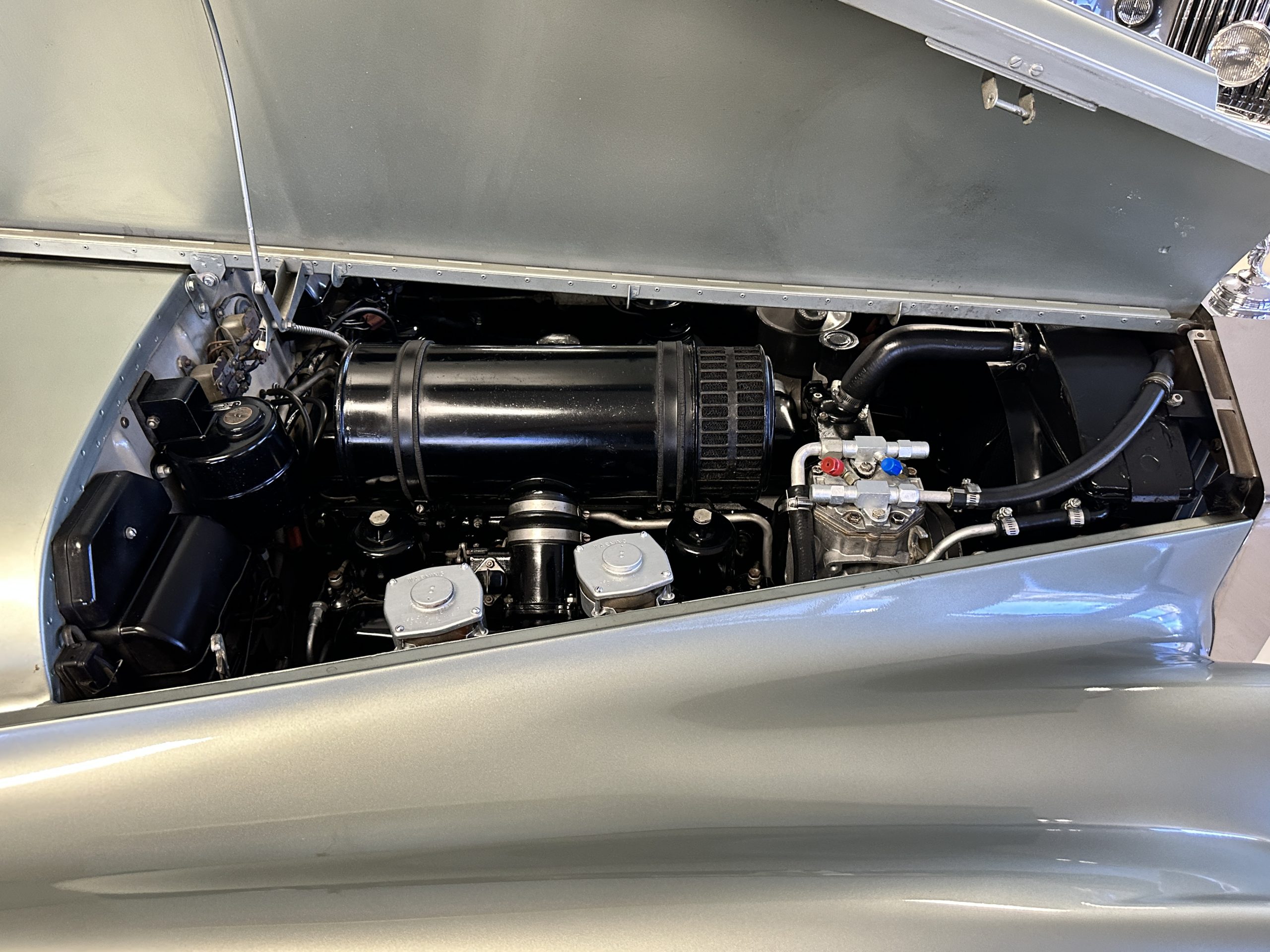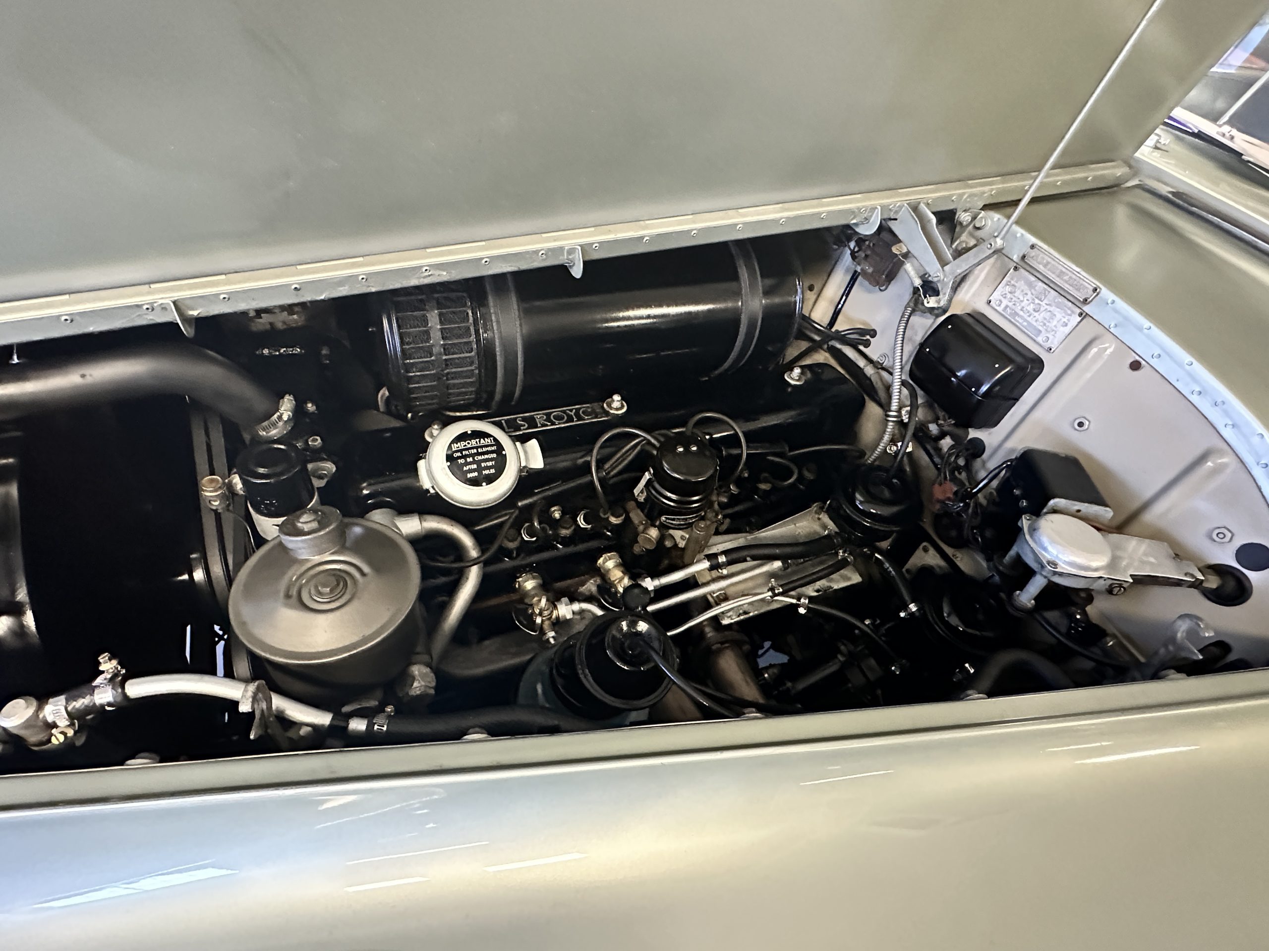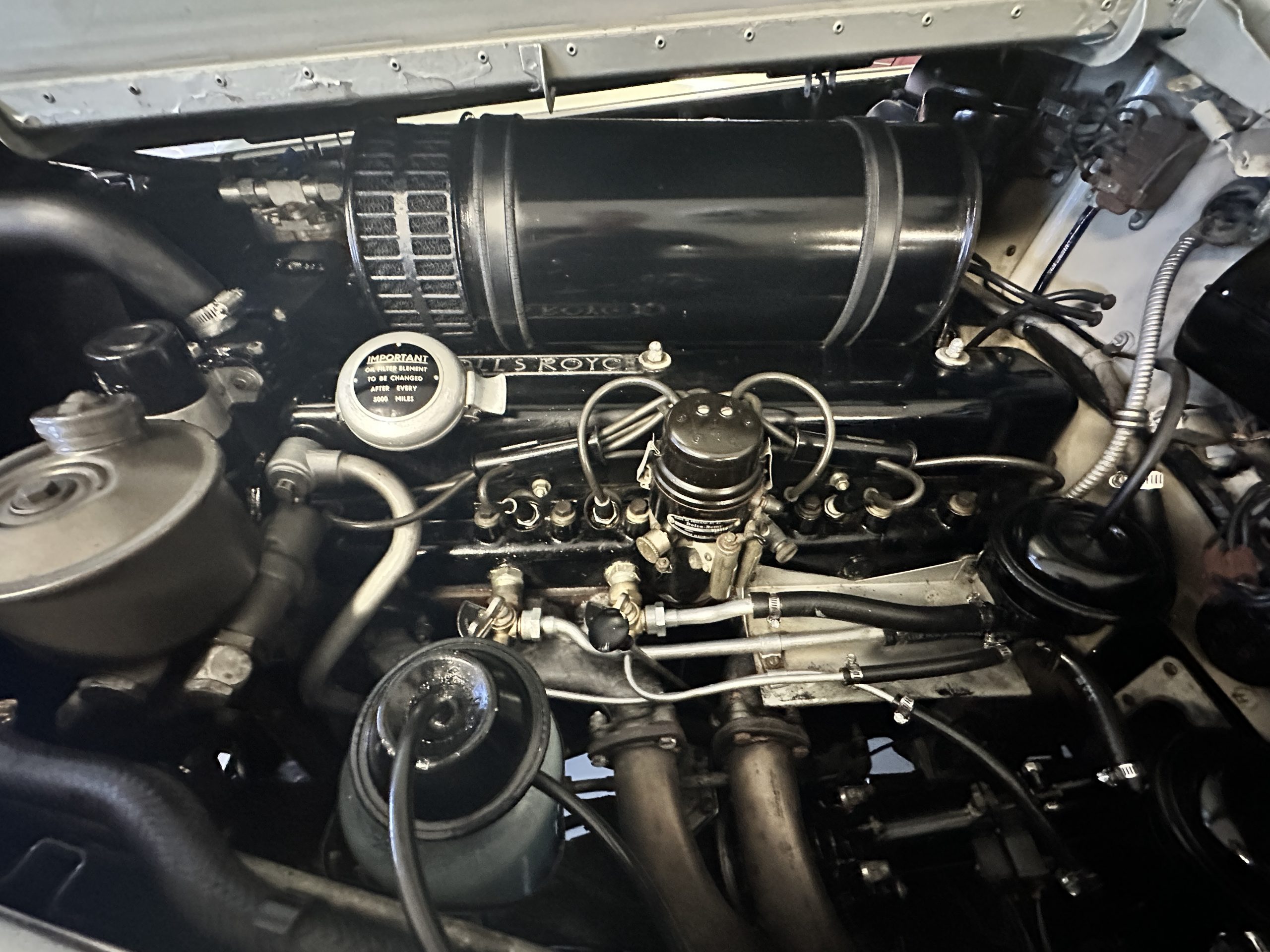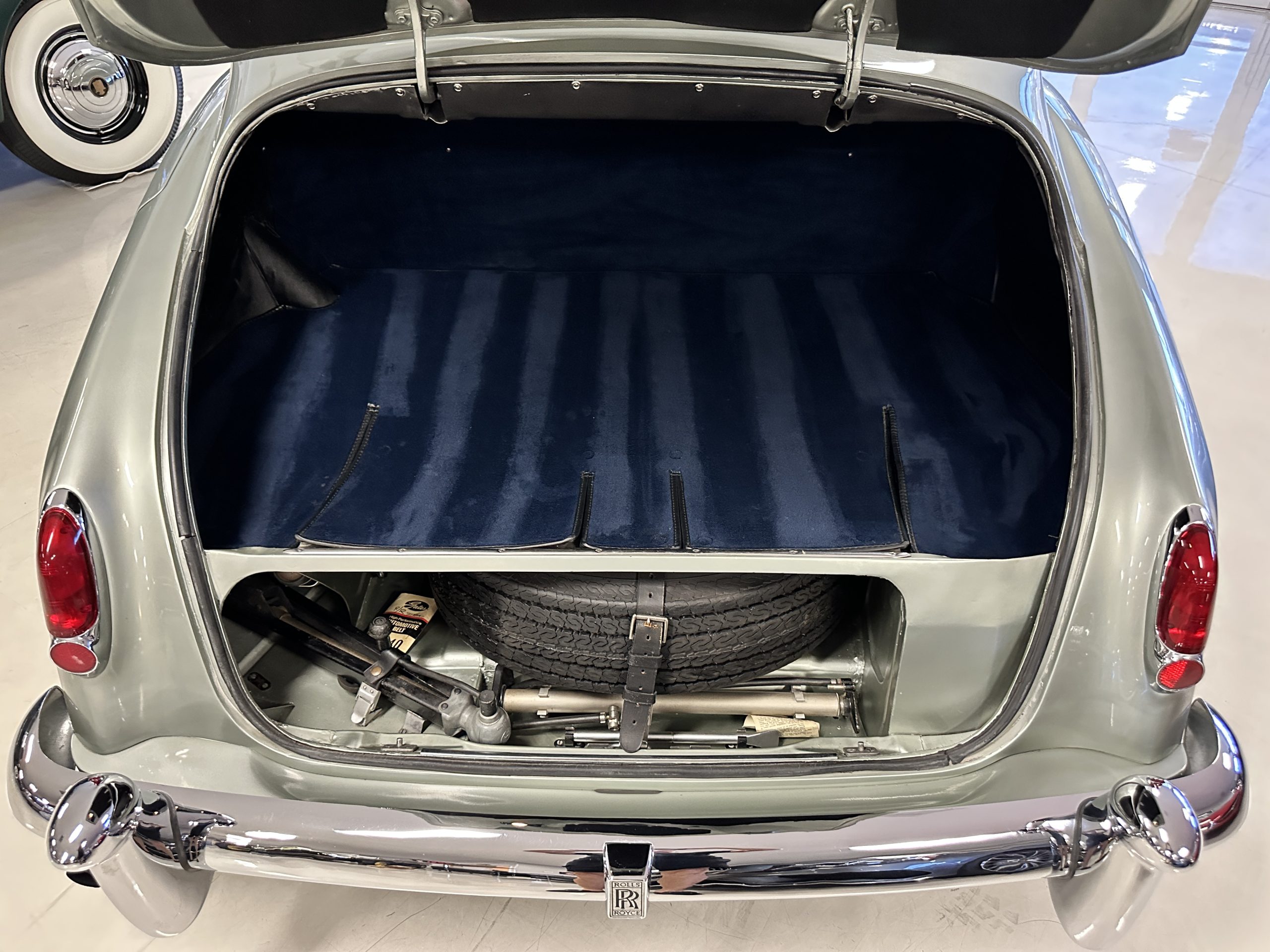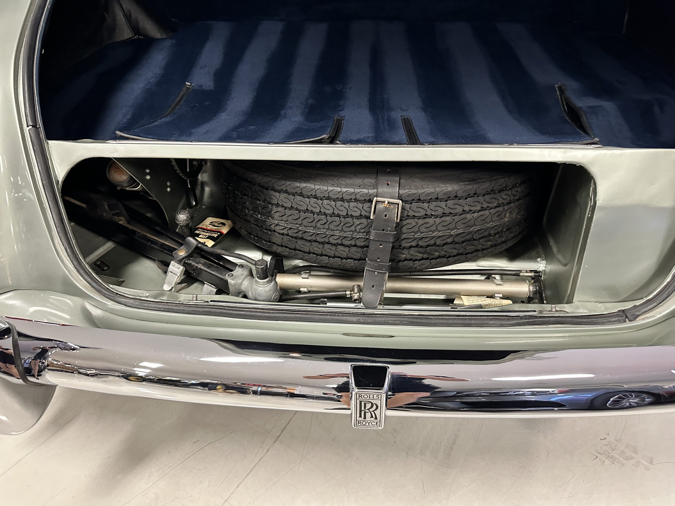 In the trunk are the original tools, the spare, flashlight, jack and everything originally delivered with this Rolls. Even more significant, the original owner’s manual, sales brochures, Workshop repair manual, original sales invoice, factory data card and build sheets, and all service invoices for six decades of loving care are included. A car cover is also included.