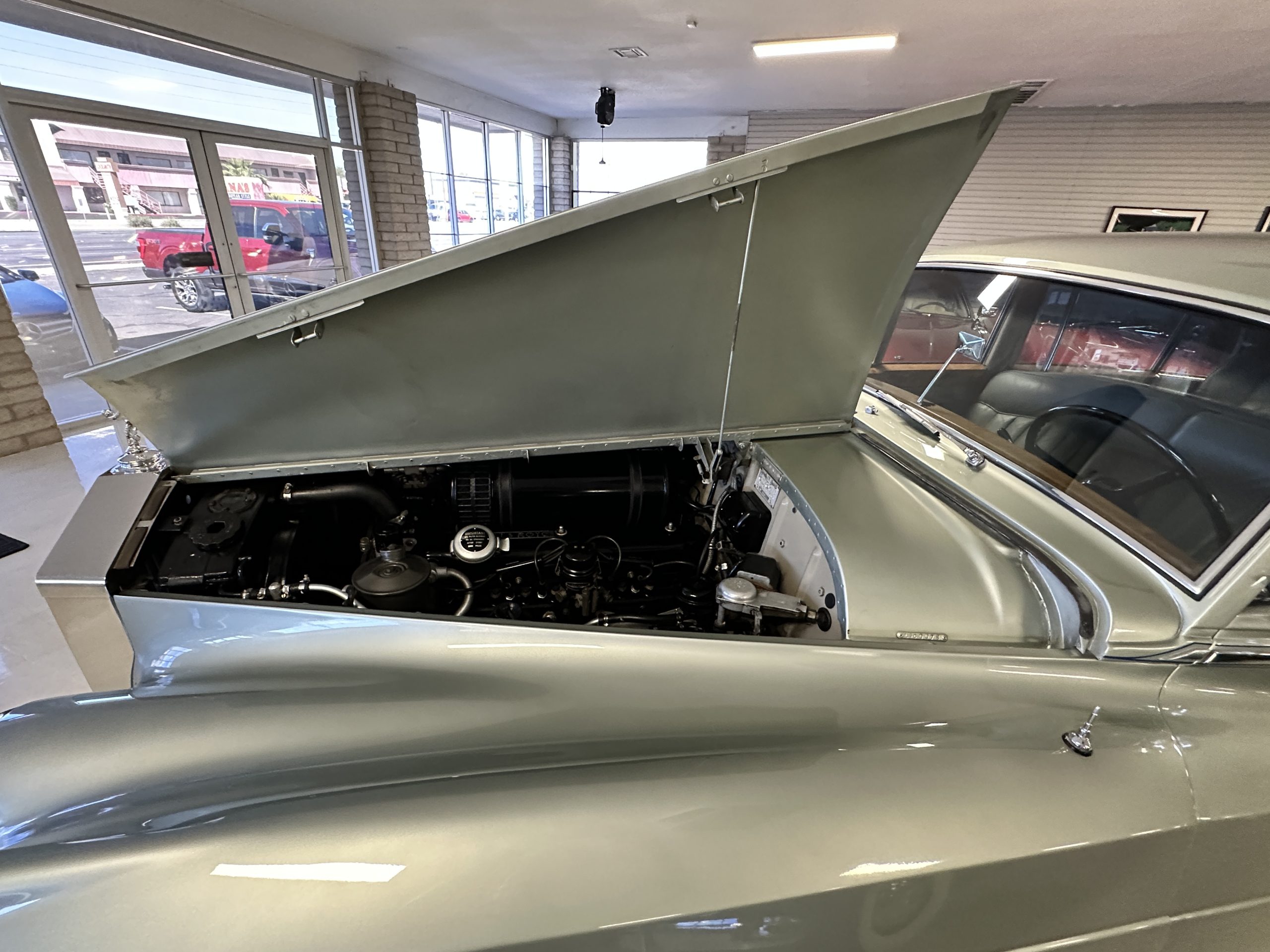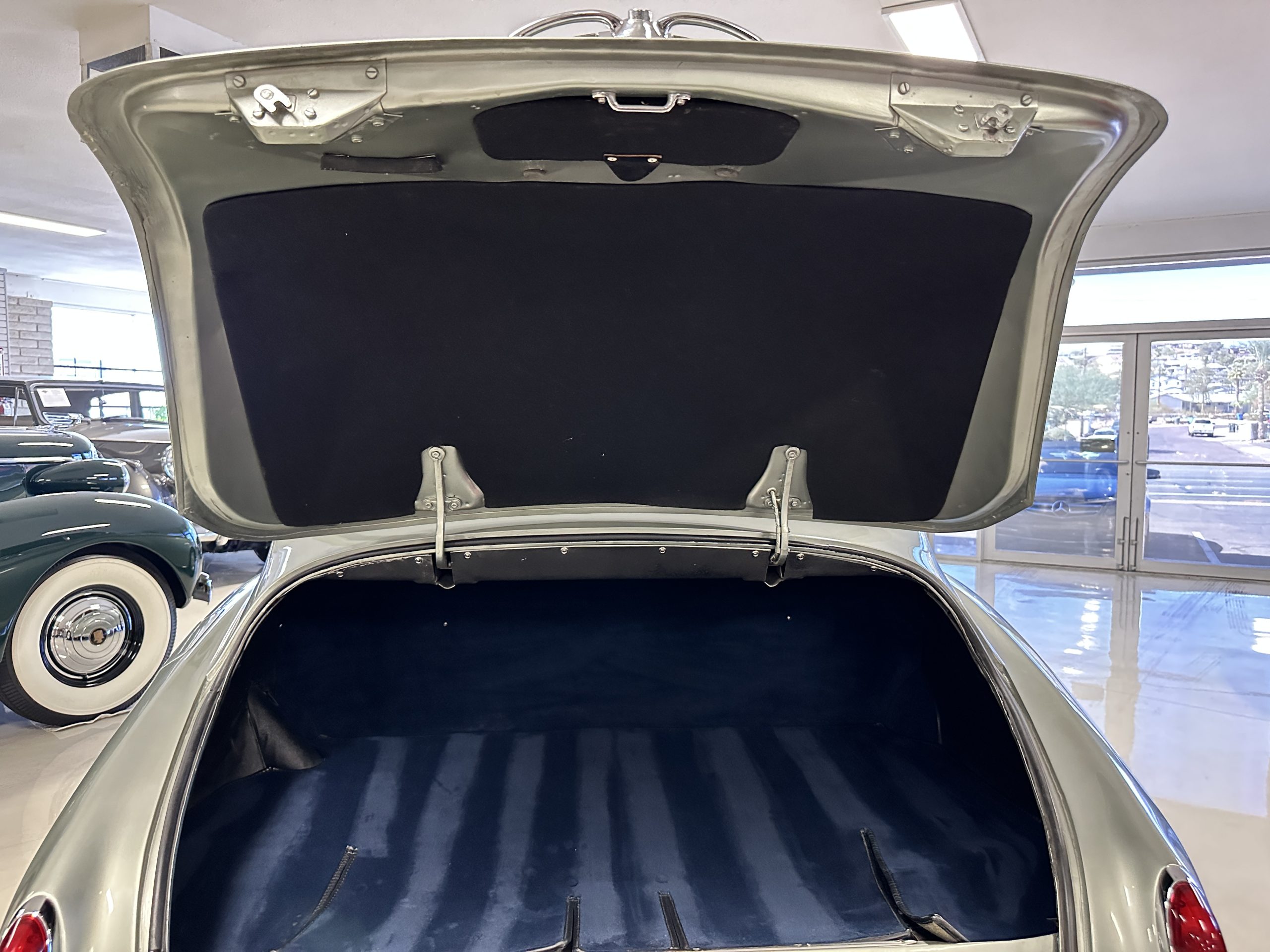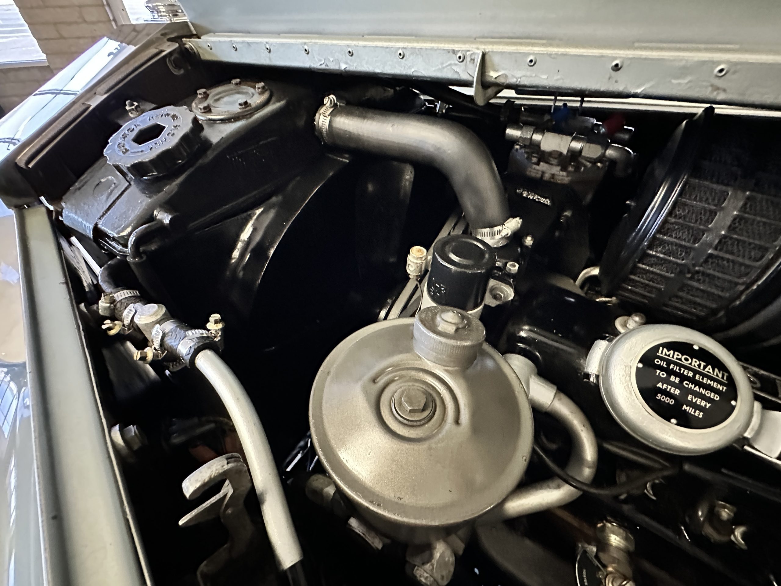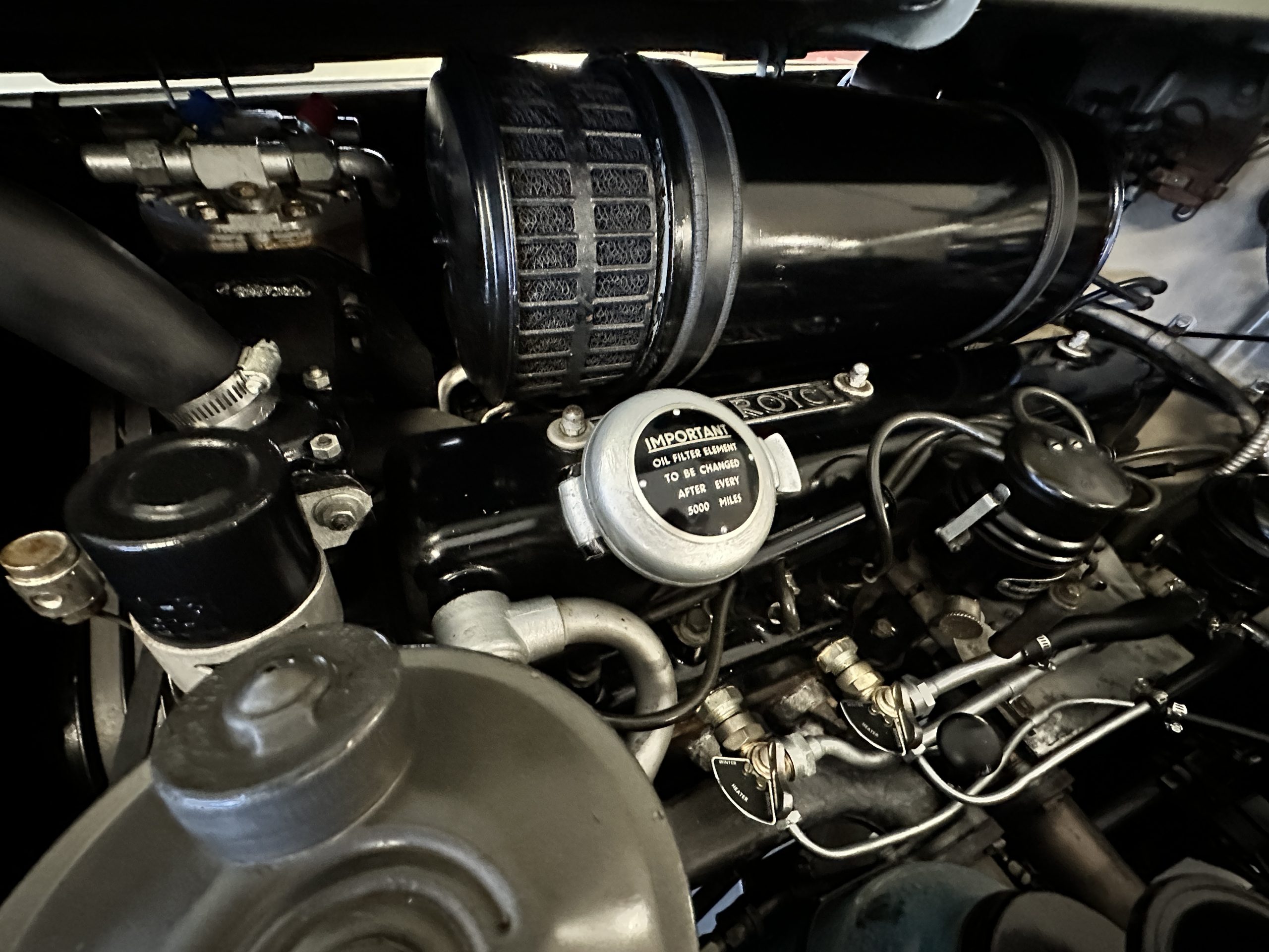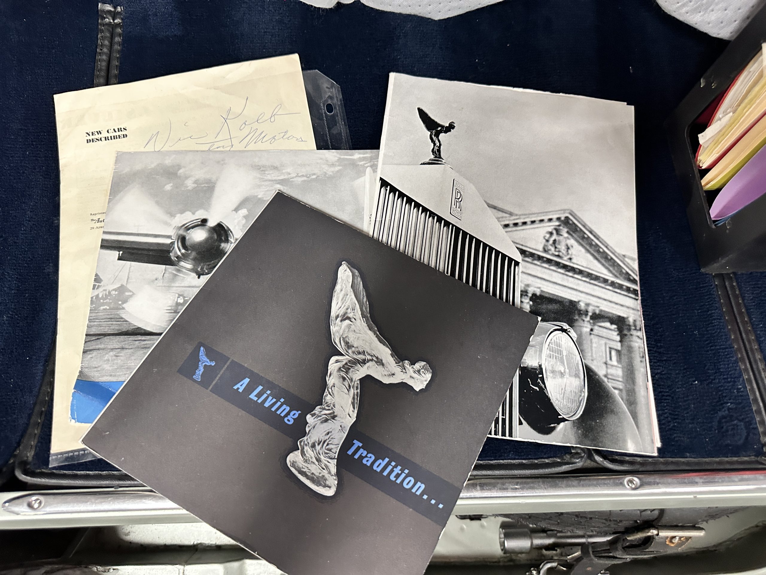In the trunk are the original tools, the spare, flashlight, jack and everything originally delivered with this Rolls. Even more significant, the original owner’s manual, sales brochures, Workshop repair manual, original sales invoice, factory data card and build sheets, and all service invoices for six decades of loving care are included. A car cover is also included.