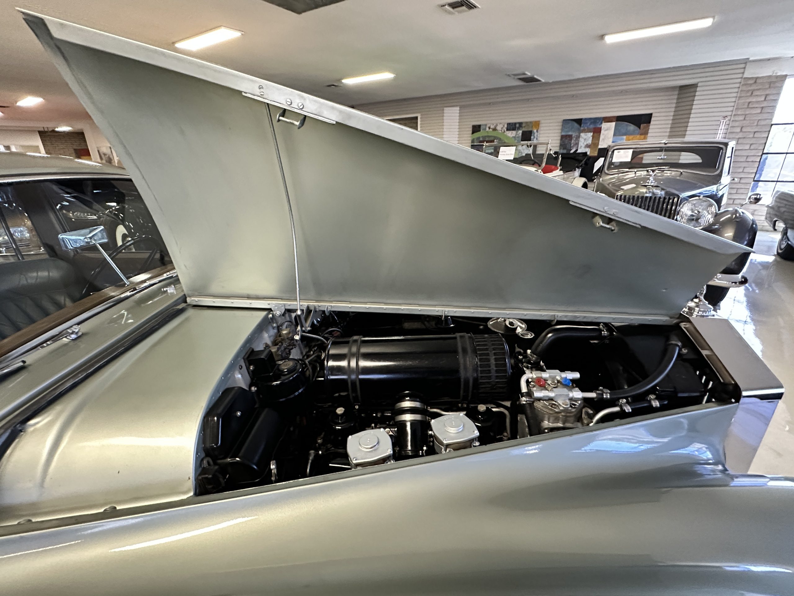 The engine compartment is well detailed, and the 4.9 liter six-cylinder engine performs well along with its four-speed automatic transmission. The driving impression is truly wonderful. The power steering makes it easy to drive, the Rolls feels relatively light and confidence inspiring. Instantly, it felt much as one must have felt to drive as when it was new. The long wheelbase version is extended through the rear doors by four inches to 127-inches, making the riding impression noticeably smoother. Between its consistent maintenance, this Rolls is a delight to drive.
