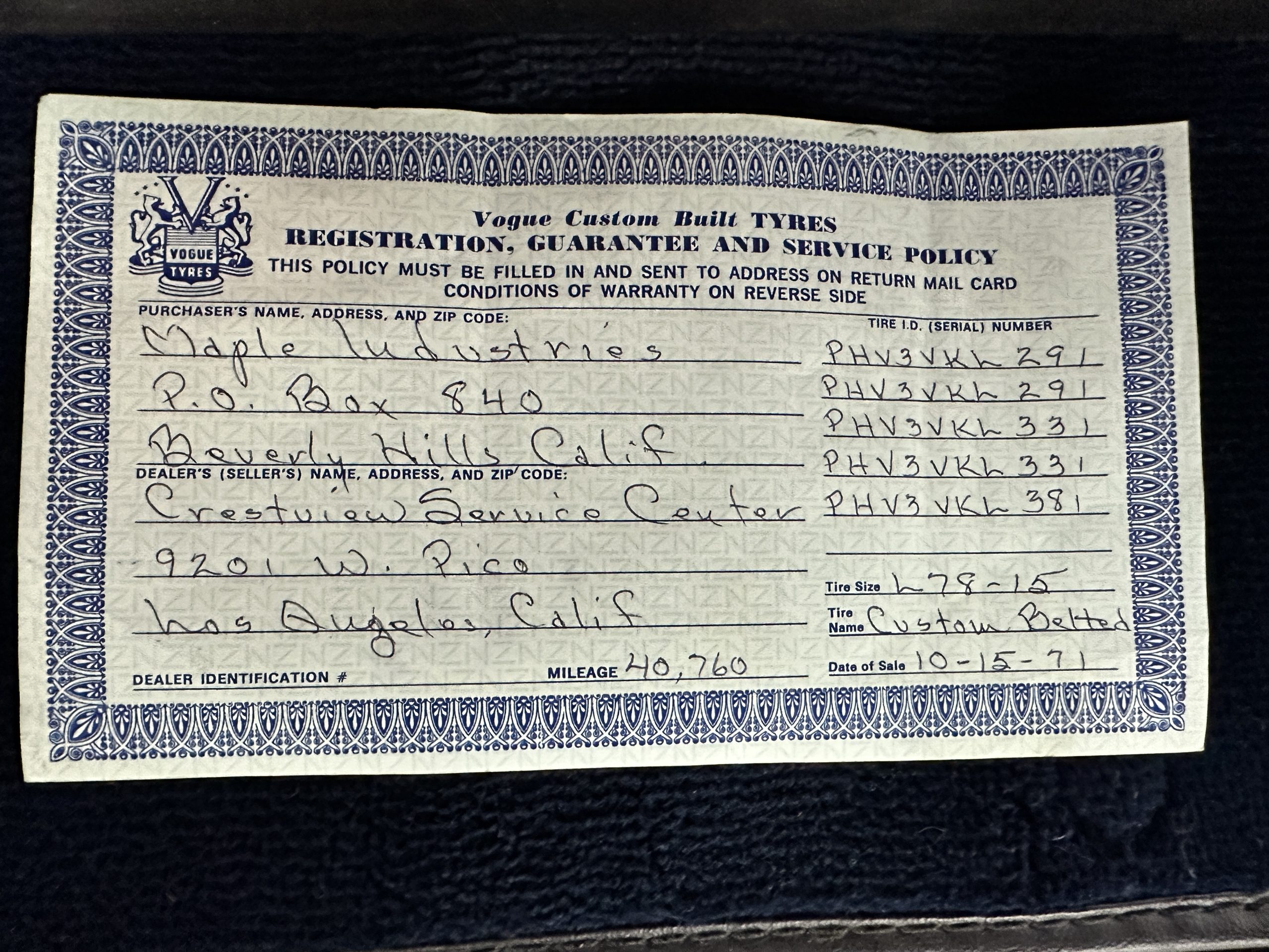 This Silver Cloud was driven for nearly 15 years exclusively by Mrs. Jay Kasler’s chauffeur, Raymond Russell Jones. Mr. Jones served as the chauffeur for the Kasler family from 1940 until the early 1970’s, except for when he was in the US military during WWII. Mr. Jones was the only person driving the Rolls until his retirement. The Rolls continued to be serviced by the Rolls-Royce dealer or marque specialist for decades, with service records kept meticulously in its file (included in the sale).