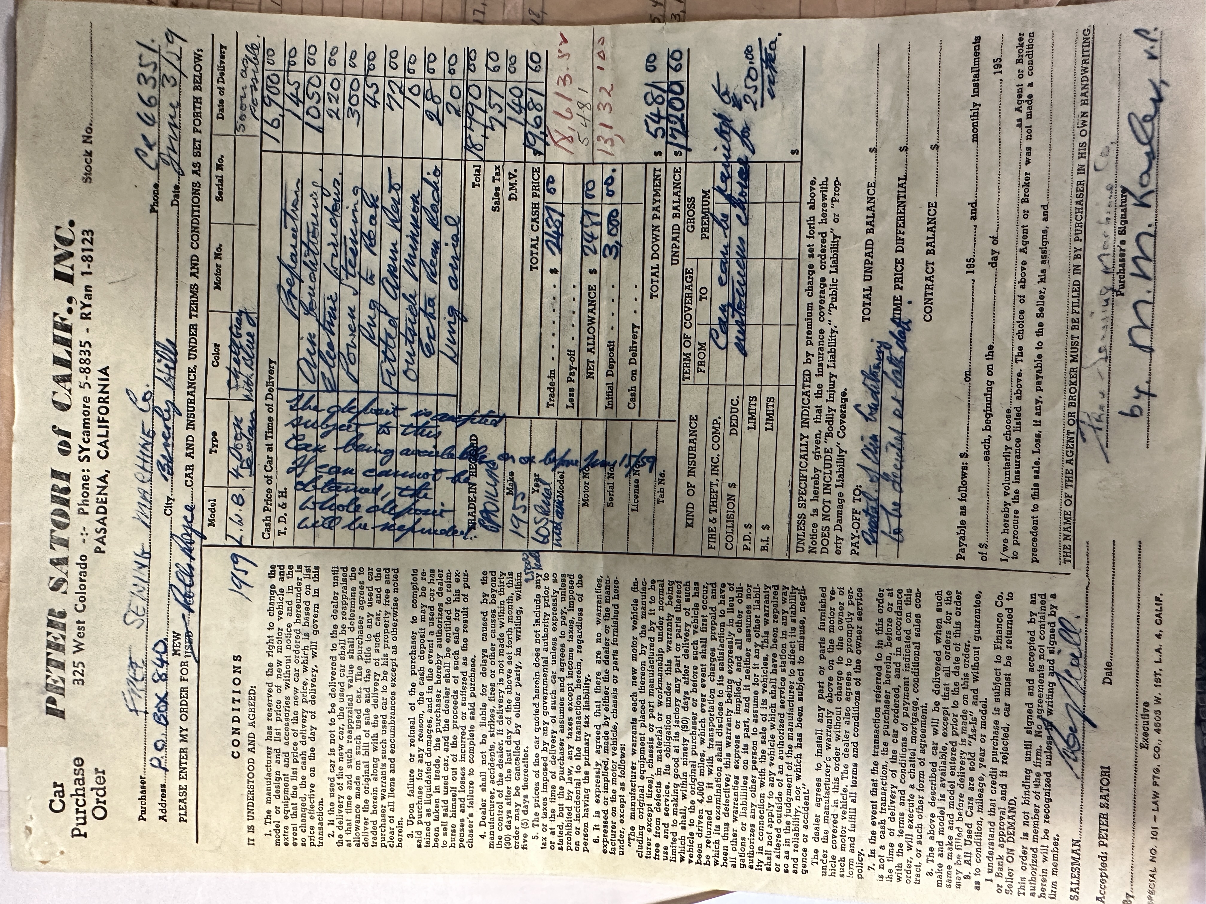 Of the 2,238 Silver Cloud I’s, only 38 LHD long wheelbase with division examples were produced for the worldwide market. Of these, only a small number were for US delivery. LCLC19 was ordered on the 3rd of June 1959 by MM Kasler, VP of the Free Sewing Machine Co of Beverly Hills, CA. The order was placed through the Rolls-Royce dealer Peter Satori of Calif, Inc. at a cost of $19,681. This Rolls was loaded with options, including the desirable rear air conditioning, power steering, electric windows, rear seat vanities, radio controls for the rear passenger and a sheepskin mouton overlay for the rear passengers.