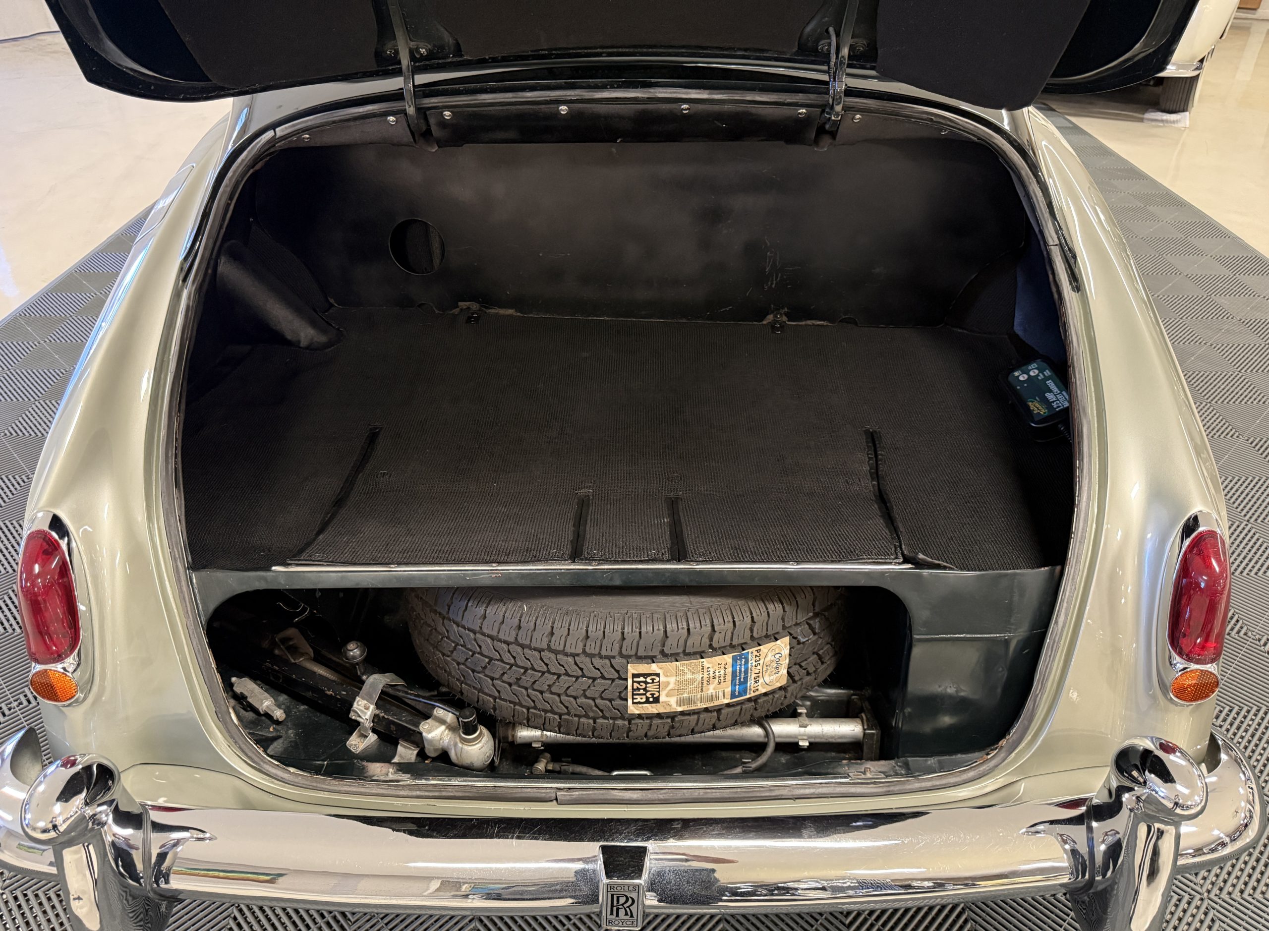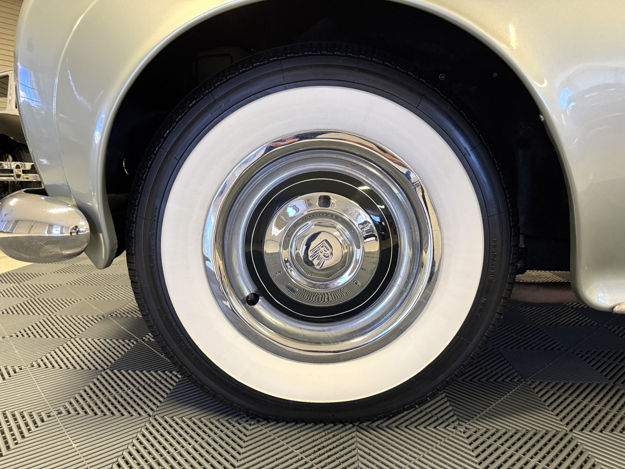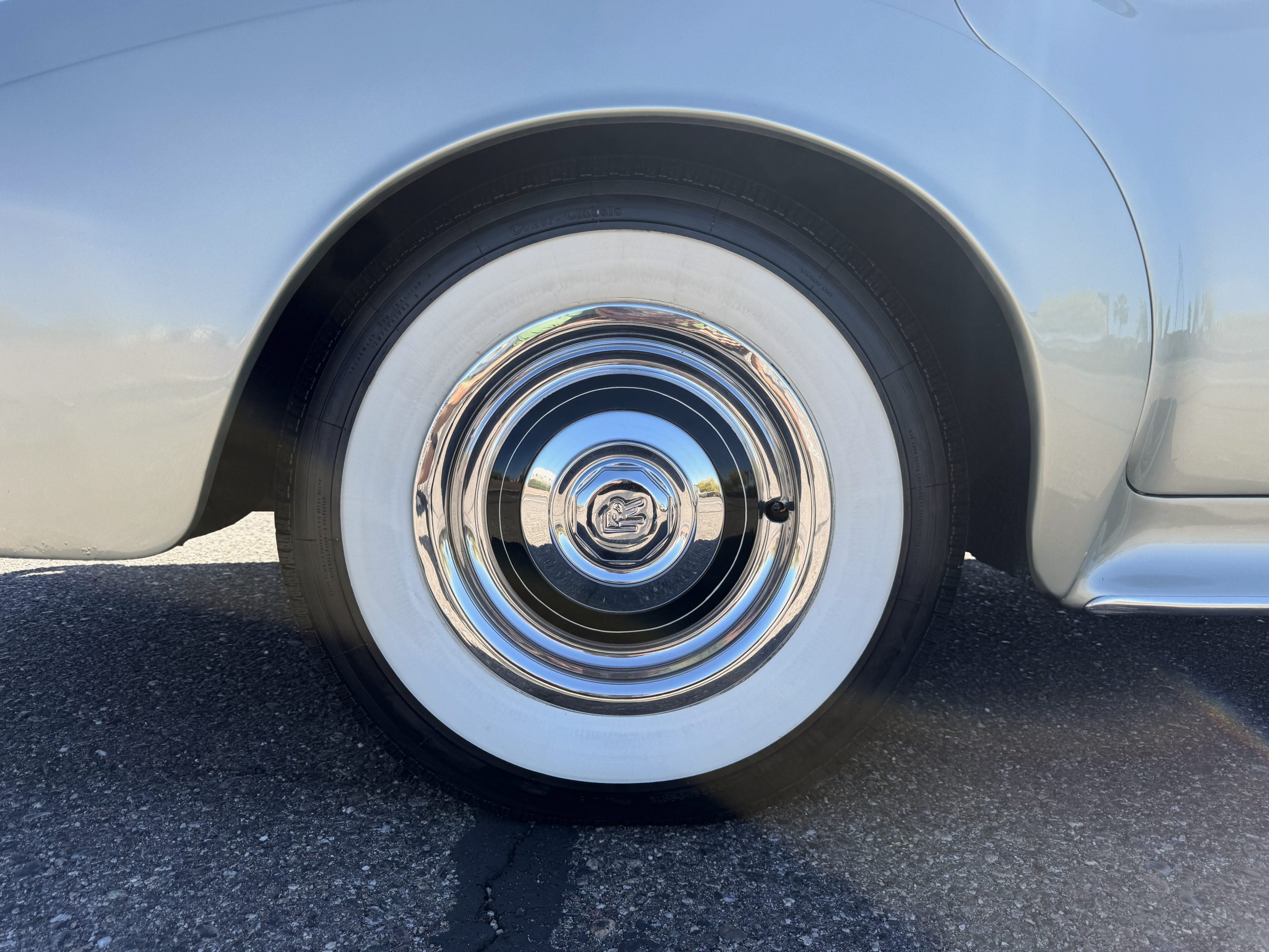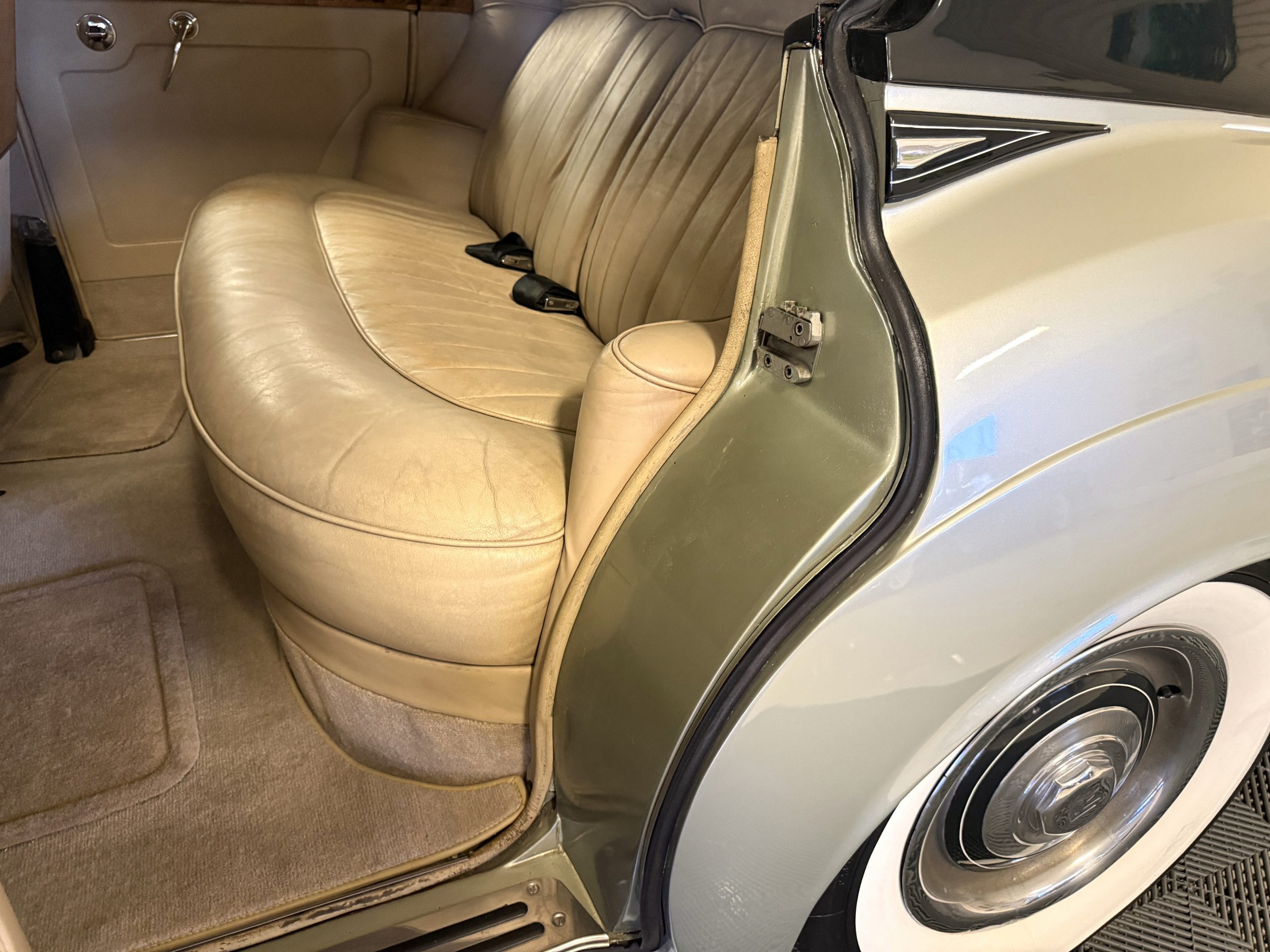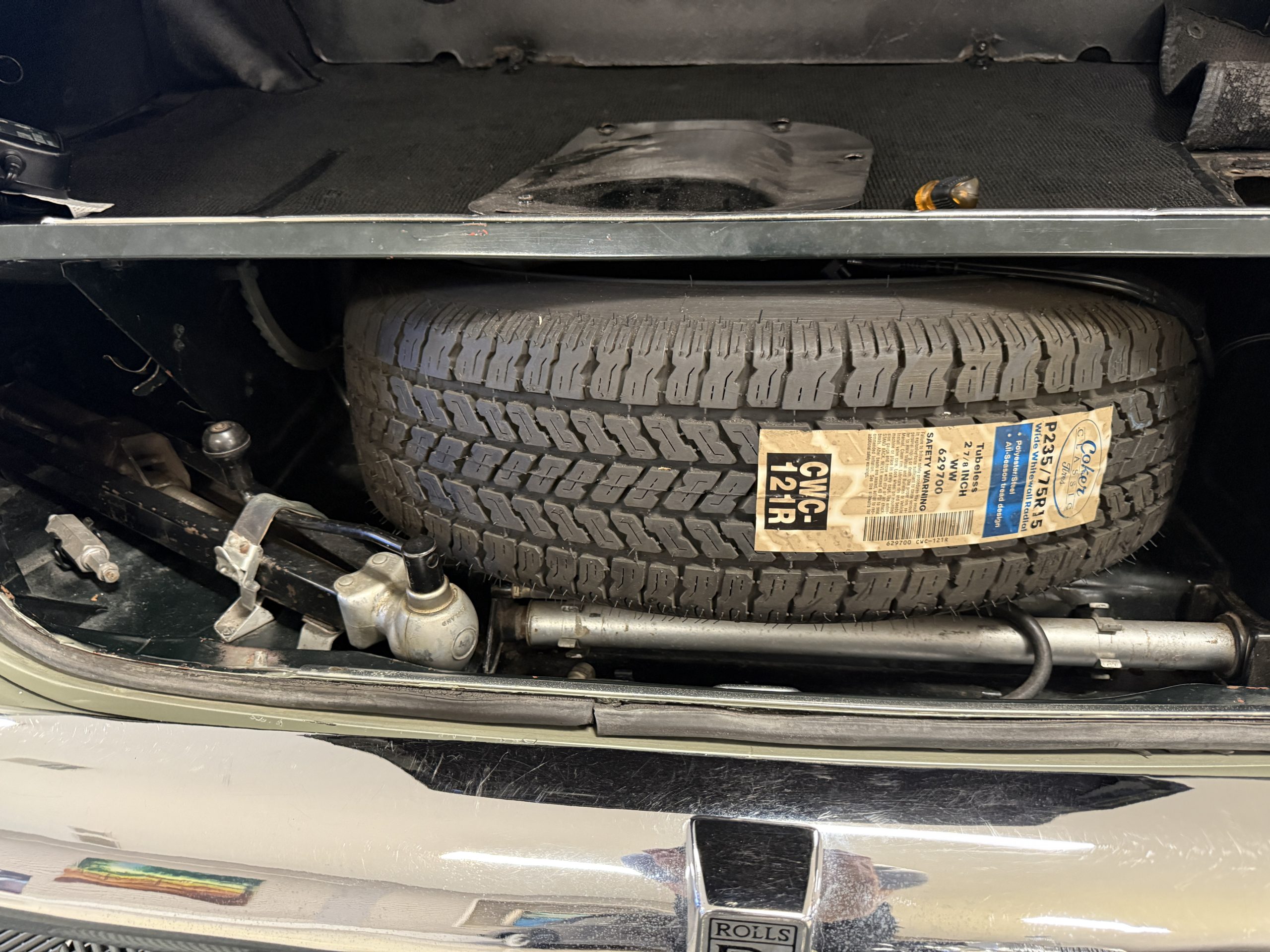 The Rolls-Royce is powered by the 6.2-liter V8 engine (engine number 271AS) paired with a four-speed GM Hydra-Matic automatic transmission, offering improved torque and smoother power delivery compared with earlier Silver Cloud models. The chassis incorporates power steering, front independent suspension with coil springs, and a rear live axle with semi-elliptical leaf springs, with four-wheel servo-assisted drum brakes deliver controlled stopping performance. The water pump, alternator and belts were replaced in 2017 and a complete brake service was completed in 2017. In 2013, the wiper motor was rebuilt and electric accessories were serviced which included wiring fixes for power windows, turn signals, foglights, door latches, bake lights and bulb replacements. The AC compressor was rebuilt in 2002. Chassis LSRA217 includes some service records, the original build sheets, chassis card, a spare tire and jack.