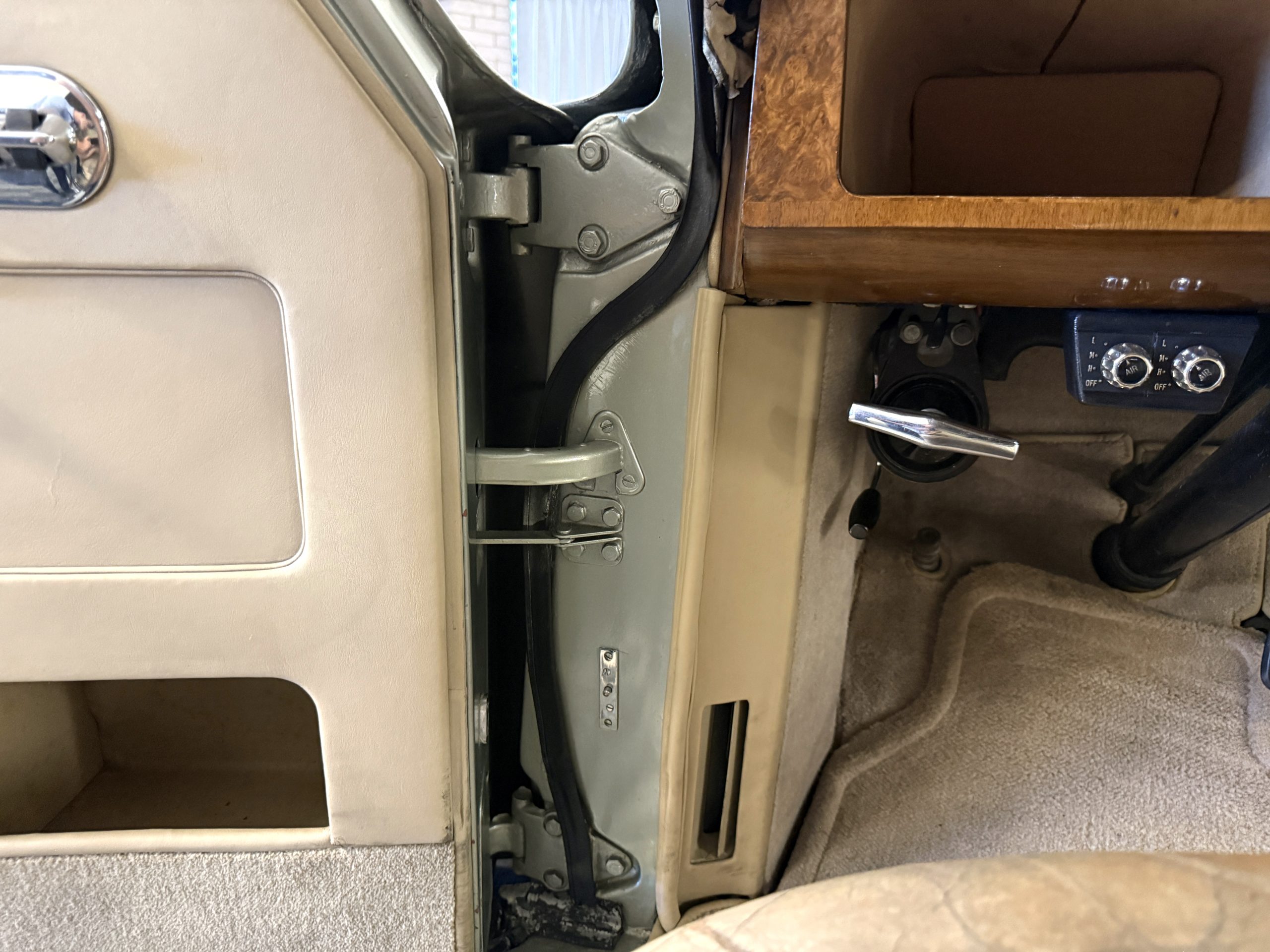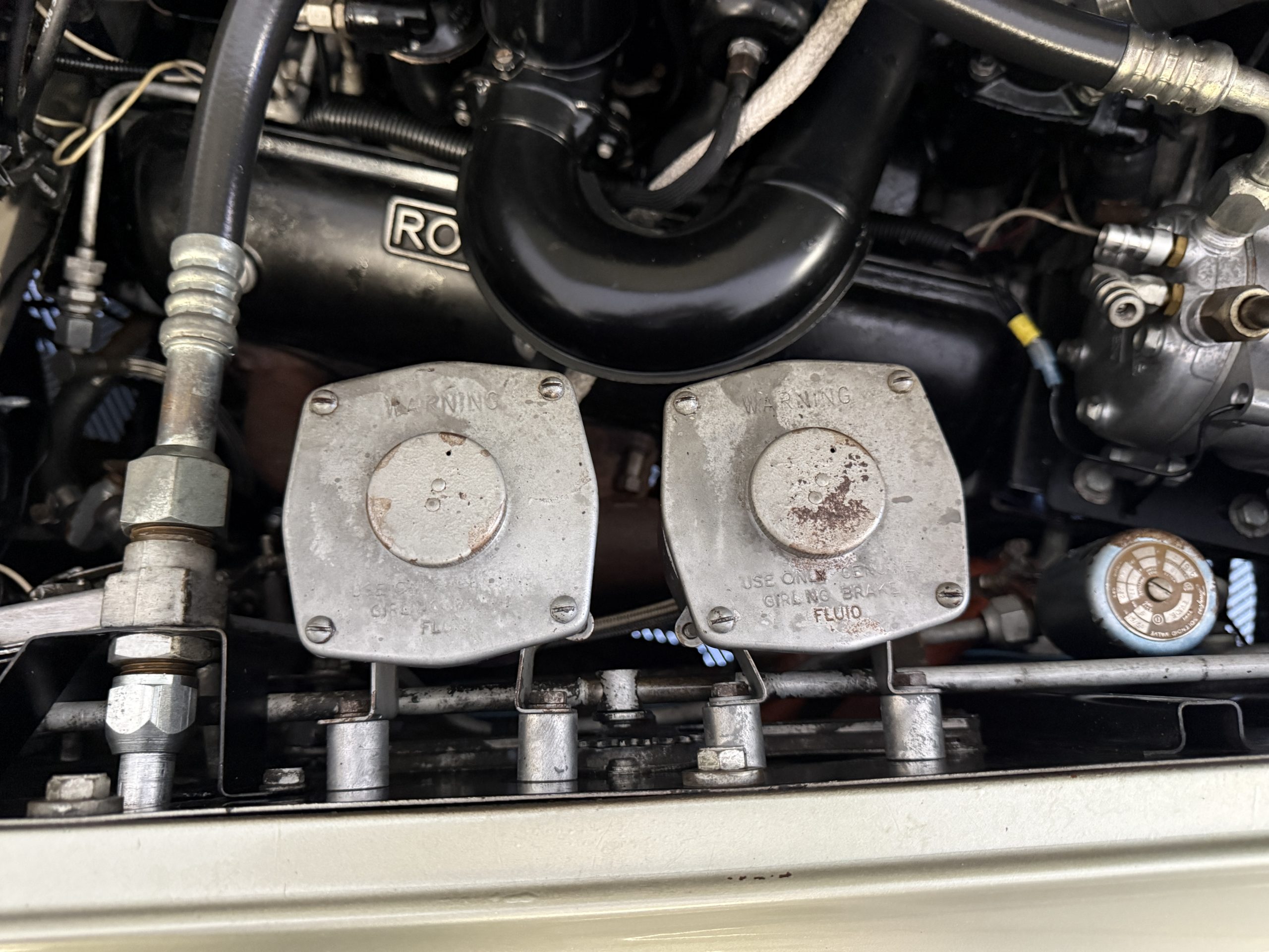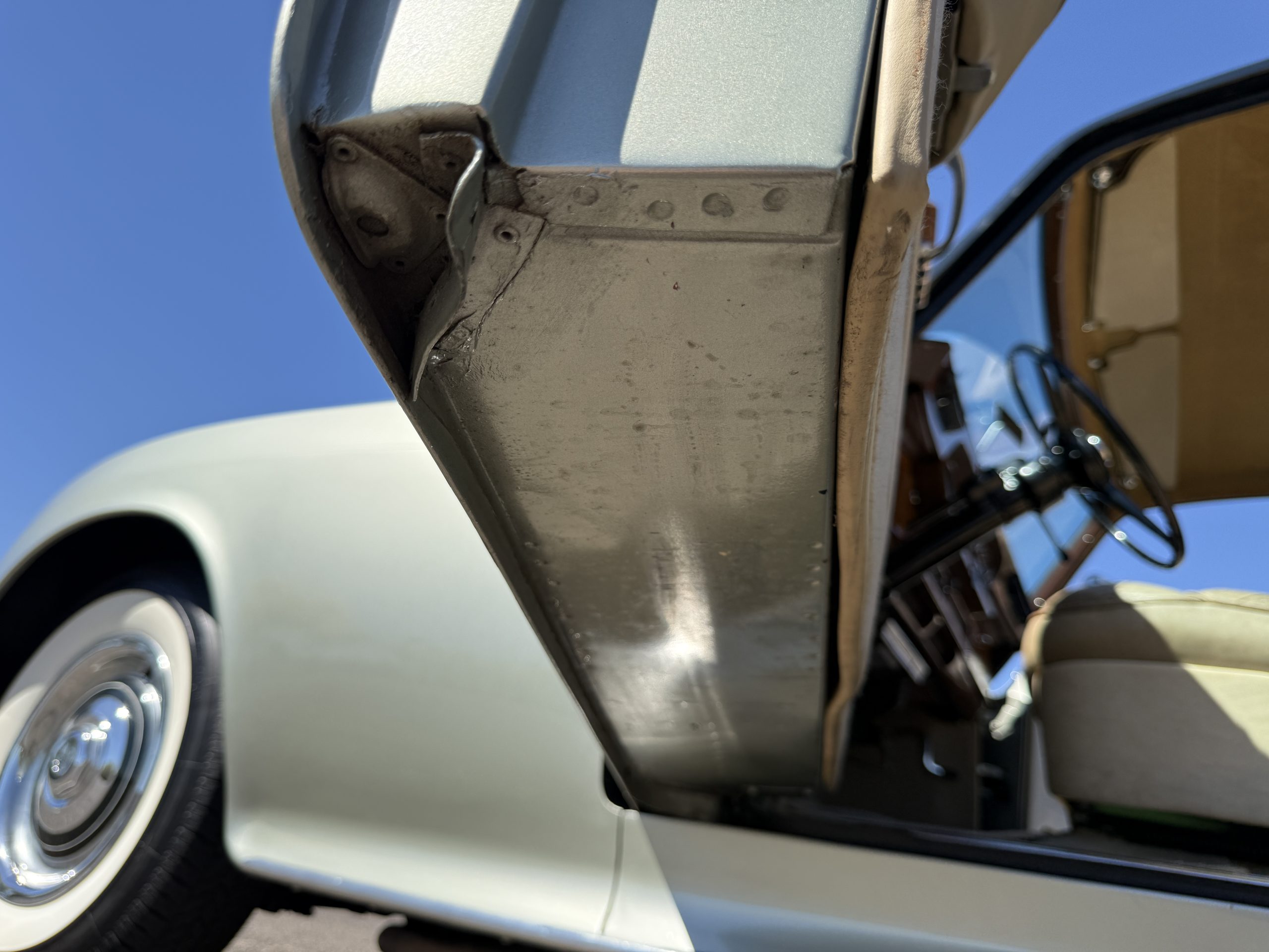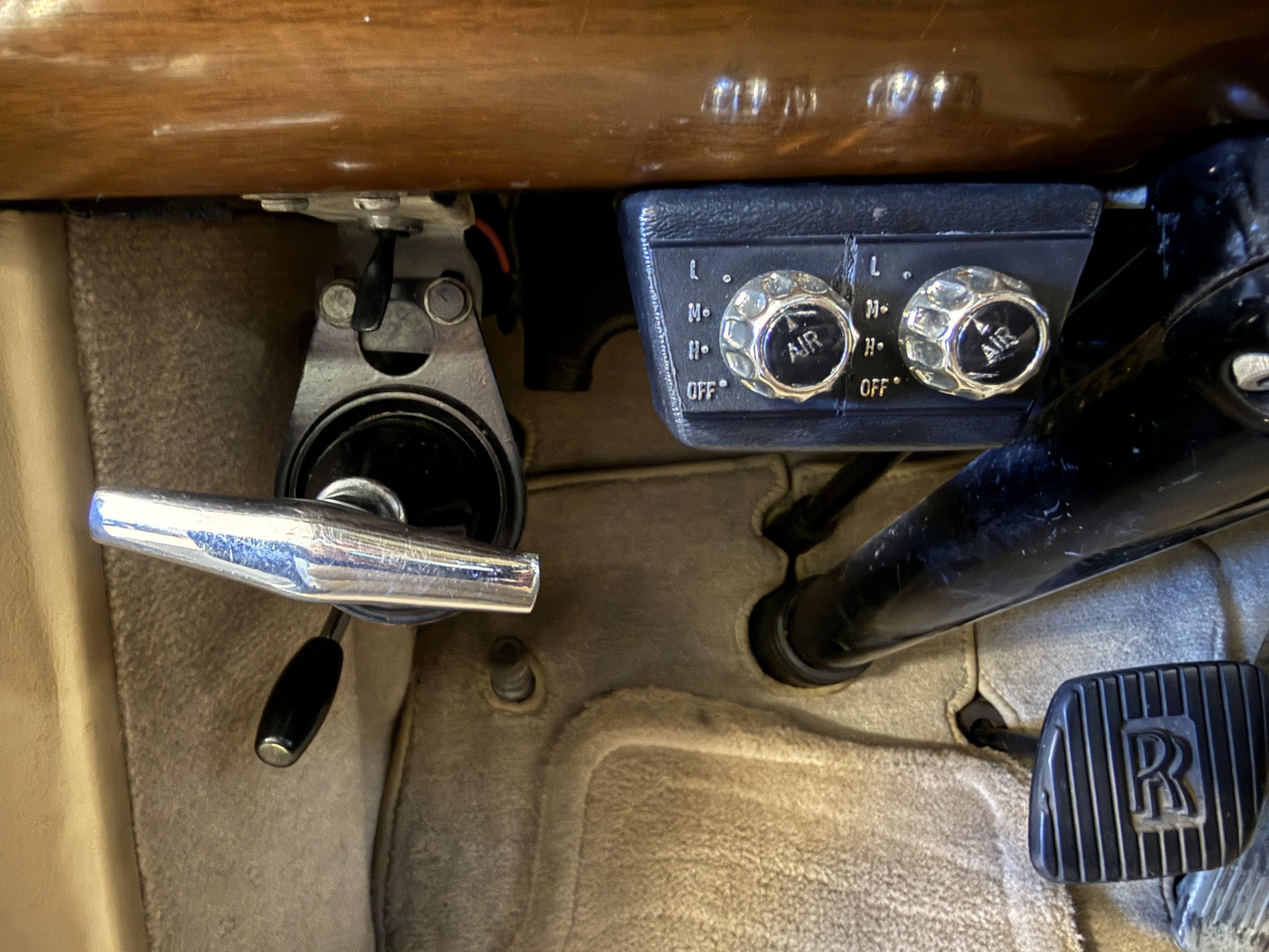 The Rolls-Royce is powered by the 6.2-liter V8 engine (engine number 271AS) paired with a four-speed GM Hydra-Matic automatic transmission, offering improved torque and smoother power delivery compared with earlier Silver Cloud models. The chassis incorporates power steering, front independent suspension with coil springs, and a rear live axle with semi-elliptical leaf springs, with four-wheel servo-assisted drum brakes deliver controlled stopping performance. The water pump, alternator and belts were replaced in 2017 and a complete brake service was completed in 2017. In 2013, the wiper motor was rebuilt and electric accessories were serviced which included wiring fixes for power windows, turn signals, foglights, door latches, bake lights and bulb replacements. The AC compressor was rebuilt in 2002. Chassis LSRA217 includes some service records, the original build sheets, chassis card, a spare tire and jack.