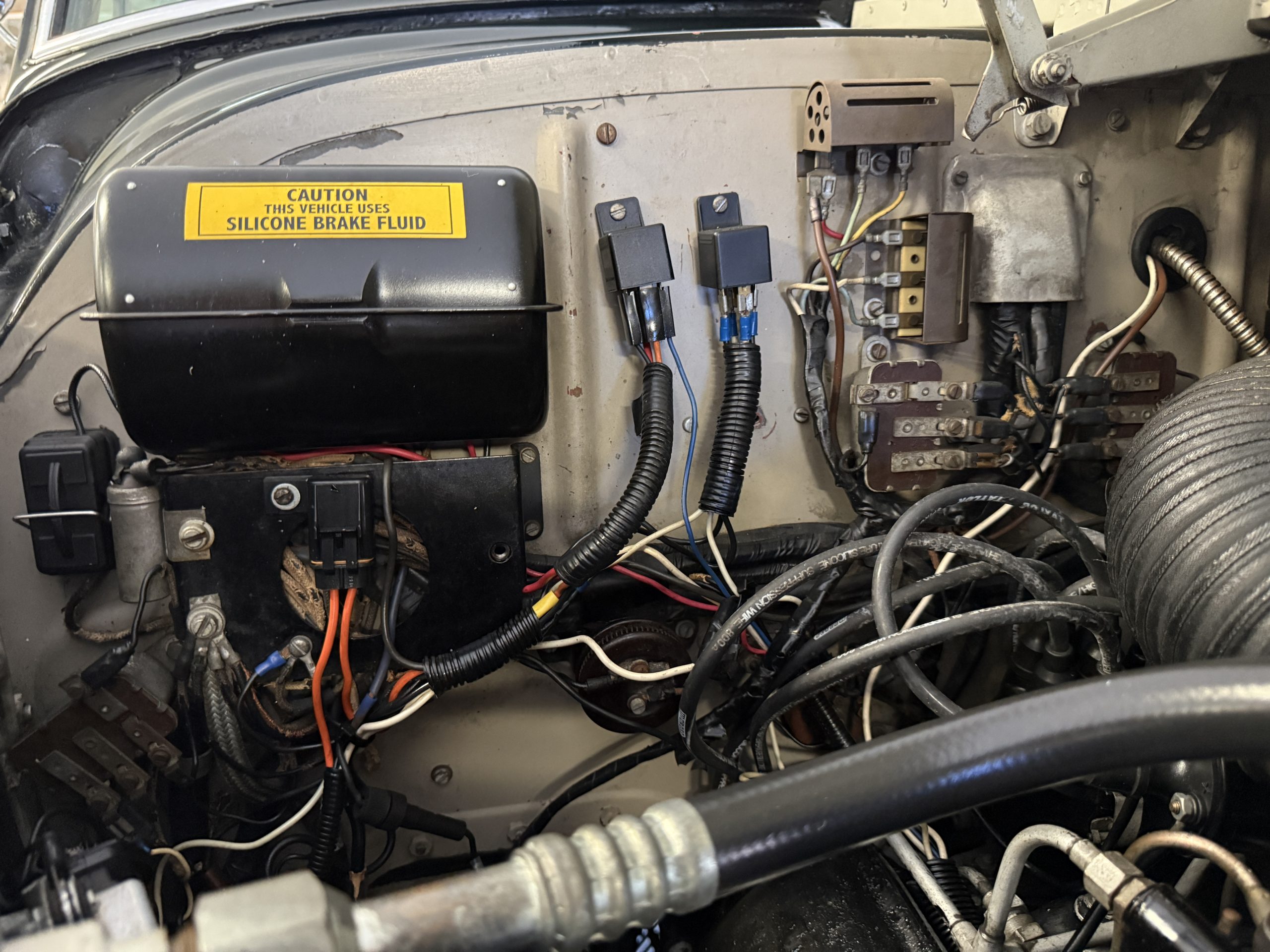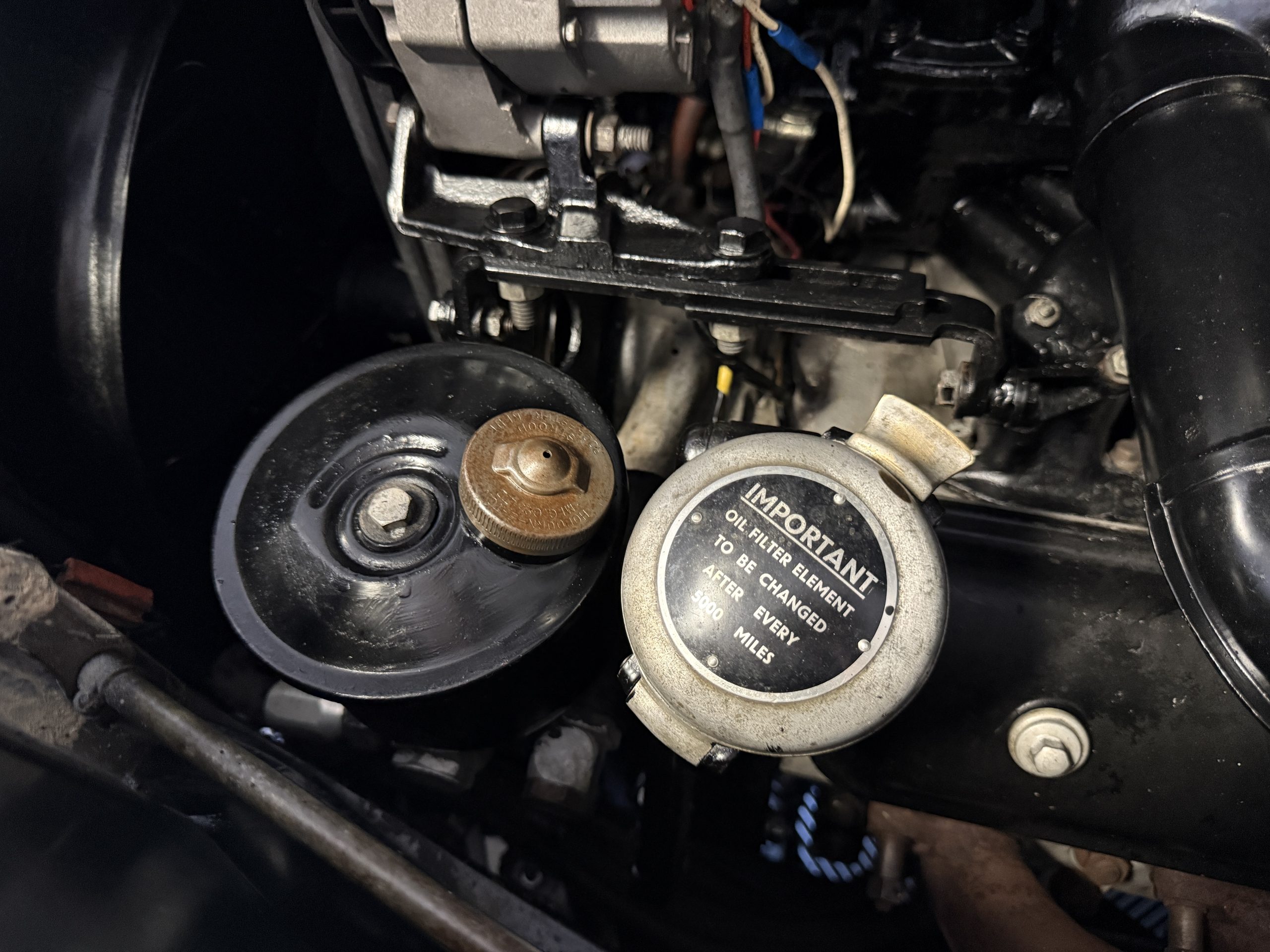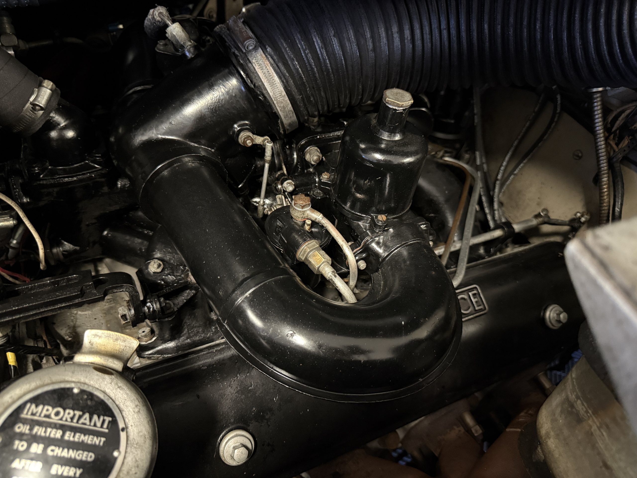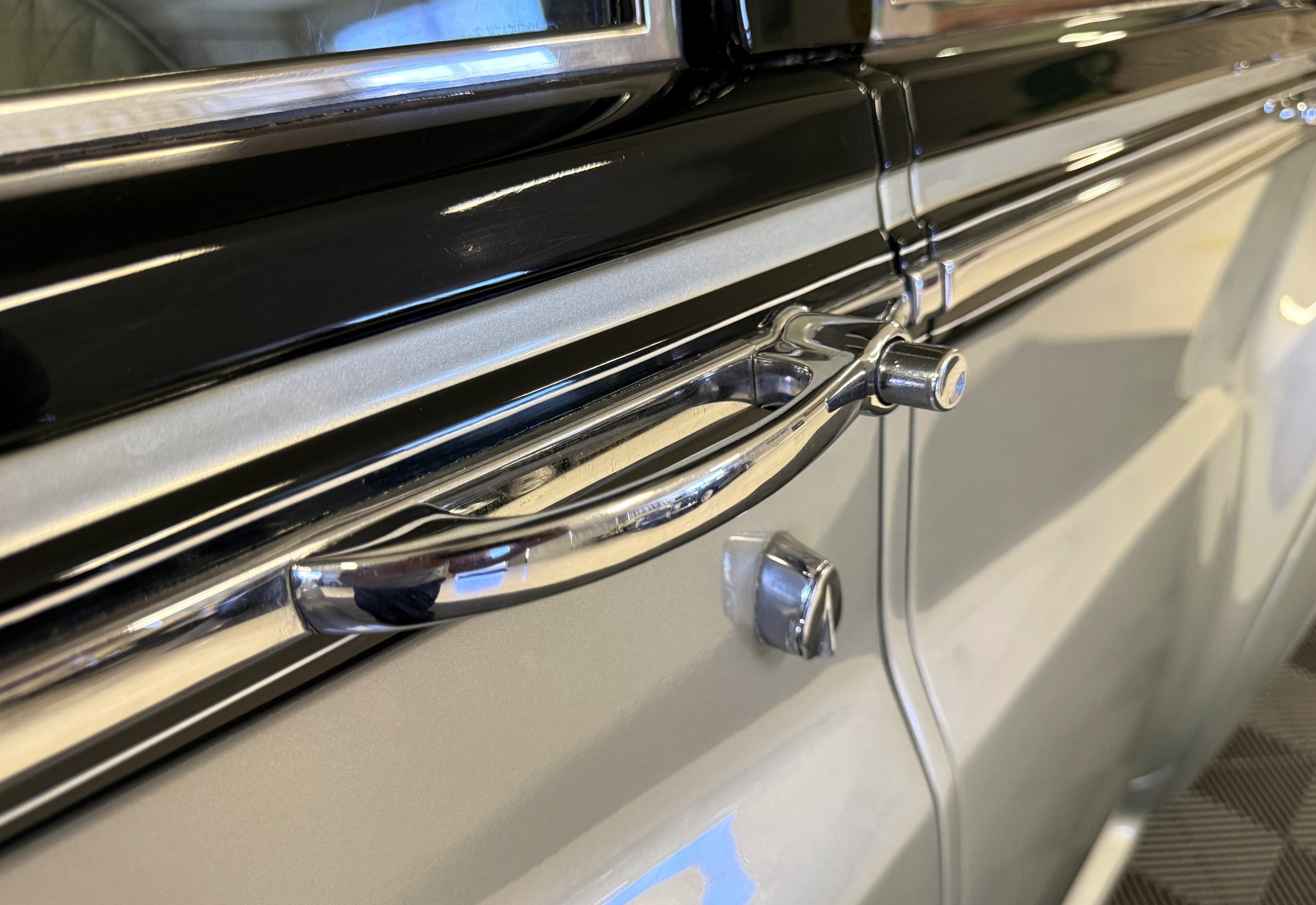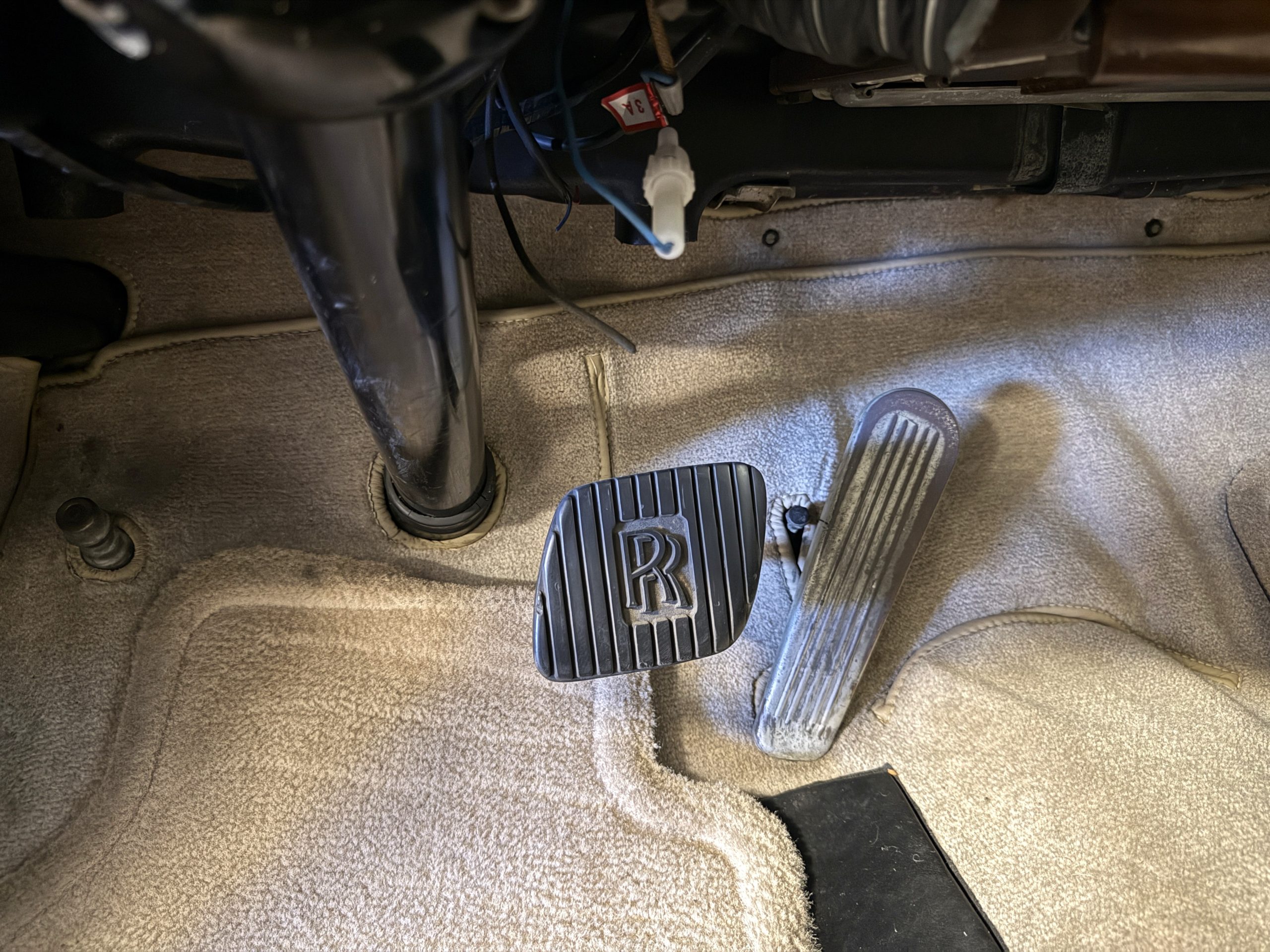 The Rolls-Royce is powered by the 6.2-liter V8 engine (engine number 271AS) paired with a four-speed GM Hydra-Matic automatic transmission, offering improved torque and smoother power delivery compared with earlier Silver Cloud models. The chassis incorporates power steering, front independent suspension with coil springs, and a rear live axle with semi-elliptical leaf springs, with four-wheel servo-assisted drum brakes deliver controlled stopping performance. The water pump, alternator and belts were replaced in 2017 and a complete brake service was completed in 2017. In 2013, the wiper motor was rebuilt and electric accessories were serviced which included wiring fixes for power windows, turn signals, foglights, door latches, bake lights and bulb replacements. The AC compressor was rebuilt in 2002. Chassis LSRA217 includes some service records, the original build sheets, chassis card, a spare tire and jack.