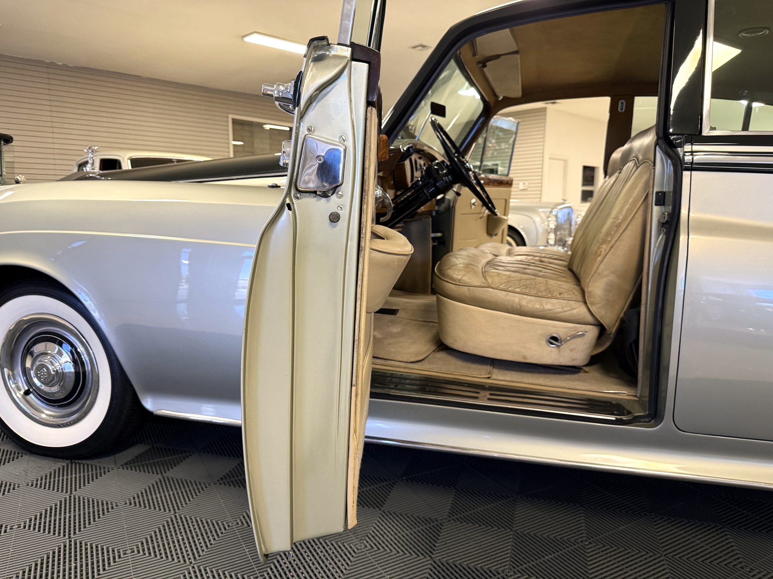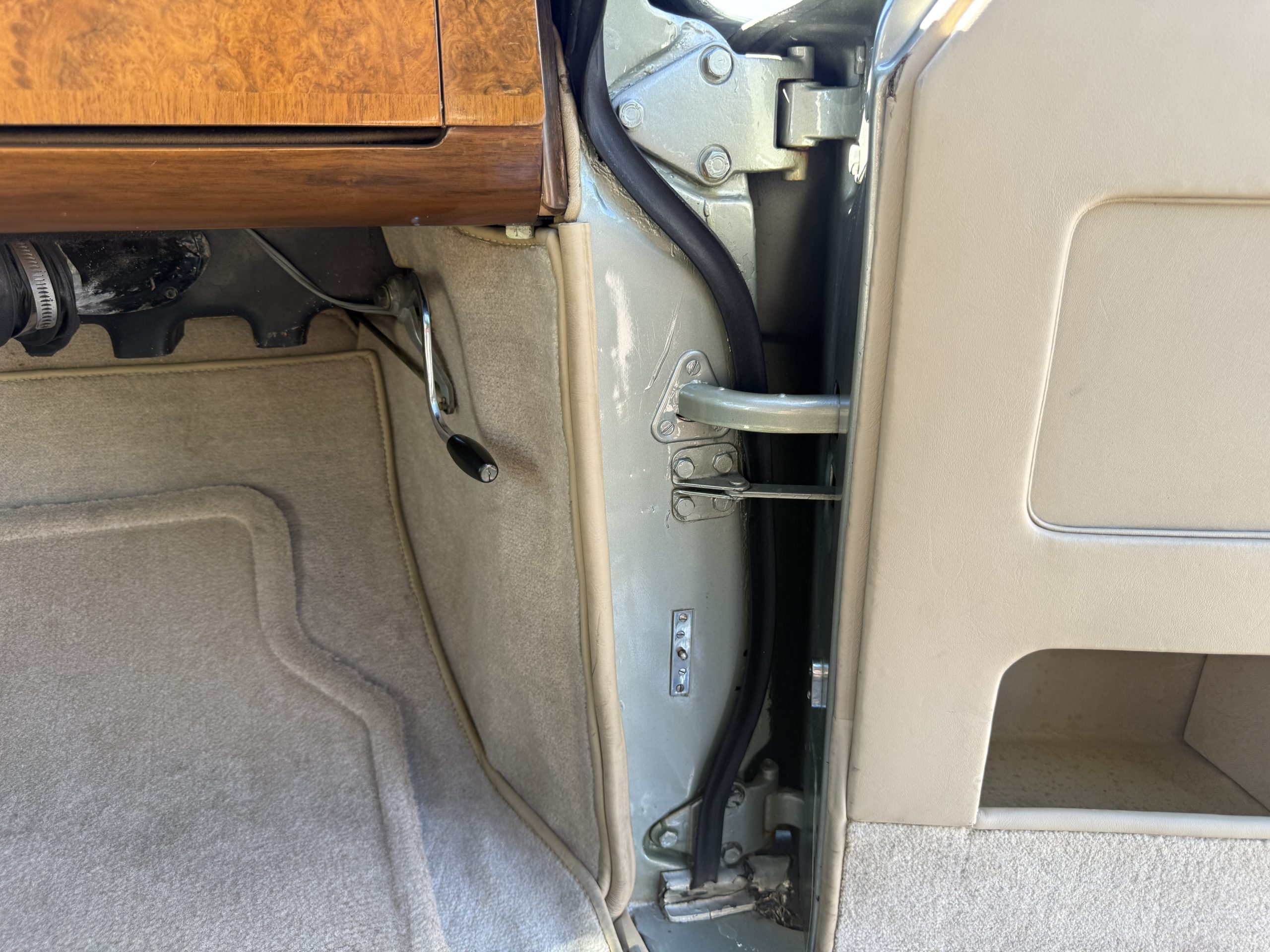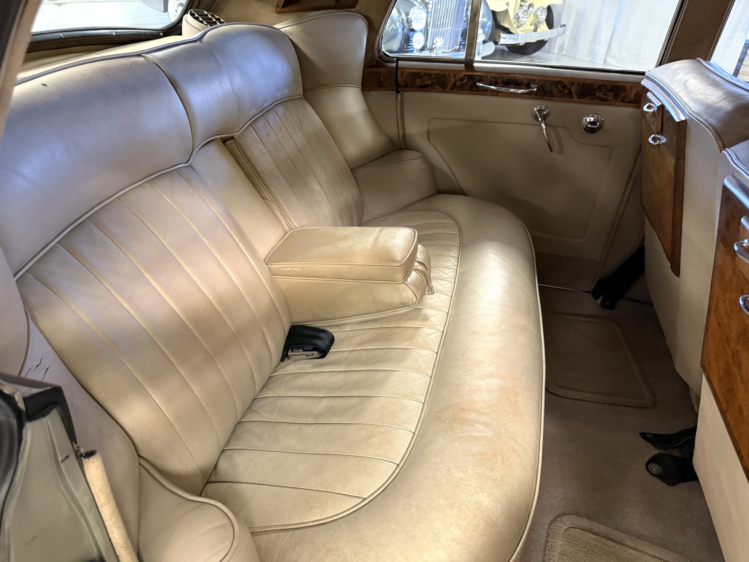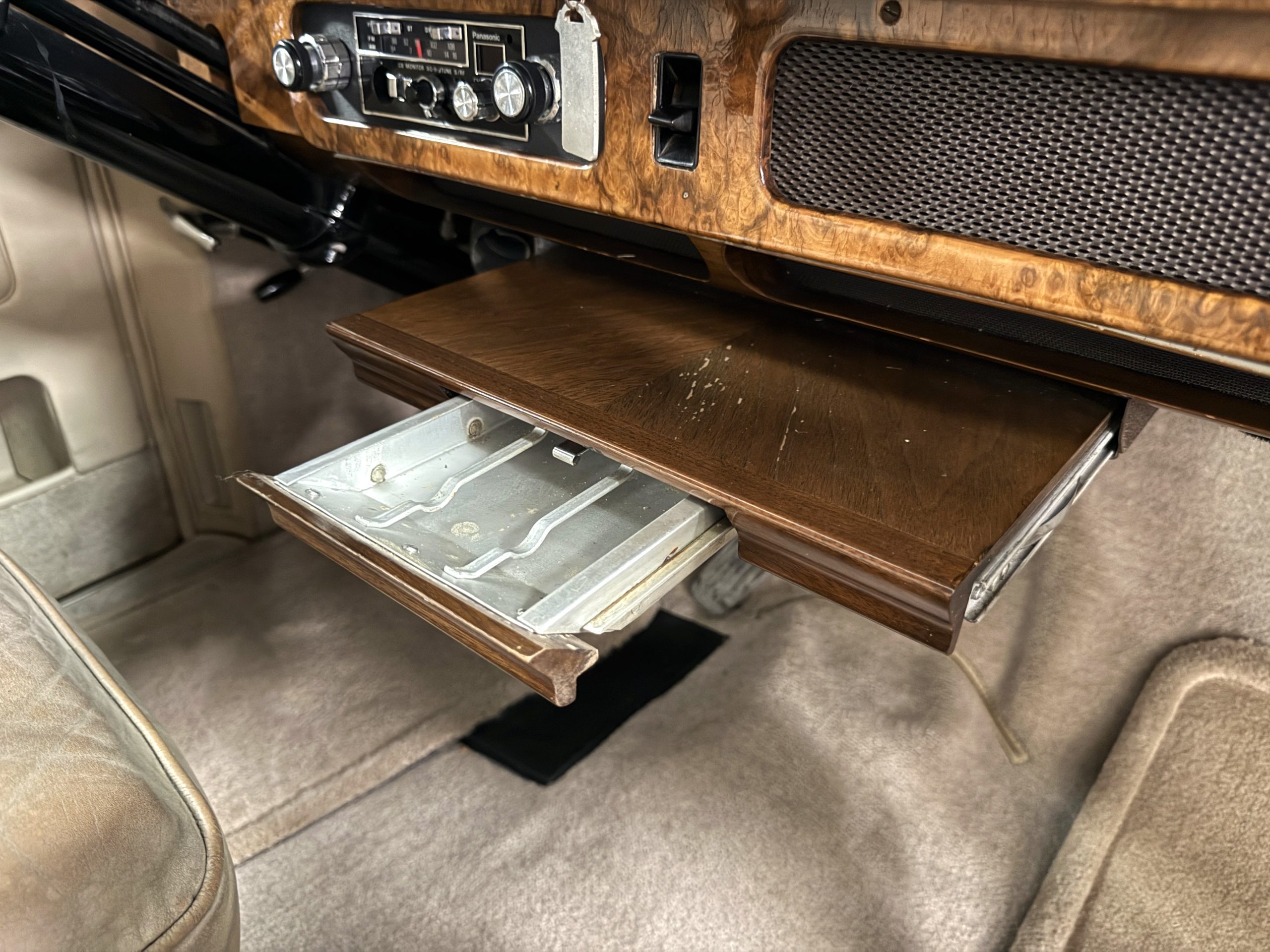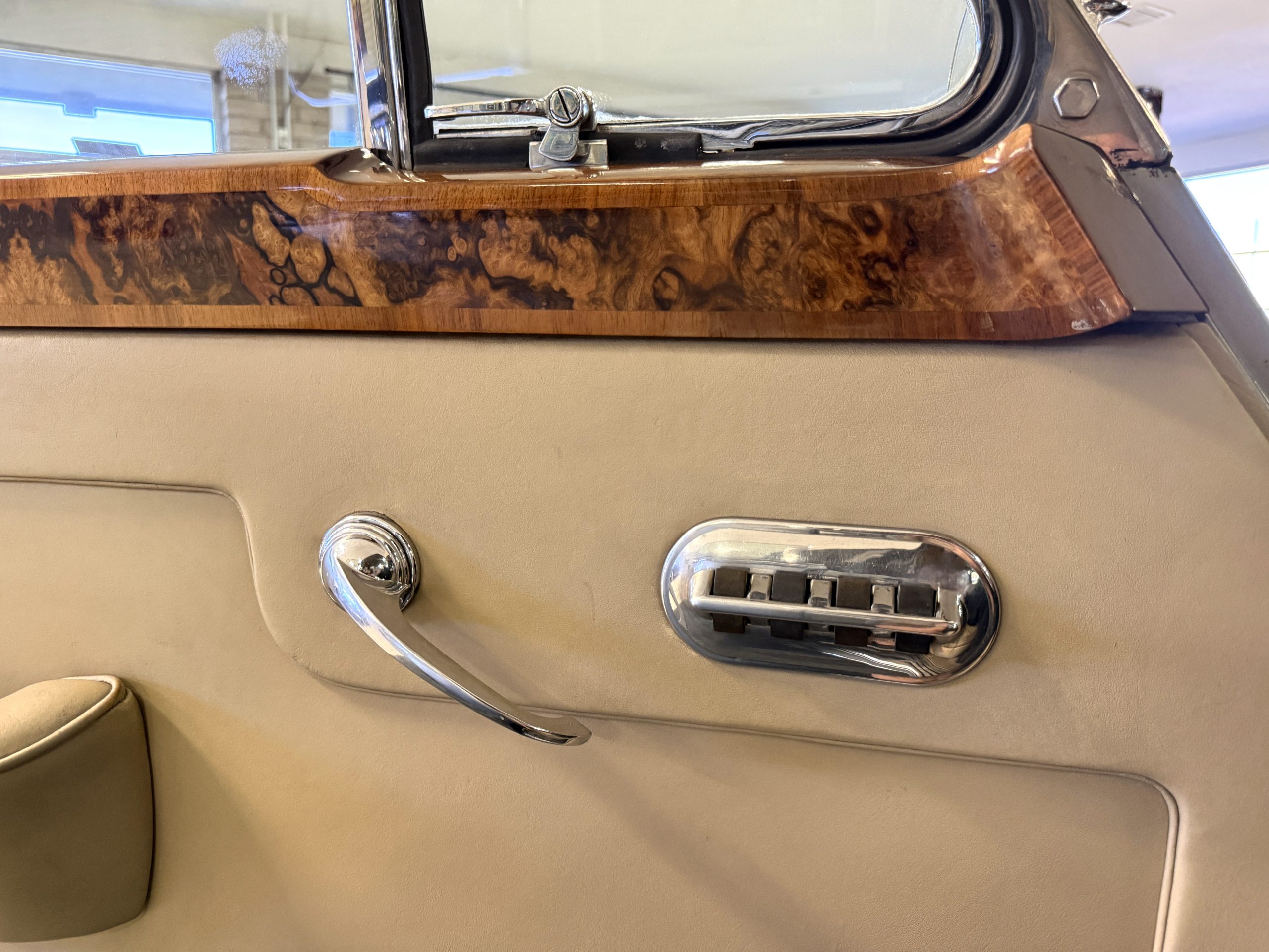 The Rolls-Royce interior is trimmed in original beige leather paired with beige wool carpeting that presents in good overall condition. The interior wood and carpeting were restored in 2001. There is wear consistent with age and use with one tear and some cracking in the driver’s side seat. This left-hand-drive U.S. example retains its original charm with burled walnut door cappings and dash panels that remain in great condition. Smiths instrumentation, factory amenities include air conditioning, power windows, and an AM/FM radio, while rear picnic tables finished in matching burl walnut continue to present in great condition and enhance the Silver Cloud’s traditional passenger comfort.