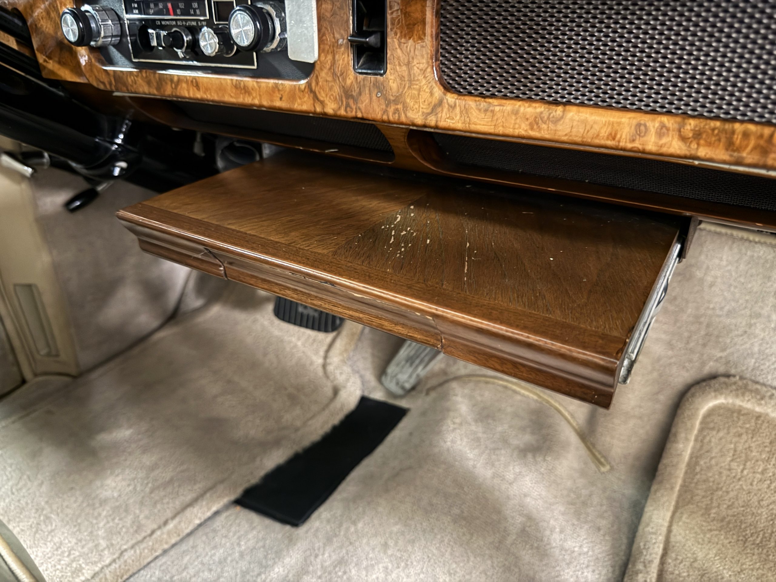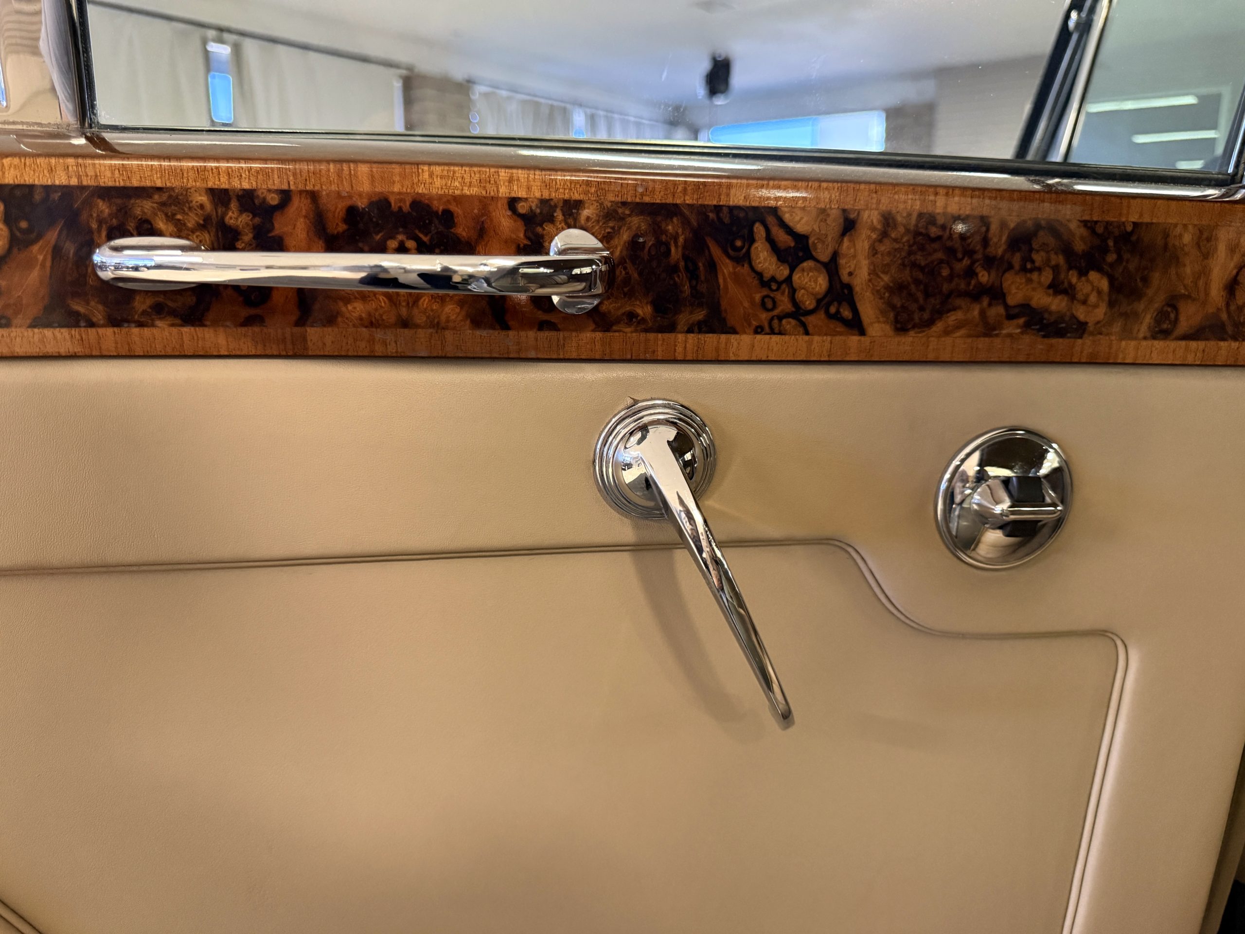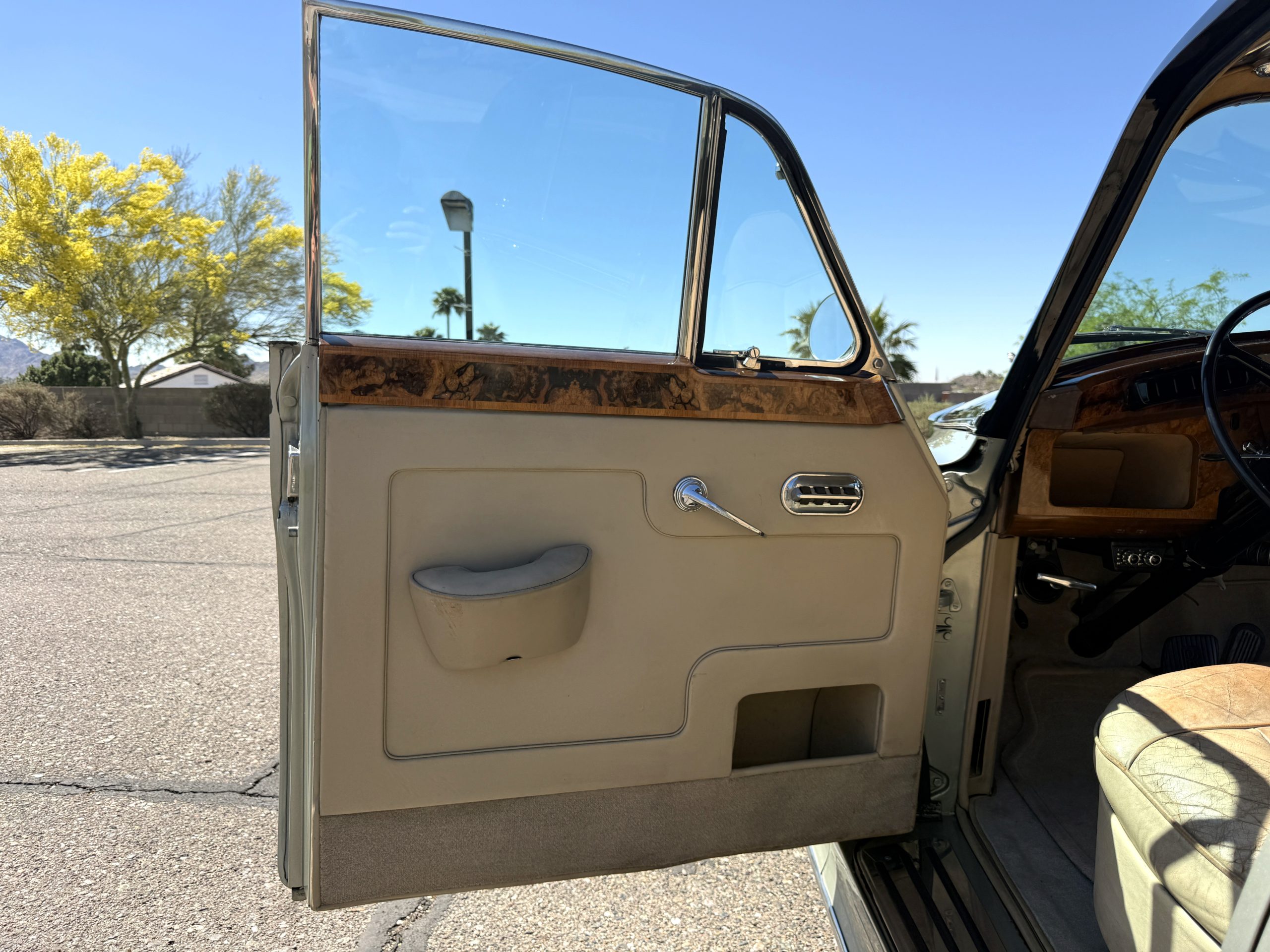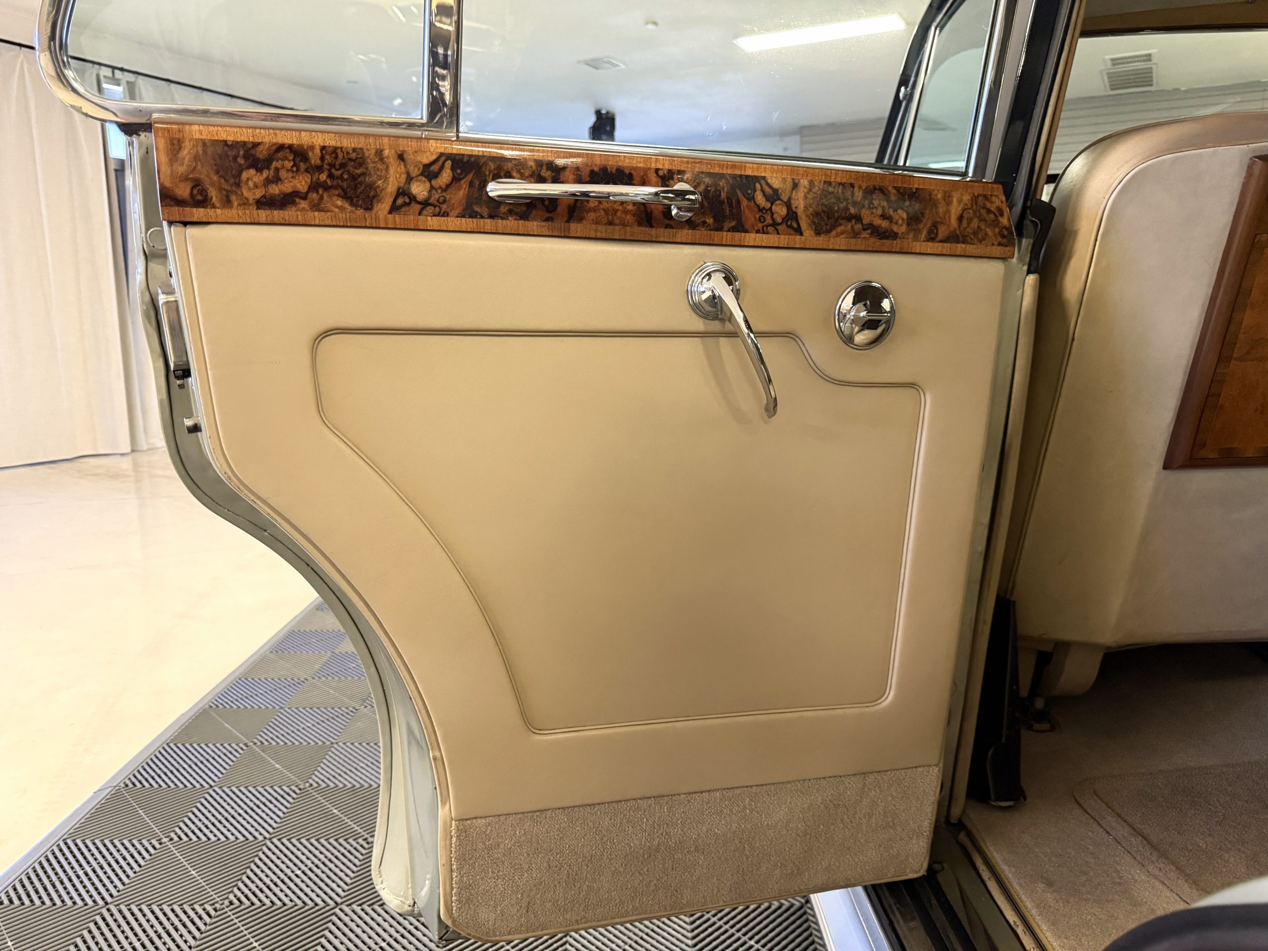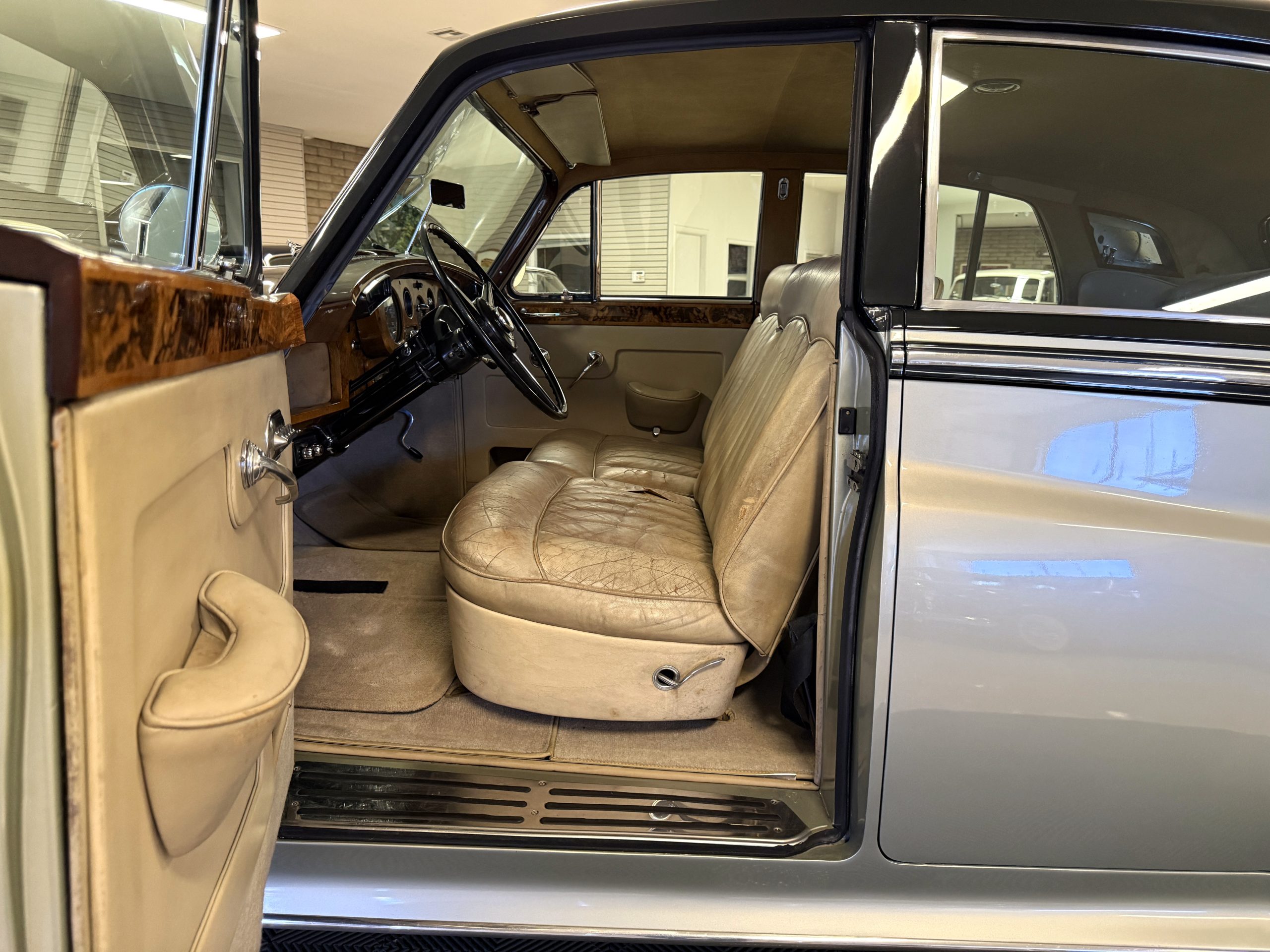 The Rolls-Royce interior is trimmed in original beige leather paired with beige wool carpeting that presents in good overall condition. The interior wood and carpeting were restored in 2001. There is wear consistent with age and use with one tear and some cracking in the driver’s side seat. This left-hand-drive U.S. example retains its original charm with burled walnut door cappings and dash panels that remain in great condition. Smiths instrumentation, factory amenities include air conditioning, power windows, and an AM/FM radio, while rear picnic tables finished in matching burl walnut continue to present in great condition and enhance the Silver Cloud’s traditional passenger comfort.