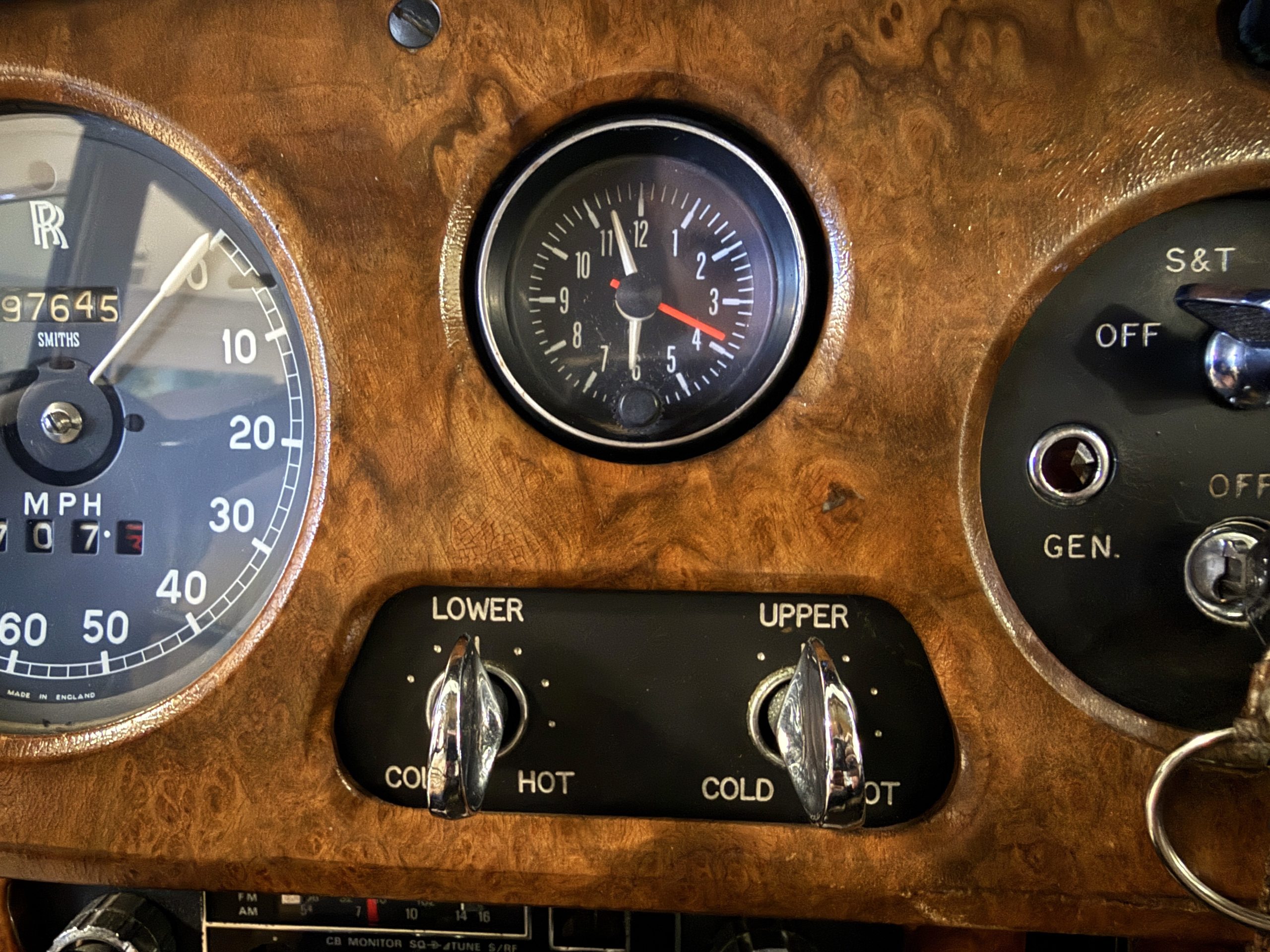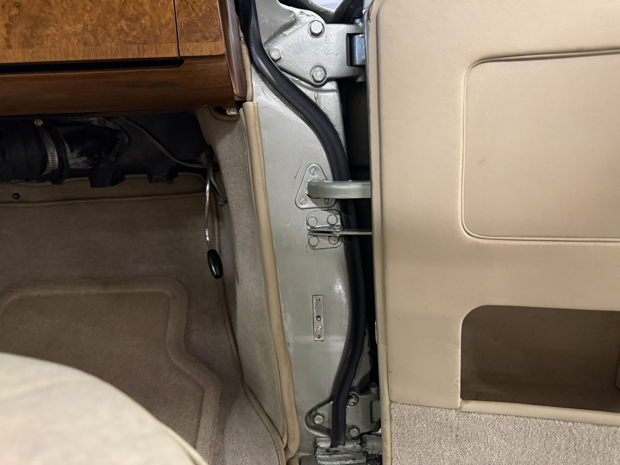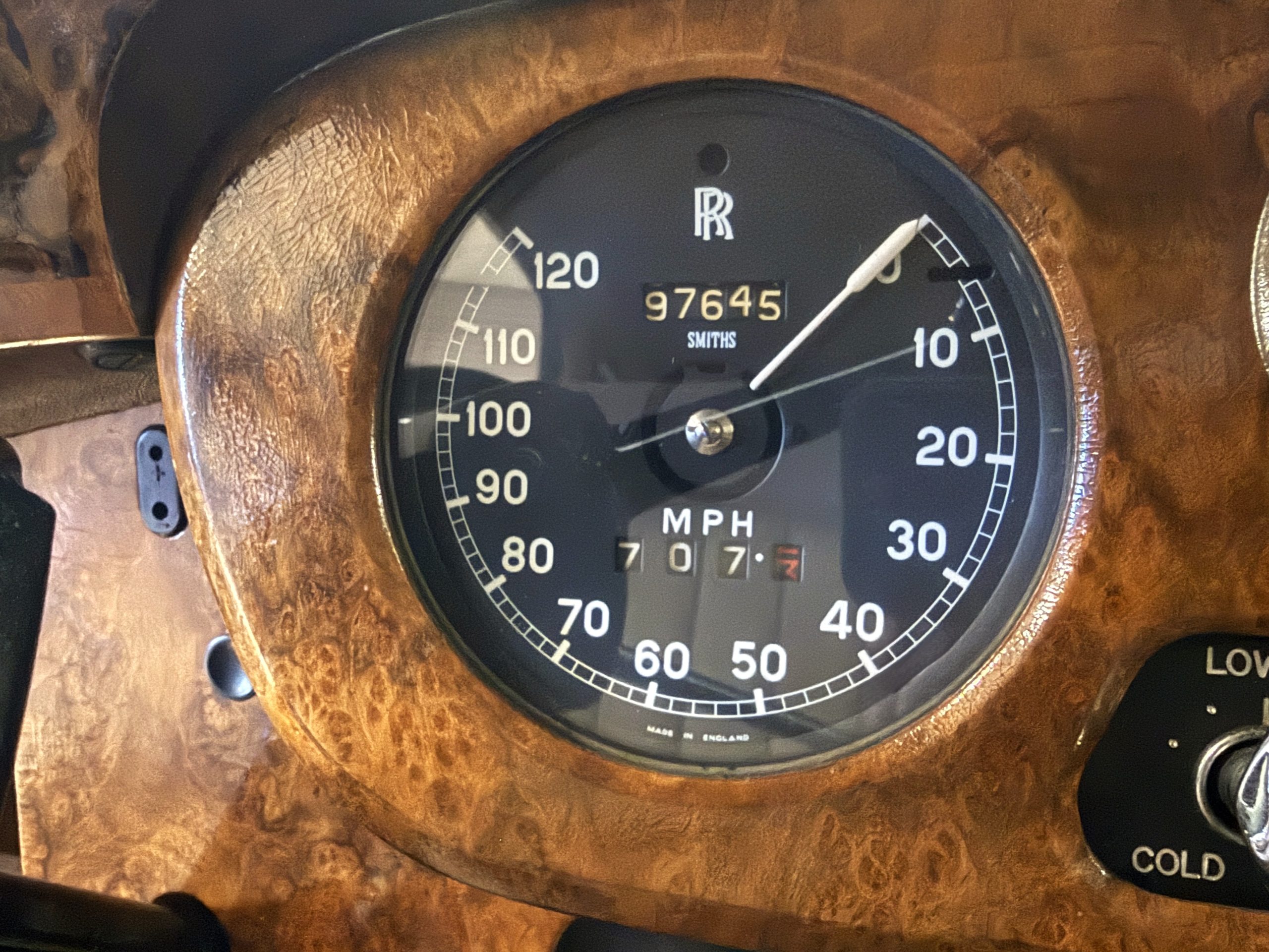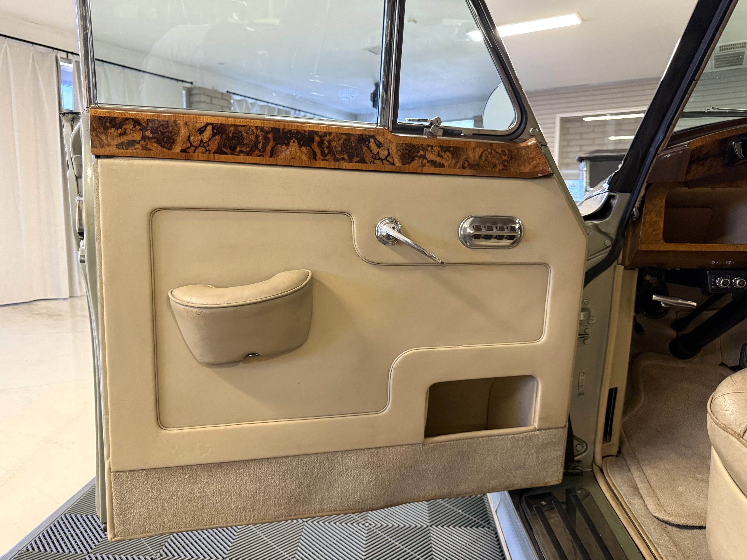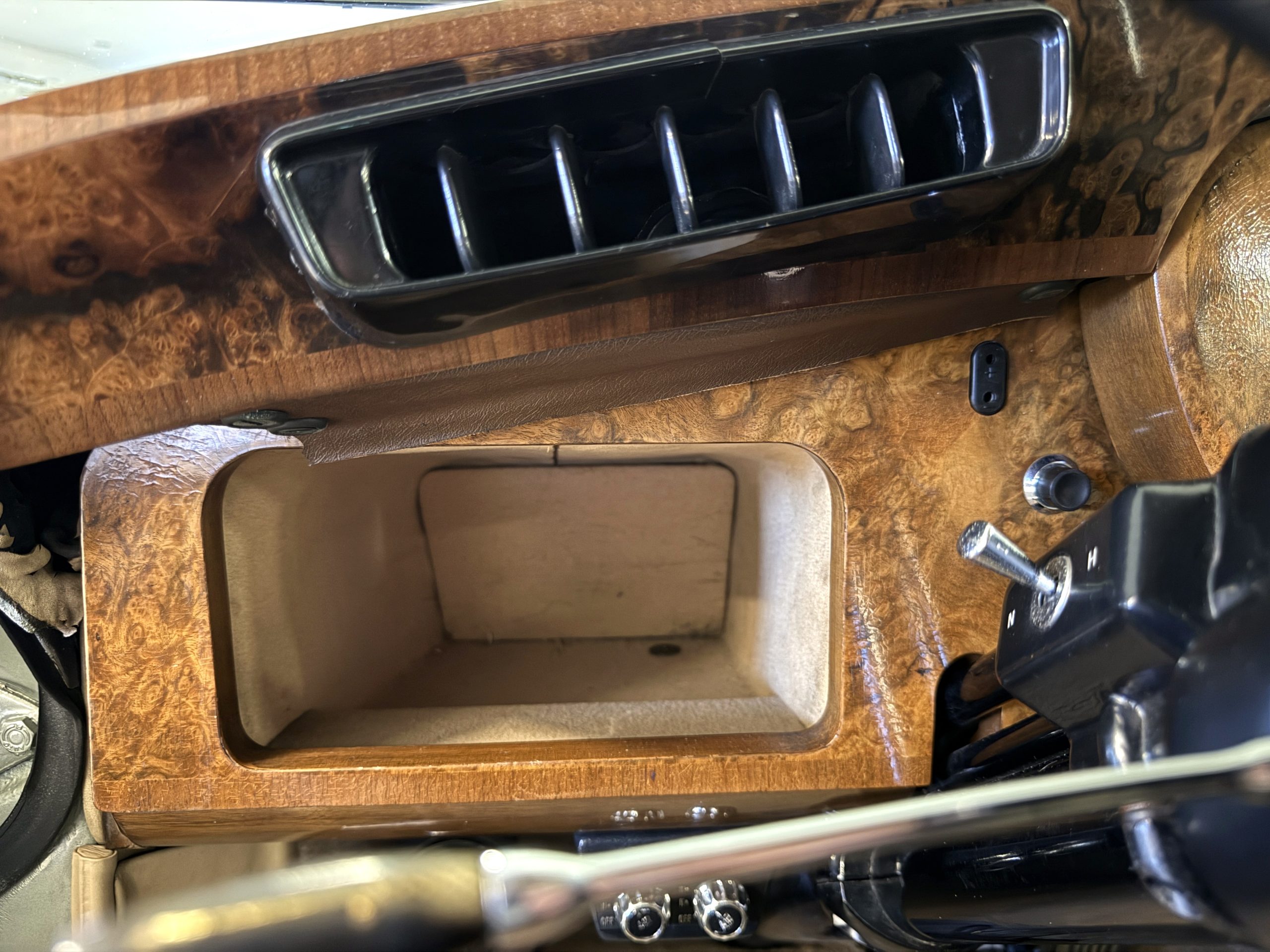 The Rolls-Royce interior is trimmed in original beige leather paired with beige wool carpeting that presents in good overall condition. The interior wood and carpeting were restored in 2001. There is wear consistent with age and use with one tear and some cracking in the driver’s side seat. This left-hand-drive U.S. example retains its original charm with burled walnut door cappings and dash panels that remain in great condition. Smiths instrumentation, factory amenities include air conditioning, power windows, and an AM/FM radio, while rear picnic tables finished in matching burl walnut continue to present in great condition and enhance the Silver Cloud’s traditional passenger comfort.