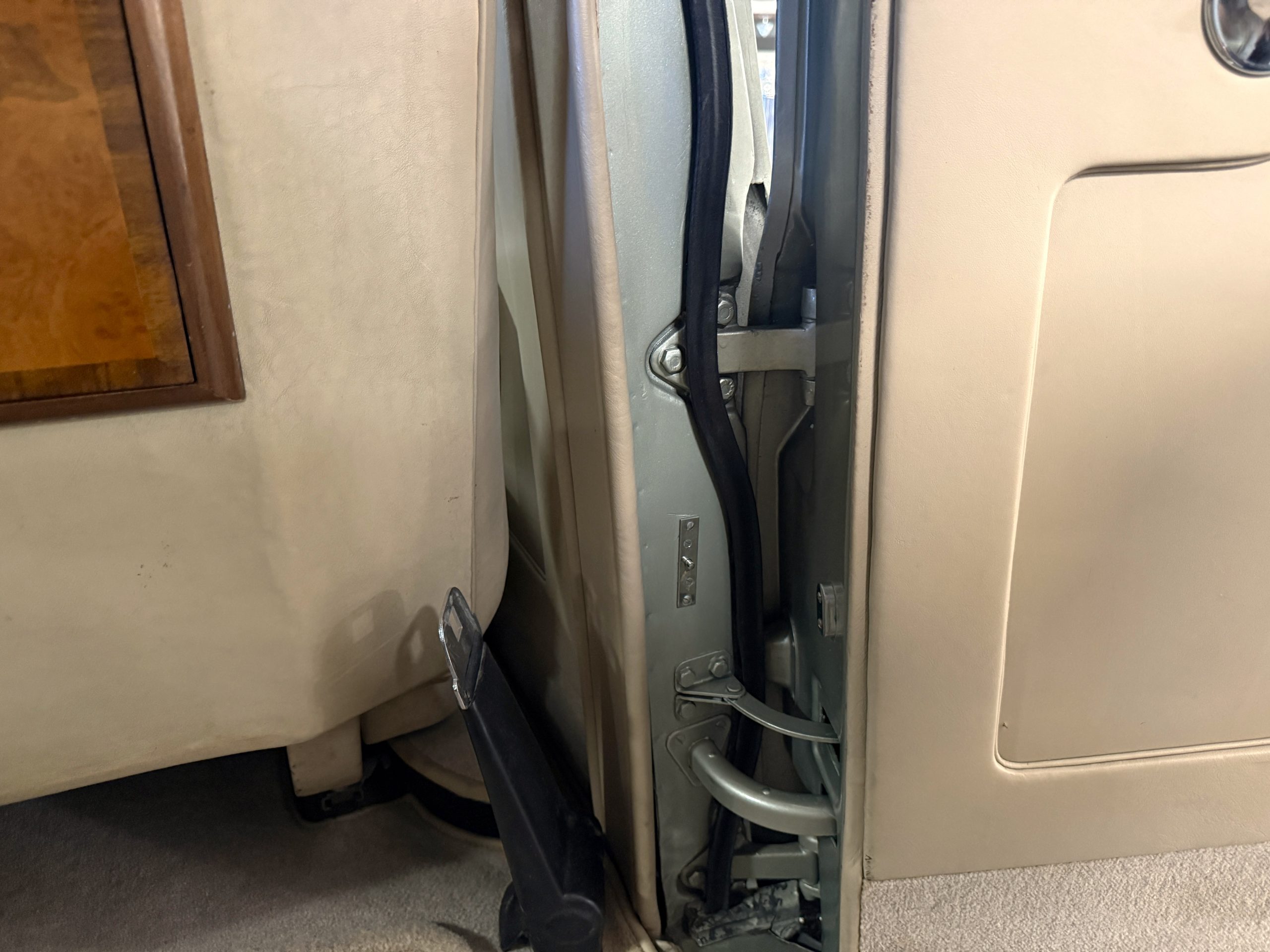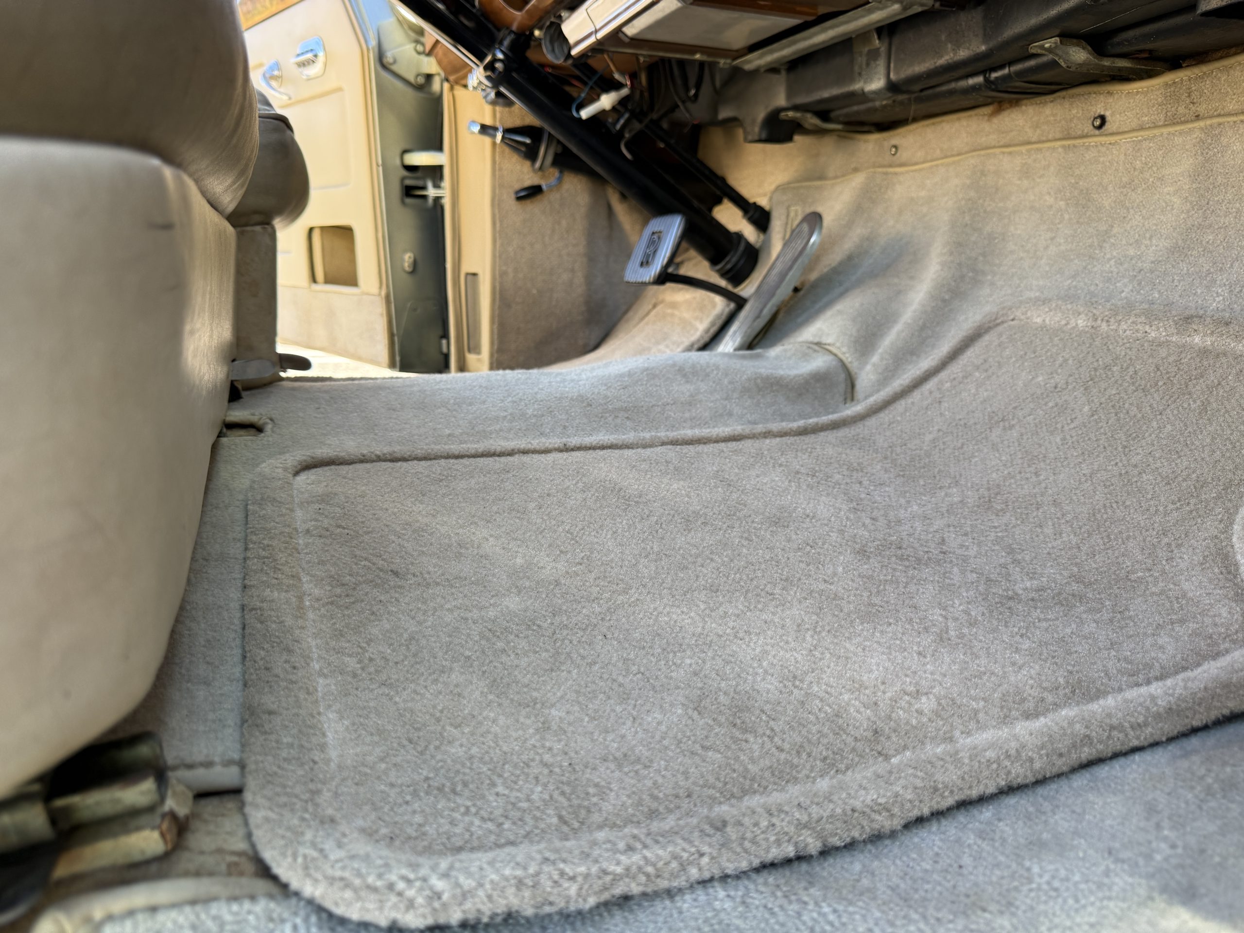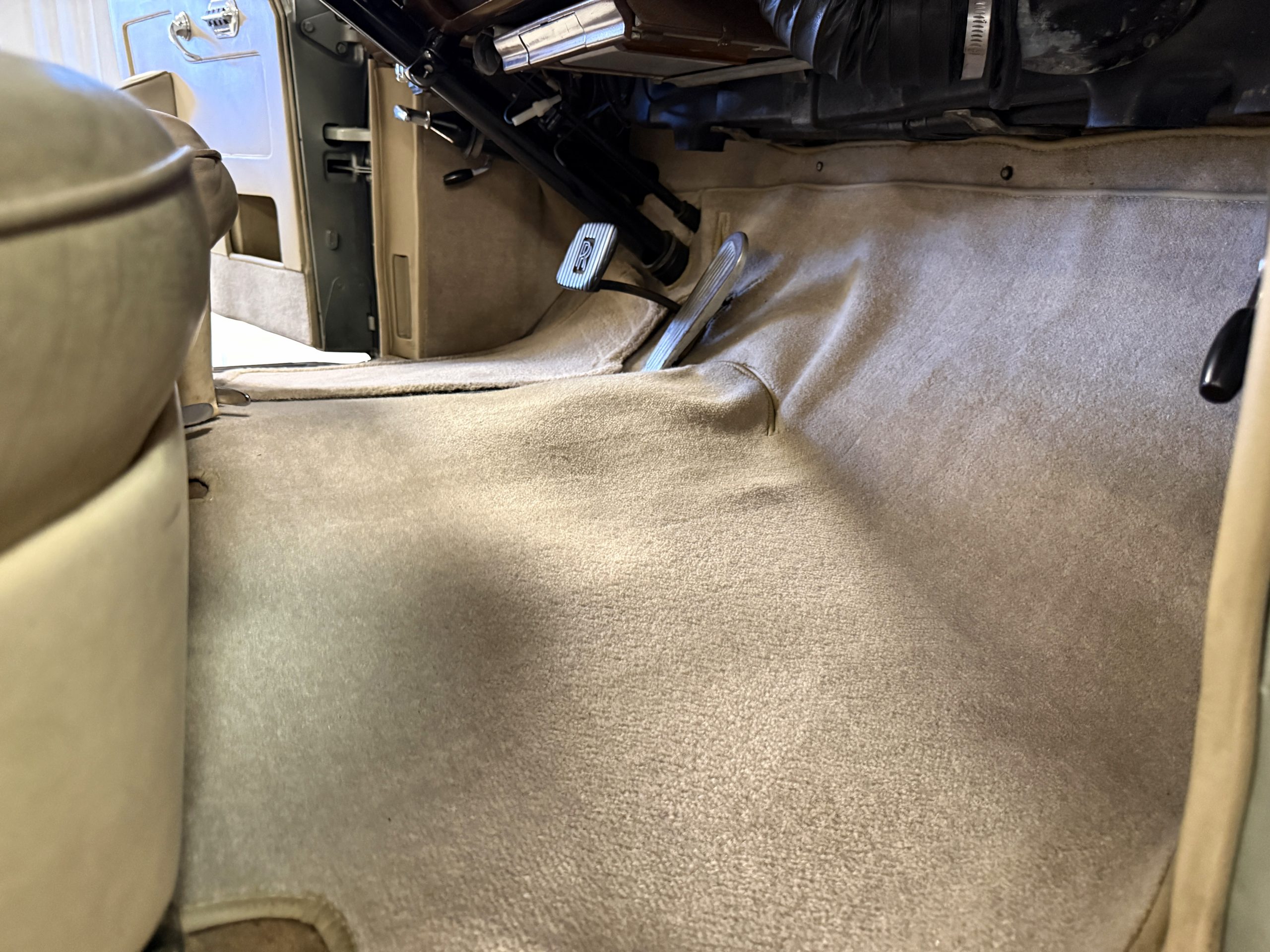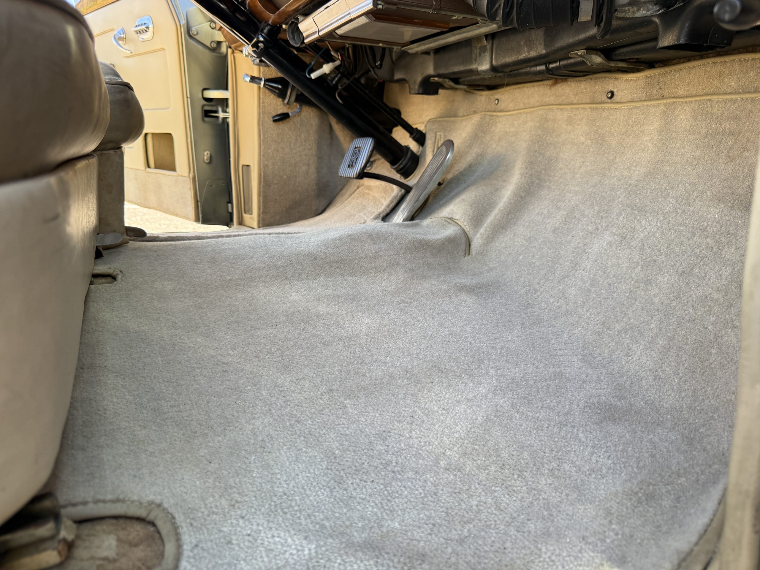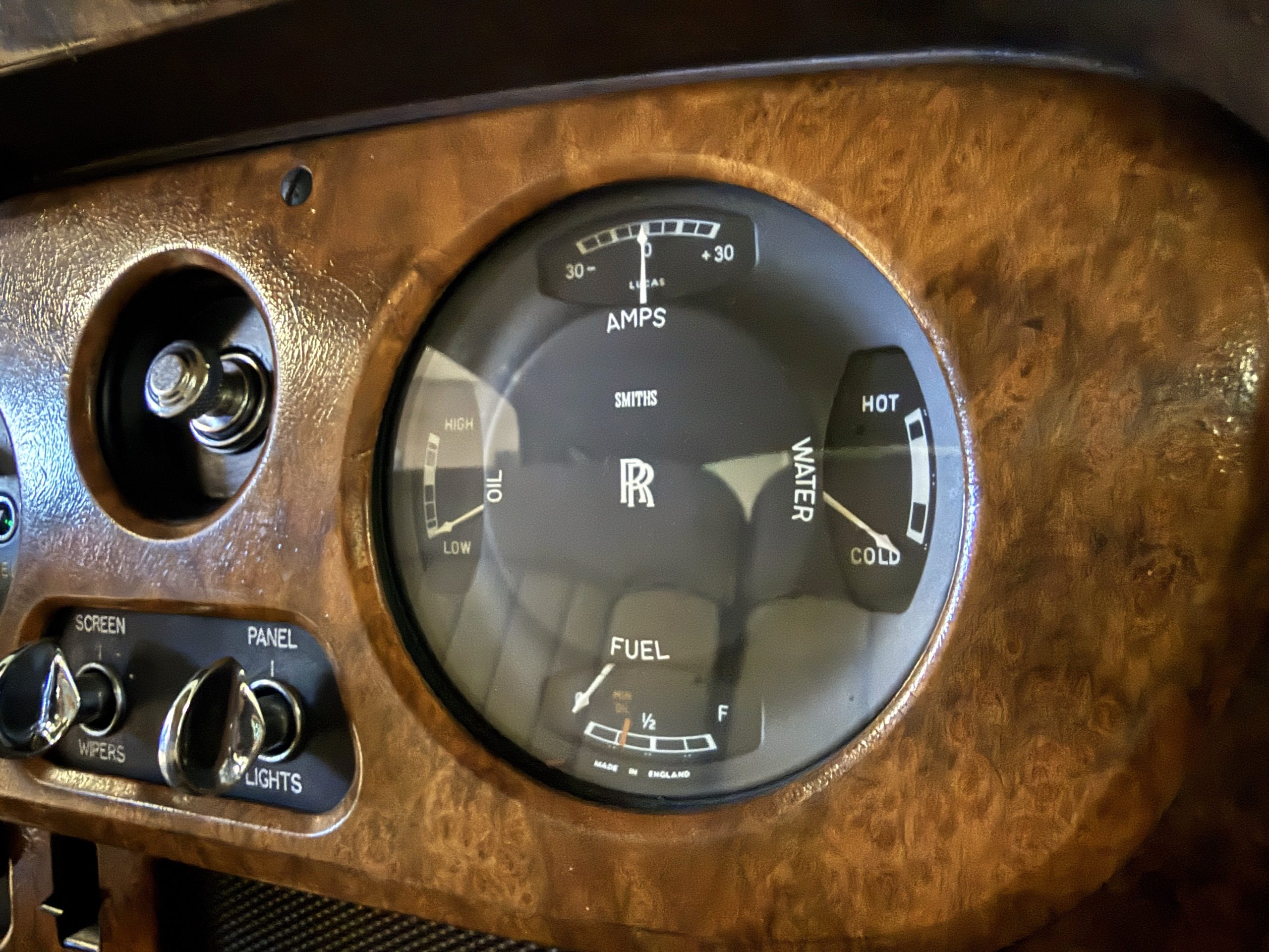 The Rolls-Royce interior is trimmed in original beige leather paired with beige wool carpeting that presents in good overall condition. The interior wood and carpeting were restored in 2001. There is wear consistent with age and use with one tear and some cracking in the driver’s side seat. This left-hand-drive U.S. example retains its original charm with burled walnut door cappings and dash panels that remain in great condition. Smiths instrumentation, factory amenities include air conditioning, power windows, and an AM/FM radio, while rear picnic tables finished in matching burl walnut continue to present in great condition and enhance the Silver Cloud’s traditional passenger comfort.