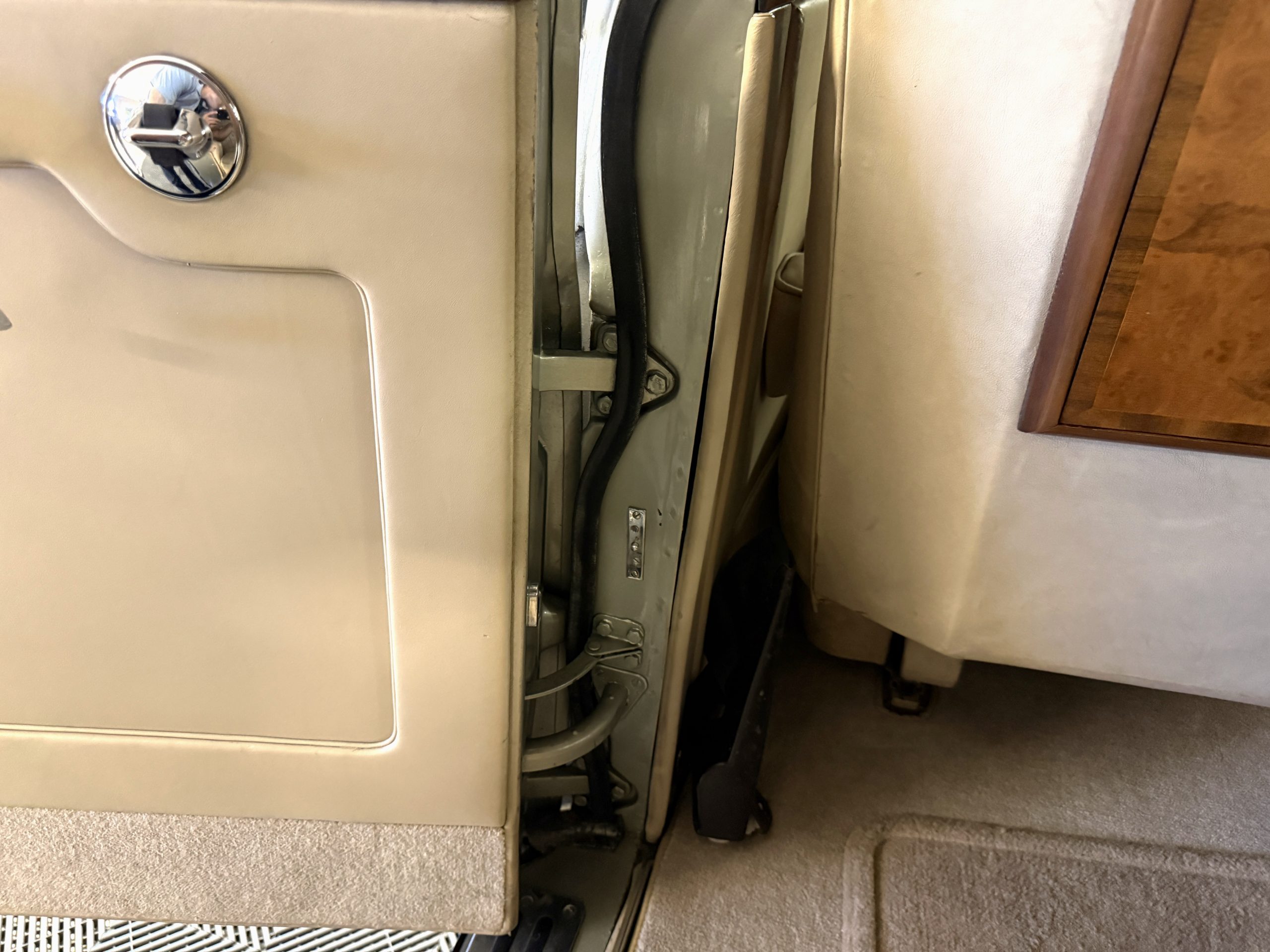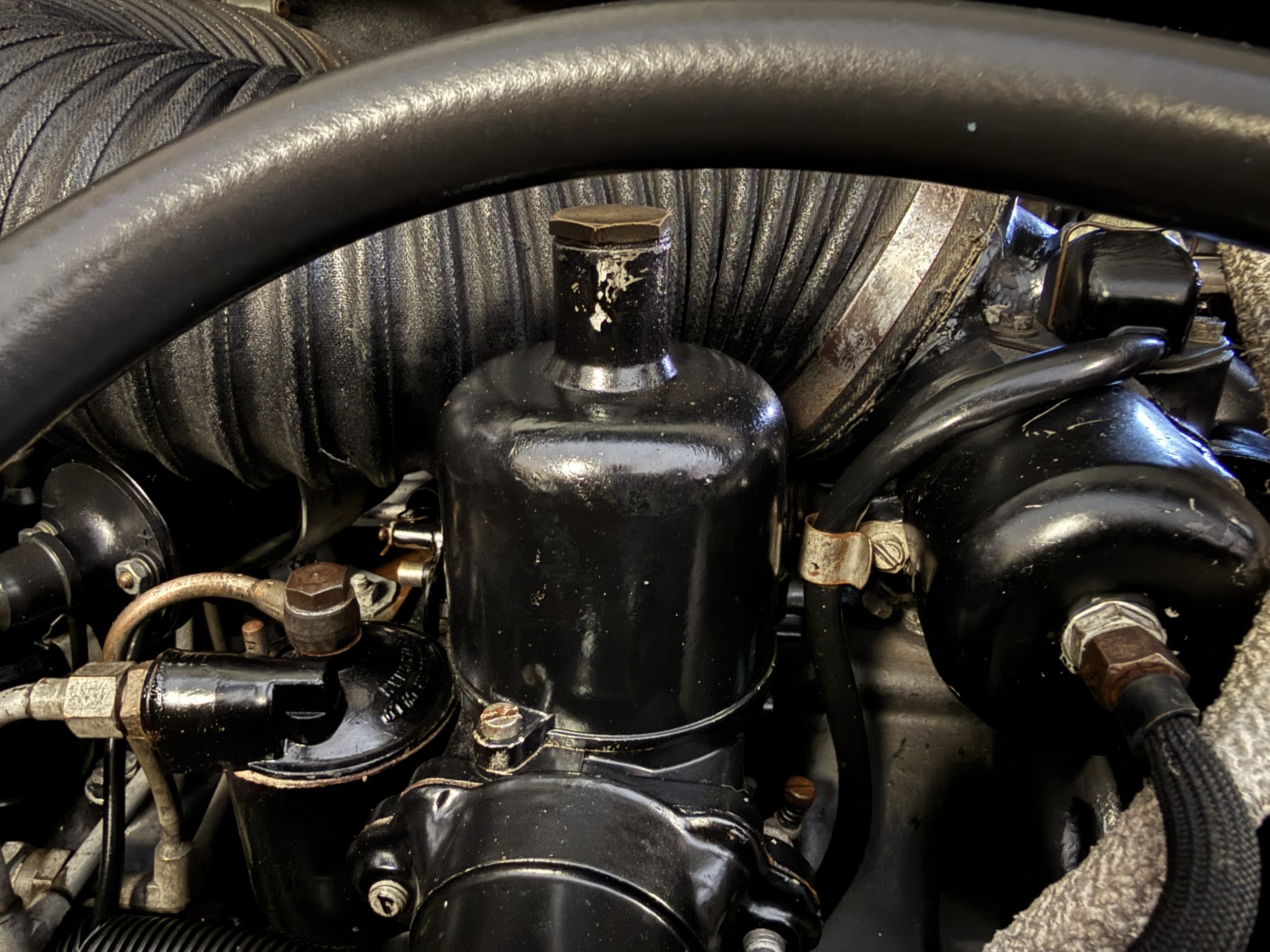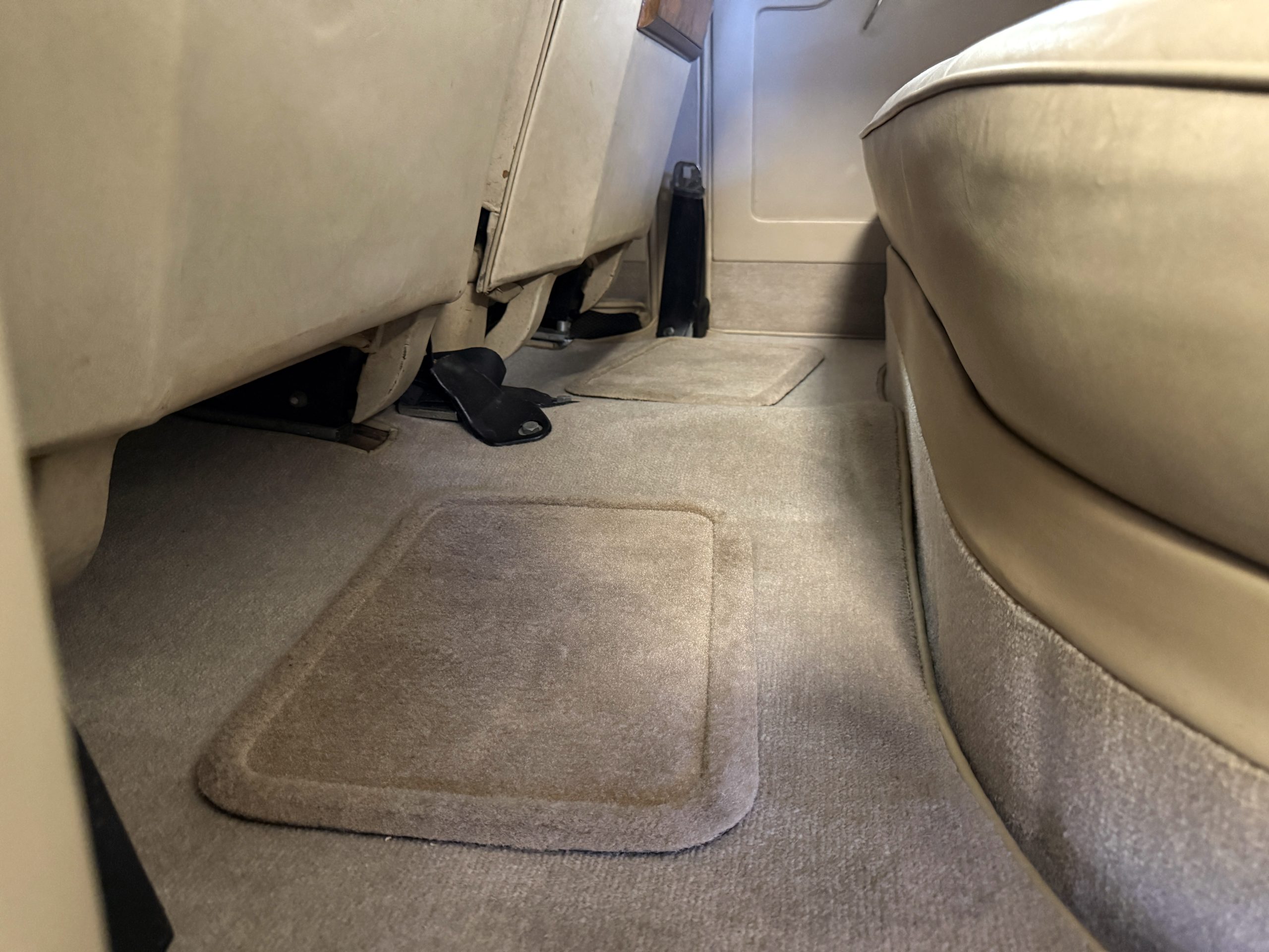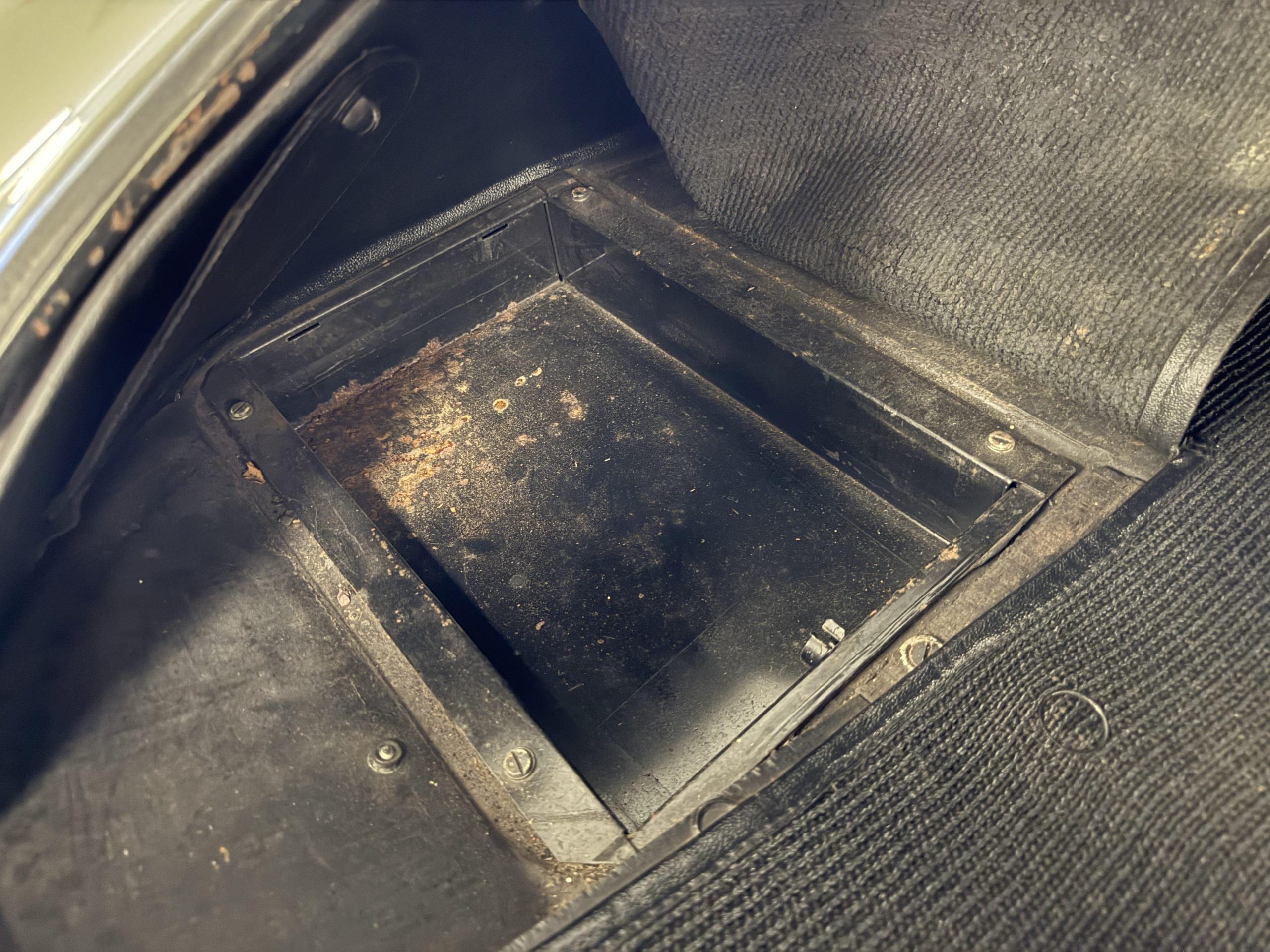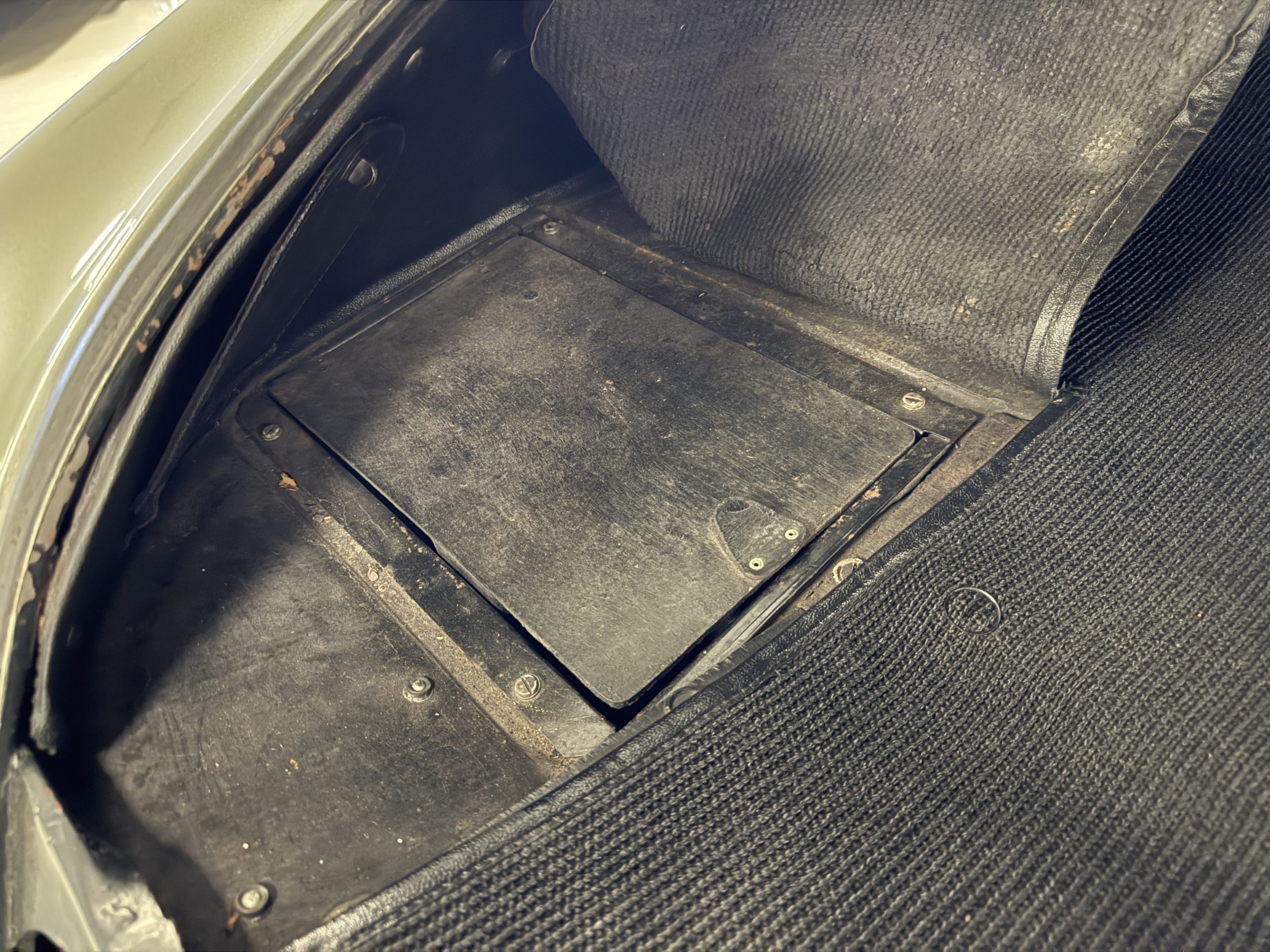 The Rolls-Royce interior is trimmed in original beige leather paired with beige wool carpeting that presents in good overall condition. The interior wood and carpeting were restored in 2001. There is wear consistent with age and use with one tear and some cracking in the driver’s side seat. This left-hand-drive U.S. example retains its original charm with burled walnut door cappings and dash panels that remain in great condition. Smiths instrumentation, factory amenities include air conditioning, power windows, and an AM/FM radio, while rear picnic tables finished in matching burl walnut continue to present in great condition and enhance the Silver Cloud’s traditional passenger comfort.