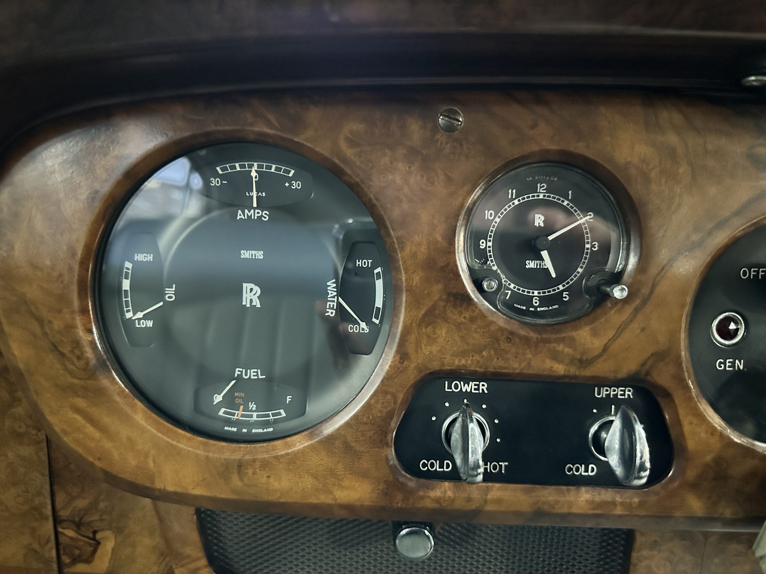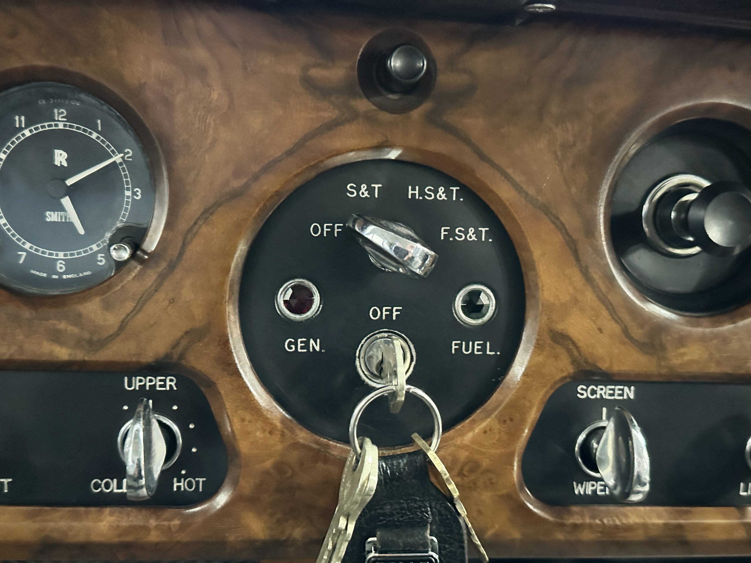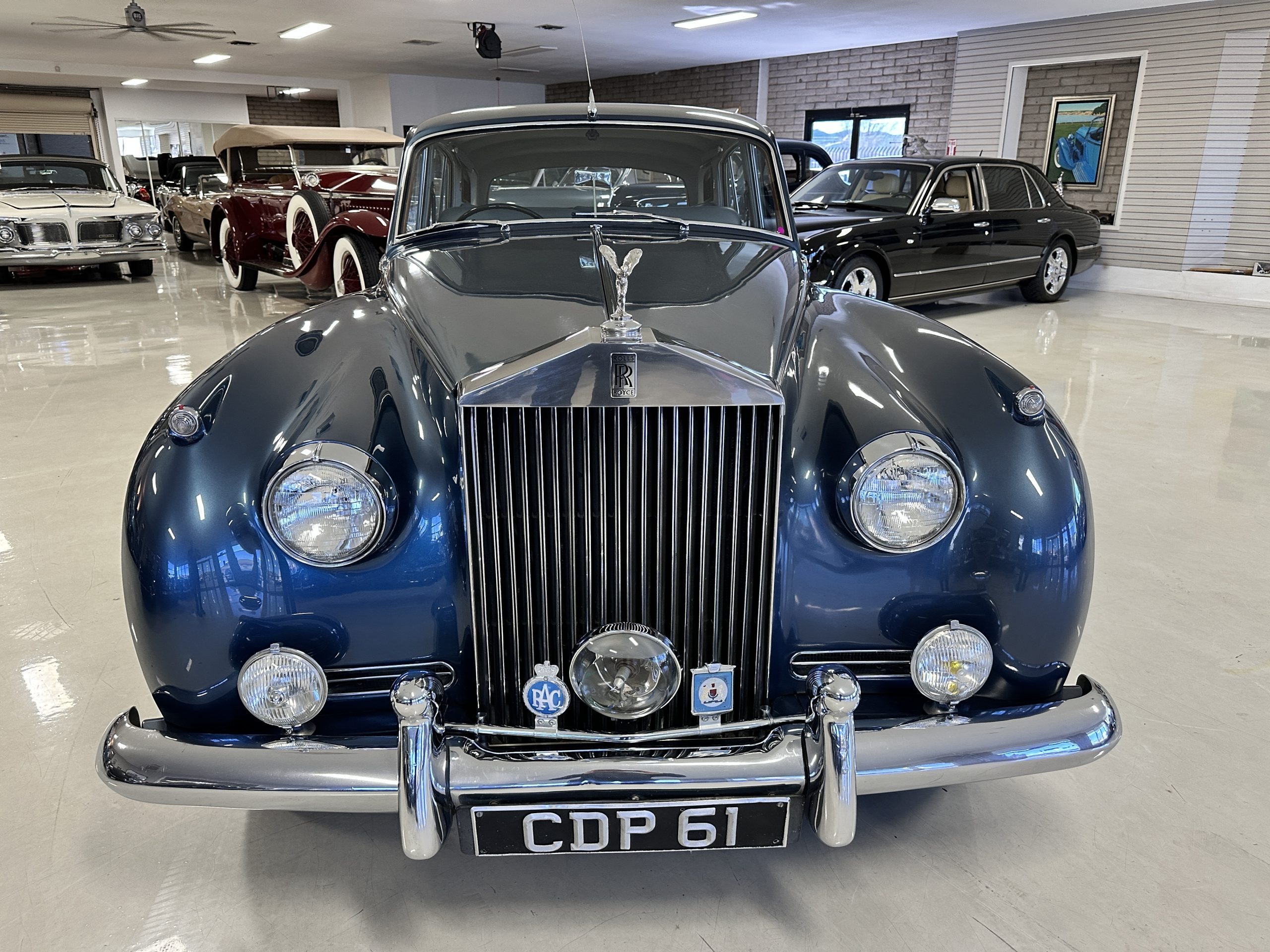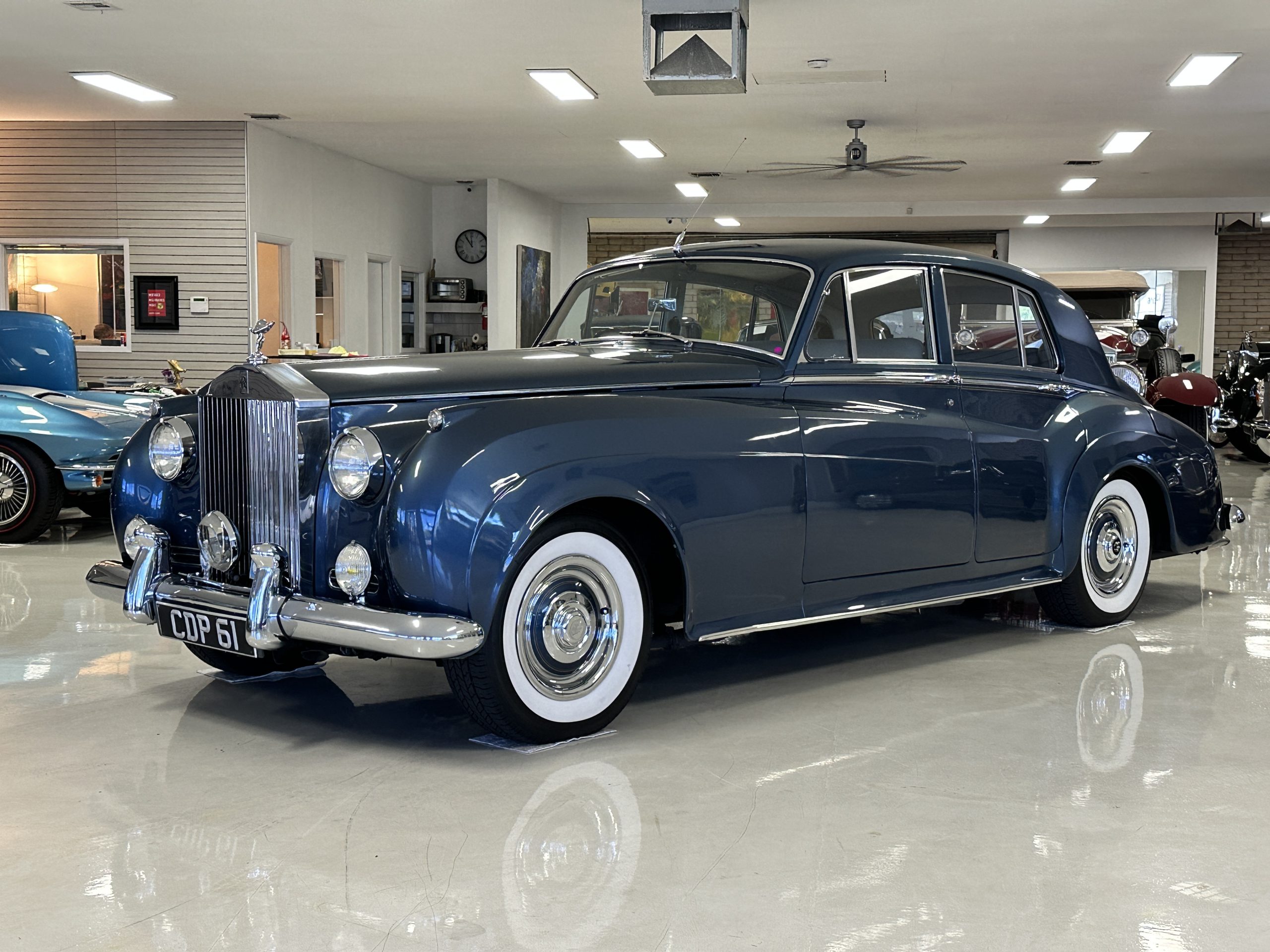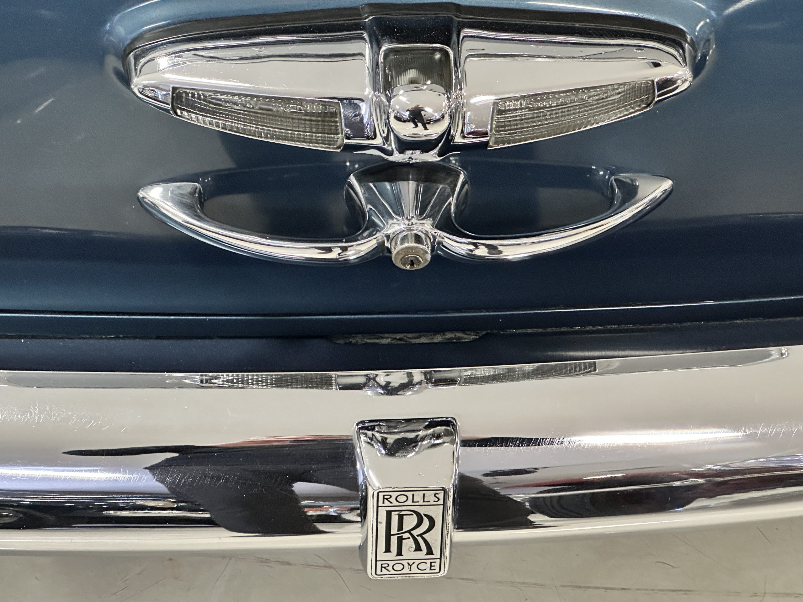 This Cloud was sent from the factory to Harold Radford Coachbuilders on September 22, 1961. Harold Radford was a custom coachbuilder that specialized in Rolls-Royce, Bentley and Mini’s. His coachbuilders would customize these cars bespoke for his well to do clientele. The “Countryman” Adaptations were designed to make longer tours more enjoyable and to make the cars more useful in the countryside. This Clouds adaptations were completed by Radford by January 11, 1961. Her original owner was a principal of C.D. Productions Ltd in London. The Radford adaptations on her include the rare and desirable full picnic table and cushions for the boot, fold-down rear seats with a full vanity for the rear armrest (including a swiveling beveled mirror, combs, notebook and a cigarette case), three reading lights, a locking cabinet with a tea kettle, cups and other items, a bud vase, and a mirror and two sunglass cases built into the sun visors, seat belts, and a rare Rotaflare swiveling driving lamp. This Radford was built for touring and enjoying life to the fullest.