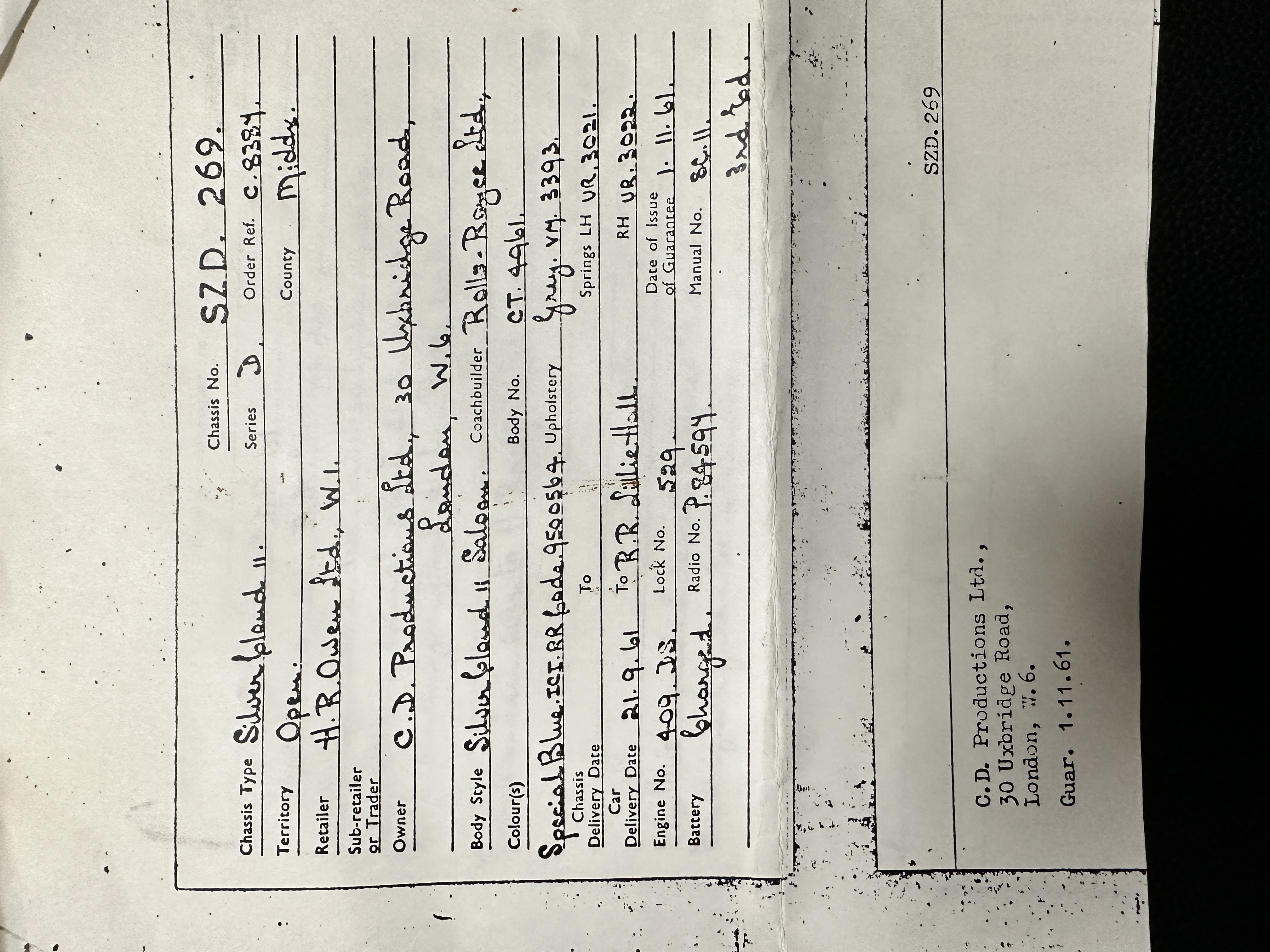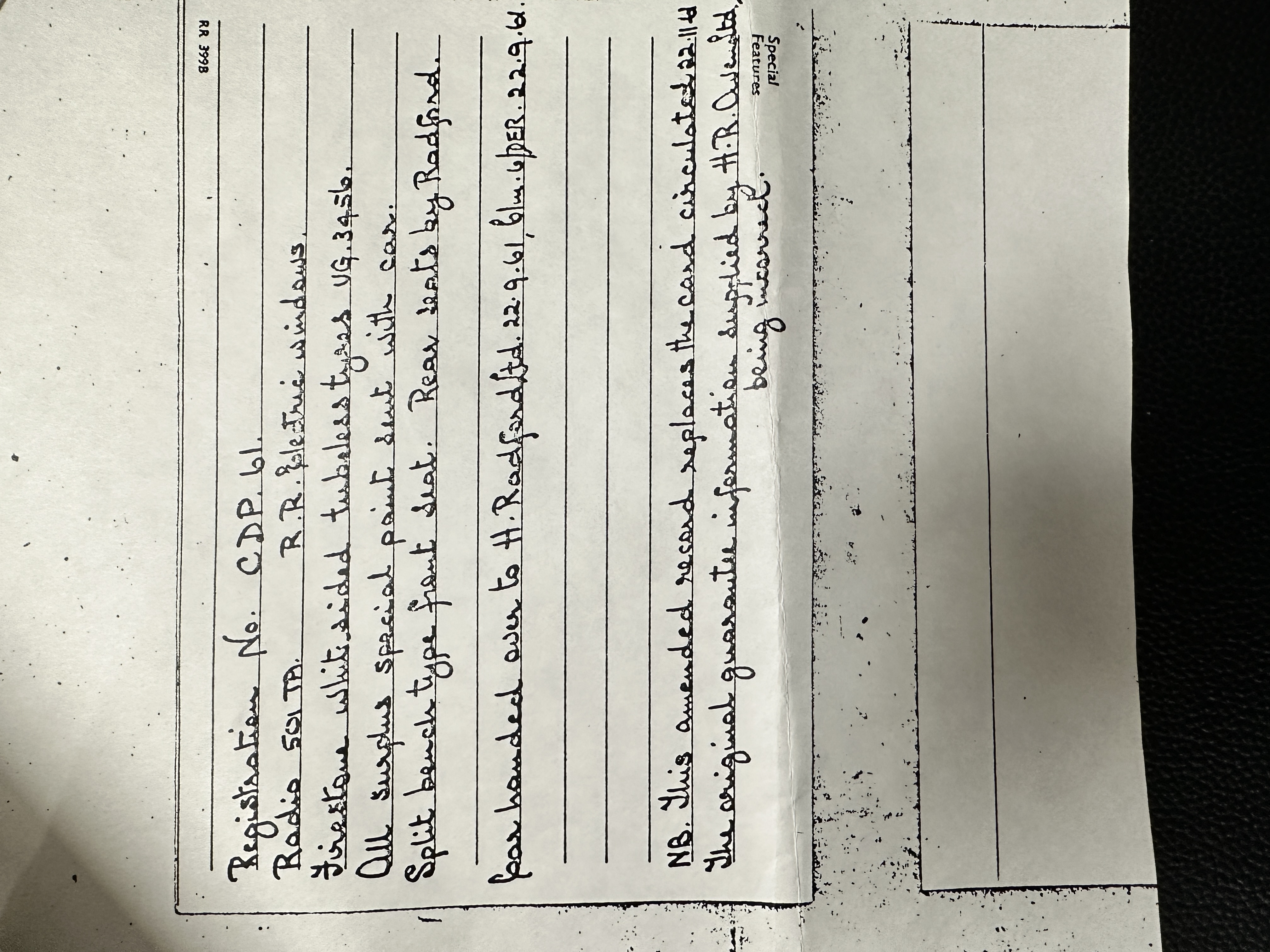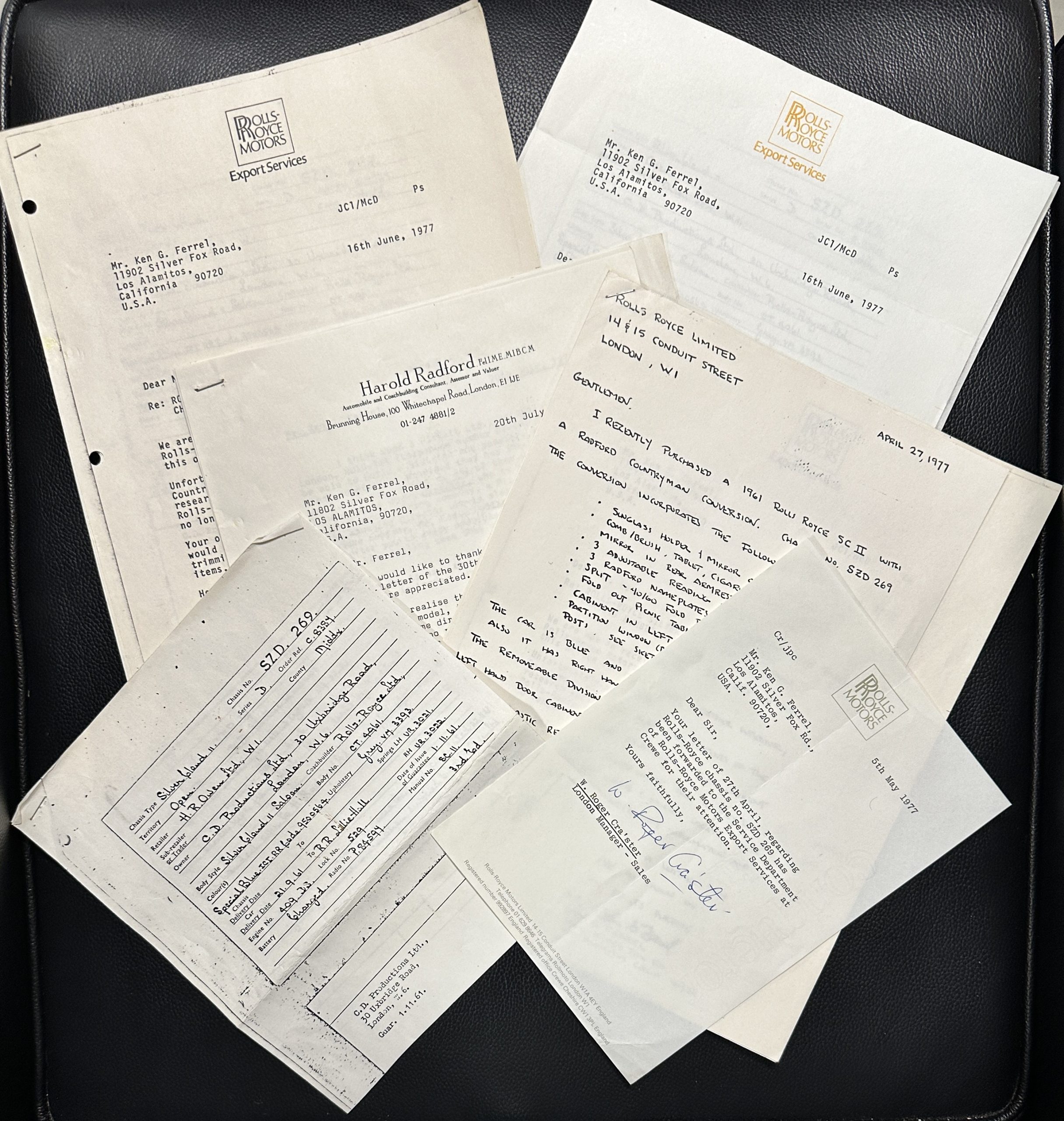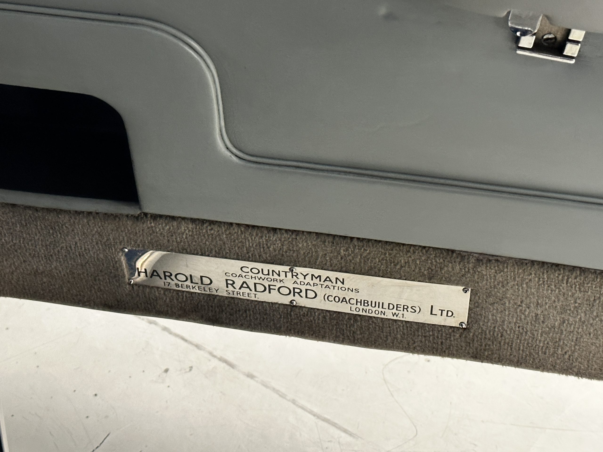 This Radford comes complete with most all of its large and small tools as well as some extra parts. There is an amazing file history with signed letters from Harold Radford, Rolls-Royce and others that are wonderful historical treasures. Further, Mr. Ferrel has a service log with decades worth of service notes for the Cloud. Also included is its original owner’s manual and a Radford sales brochure.