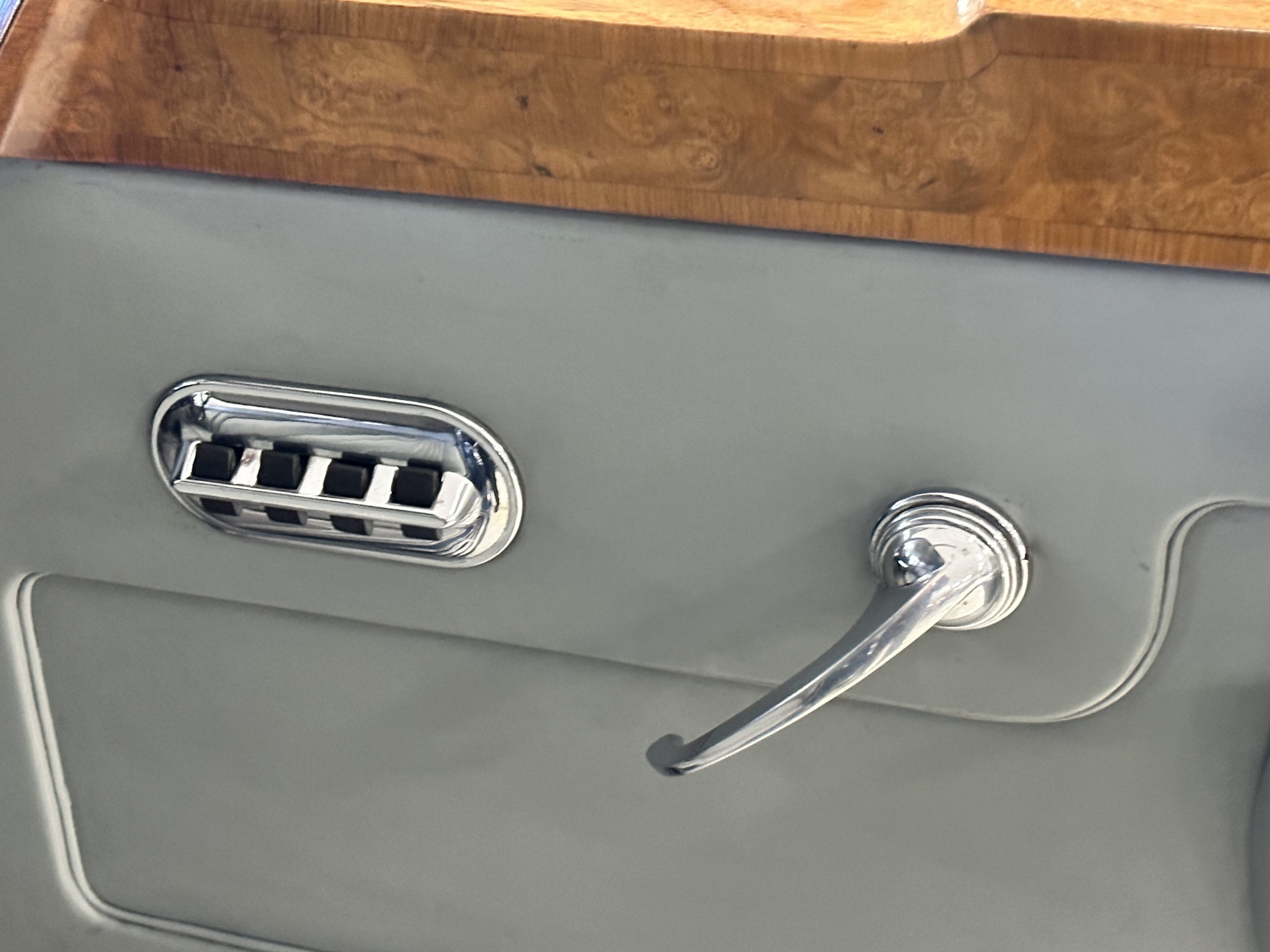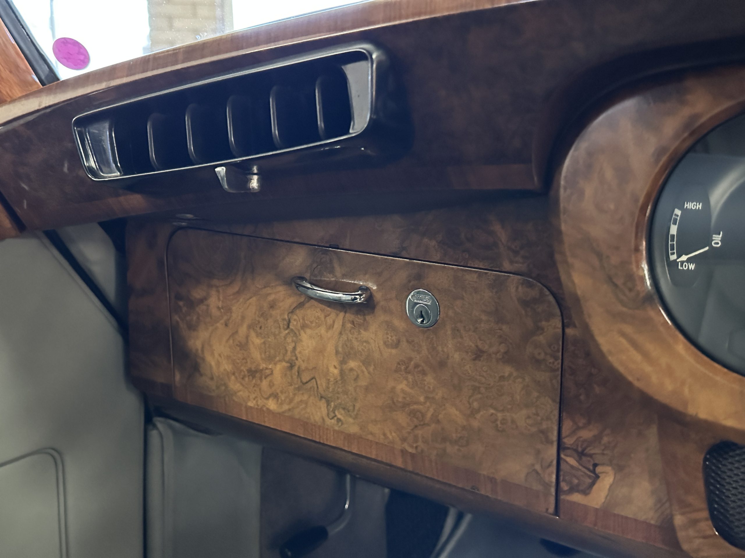 The Radford modifications are what makes this example so incredibly collectable and rare. As mentioned earlier, the rear seats fold, the rear center armrest vanities, the bud vase, seat belts, a locking cabinet with a tea kettle, etc, sunglass cases, reading lights, seat belts, etc. It also features power windows and a hidden more modern stereo that can be used with your phone or iPad.