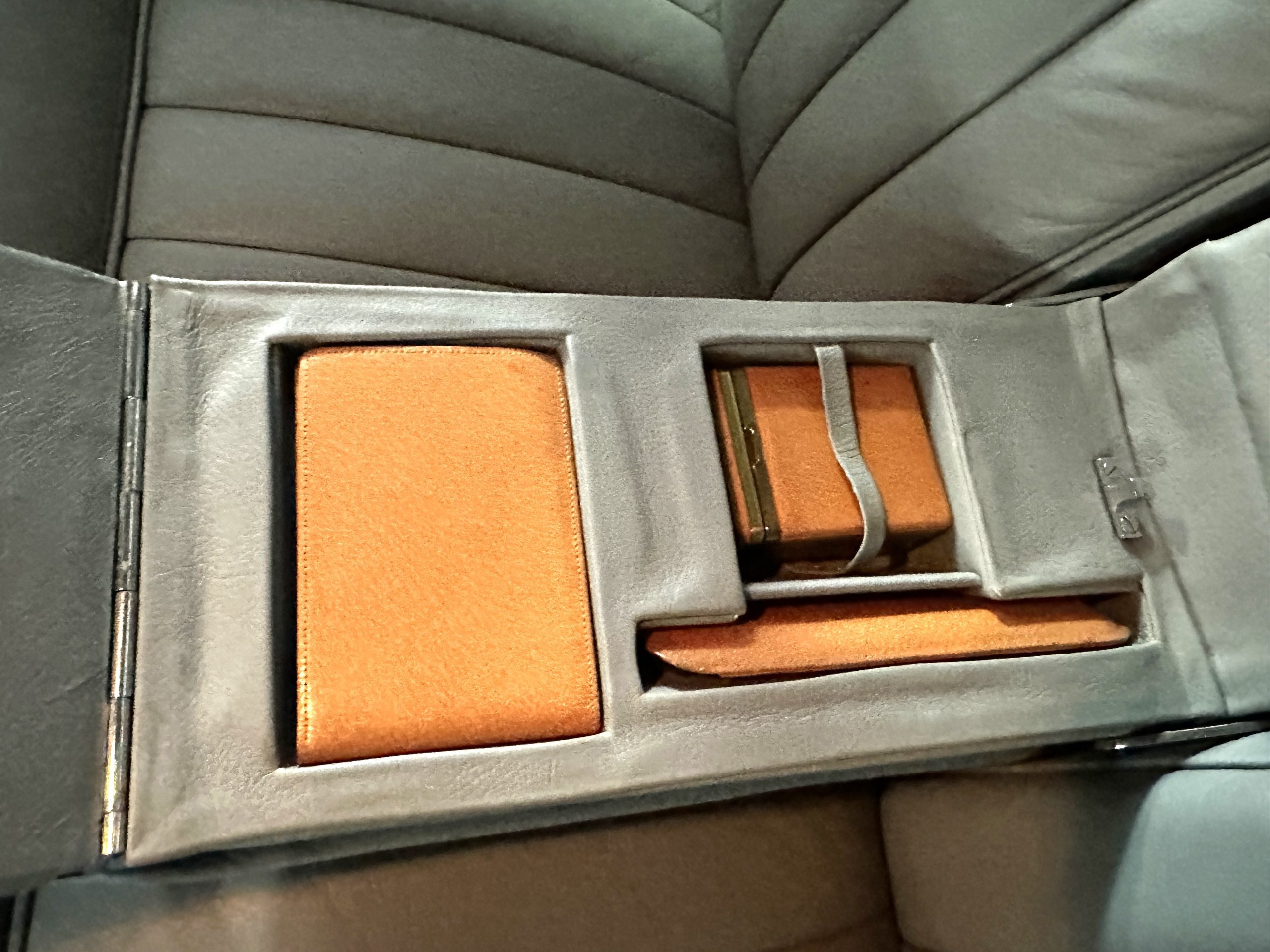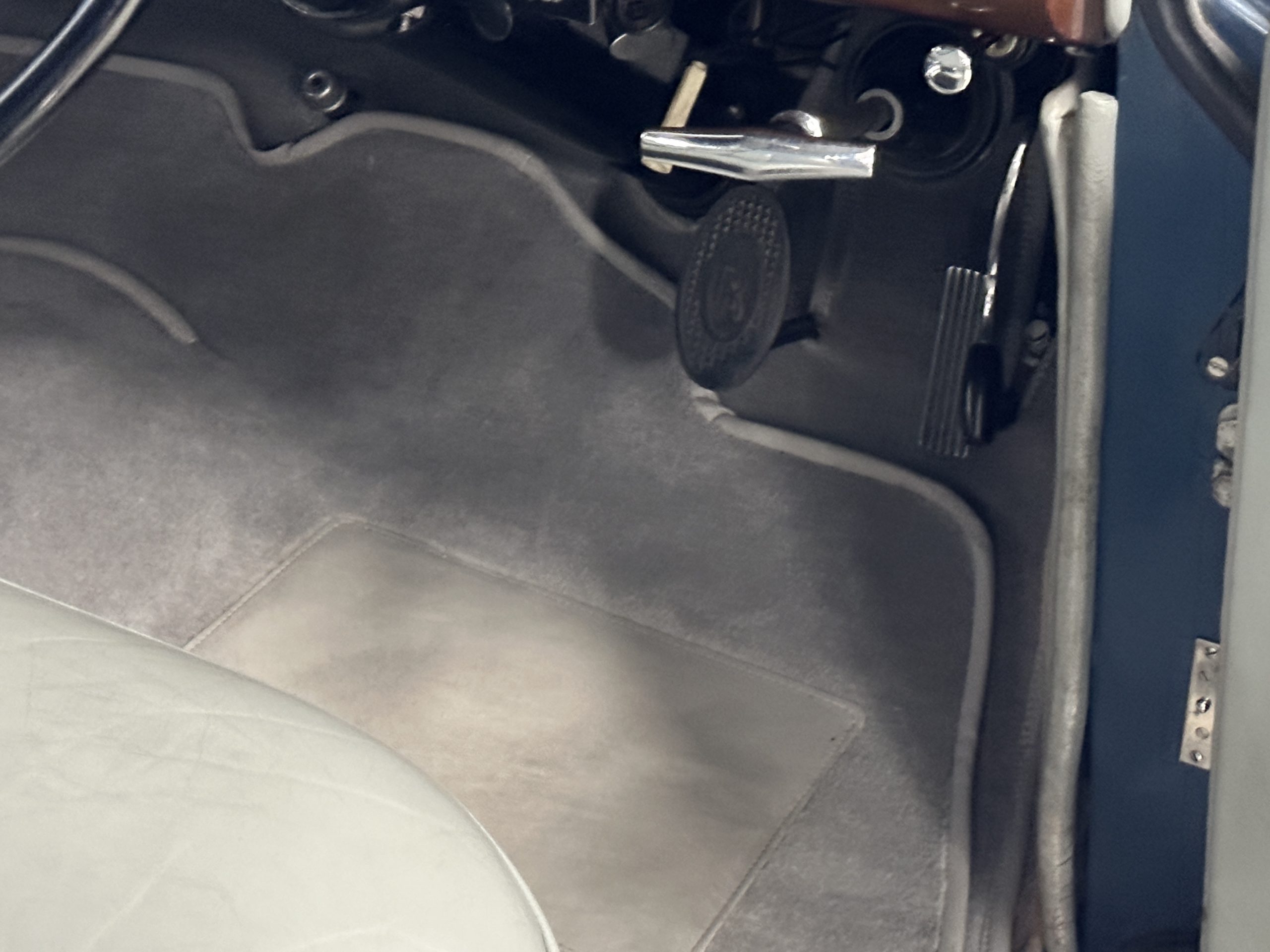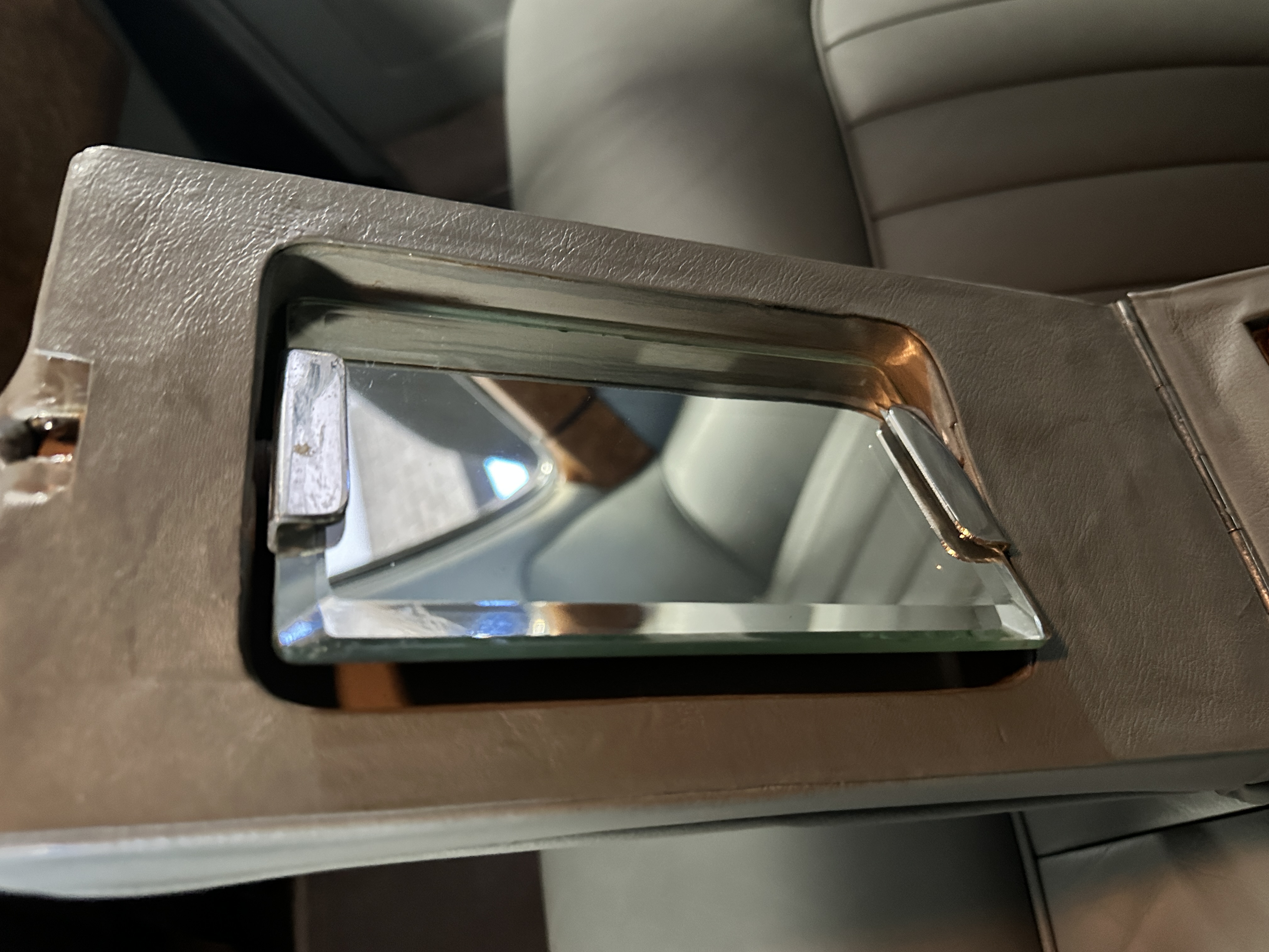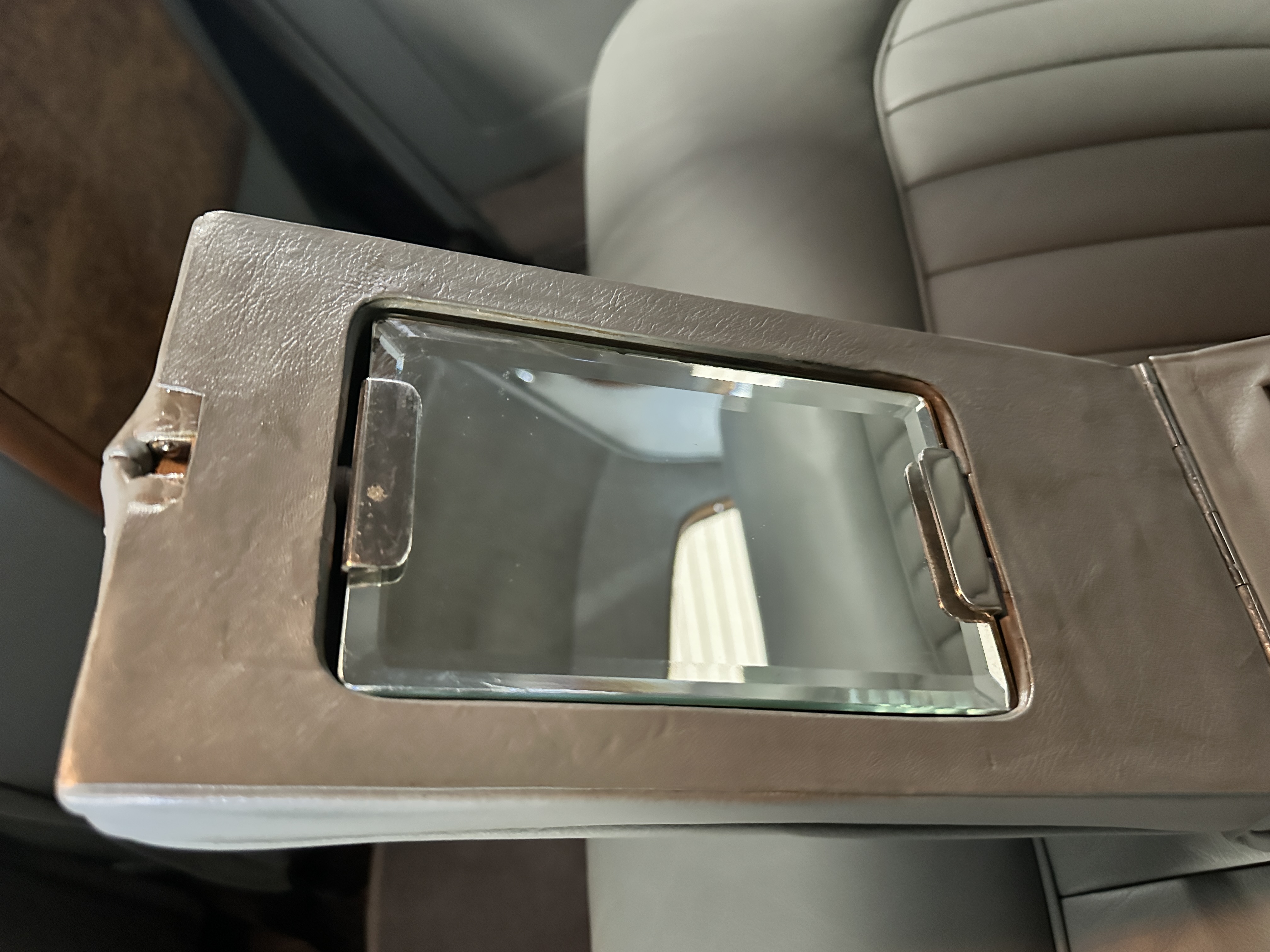 The Gray Leather (VM3393) has been replaced with gorgeous gray leather hides that are soft and supple, are very comfortable and are in excellent condition. The gray carpeting is also newer and in excellent condition. The gray headliner shows some soiling but is in overall nice condition.