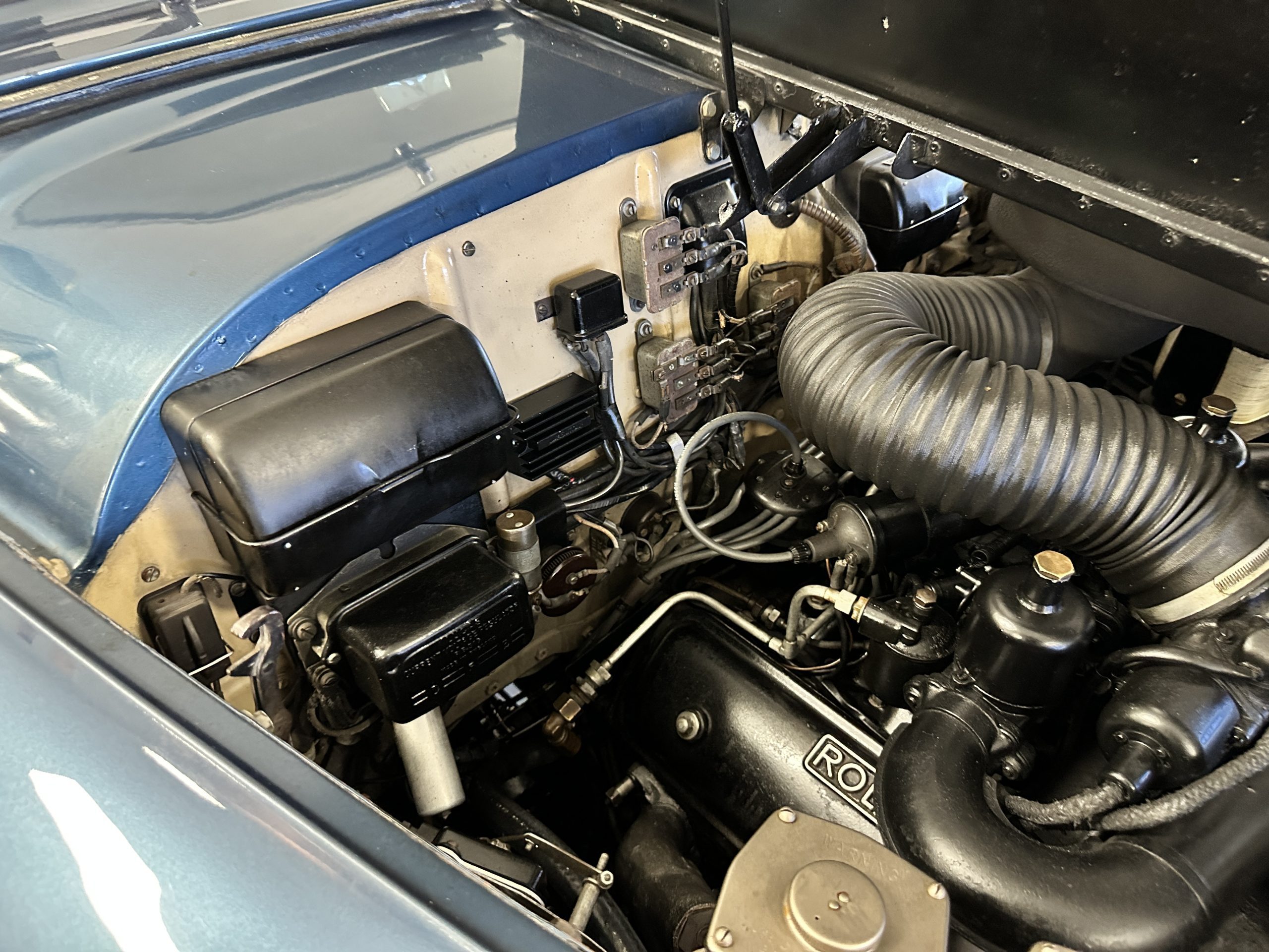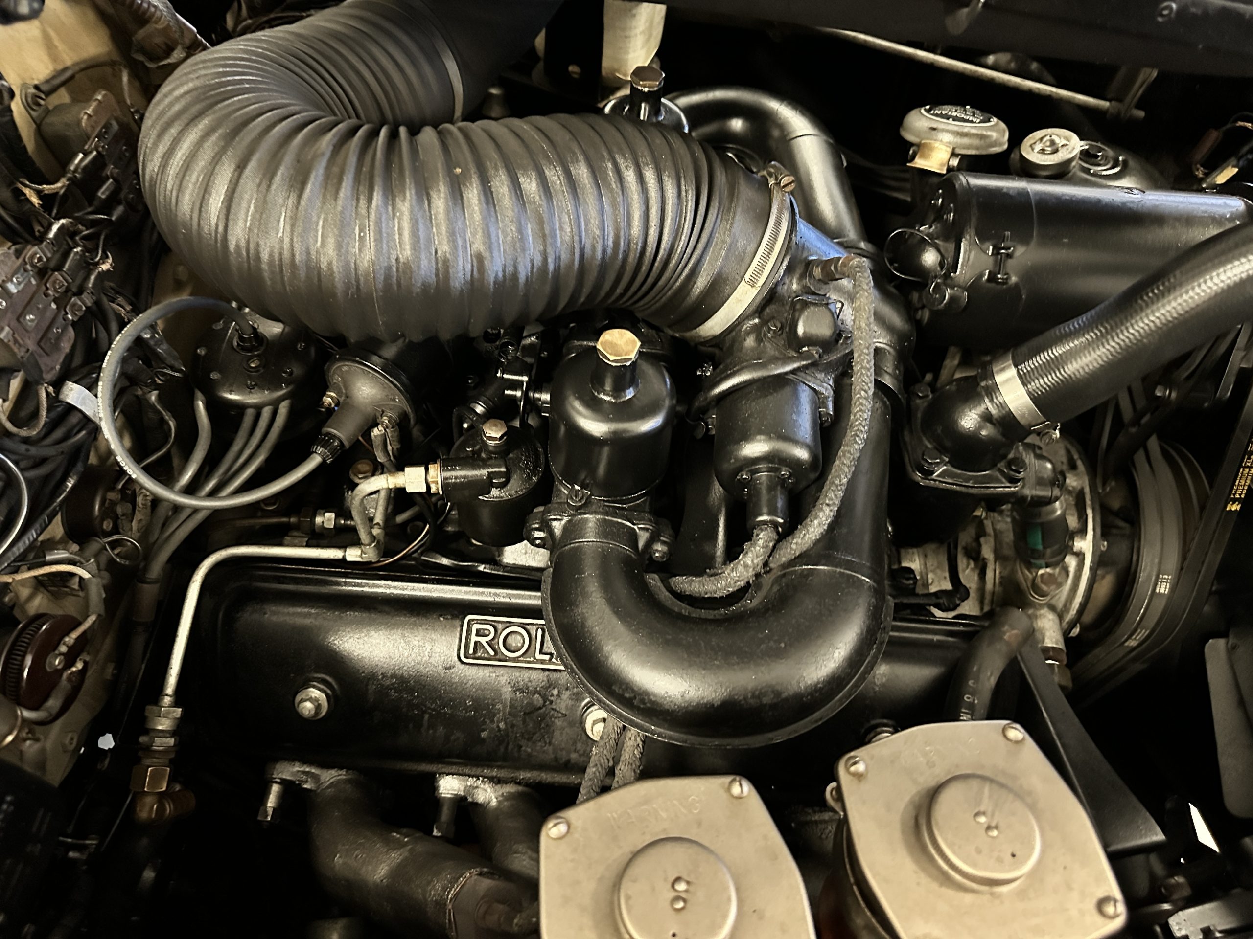 The engine compartment is reflective of a Rolls that has been well maintained its entire life. Its venerable 6.25-liter V8 produces 185 hp which is delivered through its GM Hydramatic-based four speed automatic transmission. This Silver Cloud has power steering and power brakes which make it easy and a joy to drive. The chassis and undercarriage are rust free and in very nice condition, a result of her living a charmed life largely in Southern California.