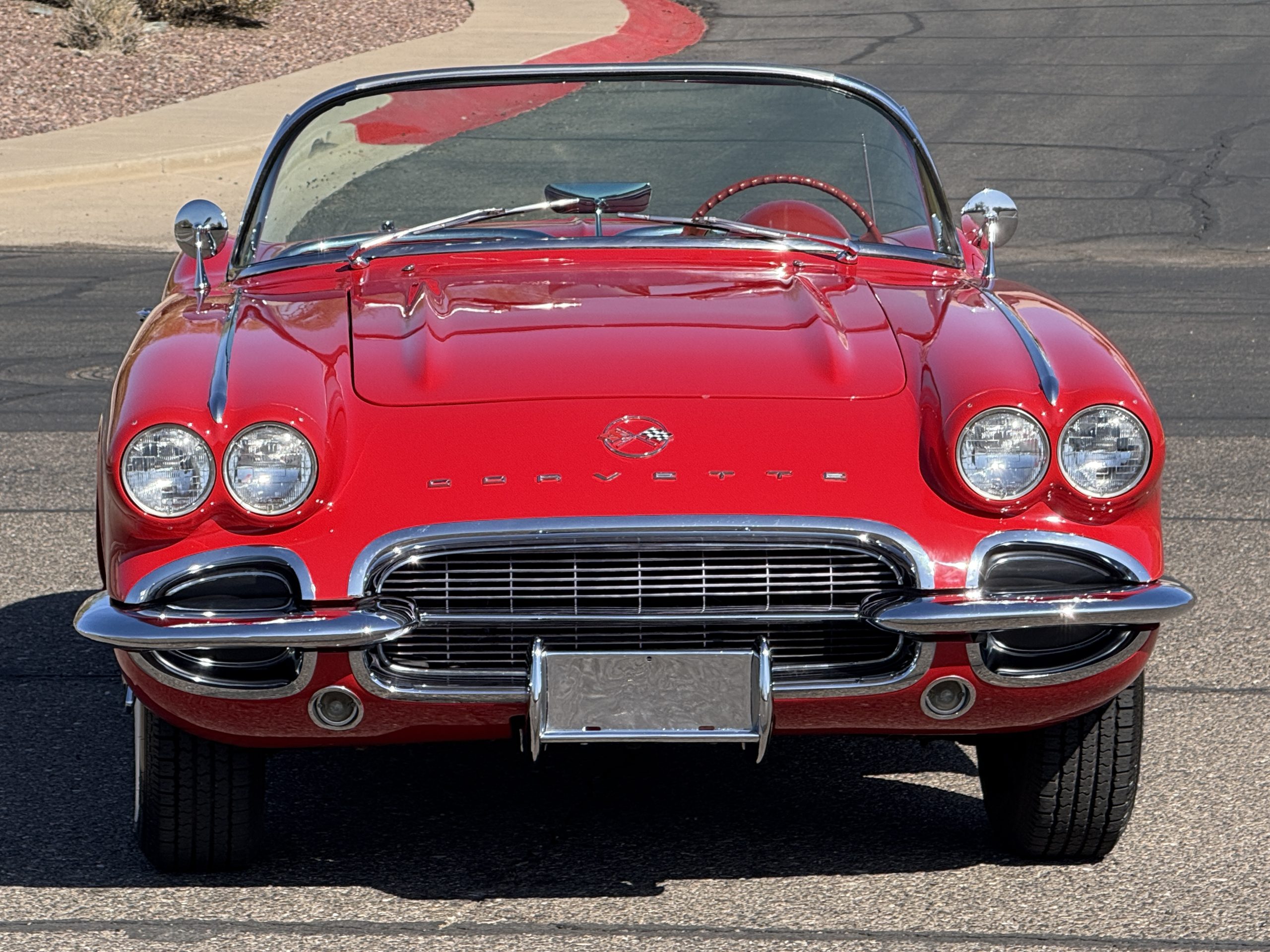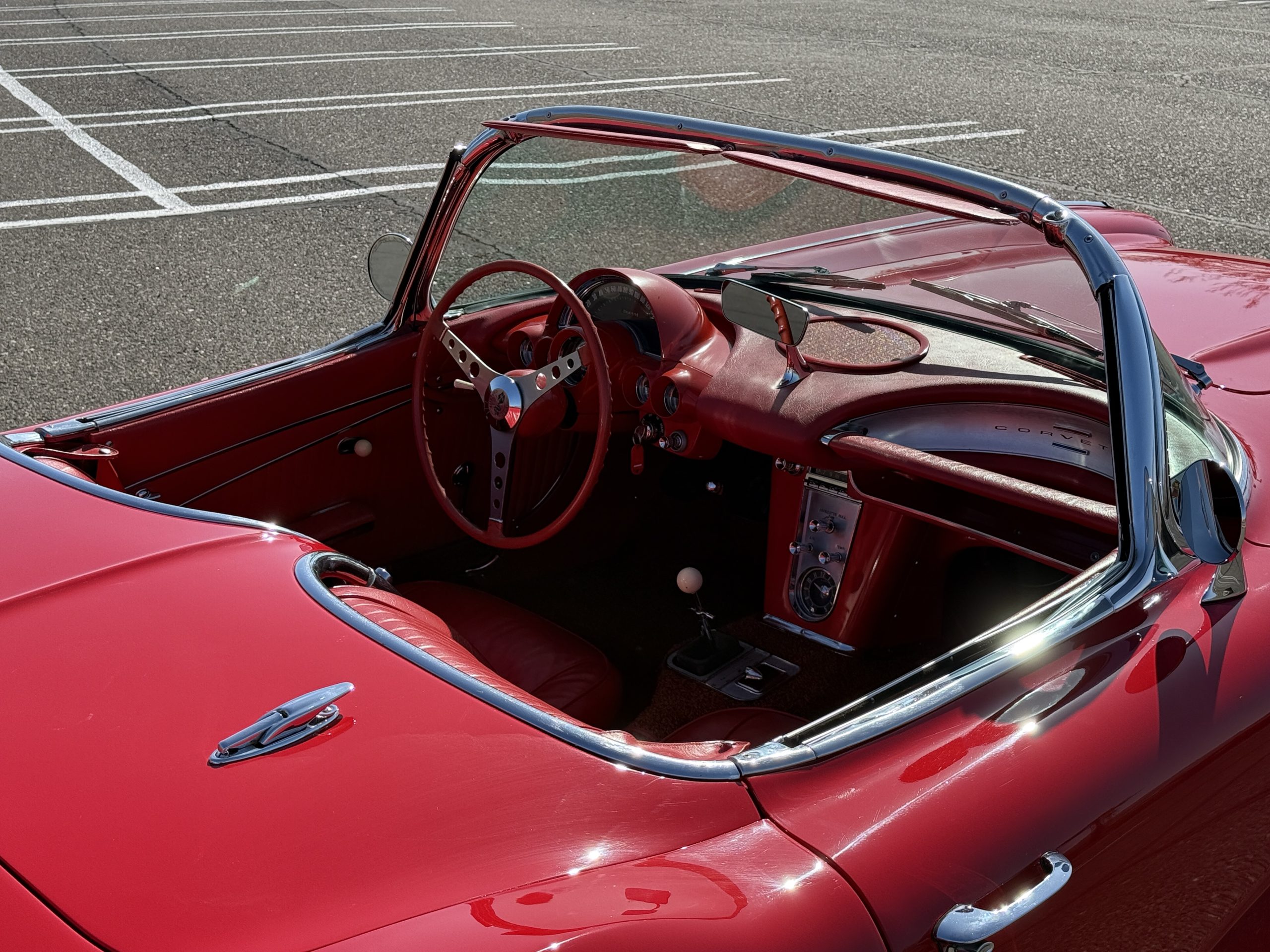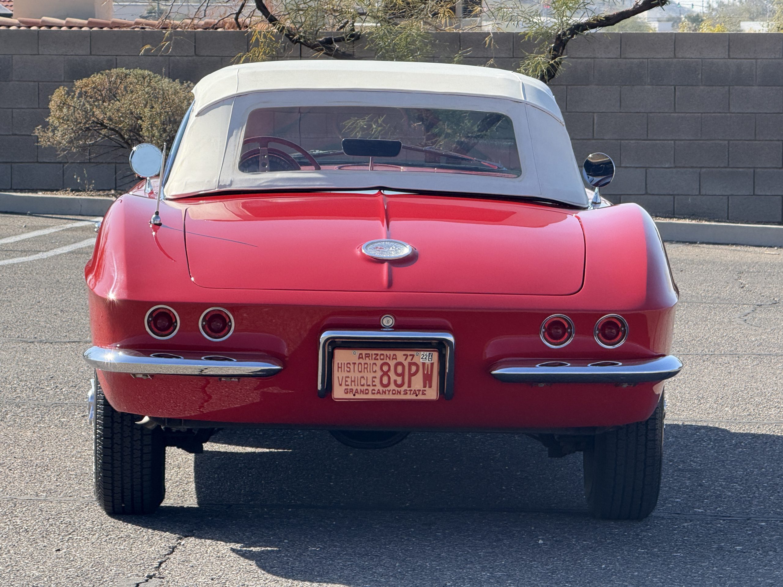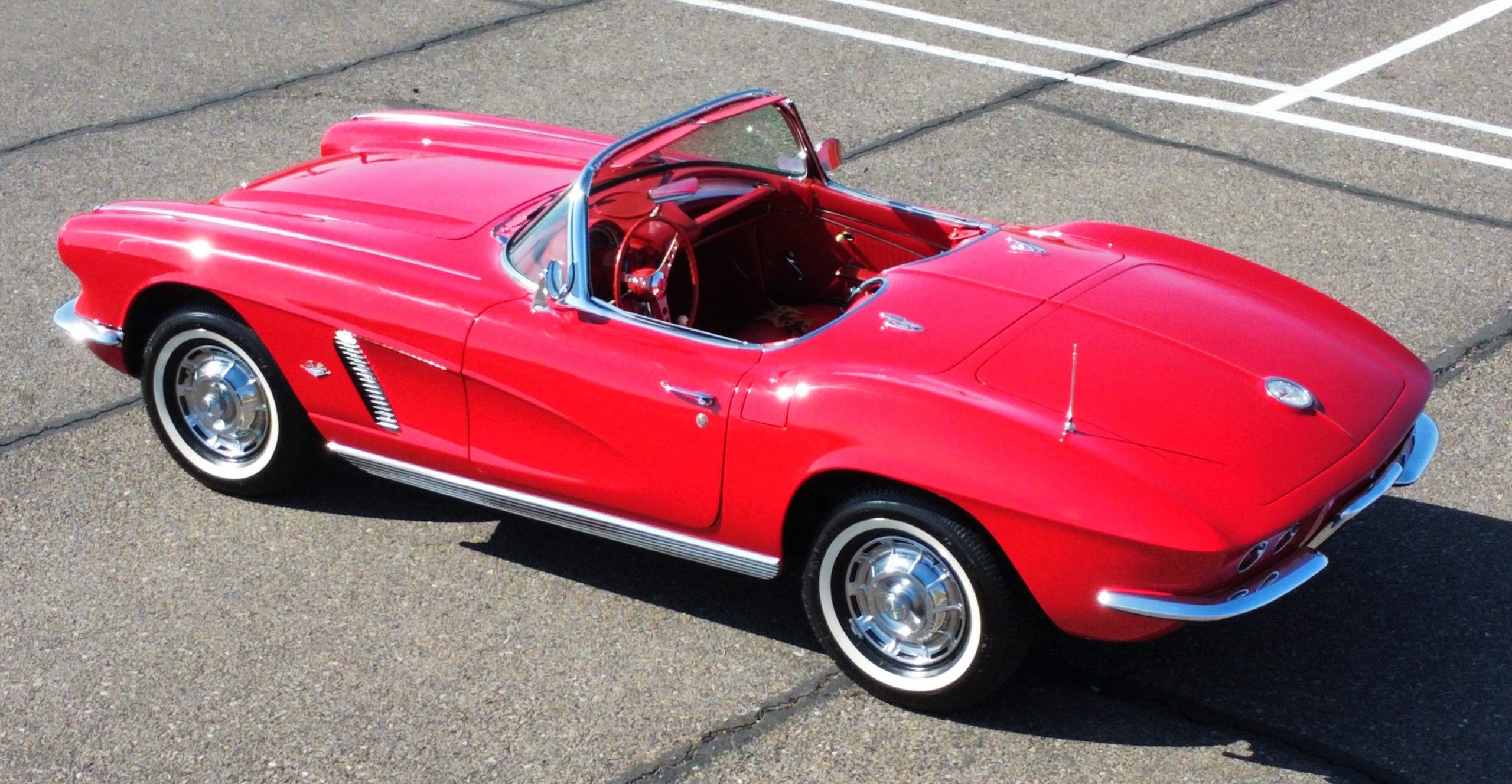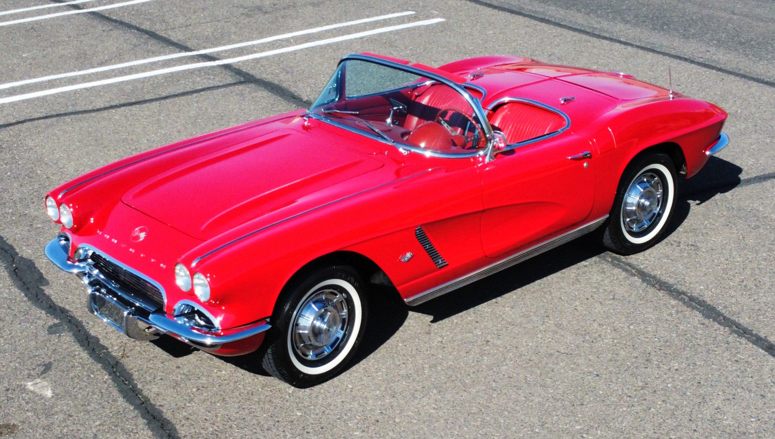 This 1962 Chevrolet Corvette convertible was sold new by Ross Chevrolet in Saint Petersburg, Florida and moved to Canada in the early 1980s. It was offered on BaT in 2019 and eventually made its way to Arizona. The car is finished in red with a white soft top and a red interior. Power comes from a 327ci V8 mated to a Muncie four-speed manual gearbox and a 3.36:1 Positraction rear end. The owner acquired the car in 2020 and it is now offered on dealer consignment with the owner’s manual, service records, and a clean Arizona title.