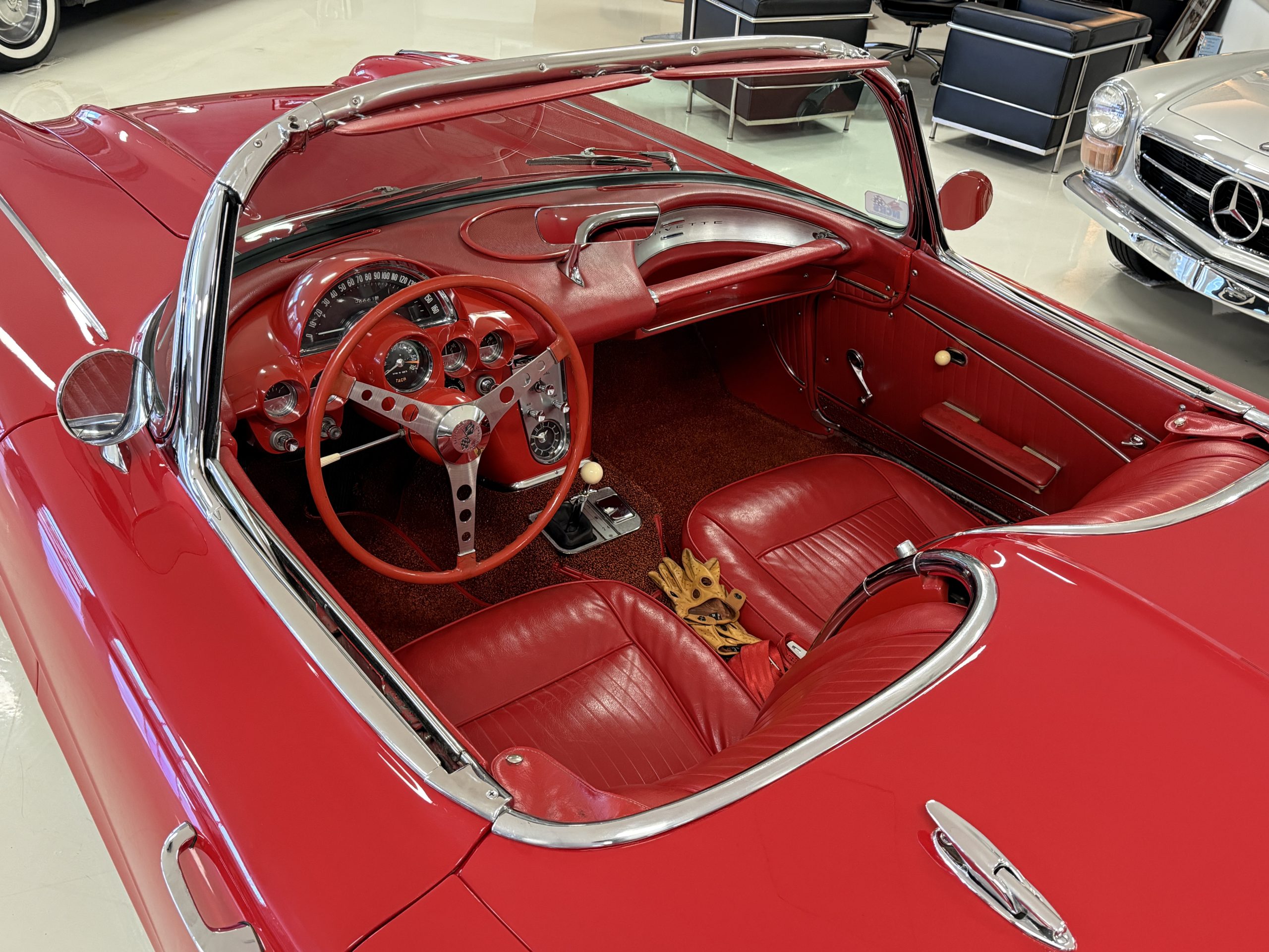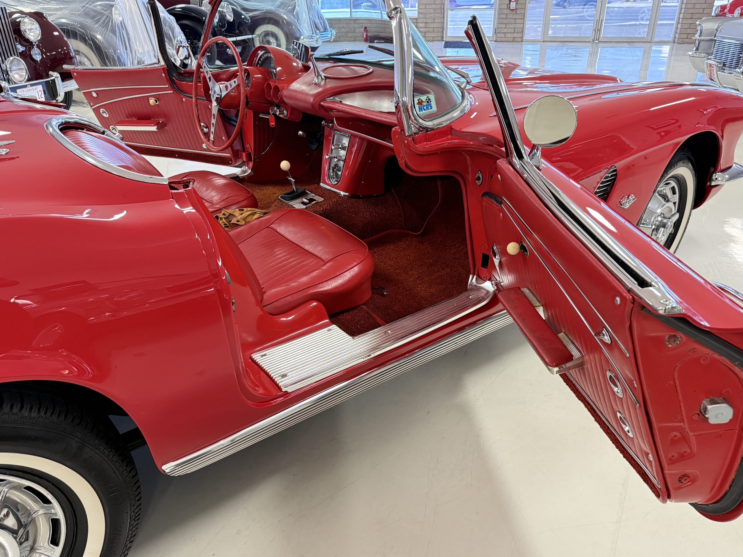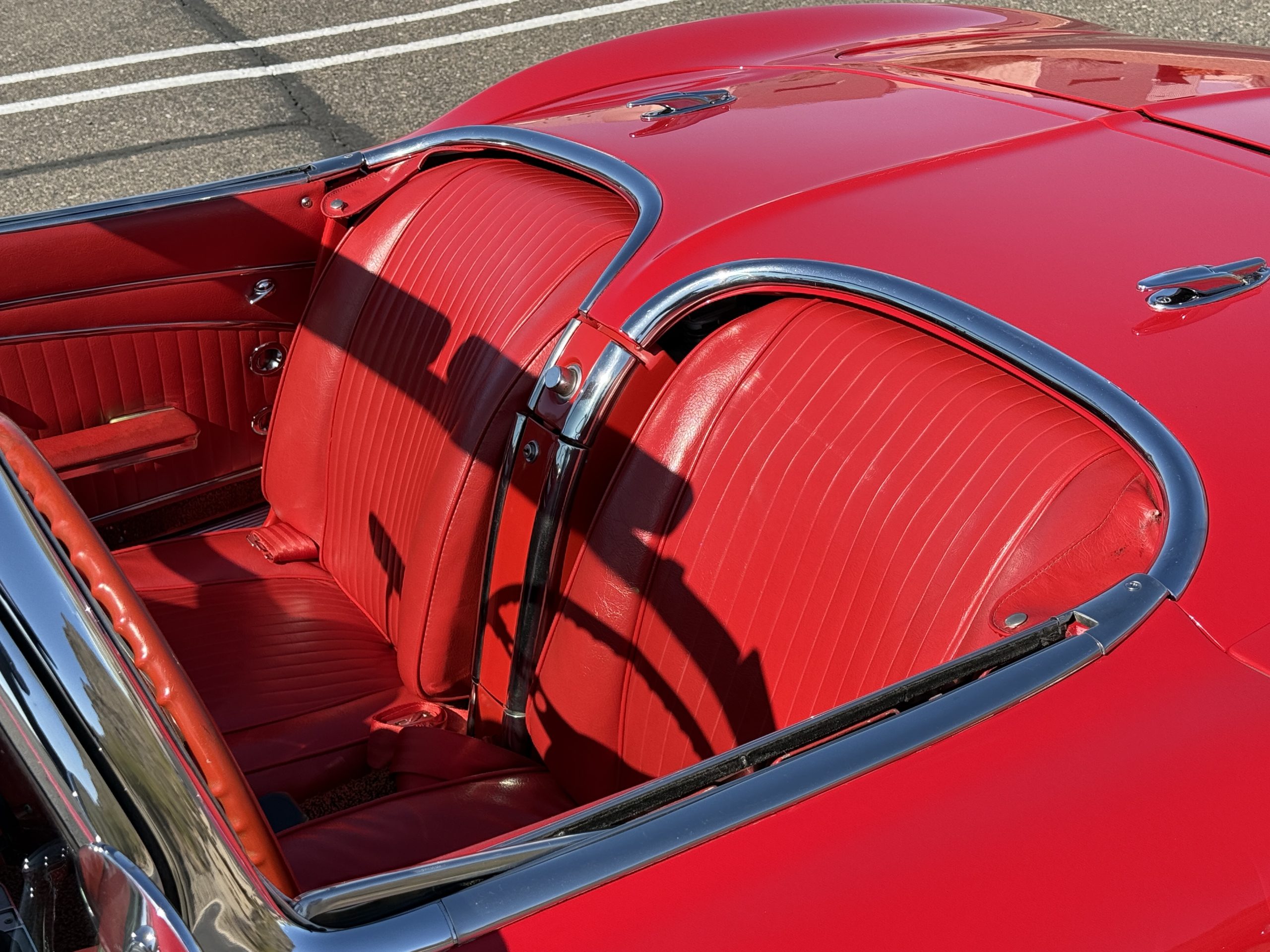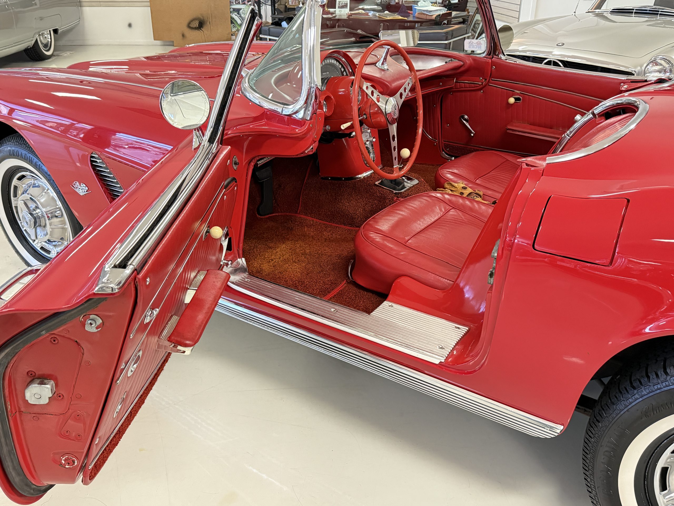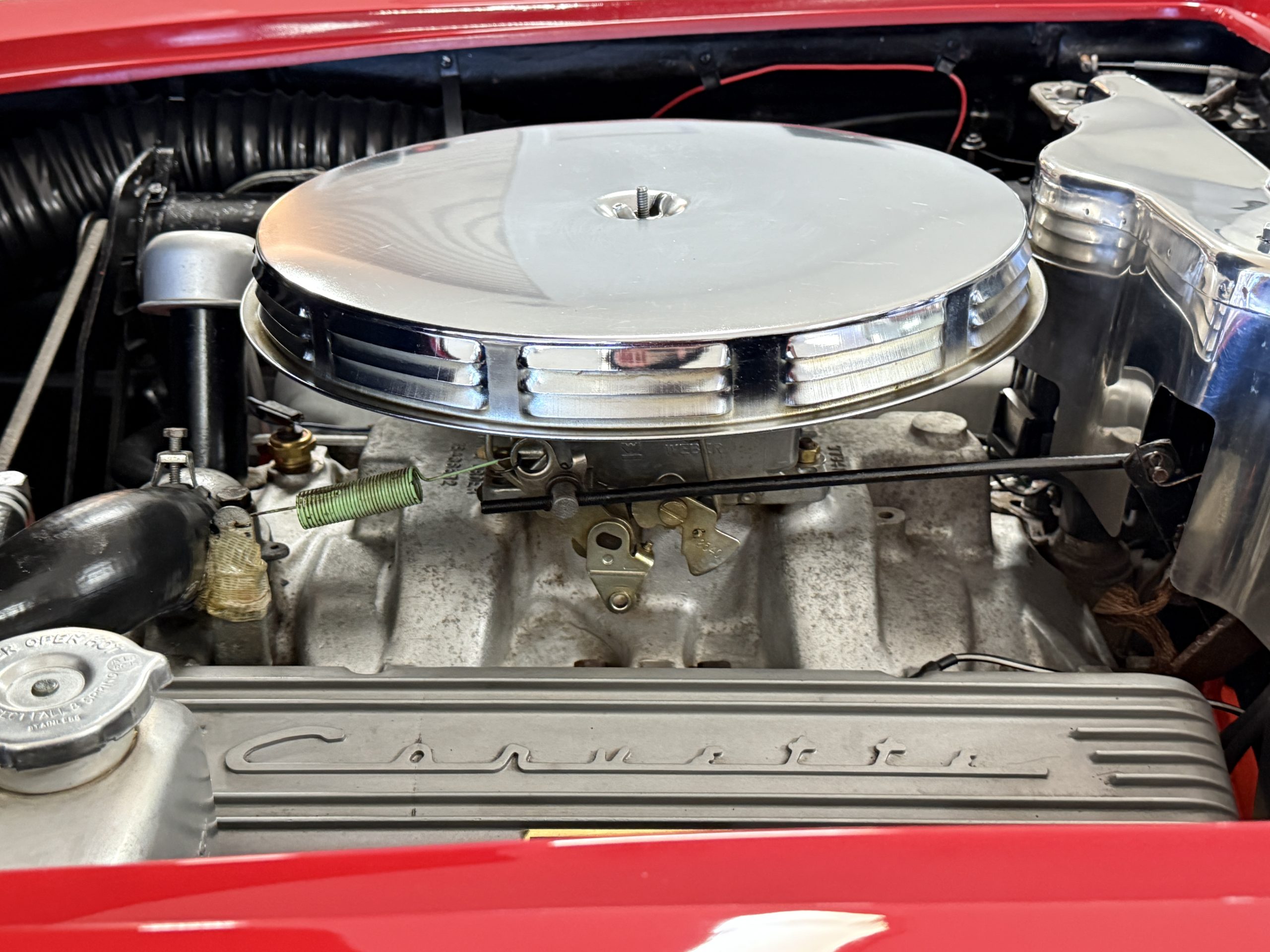 This 1962 Chevrolet Corvette convertible was sold new by Ross Chevrolet in Saint Petersburg, Florida and moved to Canada in the early 1980s. It was offered on BaT in 2019 and eventually made its way to Arizona. The car is finished in red with a white soft top and a red interior. Power comes from a 327ci V8 mated to a Muncie four-speed manual gearbox and a 3.36:1 Positraction rear end. The owner acquired the car in 2020 and it is now offered on dealer consignment with the owner’s manual, service records, and a clean Arizona title.