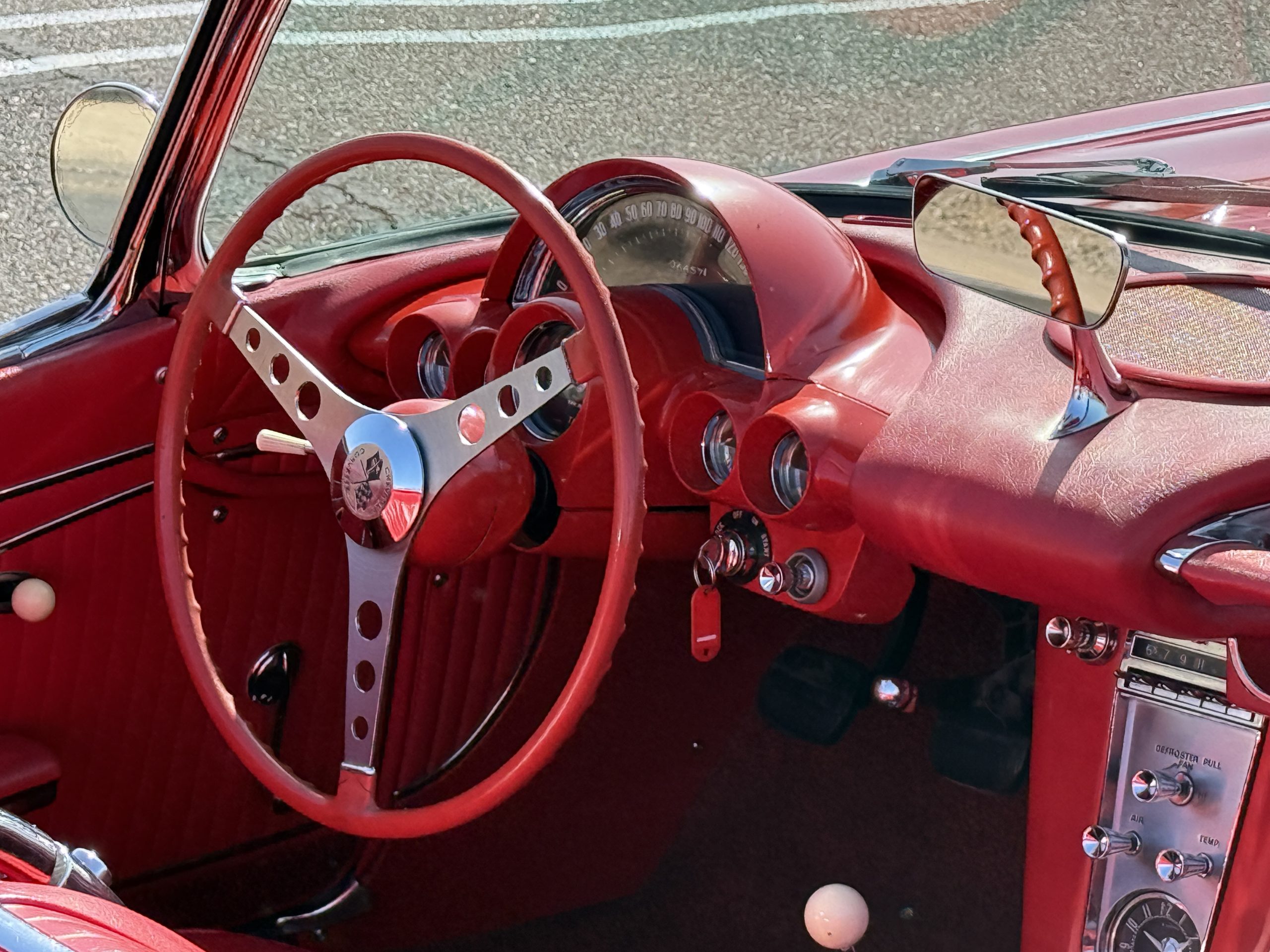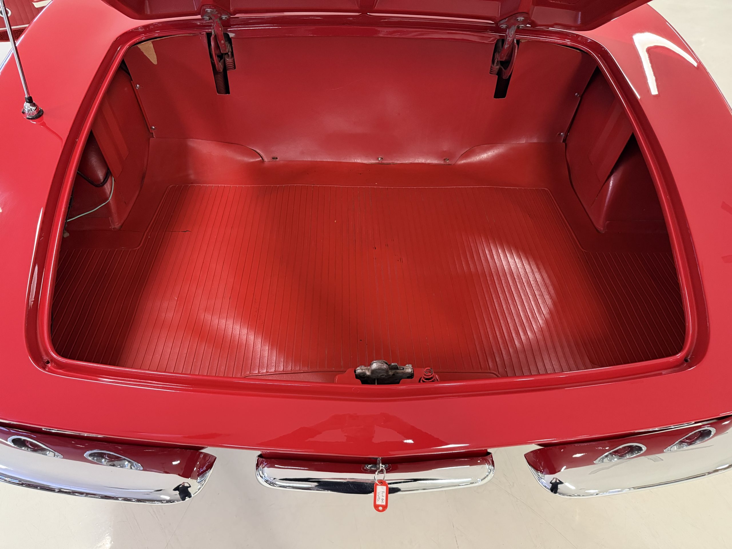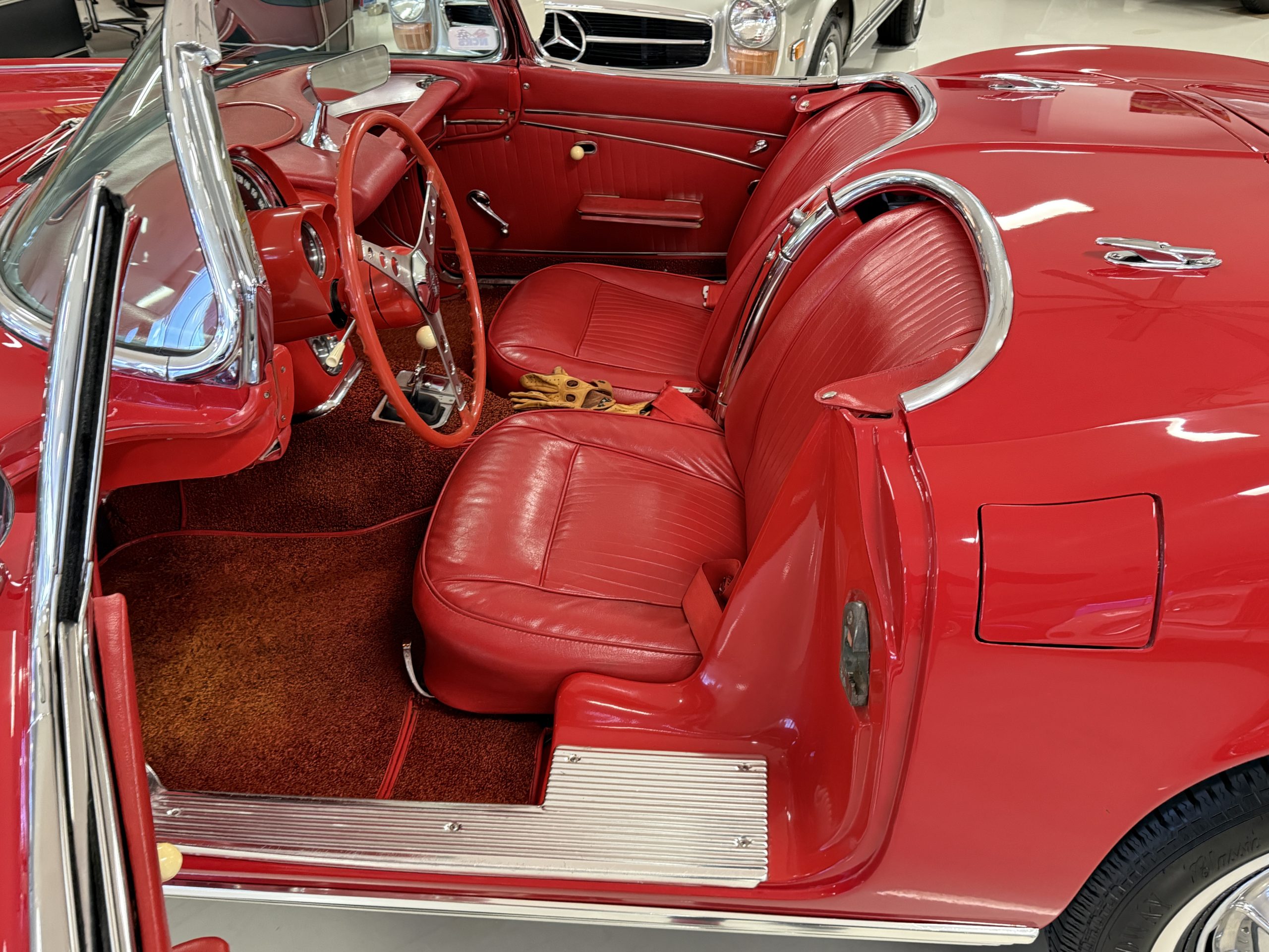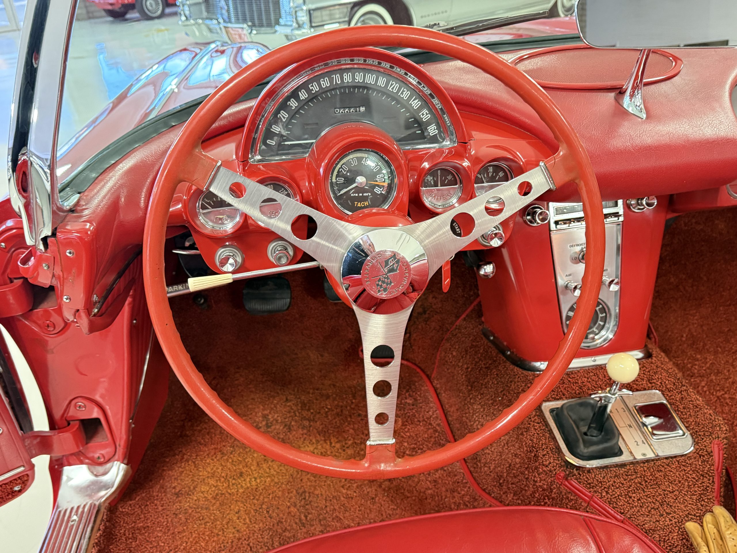This 1962 Chevrolet Corvette convertible was sold new by Ross Chevrolet in Saint Petersburg, Florida and moved to Canada in the early 1980s. It was offered on BaT in 2019 and eventually made its way to Arizona. The car is finished in red with a white soft top and a red interior. Power comes from a 327ci V8 mated to a Muncie four-speed manual gearbox and a 3.36:1 Positraction rear end. The owner acquired the car in 2020 and it is now offered on dealer consignment with the owner’s manual, service records, and a clean Arizona title.