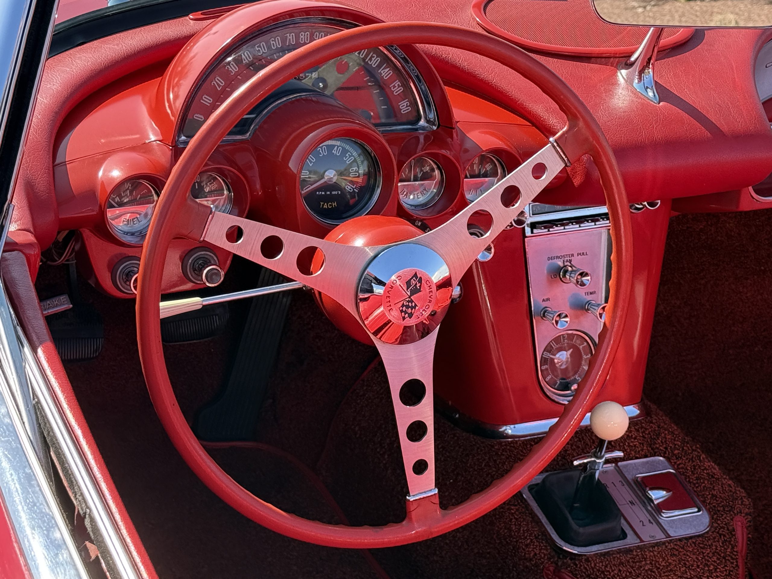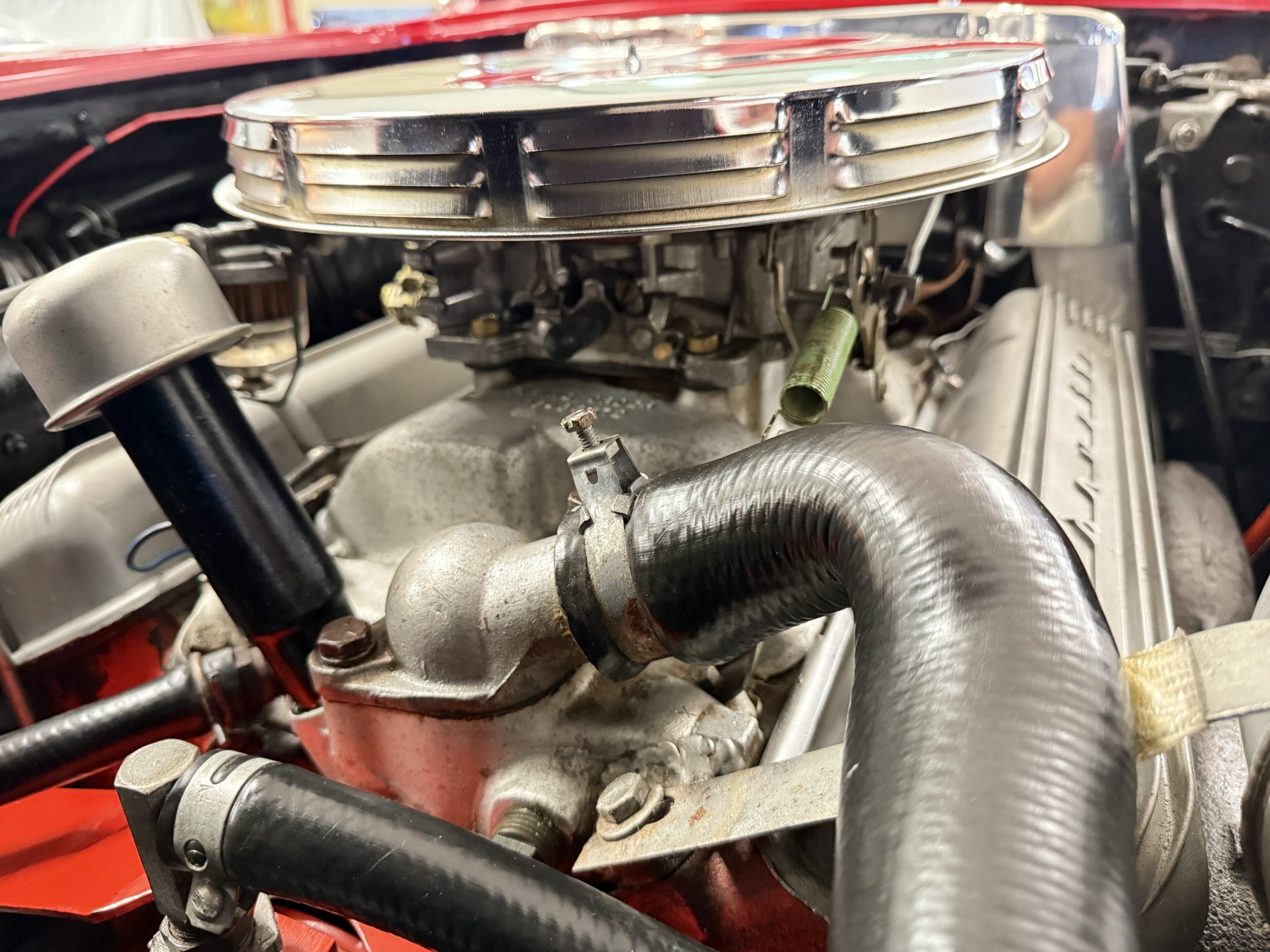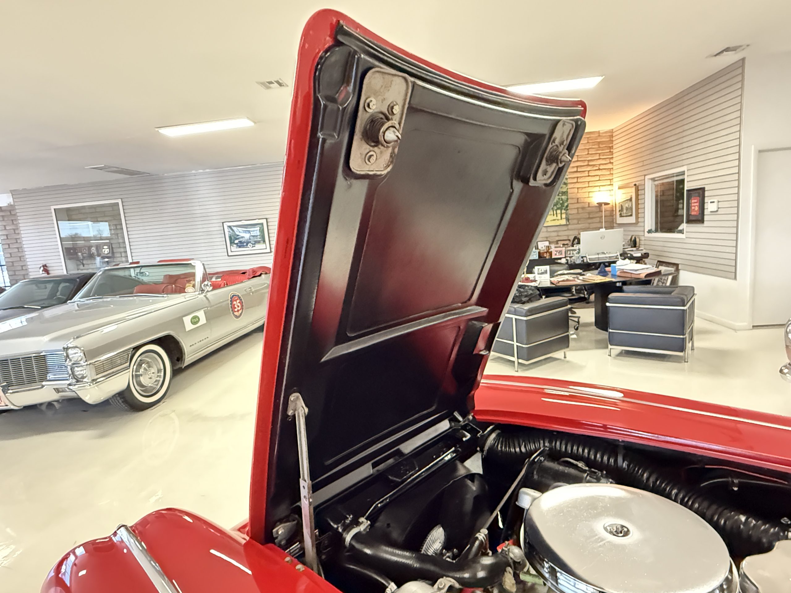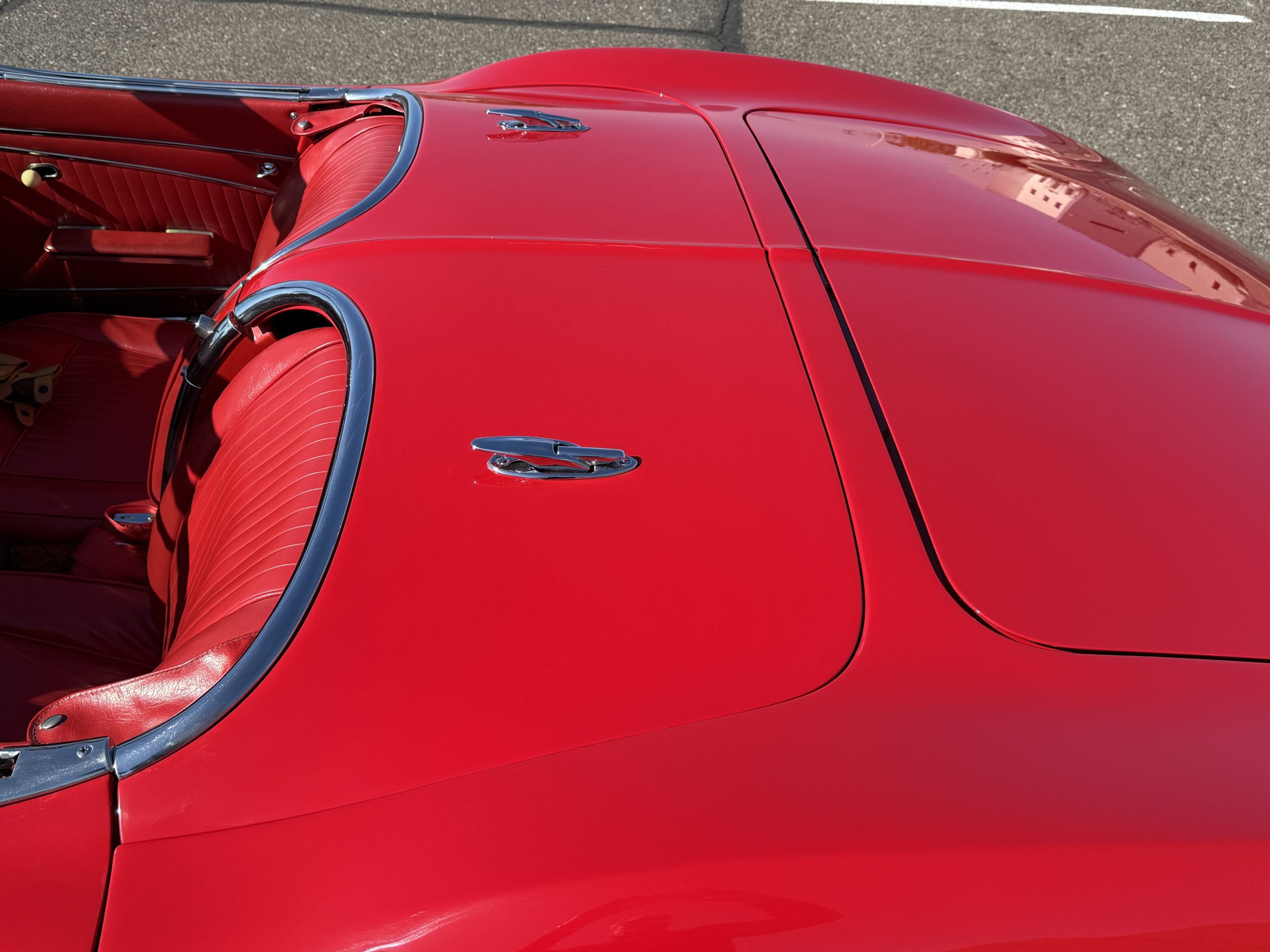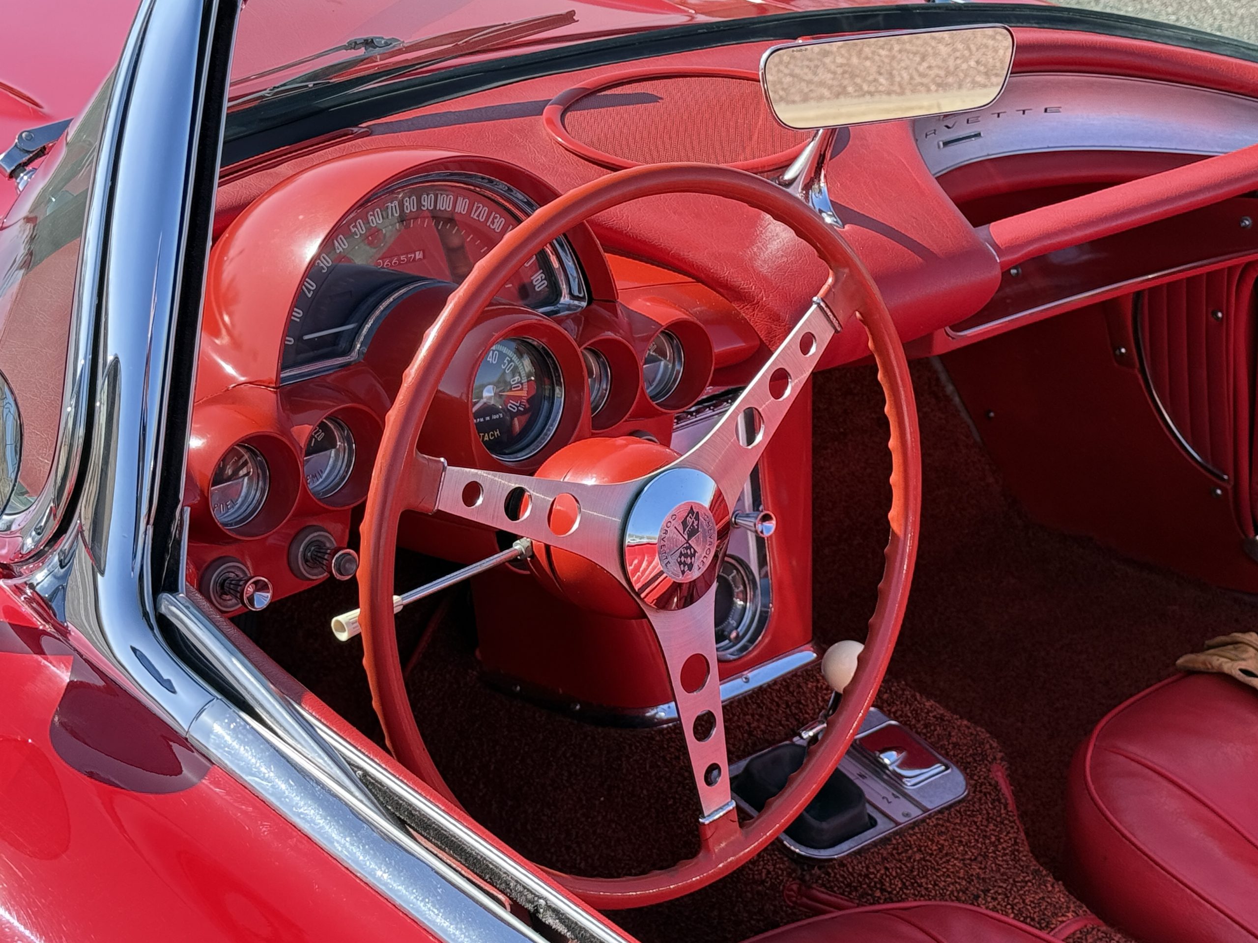 This 1962 Chevrolet Corvette convertible was sold new by Ross Chevrolet in Saint Petersburg, Florida and moved to Canada in the early 1980s. It was offered on BaT in 2019 and eventually made its way to Arizona. The car is finished in red with a white soft top and a red interior. Power comes from a 327ci V8 mated to a Muncie four-speed manual gearbox and a 3.36:1 Positraction rear end. The owner acquired the car in 2020 and it is now offered on dealer consignment with the owner’s manual, service records, and a clean Arizona title.