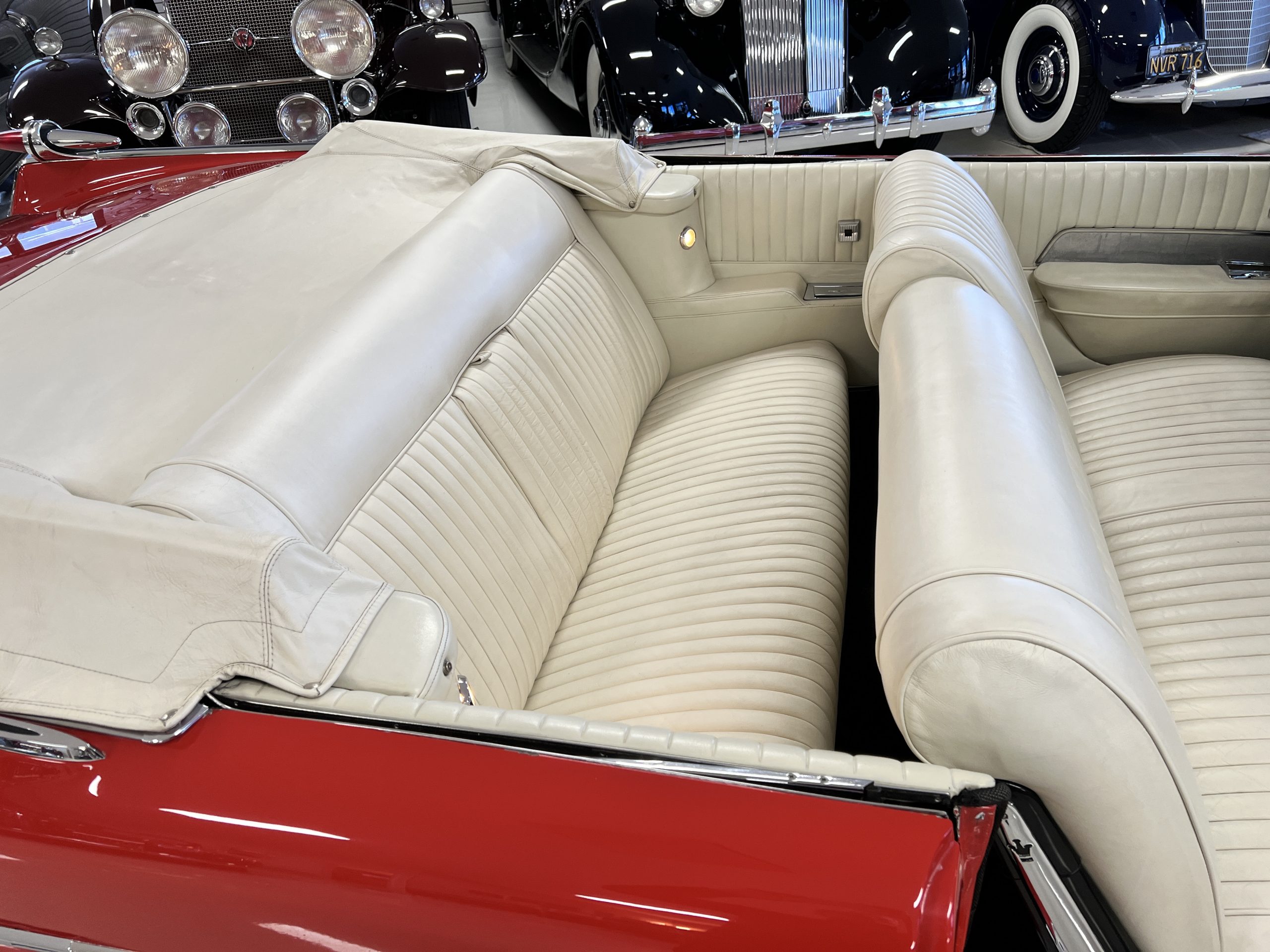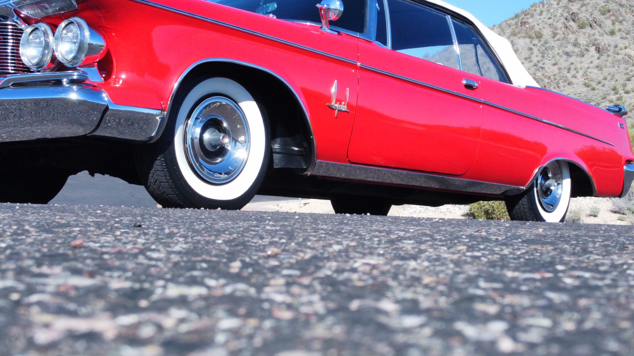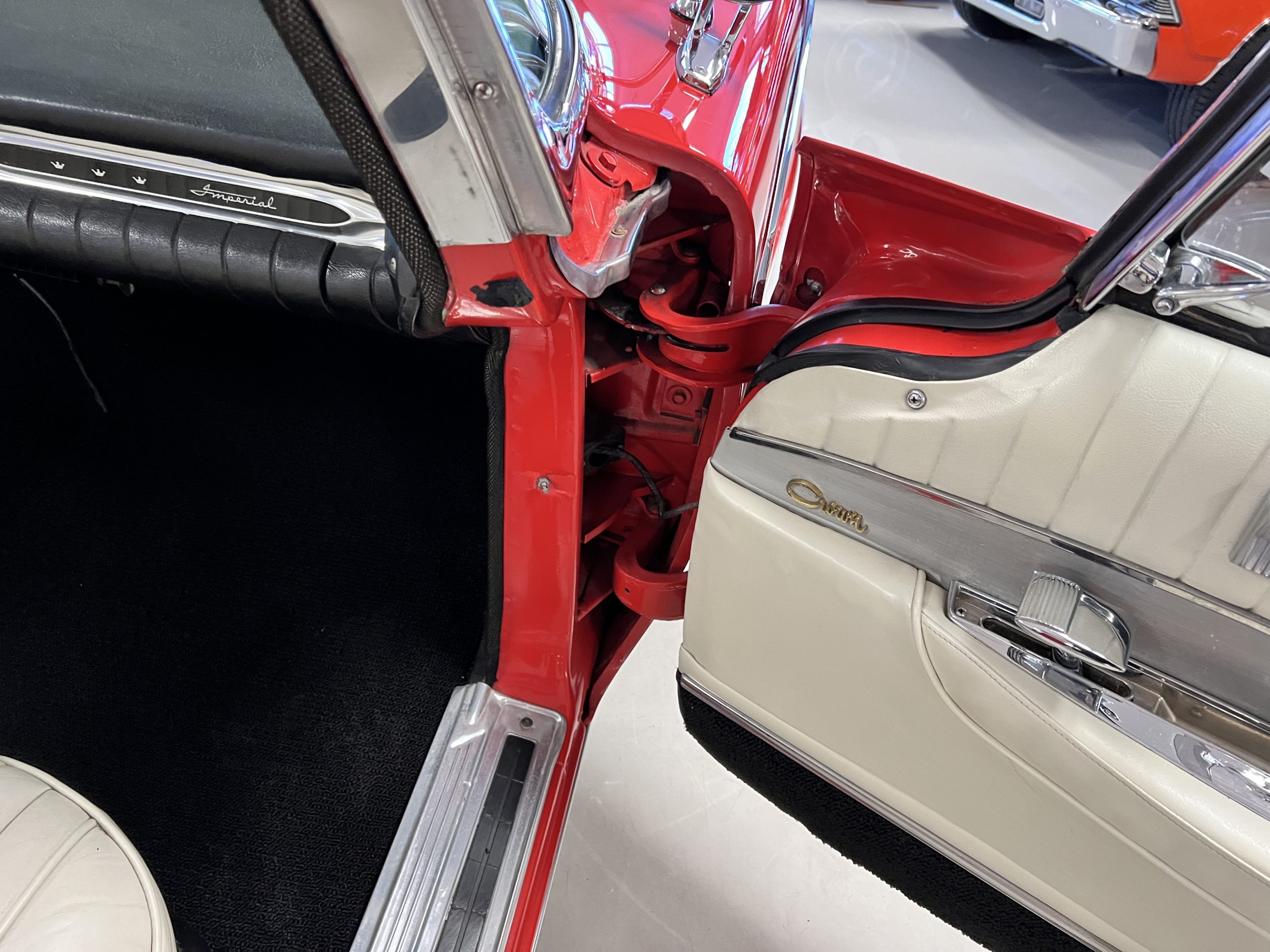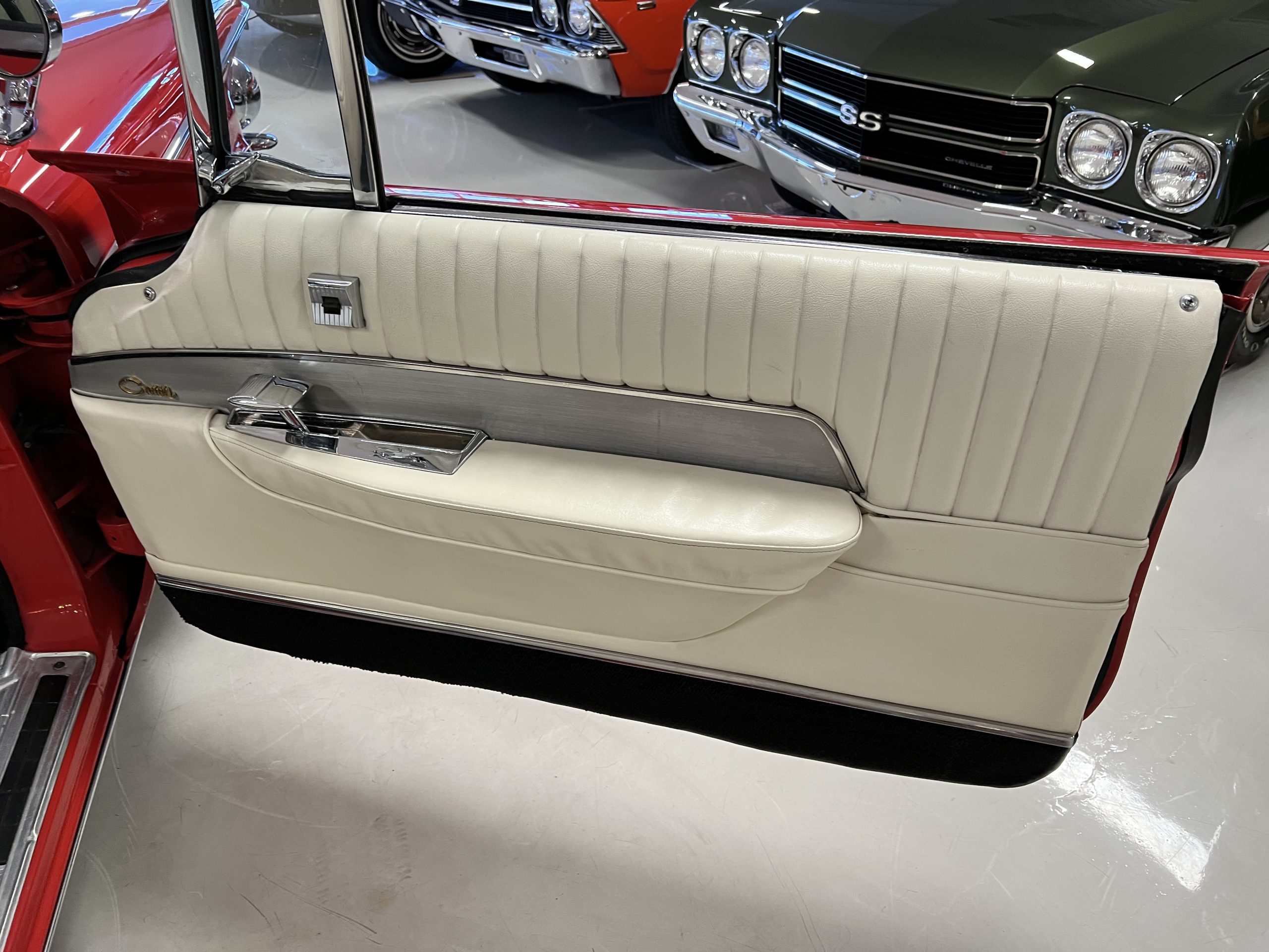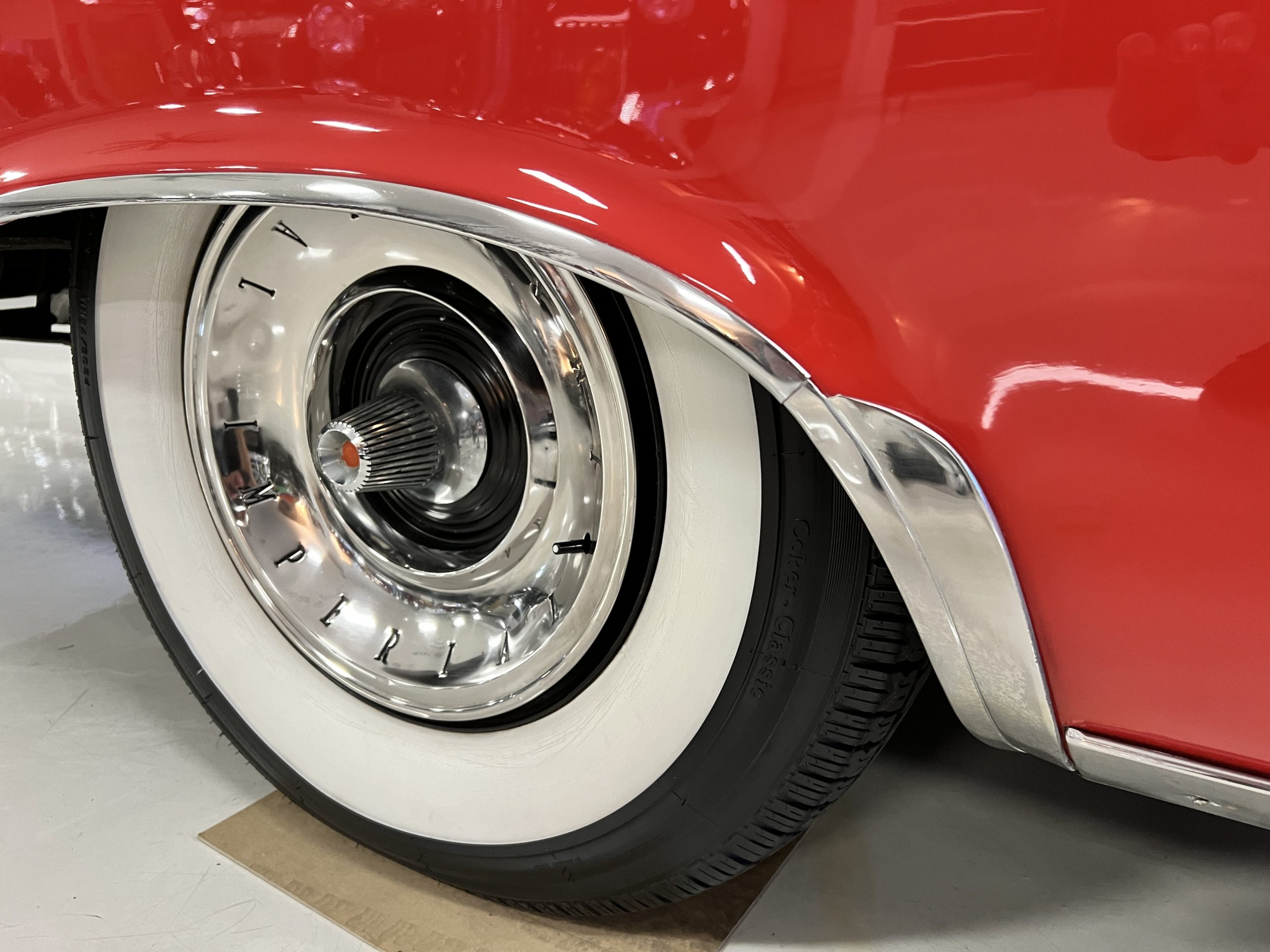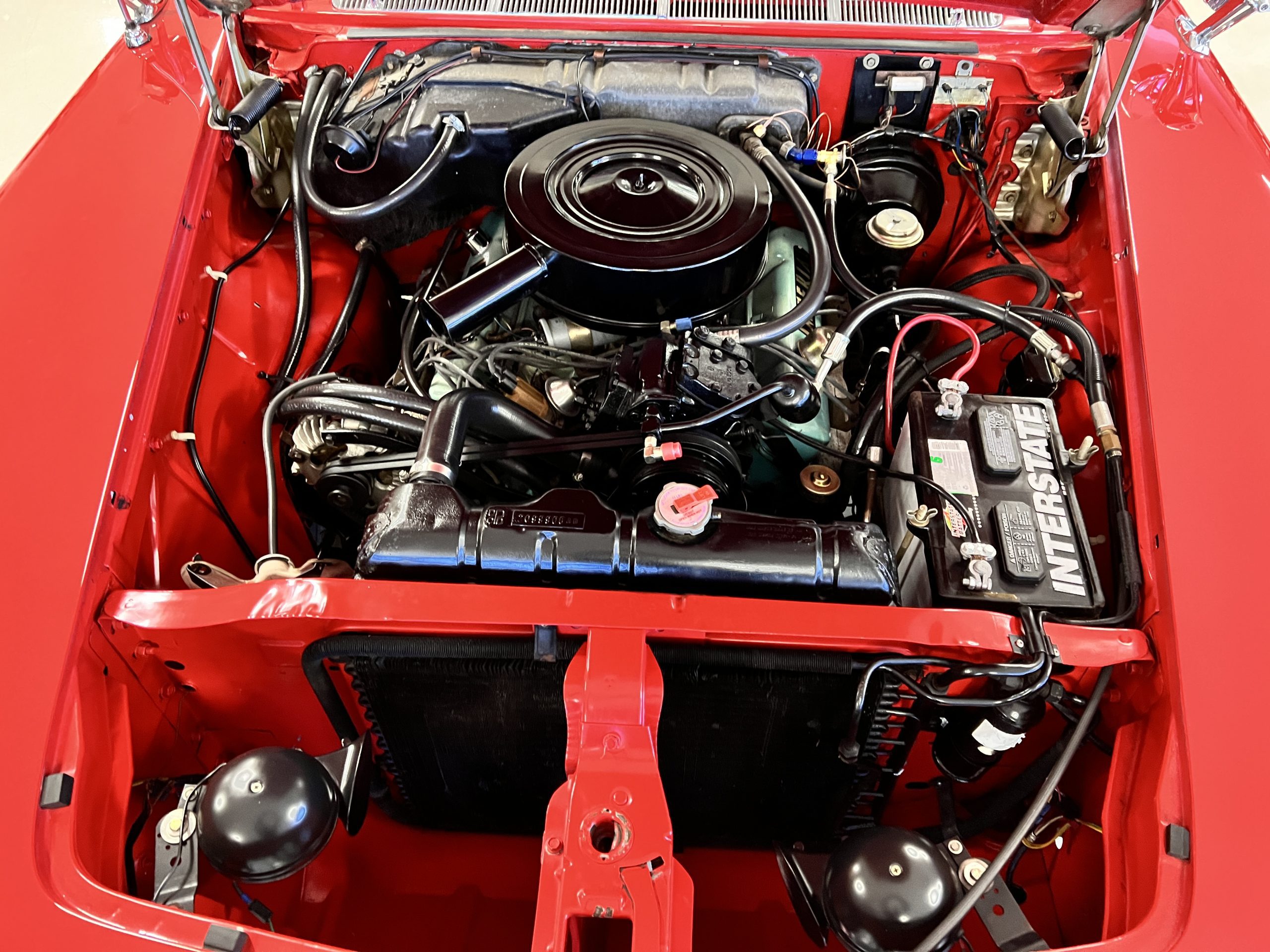 This Imperial features Festival Red (Paint Code A-1264R) livery with its correct white vinyl power convertible top. The paint is in overall excellent touring and show condition, with several small touched up chips from normal use since its restoration. The chrome and stainless are in overall excellent condition with a couple areas with small imperfections. The Imperial wheel covers are in very nice condition and the Coker wide white walled radials look perfect. Overall, the exterior is stunning and while not perfect, in excellent touring and show condition for most all regional and local shows and events.