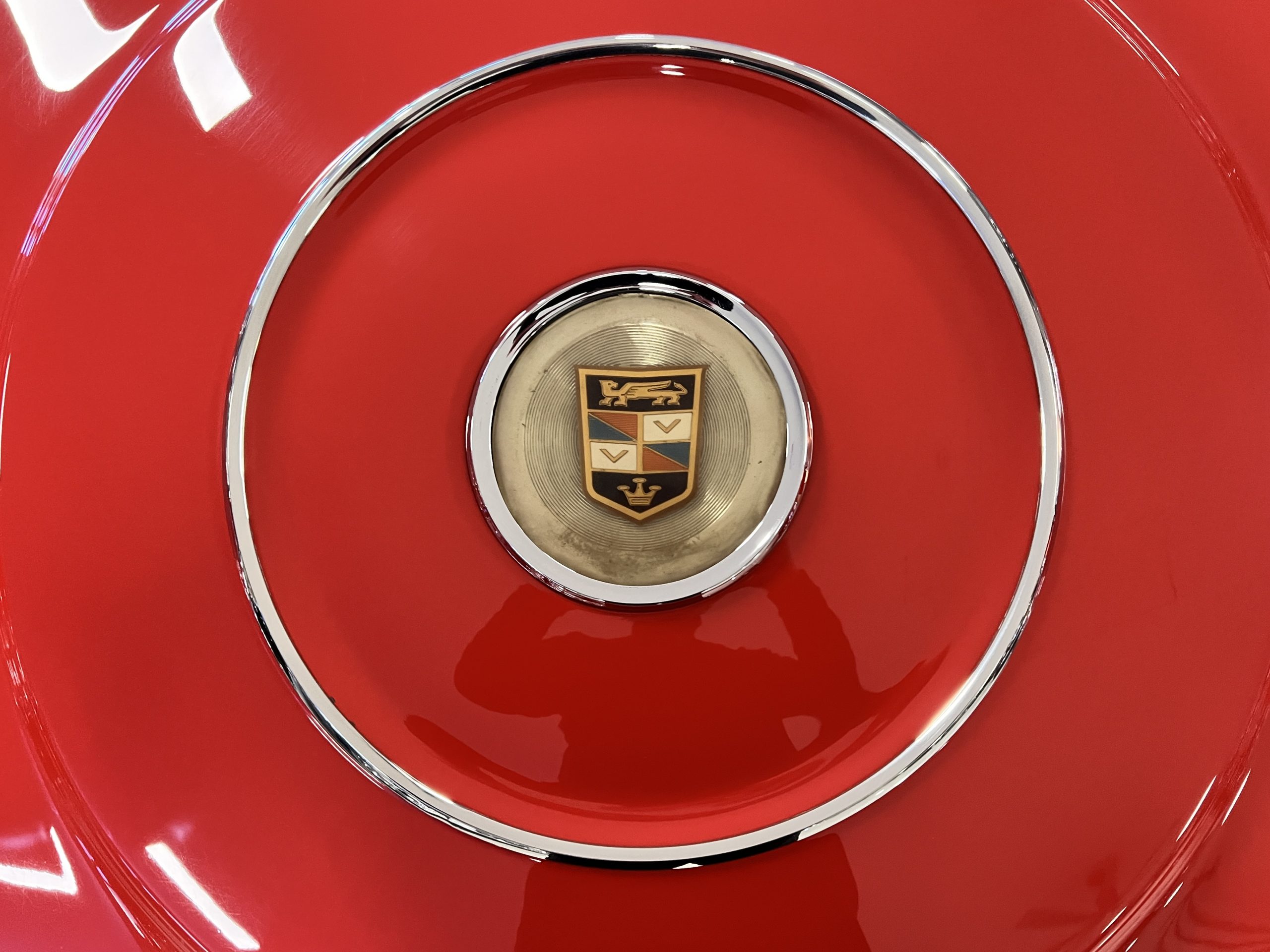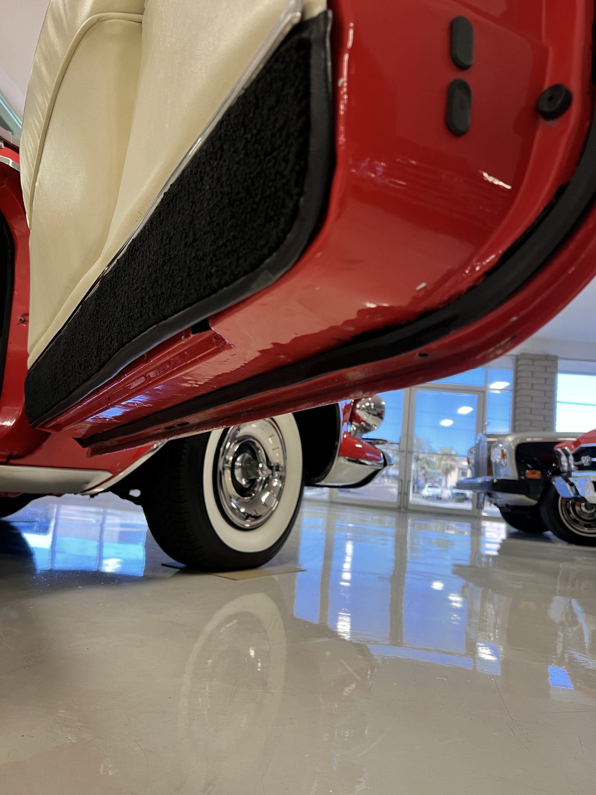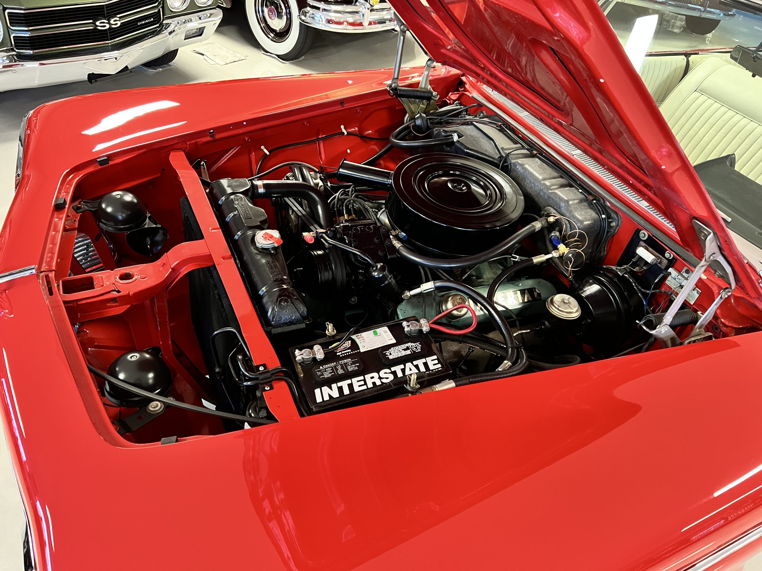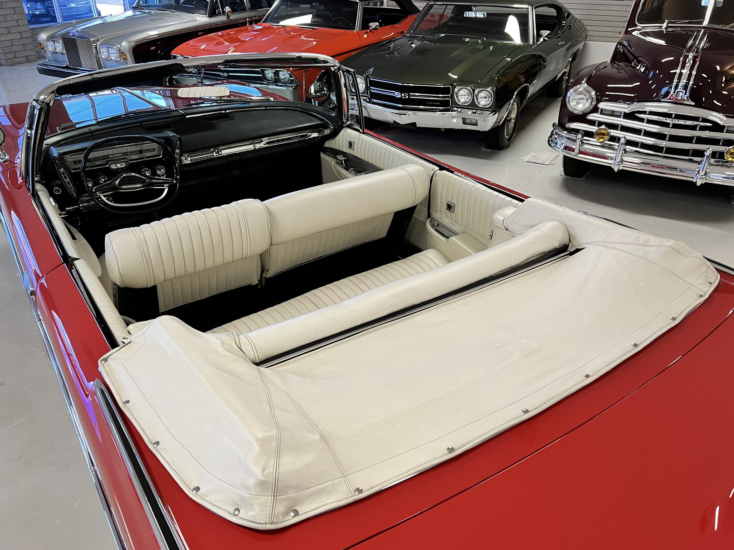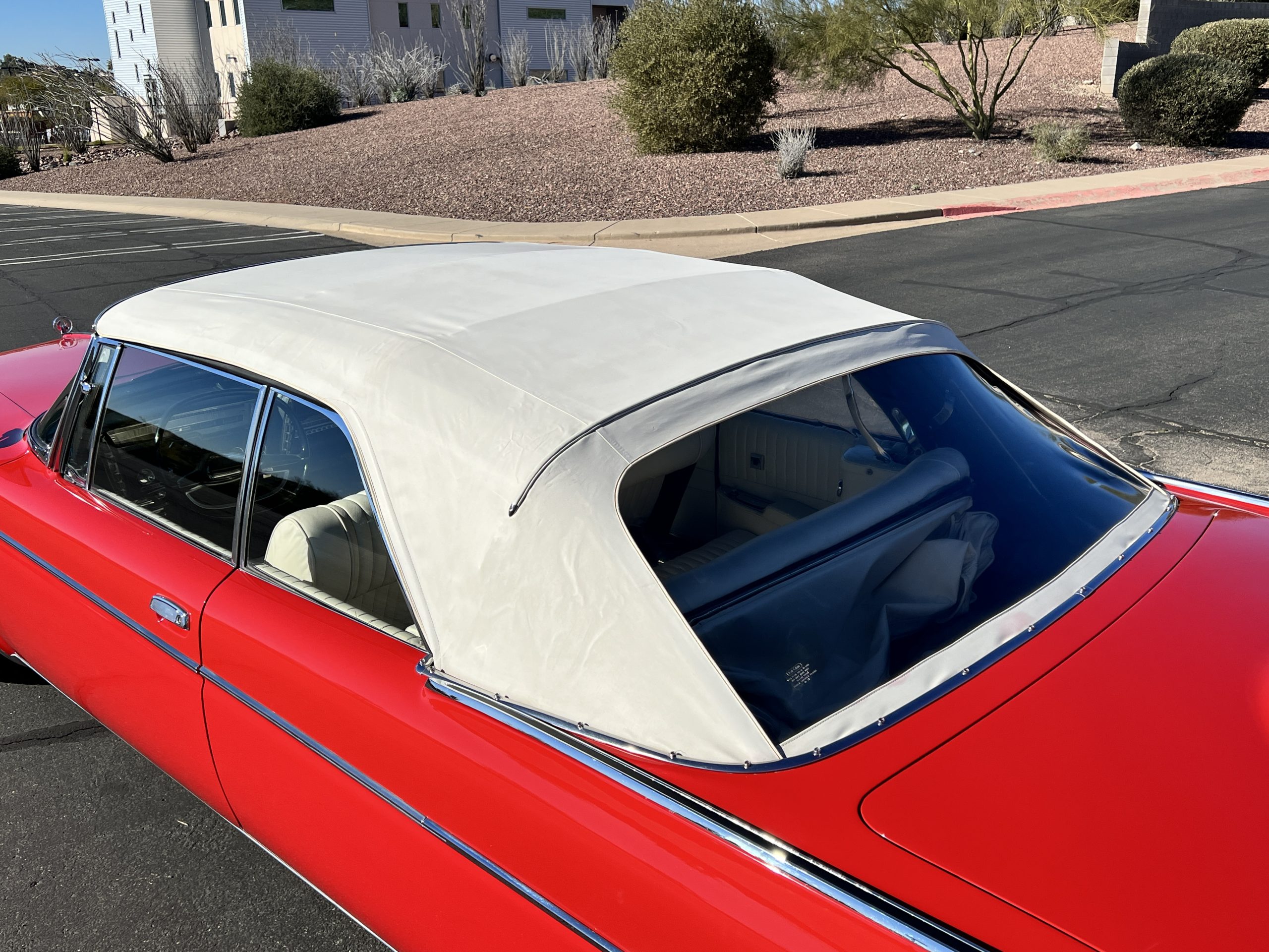 This Imperial features Festival Red (Paint Code A-1264R) livery with its correct white vinyl power convertible top. The paint is in overall excellent touring and show condition, with several small touched up chips from normal use since its restoration. The chrome and stainless are in overall excellent condition with a couple areas with small imperfections. The Imperial wheel covers are in very nice condition and the Coker wide white walled radials look perfect. Overall, the exterior is stunning and while not perfect, in excellent touring and show condition for most all regional and local shows and events.