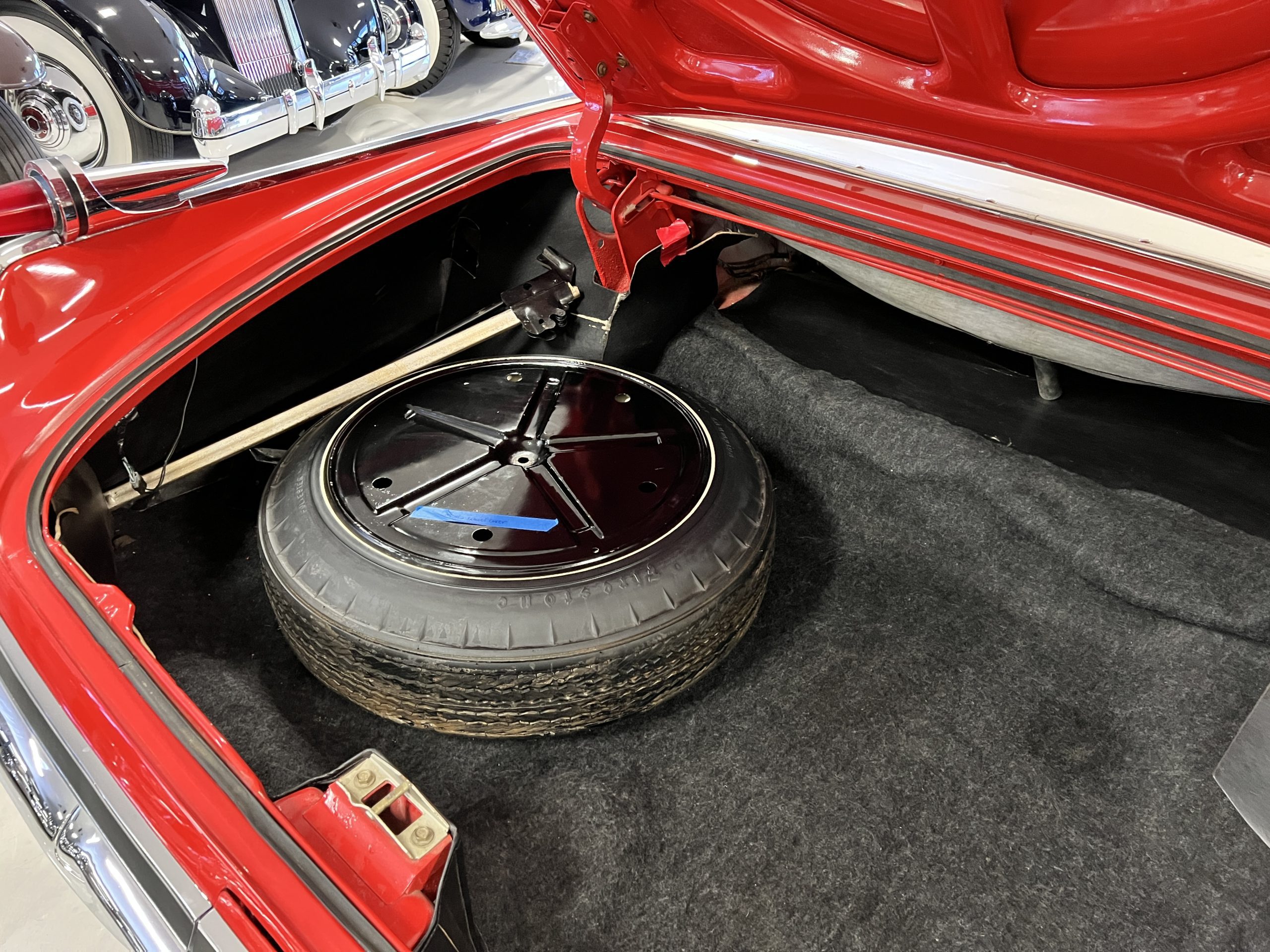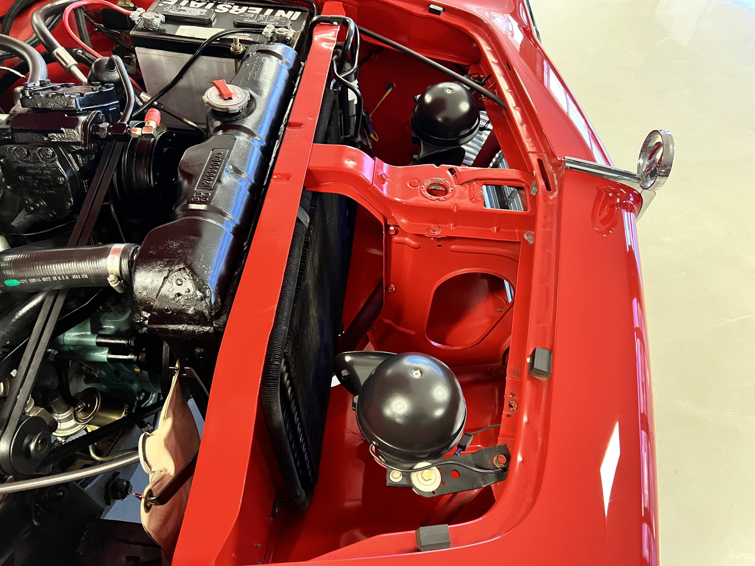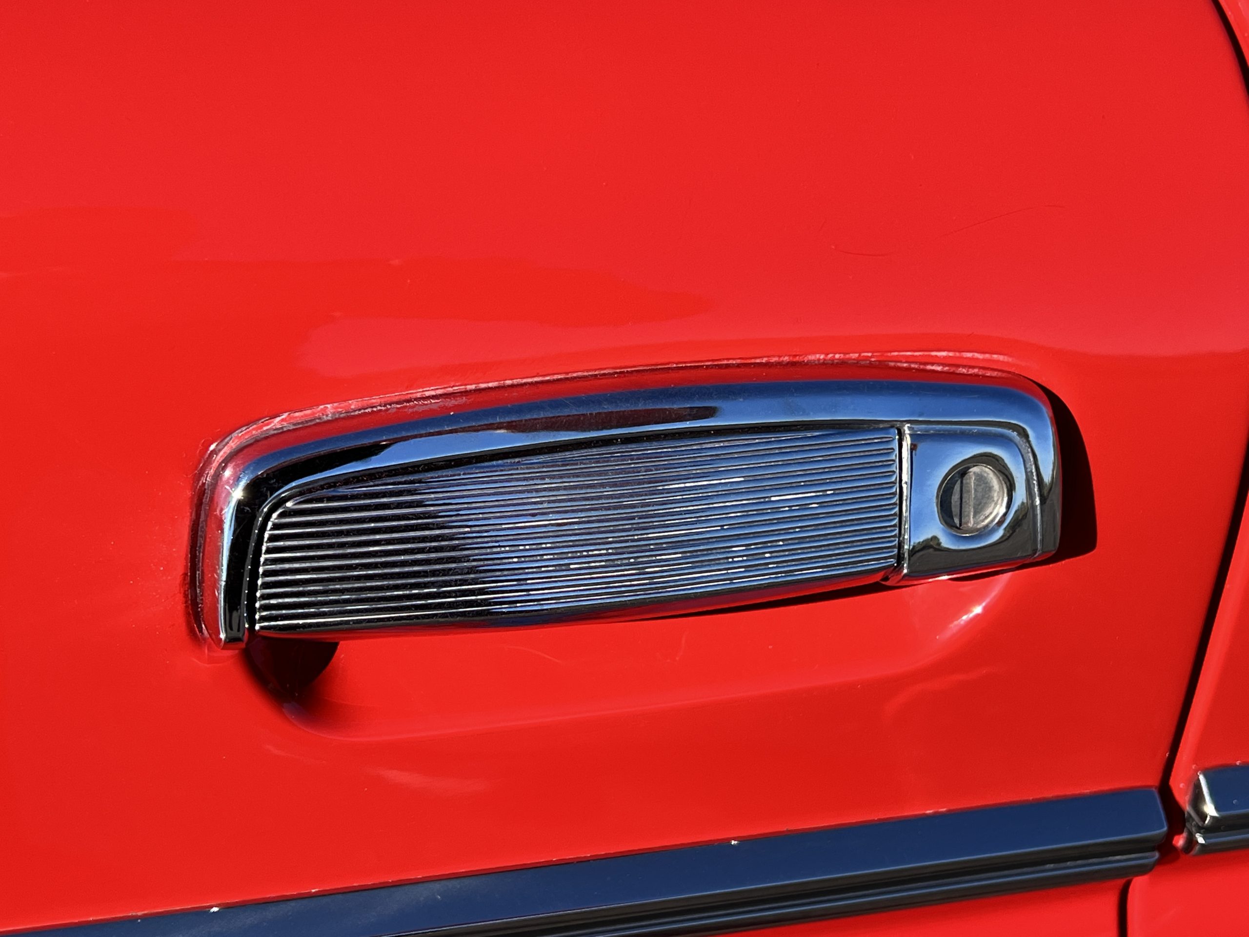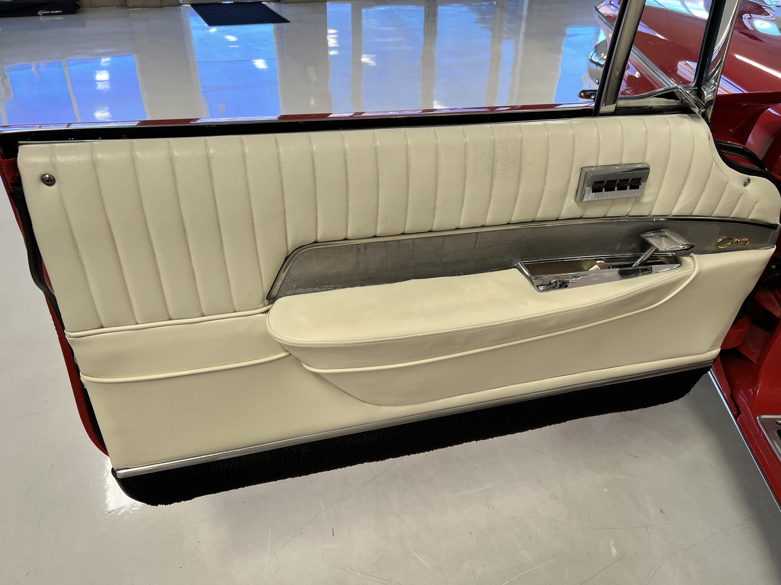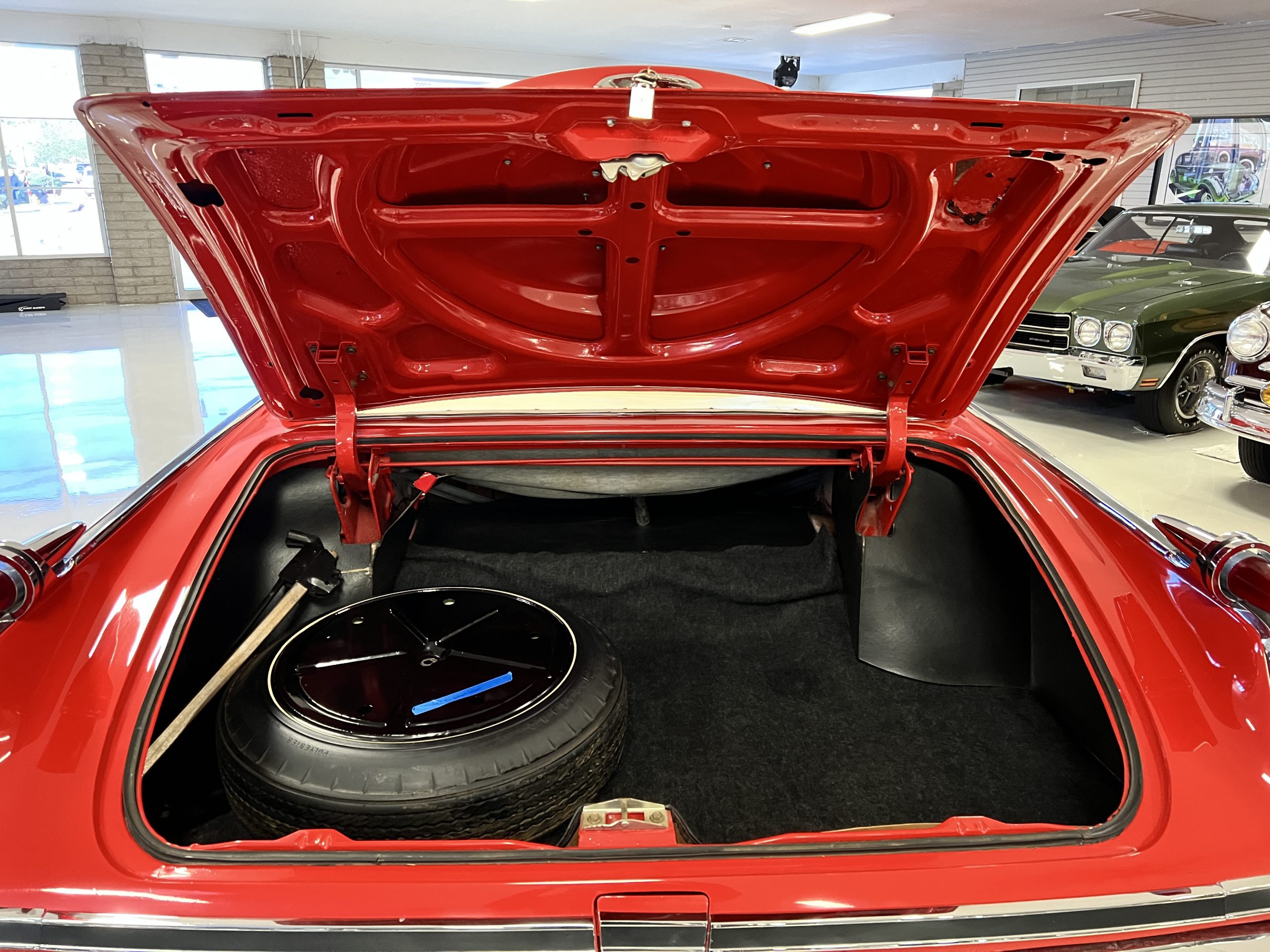 This Imperial features Festival Red (Paint Code A-1264R) livery with its correct white vinyl power convertible top. The paint is in overall excellent touring and show condition, with several small touched up chips from normal use since its restoration. The chrome and stainless are in overall excellent condition with a couple areas with small imperfections. The Imperial wheel covers are in very nice condition and the Coker wide white walled radials look perfect. Overall, the exterior is stunning and while not perfect, in excellent touring and show condition for most all regional and local shows and events.