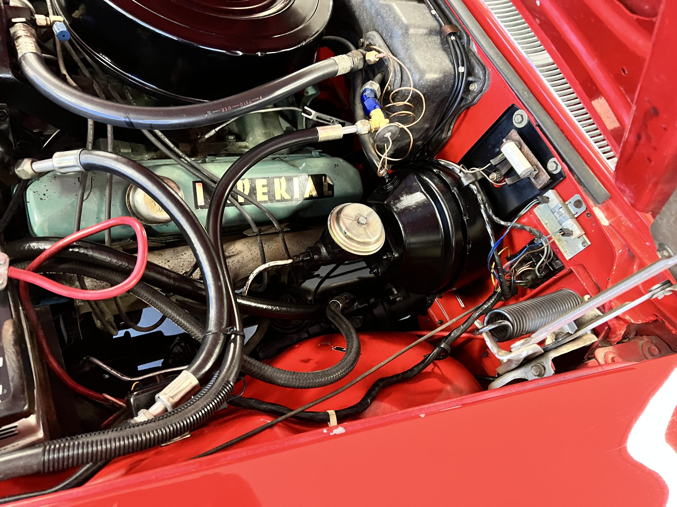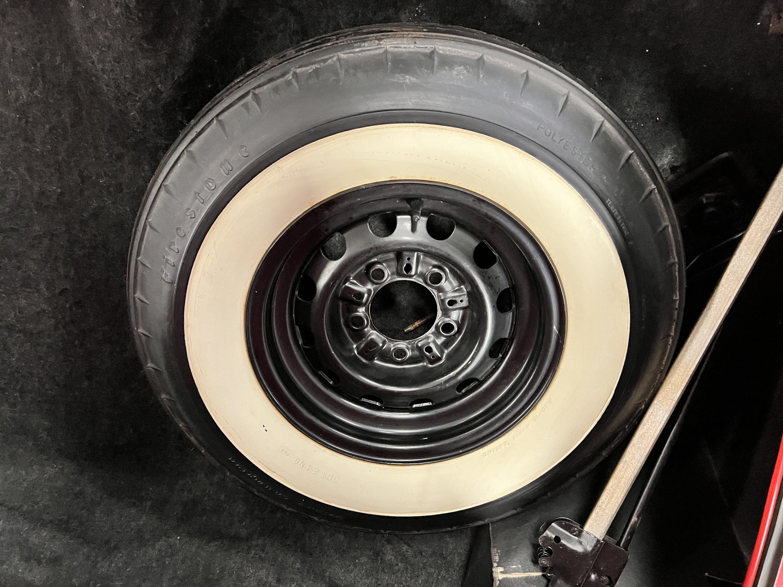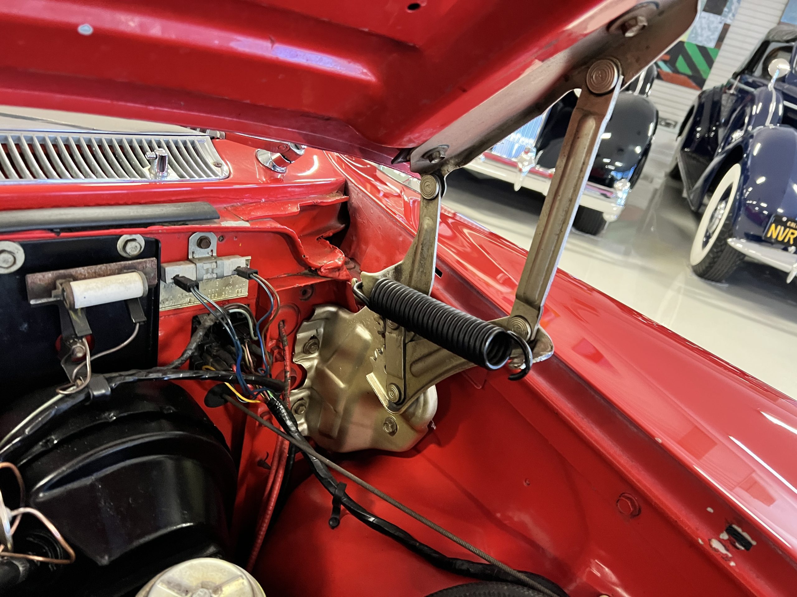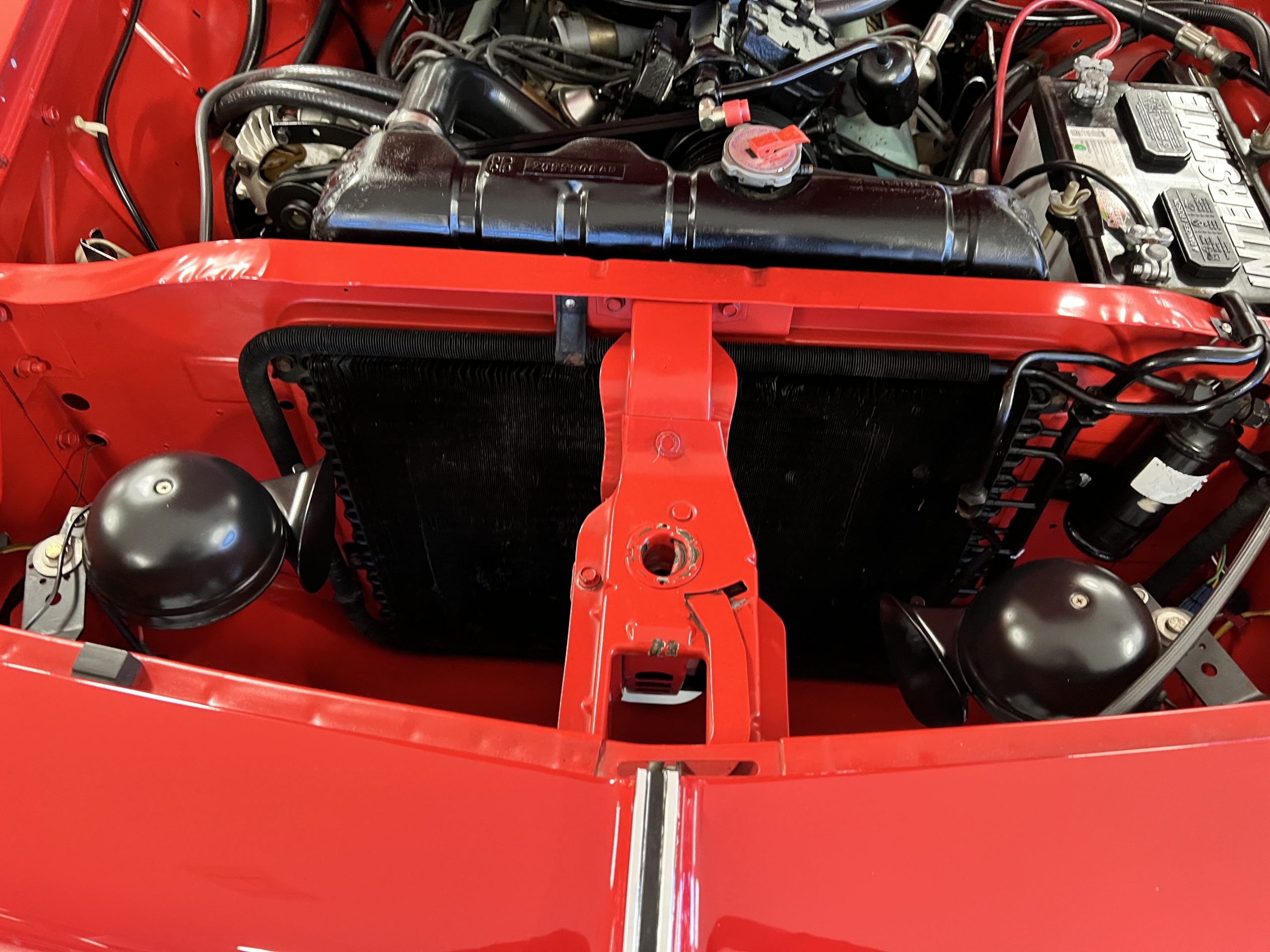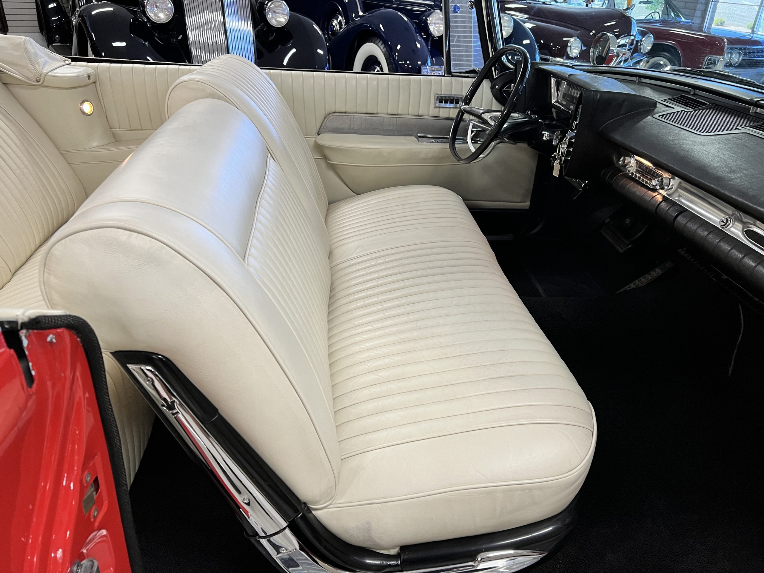 This Imperial features Festival Red (Paint Code A-1264R) livery with its correct white vinyl power convertible top. The paint is in overall excellent touring and show condition, with several small touched up chips from normal use since its restoration. The chrome and stainless are in overall excellent condition with a couple areas with small imperfections. The Imperial wheel covers are in very nice condition and the Coker wide white walled radials look perfect. Overall, the exterior is stunning and while not perfect, in excellent touring and show condition for most all regional and local shows and events.