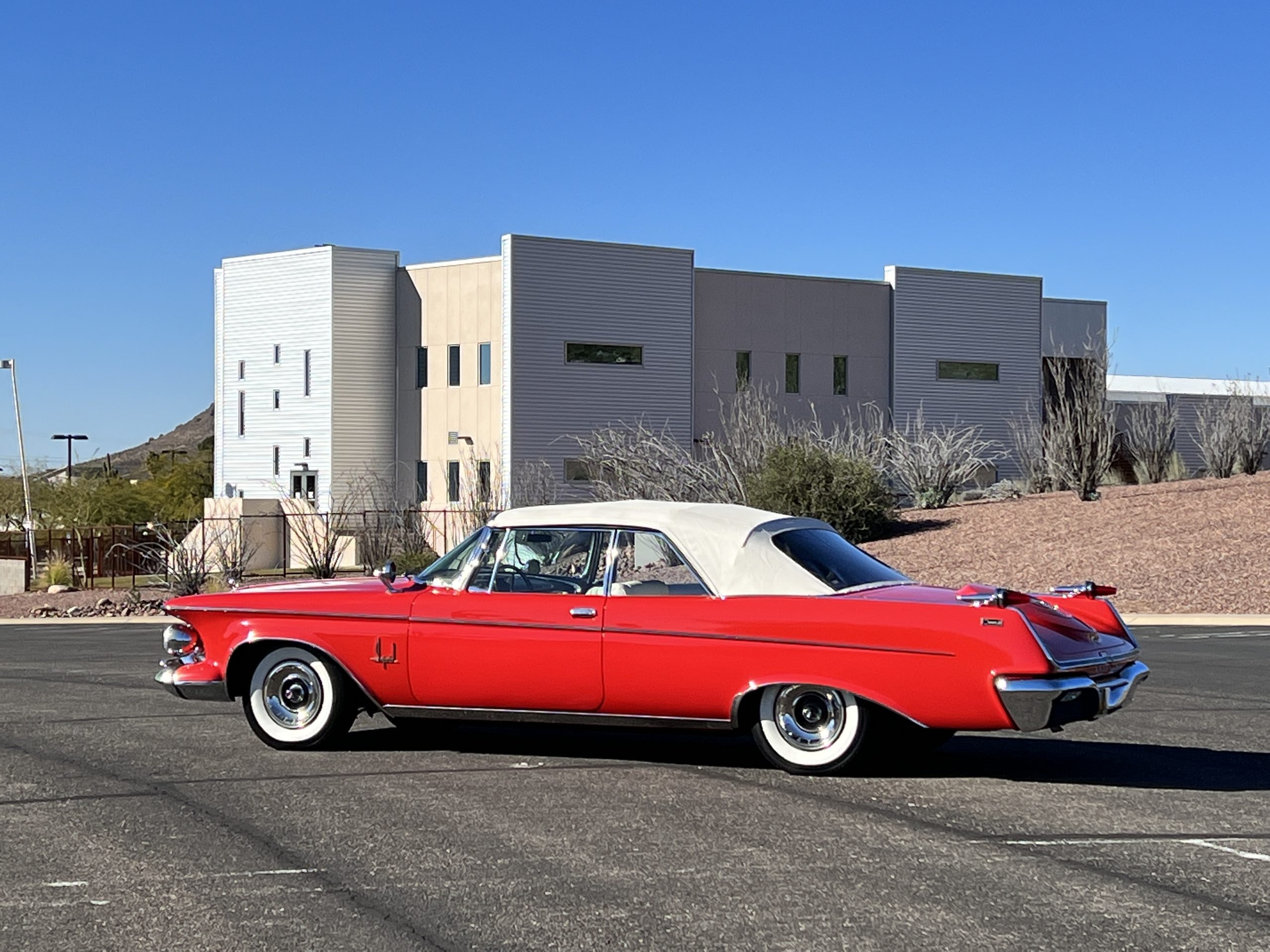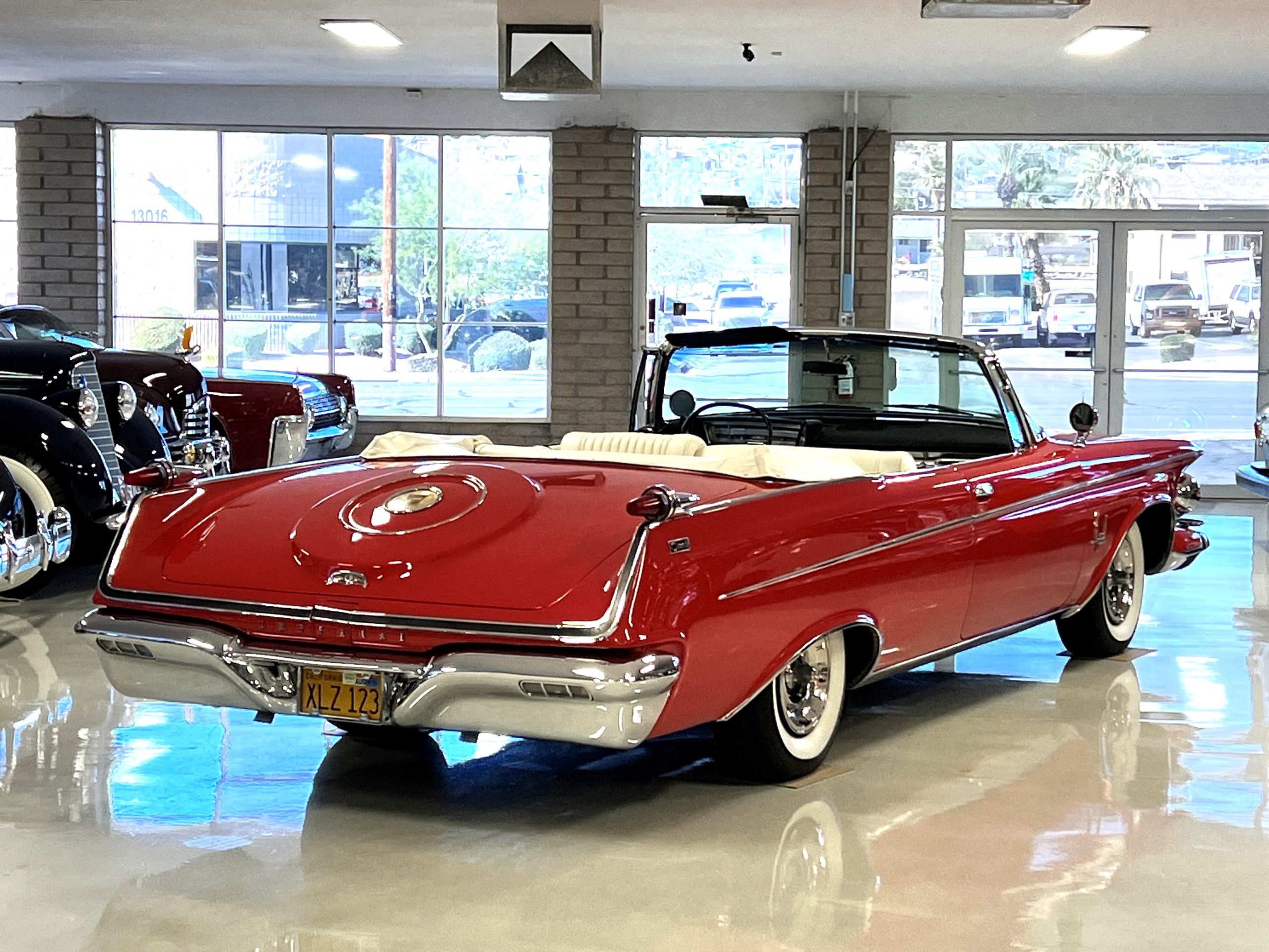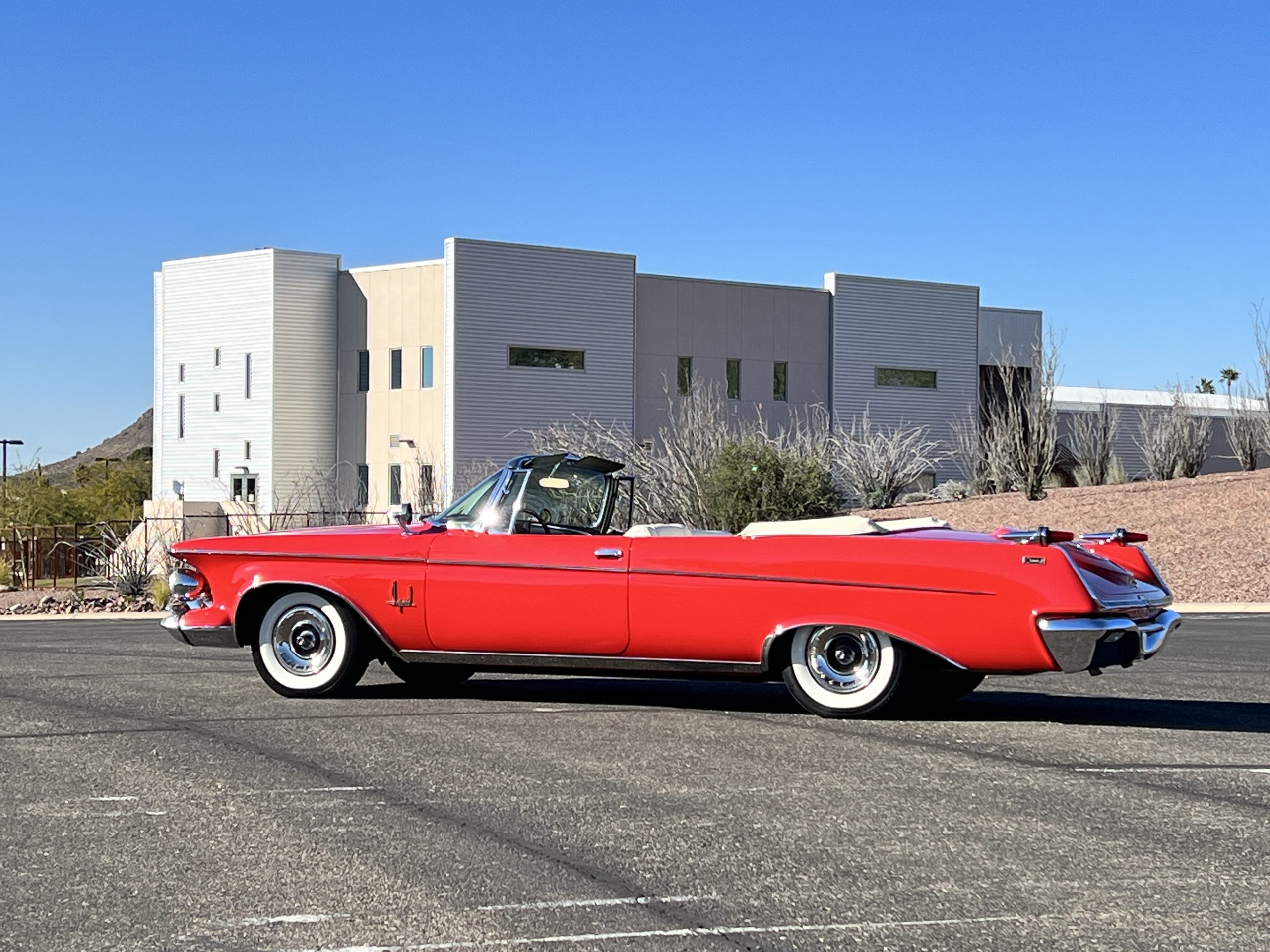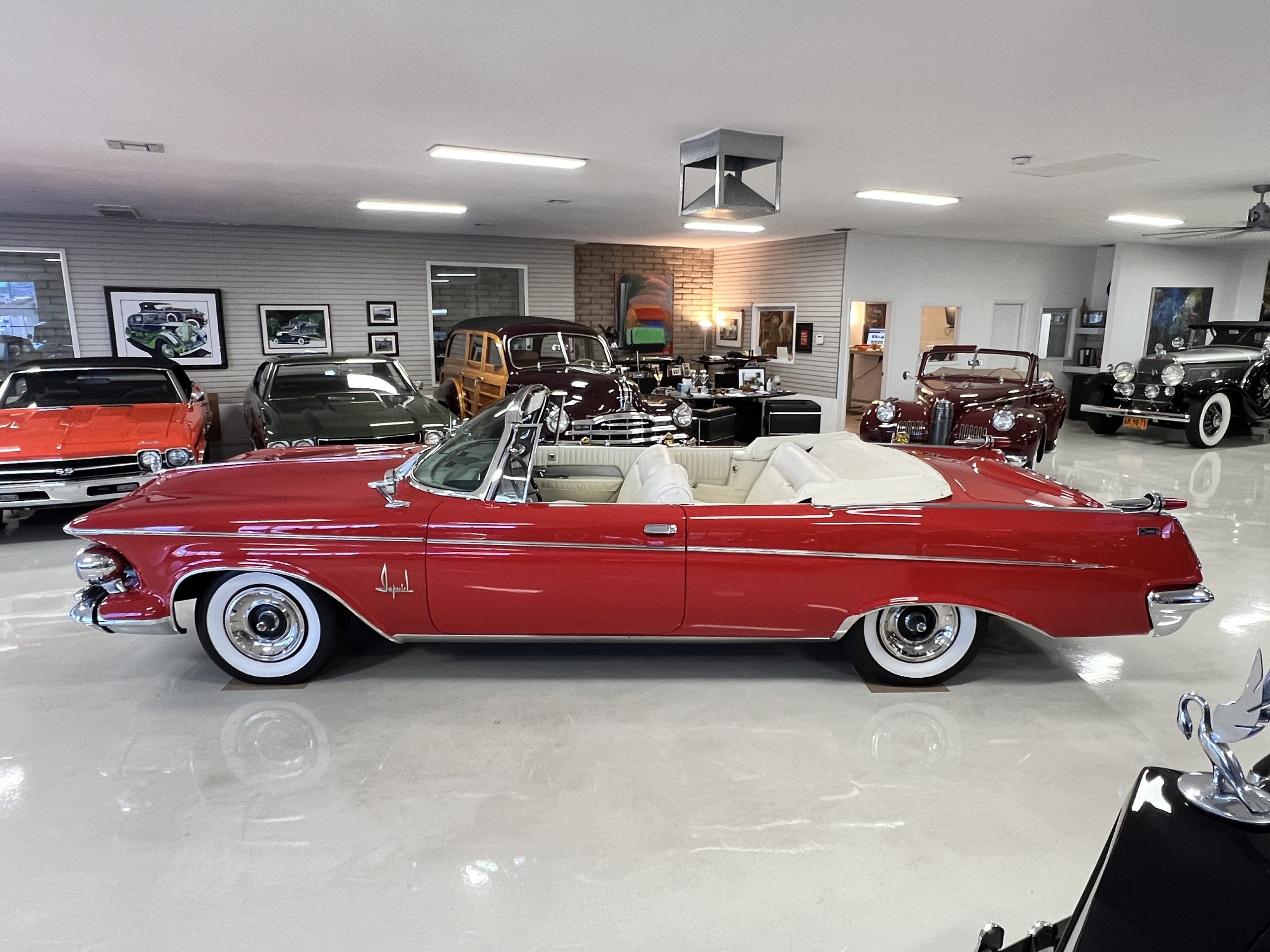 The Imperial Crown was the very top-of-the-line convertible for American made motorcars and was the pinnacle of Virgil Exner’s Chrysler Corporation designs. We love the freestanding pod-style headlights and the “gun sight” taillights as well as the clean side design with the single belt line molding running the length of the car. It is, in our opinion, the most important classical mid-century design for an American open car. It is also our opinion that they are the best engineered American car made of the era.