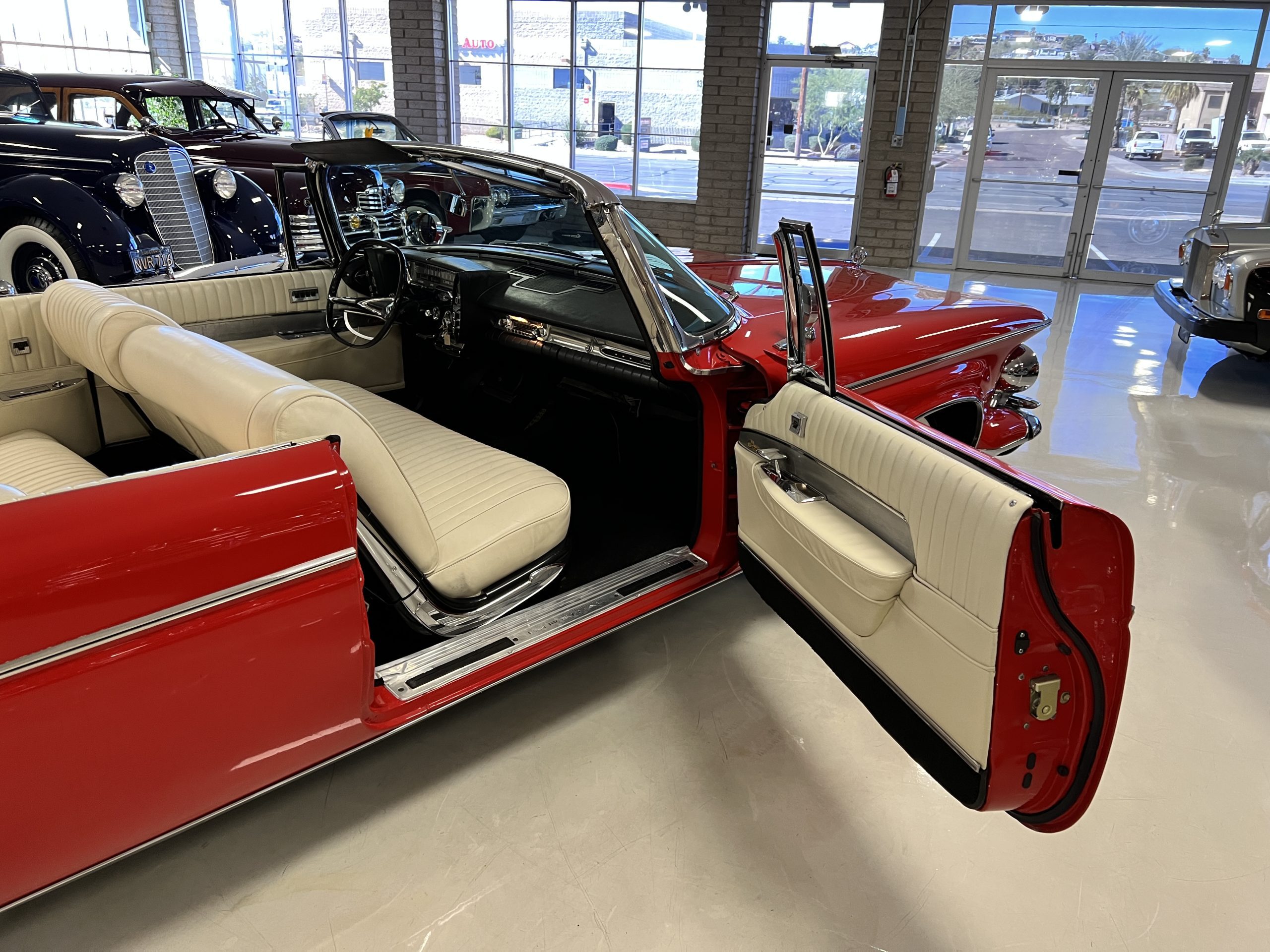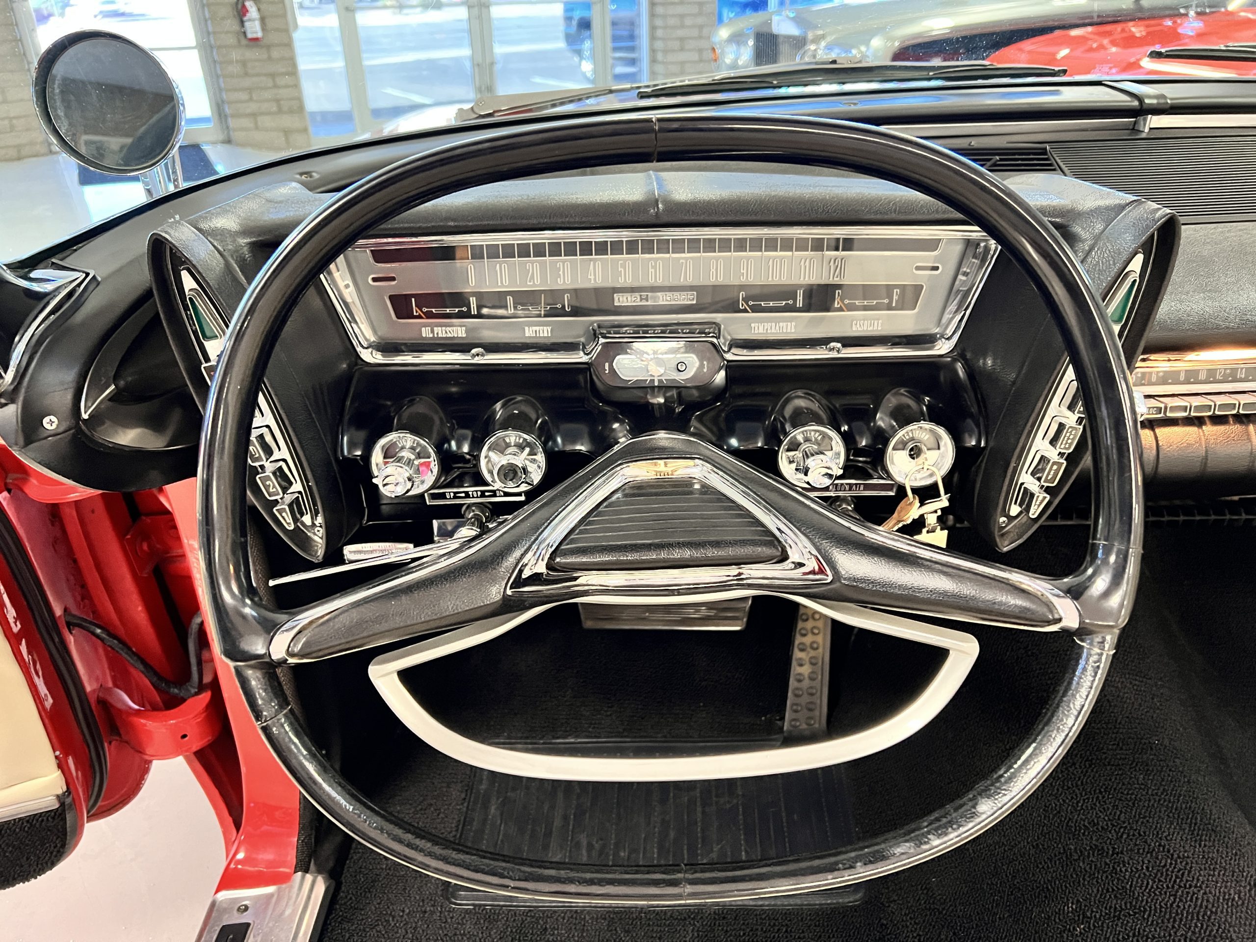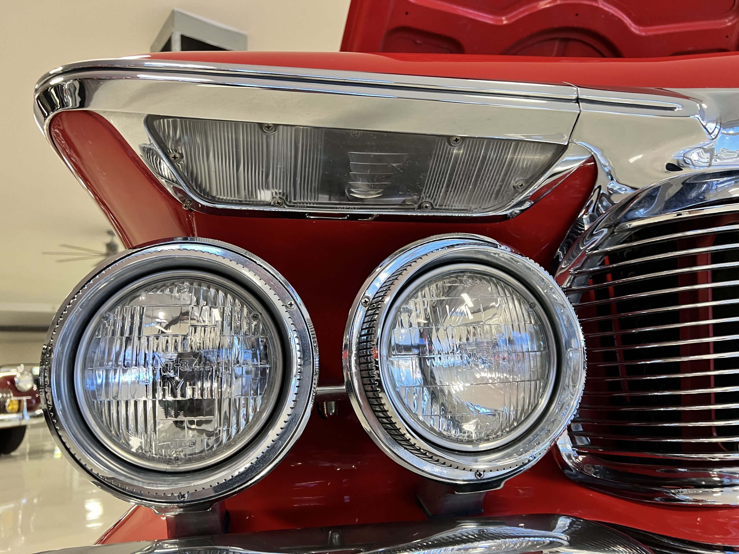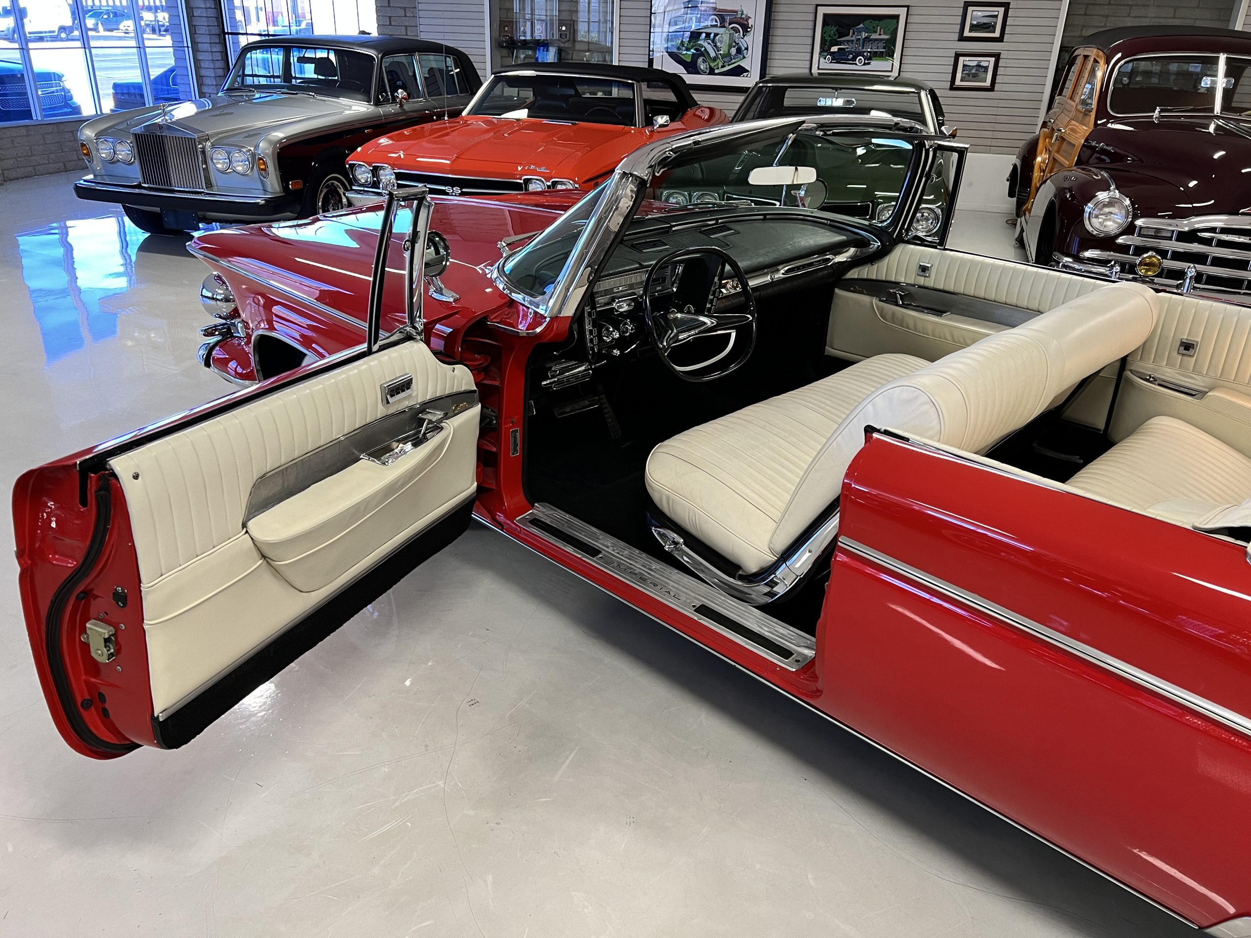 The Imperial Crown was the very top-of-the-line convertible for American made motorcars and was the pinnacle of Virgil Exner’s Chrysler Corporation designs. We love the freestanding pod-style headlights and the “gun sight” taillights as well as the clean side design with the single belt line molding running the length of the car. It is, in our opinion, the most important classical mid-century design for an American open car. It is also our opinion that they are the best engineered American car made of the era.