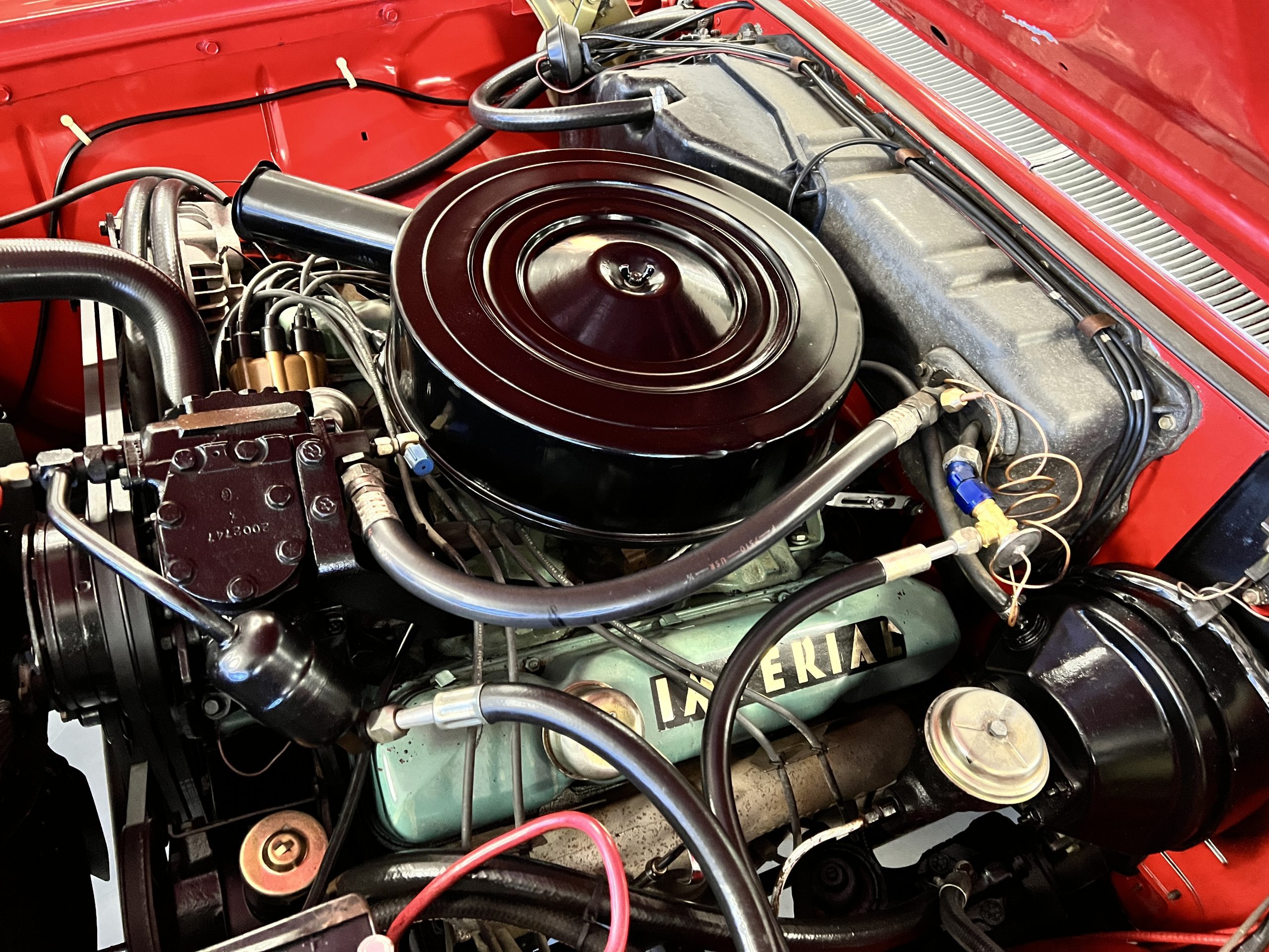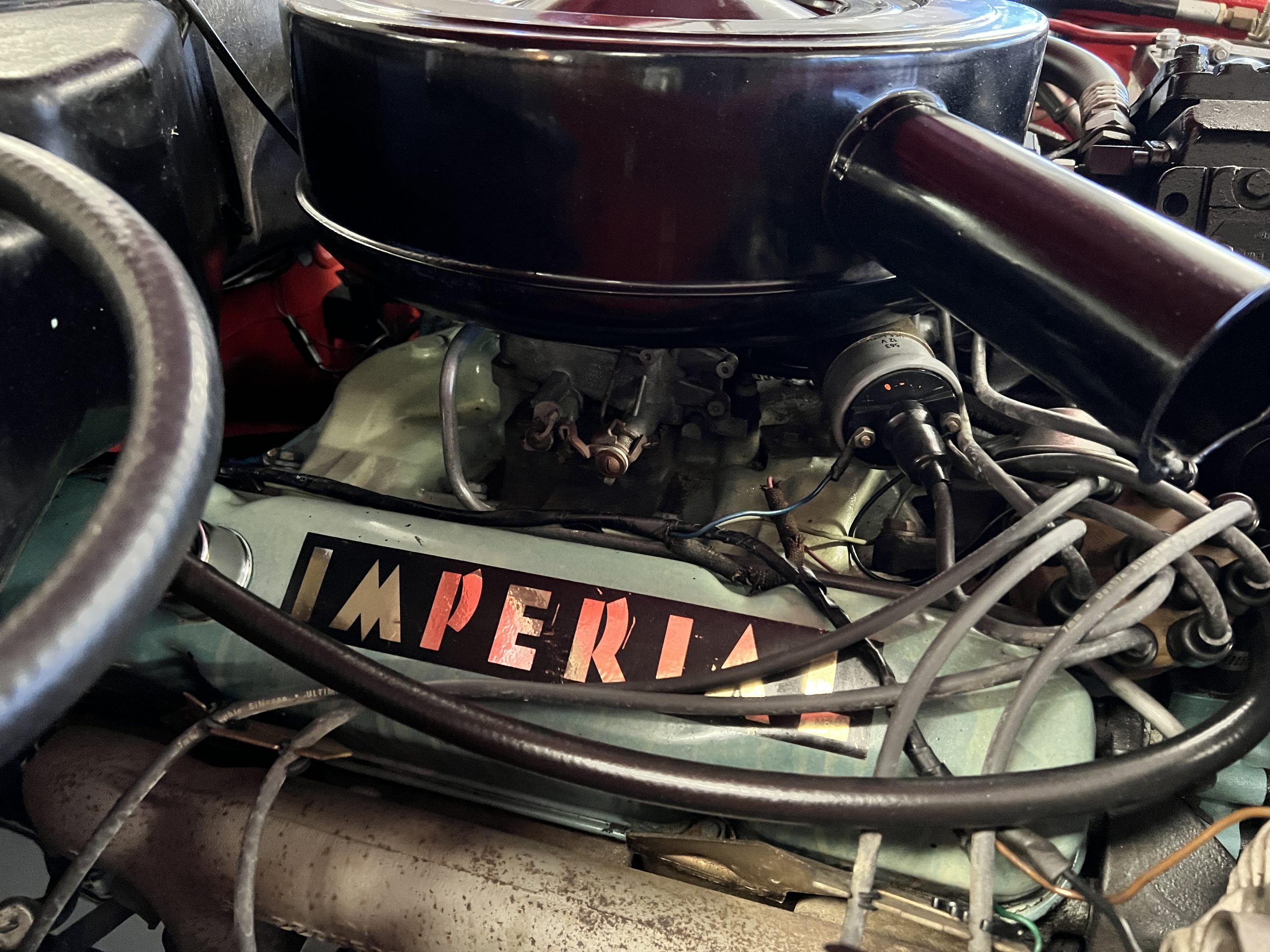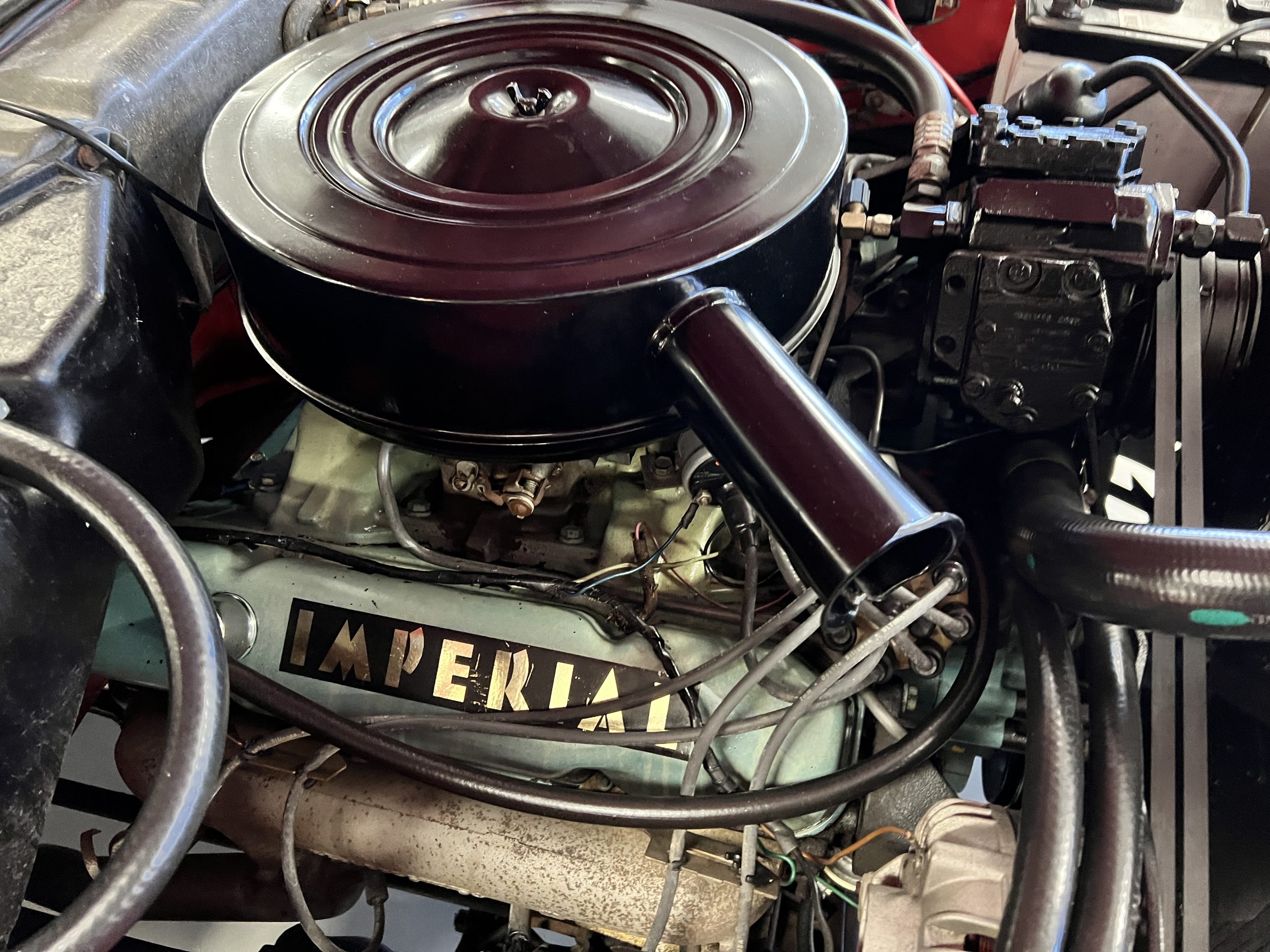 One of the hallmarks of the Imperial is the venerable 413 CID “wedge” V-8 which provides 340 hp through the three-speed Torqueflight automatic transmission. The 129” wheelbase helps provide an incredibly smooth ride and the massive power of the engine provide exhilarating performance for a car of this size. The engine compartment is very clean and well detailed. The chassis was completely cleaned and painted when restored and shows normal use since. As with the rest of this Imperial, it makes an excellent car to drive and enjoy, while nice enough to show at nearly any event.