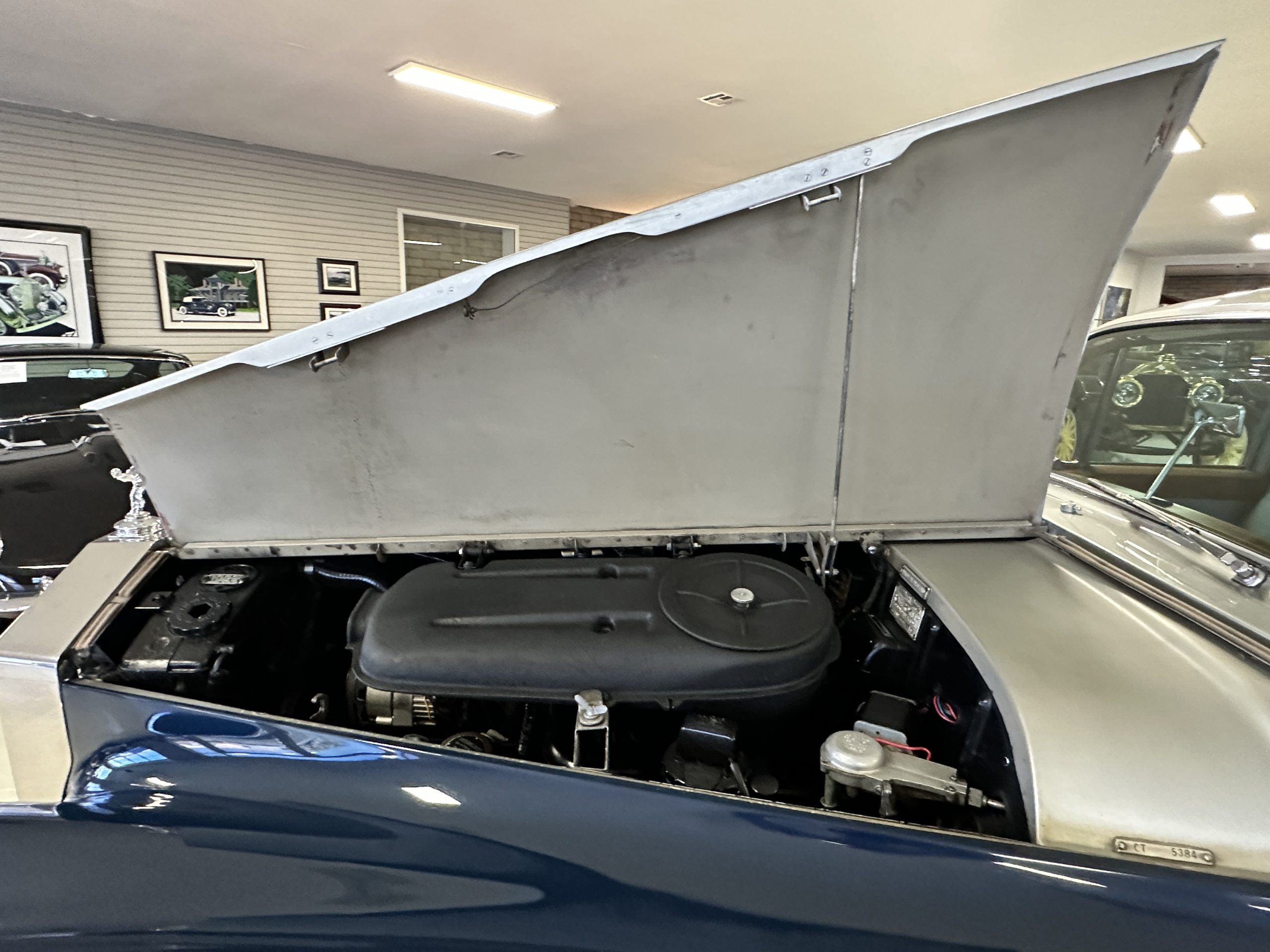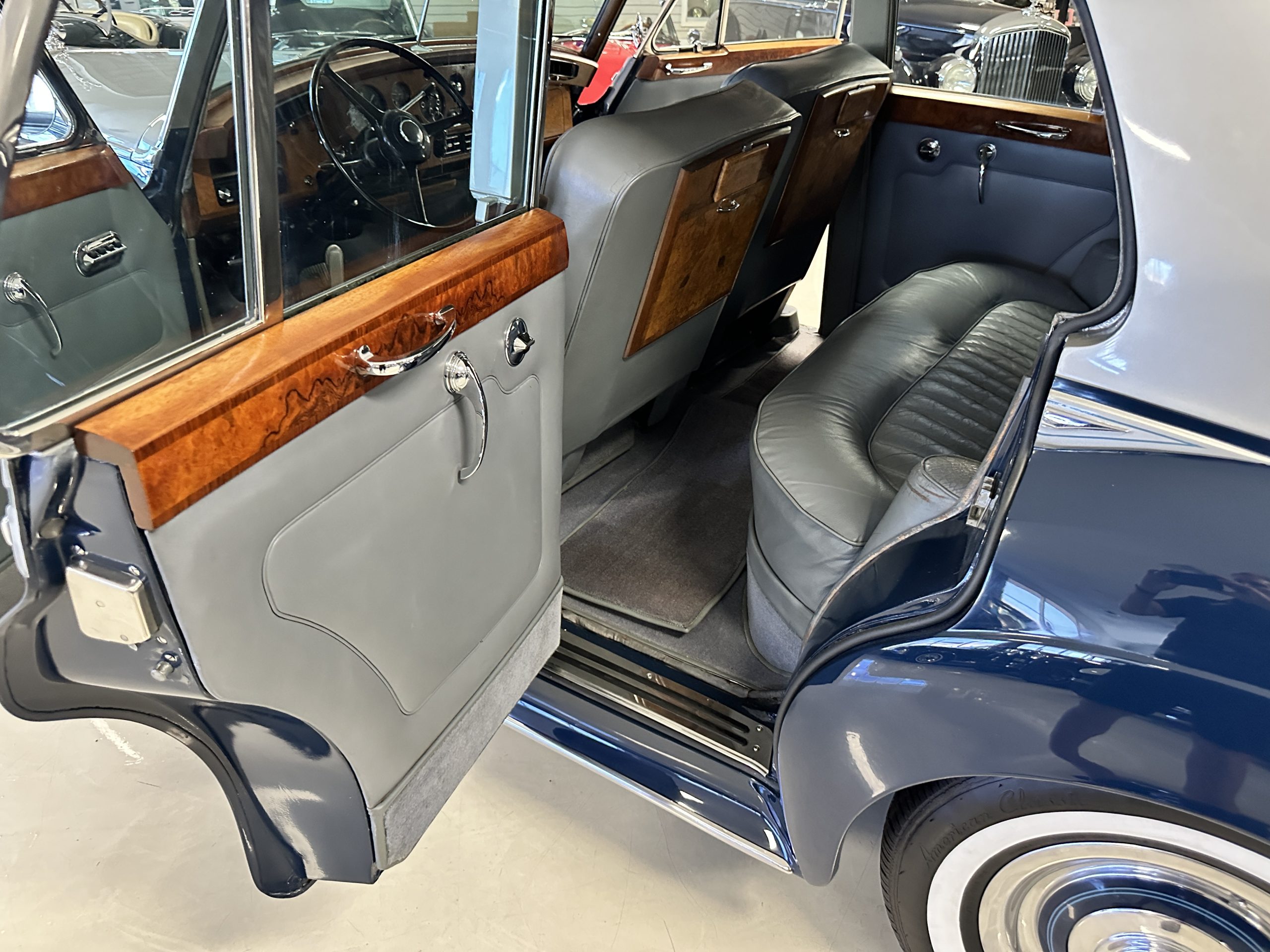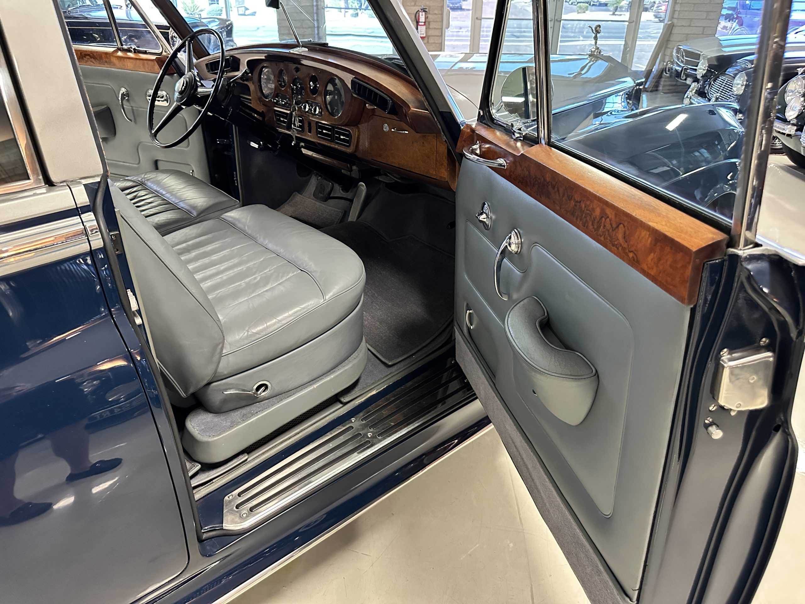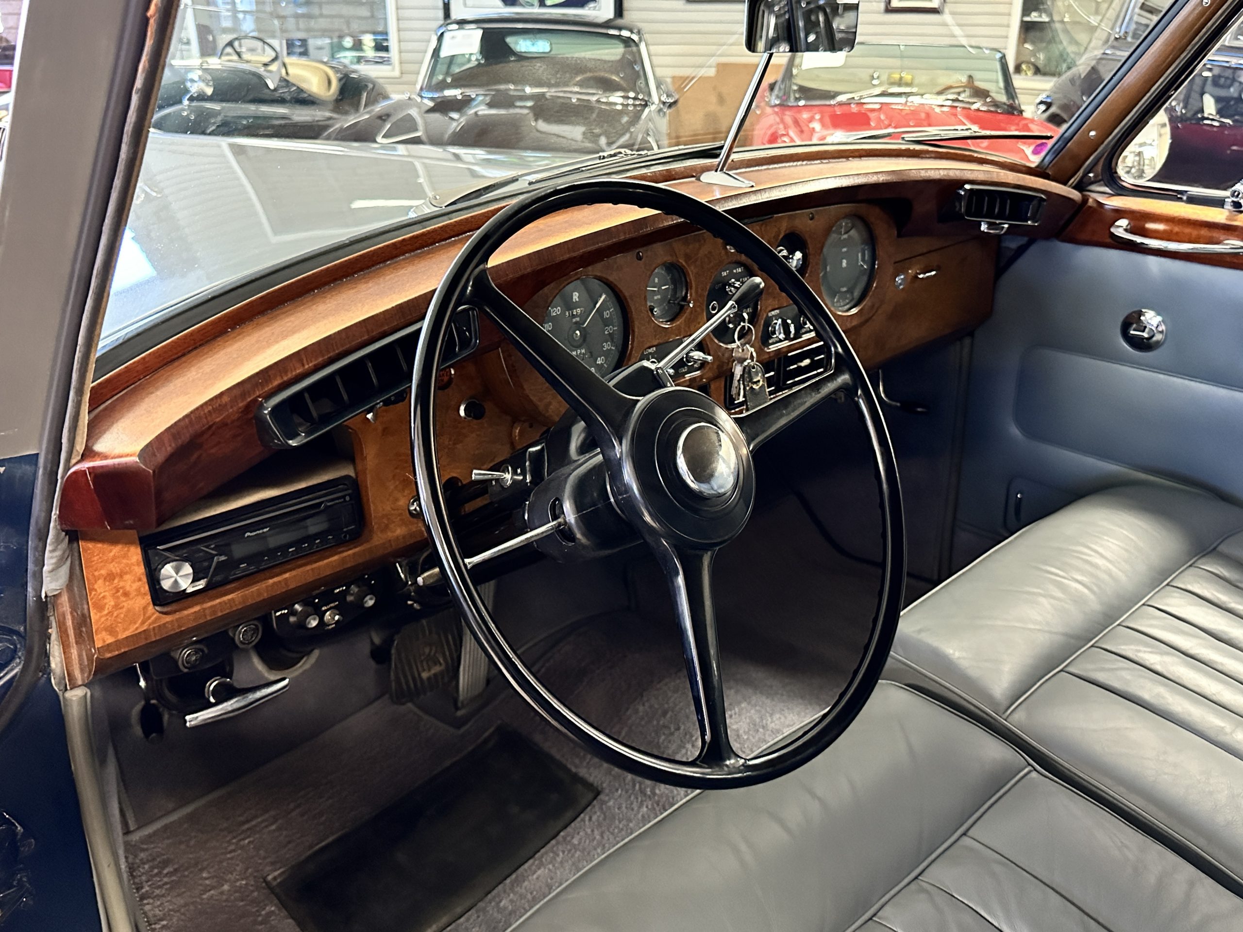 The livery is stunning in its newly painted two-toned Shell Gray over Dark Blue with Light Blue pinstriping. The paint is gorgeous and was done correctly as per the factory scheme for two toned Silver Clouds. The chrome and stainless-steel trim are beautiful and there are only minimal small dings in the bumper overriders. The wide white walled Coker American Classic radials allow for a comfortable and safe ride. Overall, the exterior is in excellent condition.