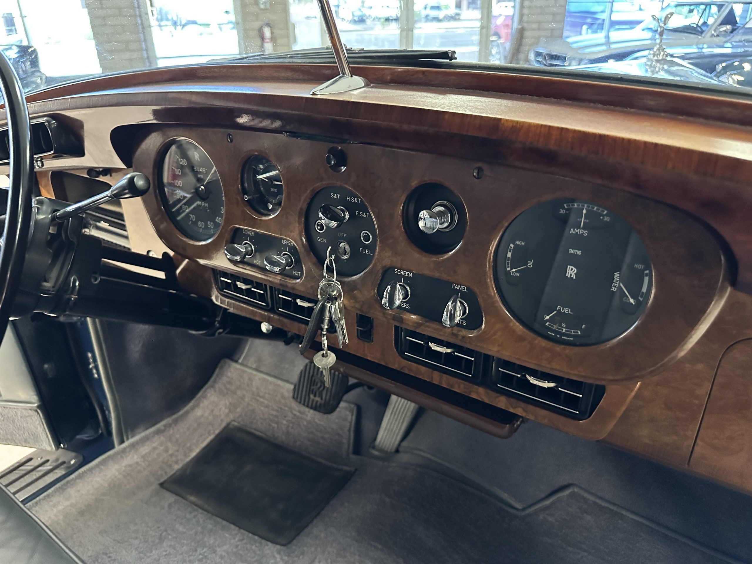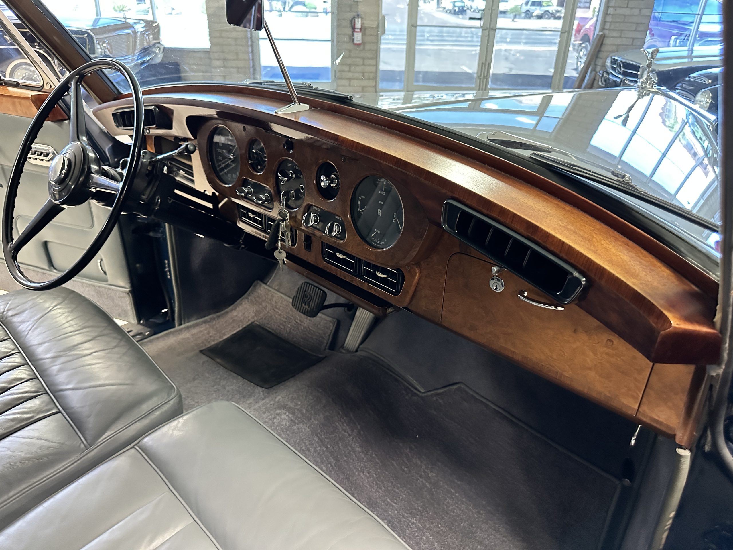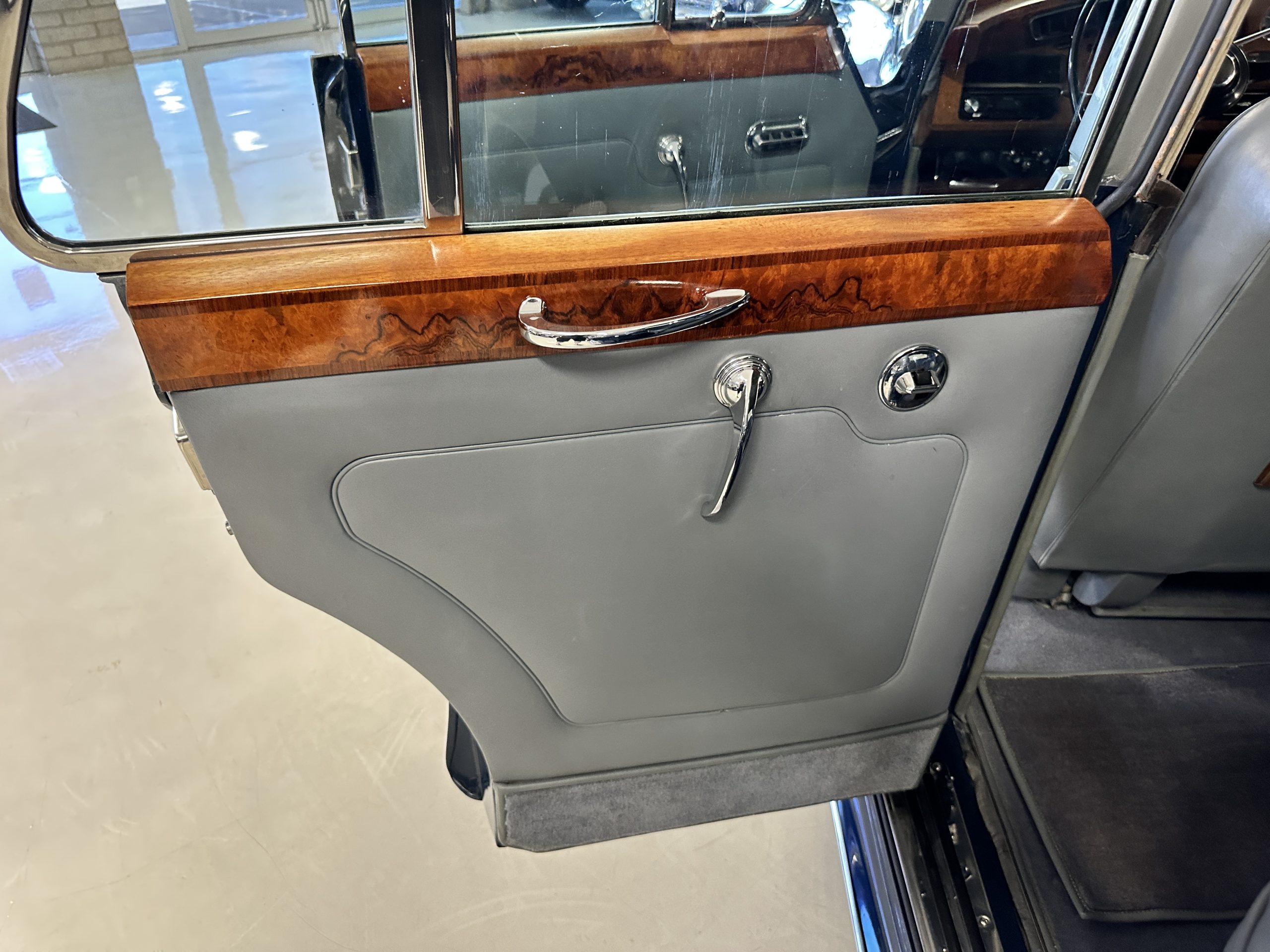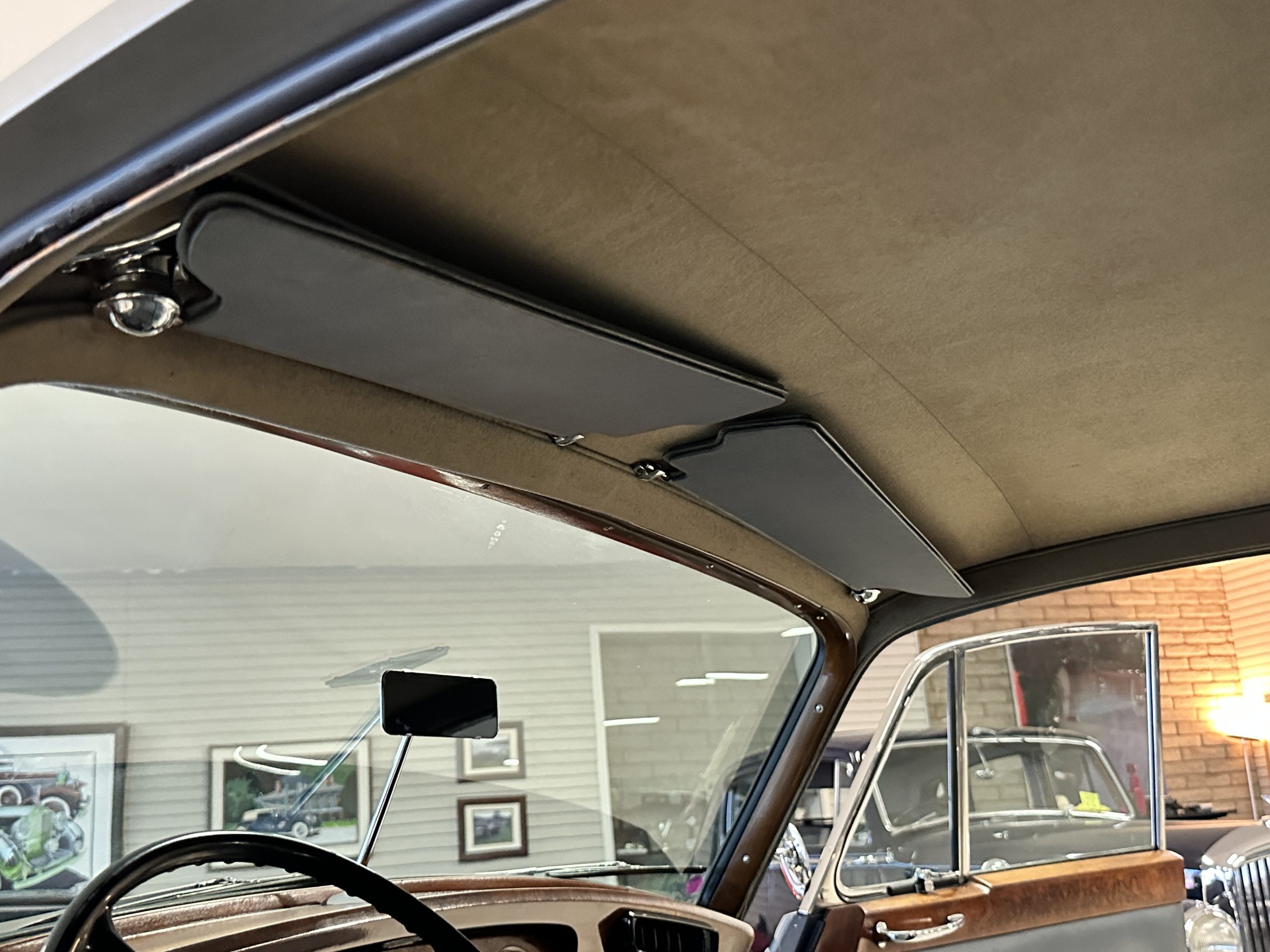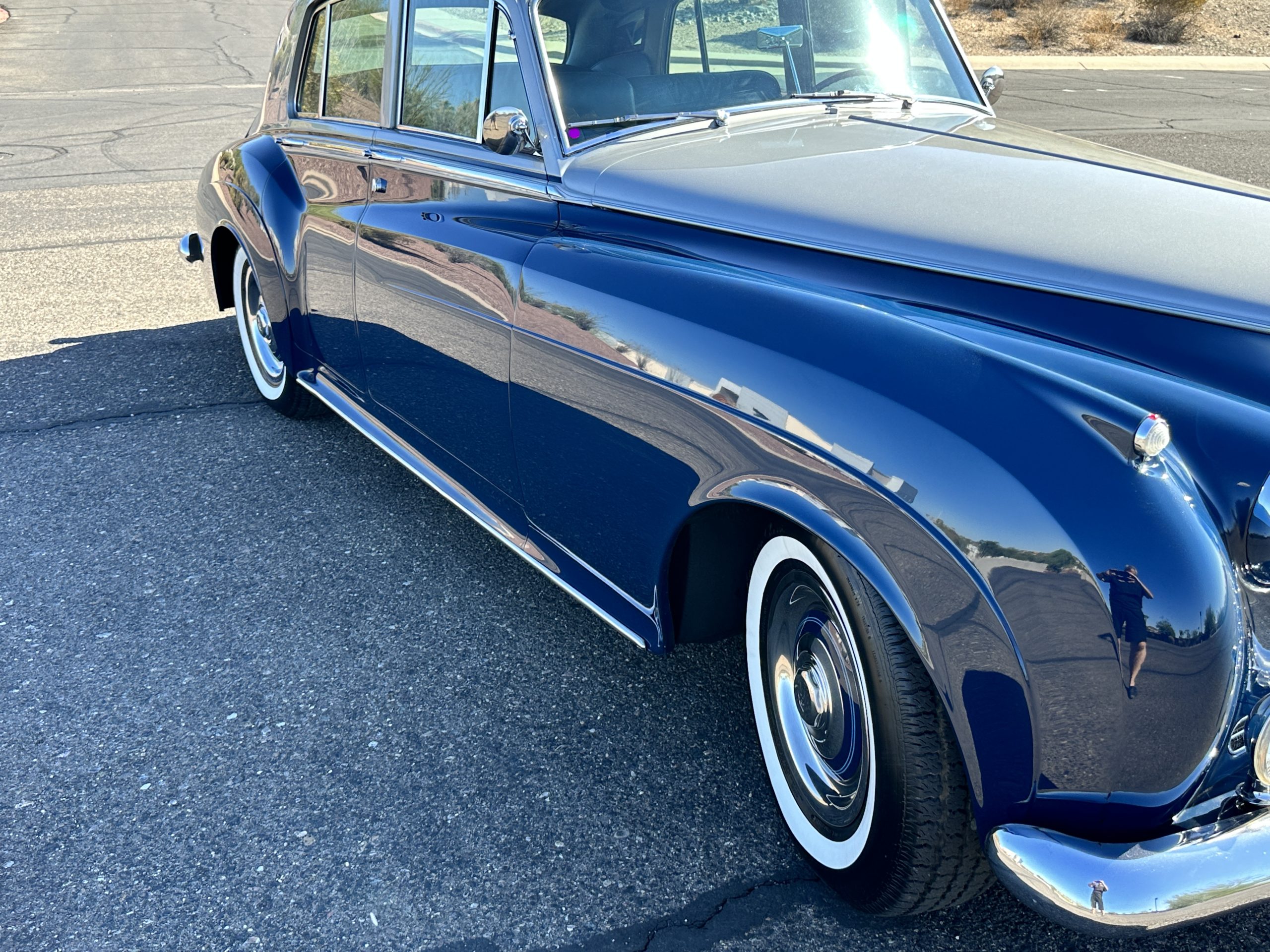 The livery is stunning in its newly painted two-toned Shell Gray over Dark Blue with Light Blue pinstriping. The paint is gorgeous and was done correctly as per the factory scheme for two toned Silver Clouds. The chrome and stainless-steel trim are beautiful and there are only minimal small dings in the bumper overriders. The wide white walled Coker American Classic radials allow for a comfortable and safe ride. Overall, the exterior is in excellent condition.