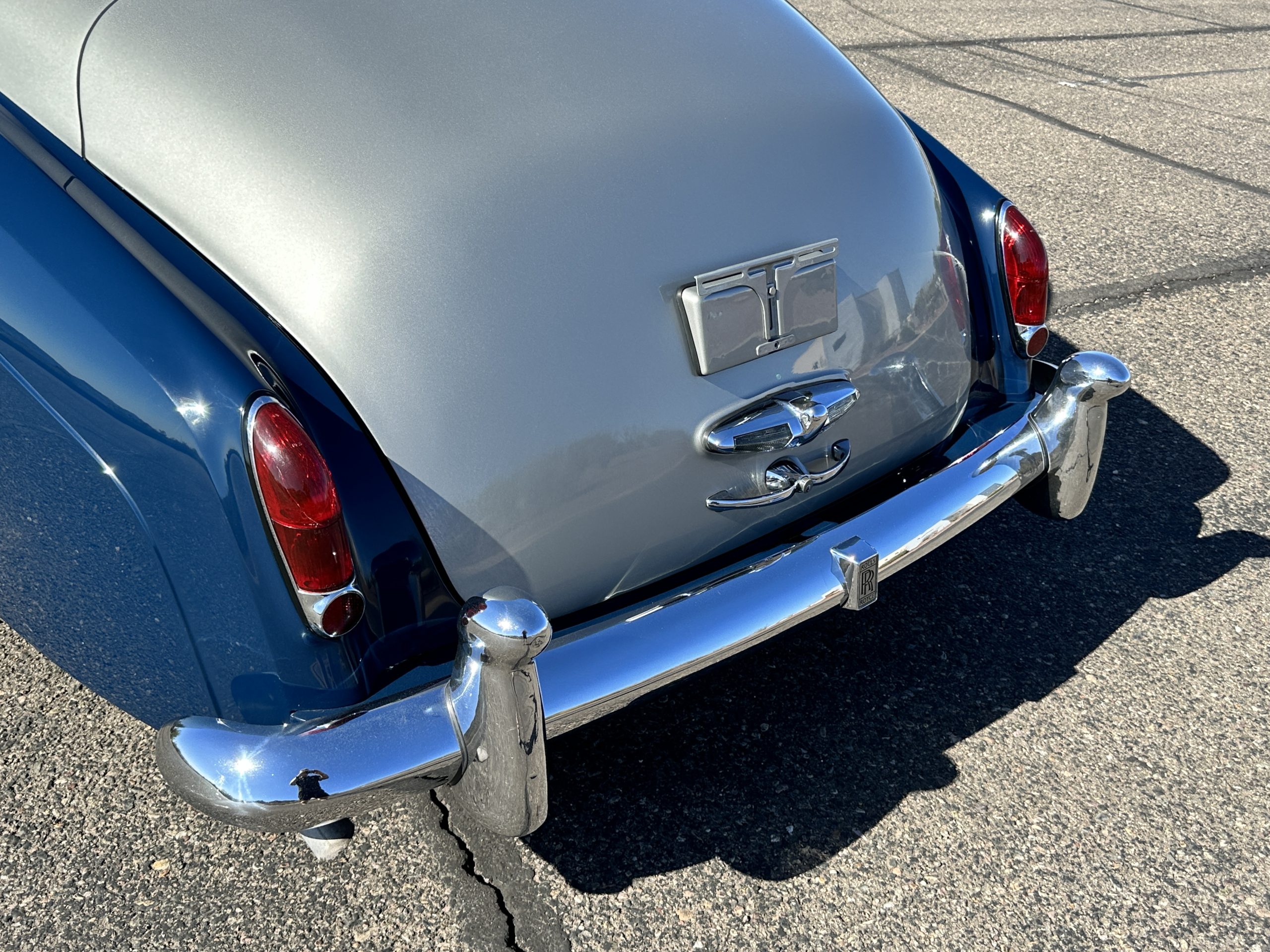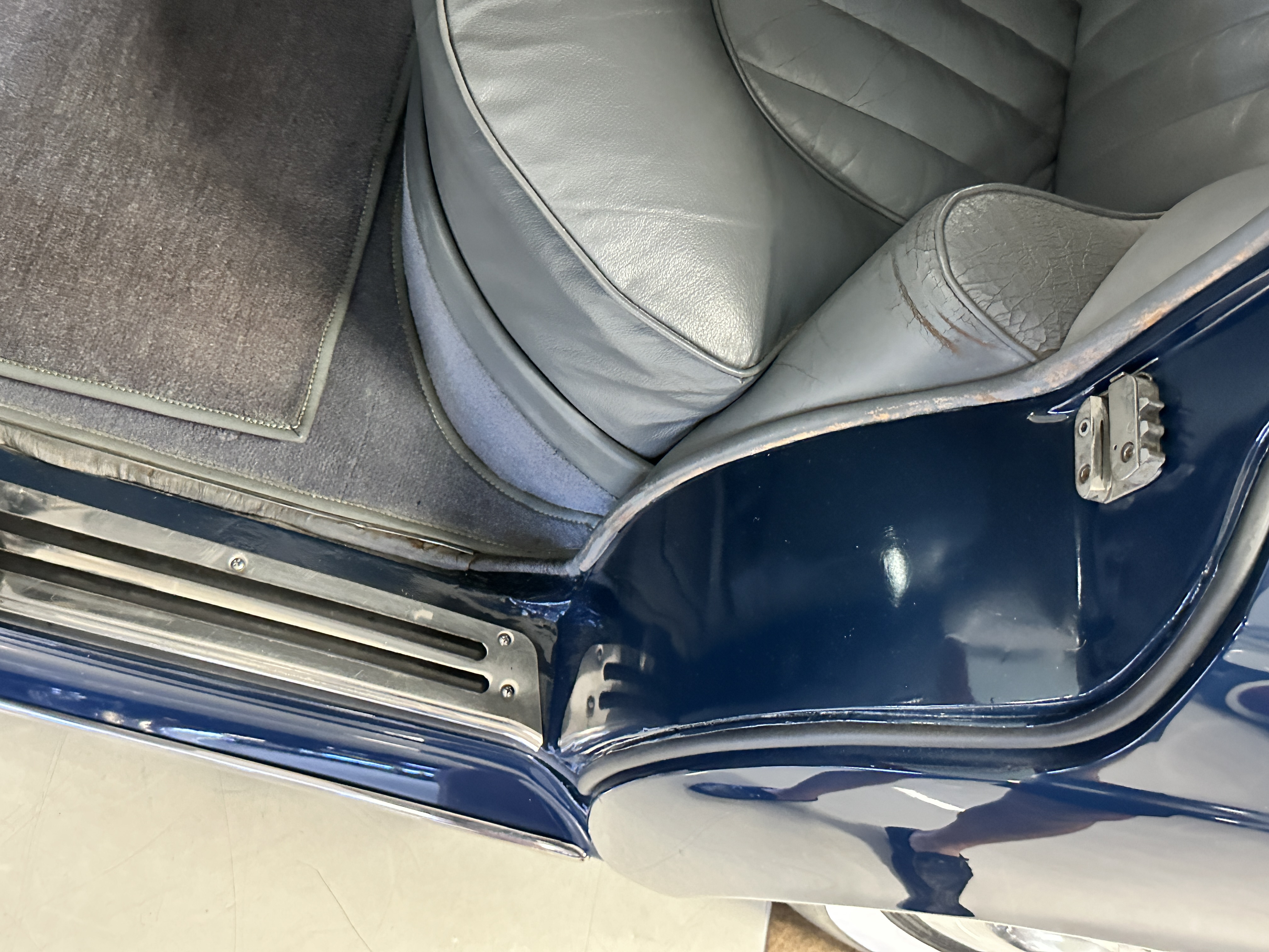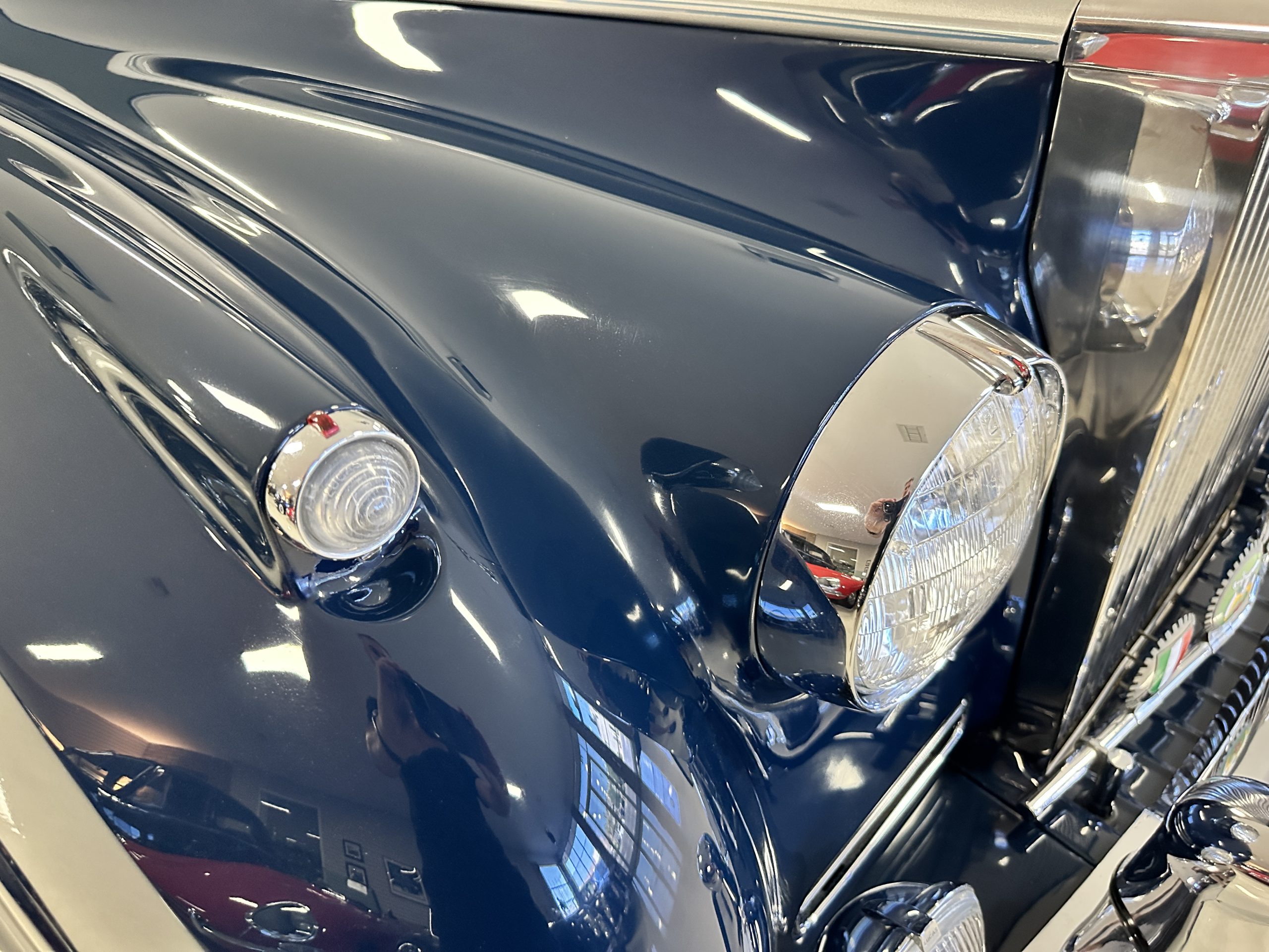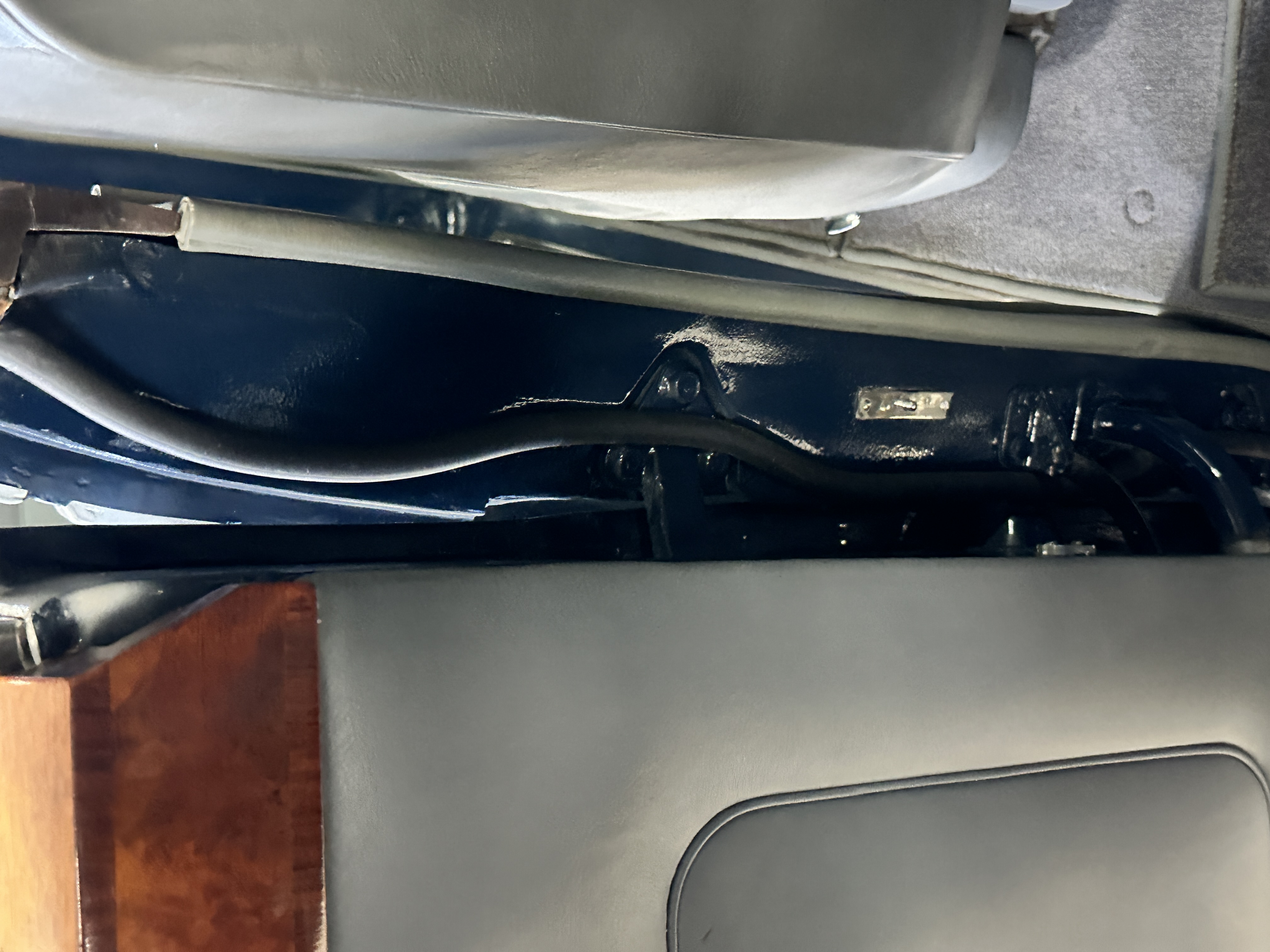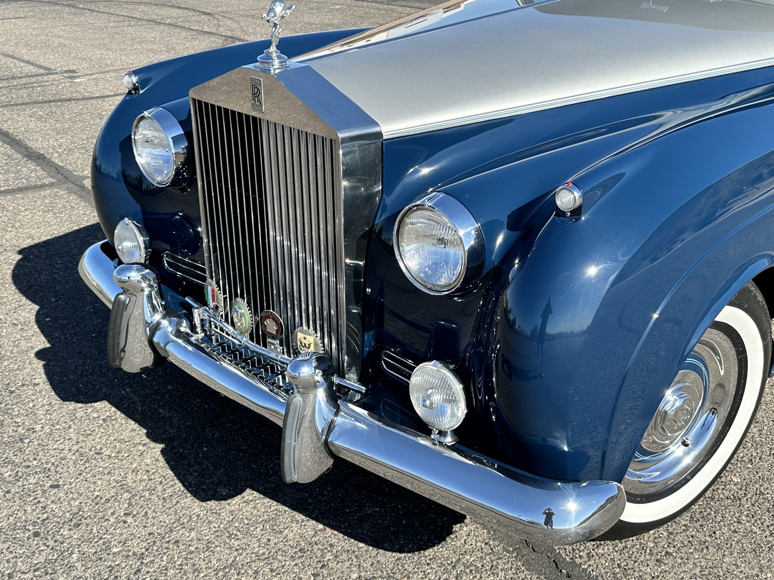 The livery is stunning in its newly painted two-toned Shell Gray over Dark Blue with Light Blue pinstriping. The paint is gorgeous and was done correctly as per the factory scheme for two toned Silver Clouds. The chrome and stainless-steel trim are beautiful and there are only minimal small dings in the bumper overriders. The wide white walled Coker American Classic radials allow for a comfortable and safe ride. Overall, the exterior is in excellent condition.