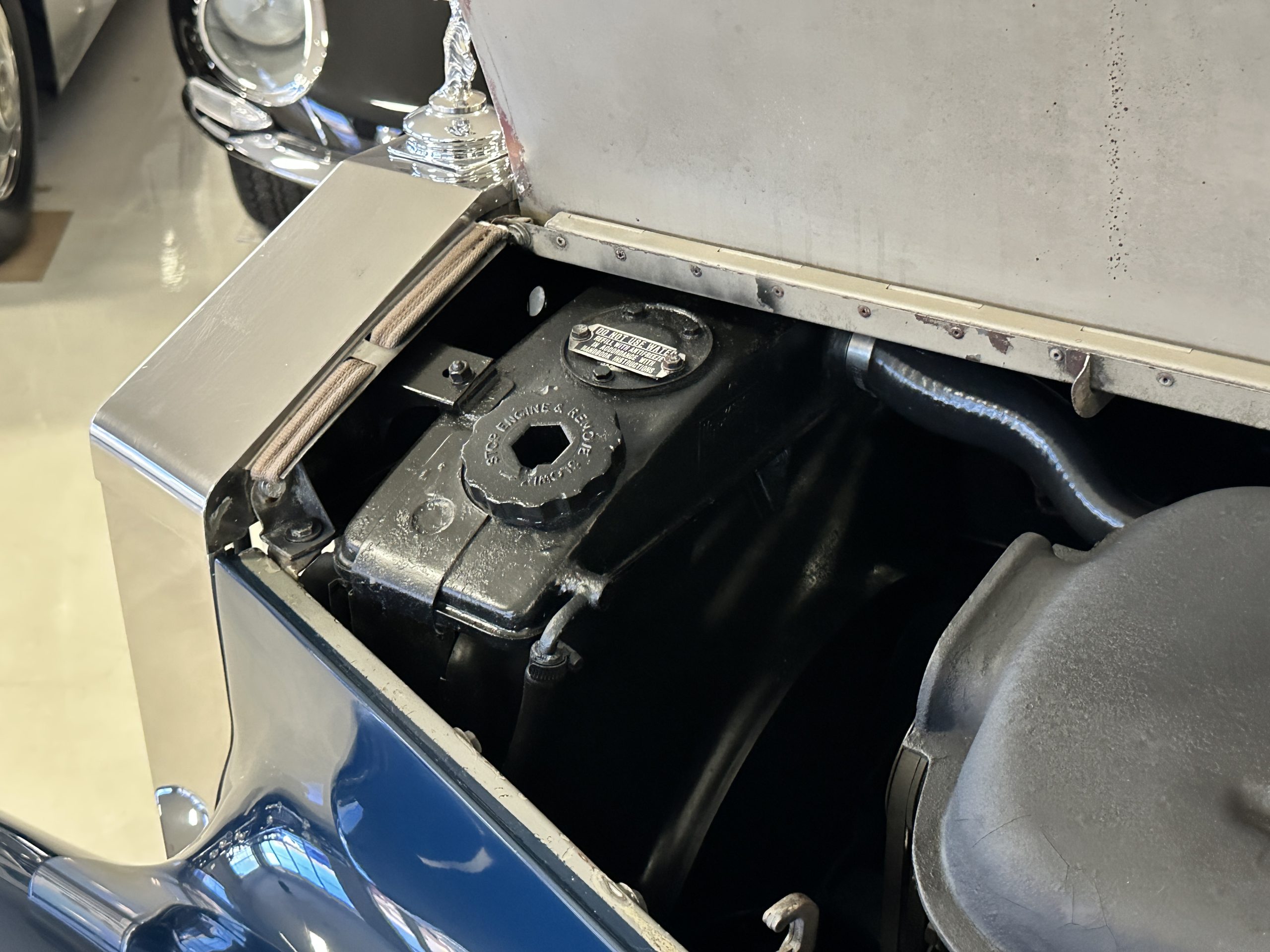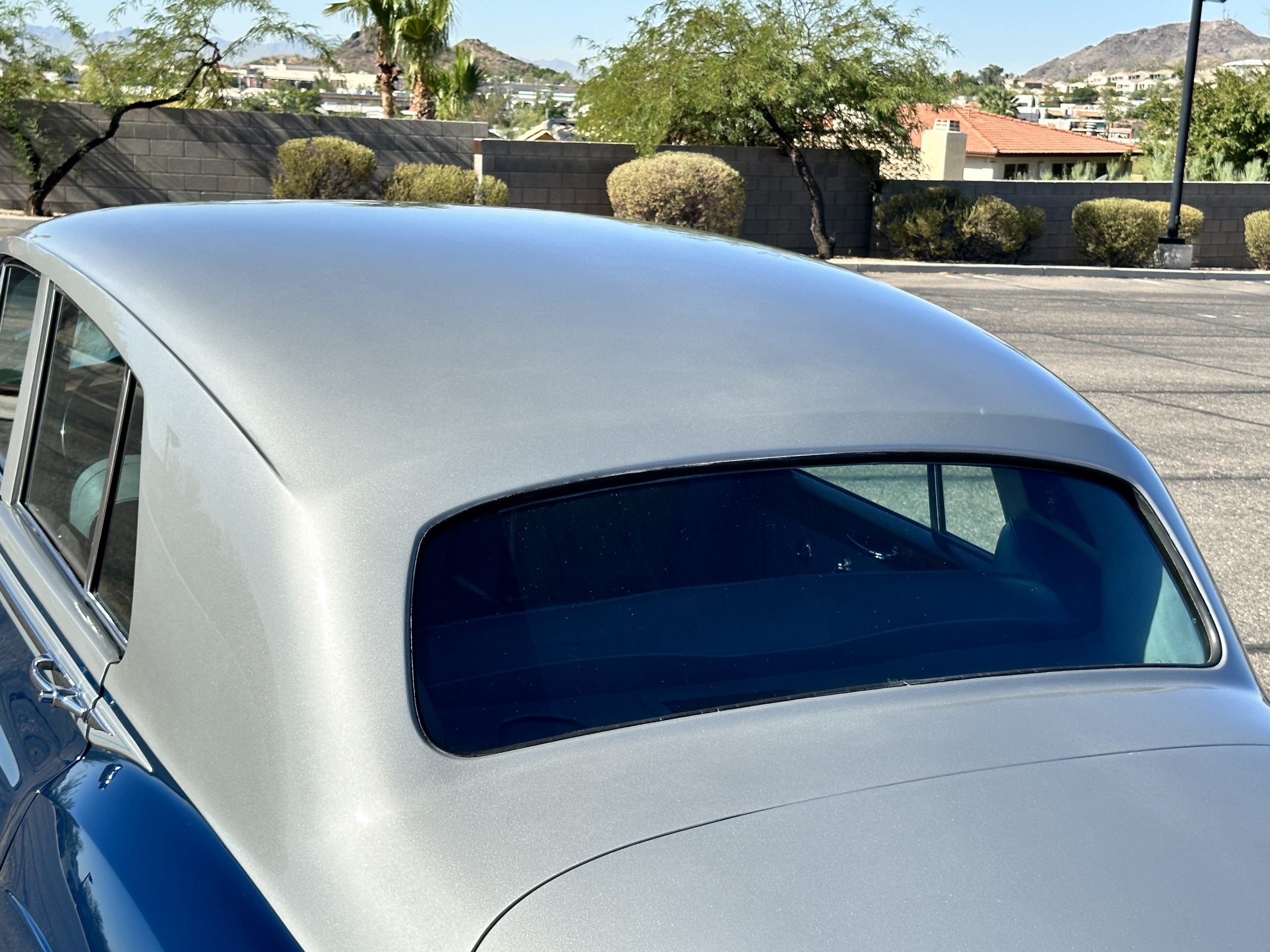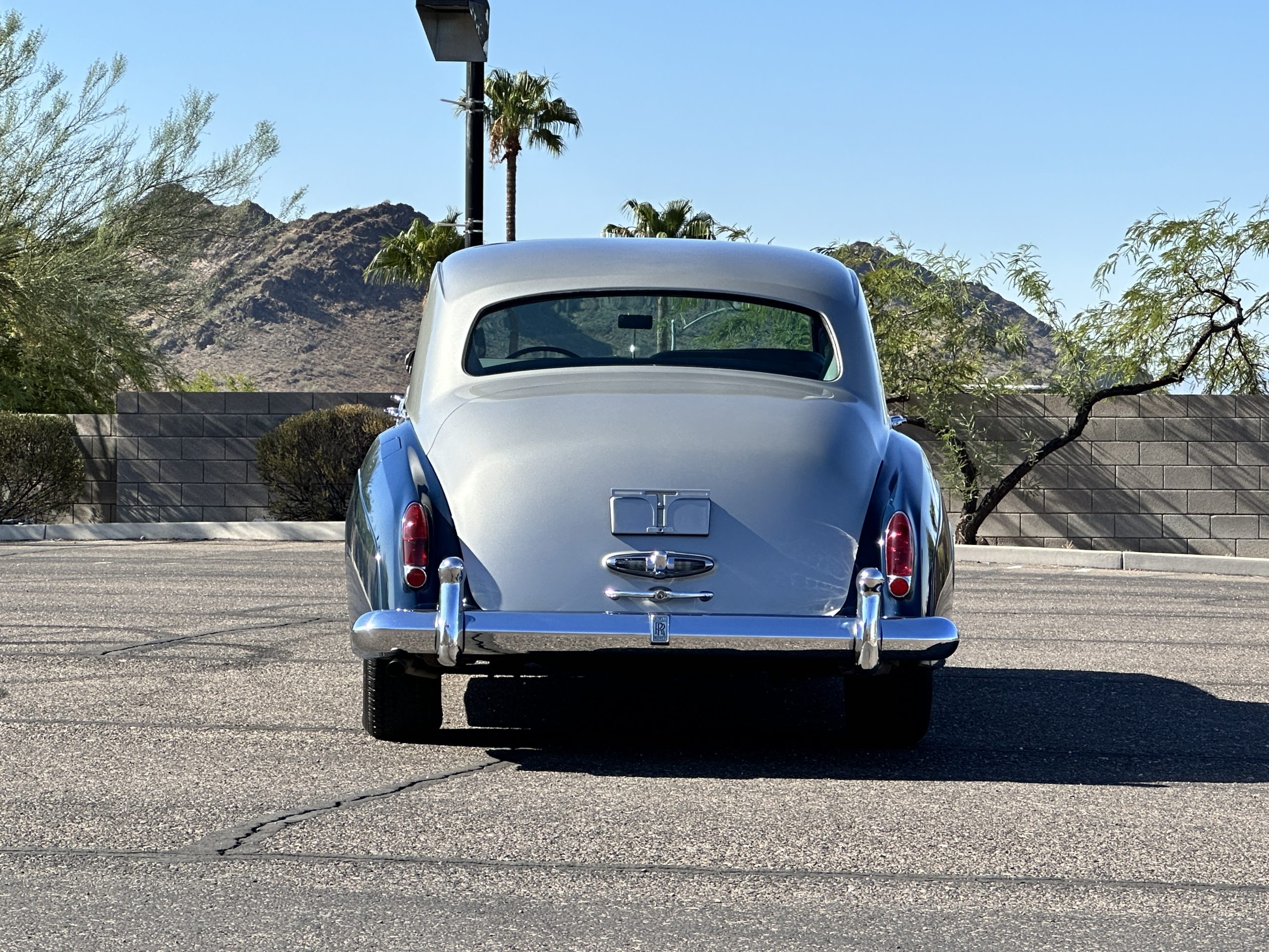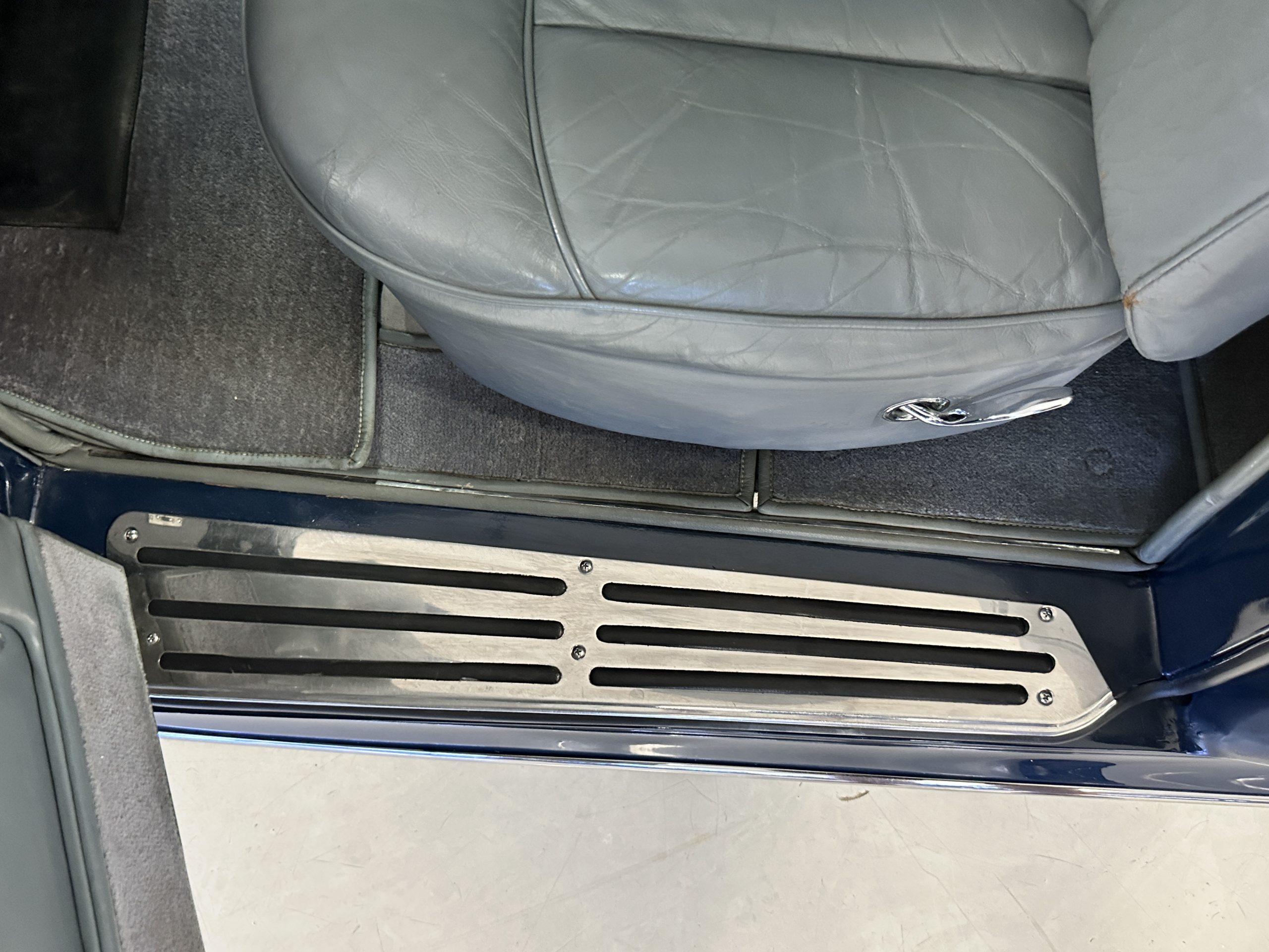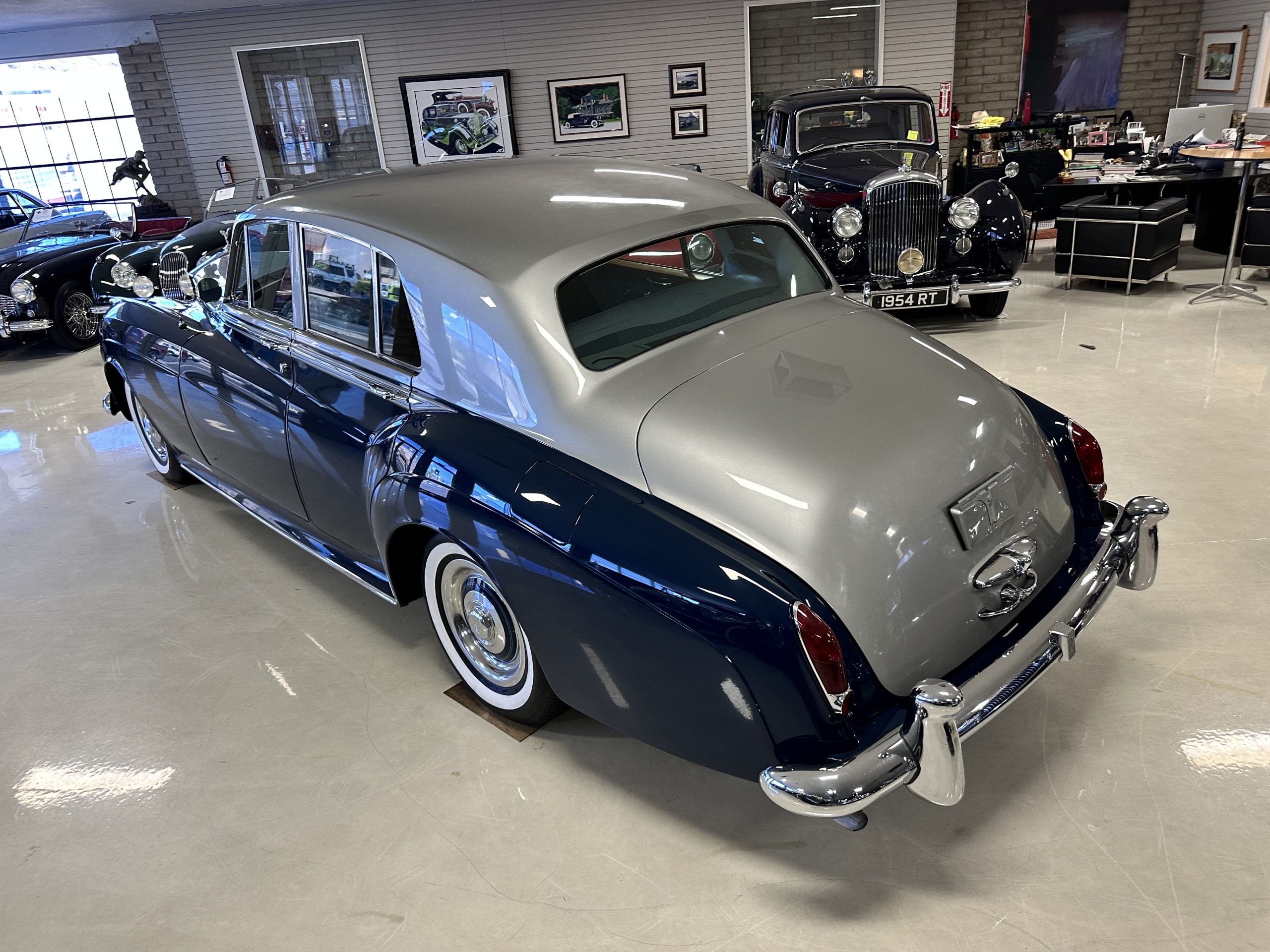 The livery is stunning in its newly painted two-toned Shell Gray over Dark Blue with Light Blue pinstriping. The paint is gorgeous and was done correctly as per the factory scheme for two toned Silver Clouds. The chrome and stainless-steel trim are beautiful and there are only minimal small dings in the bumper overriders. The wide white walled Coker American Classic radials allow for a comfortable and safe ride. Overall, the exterior is in excellent condition.