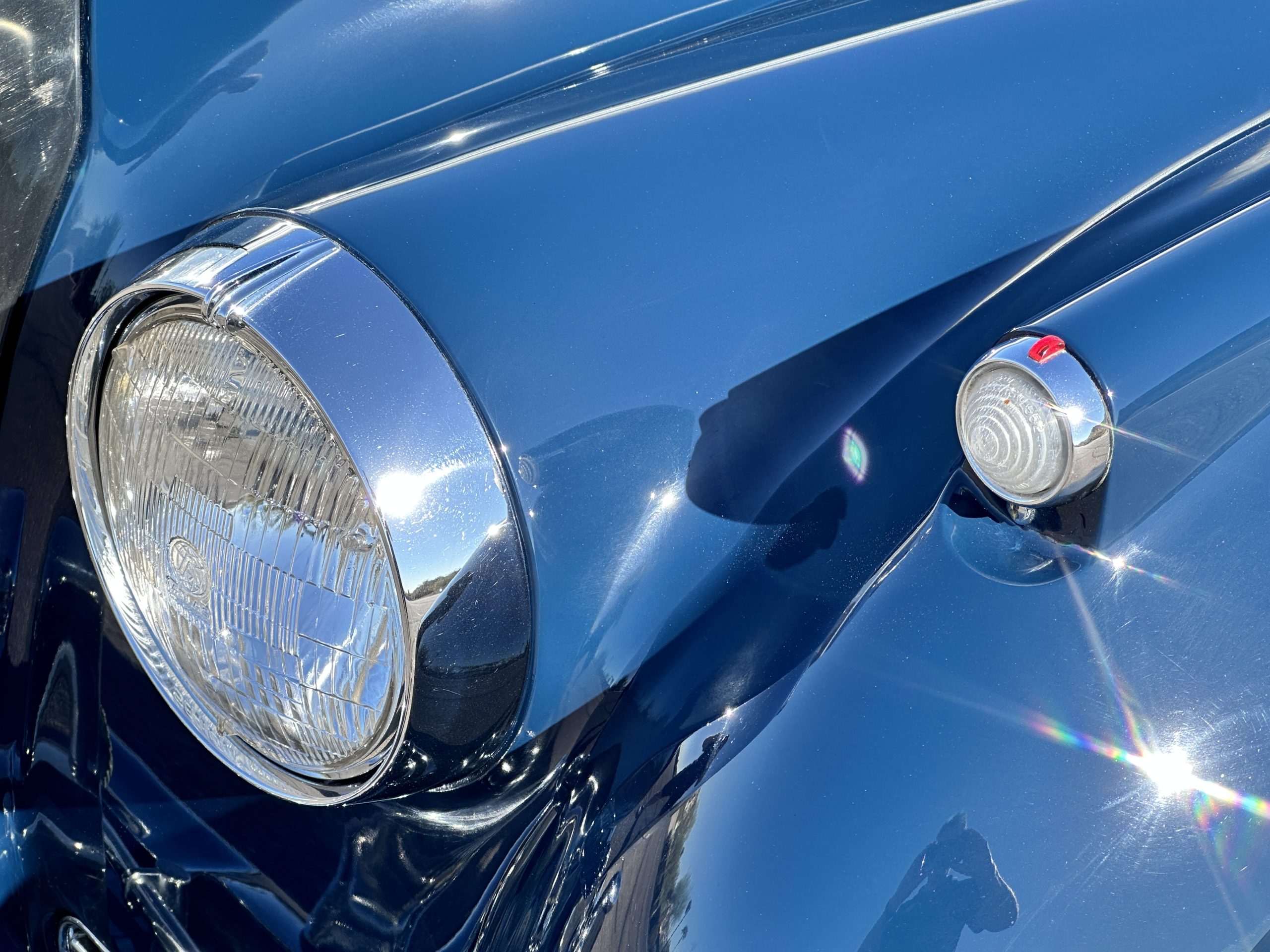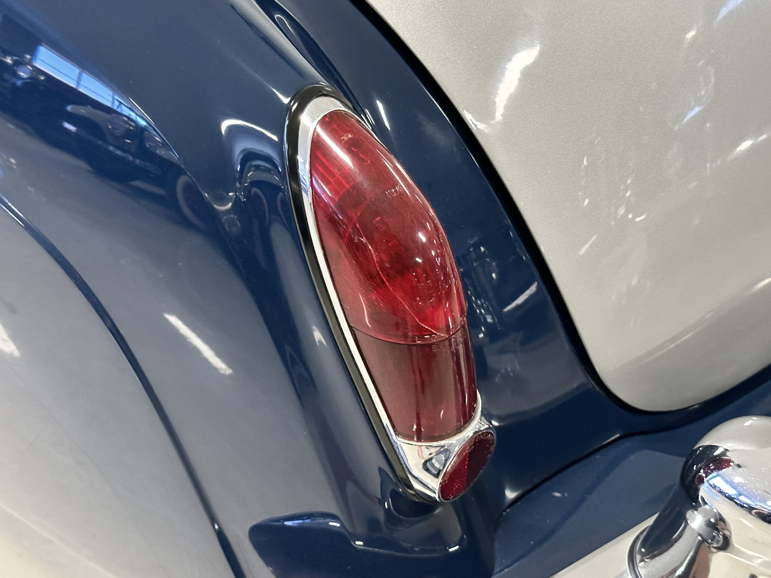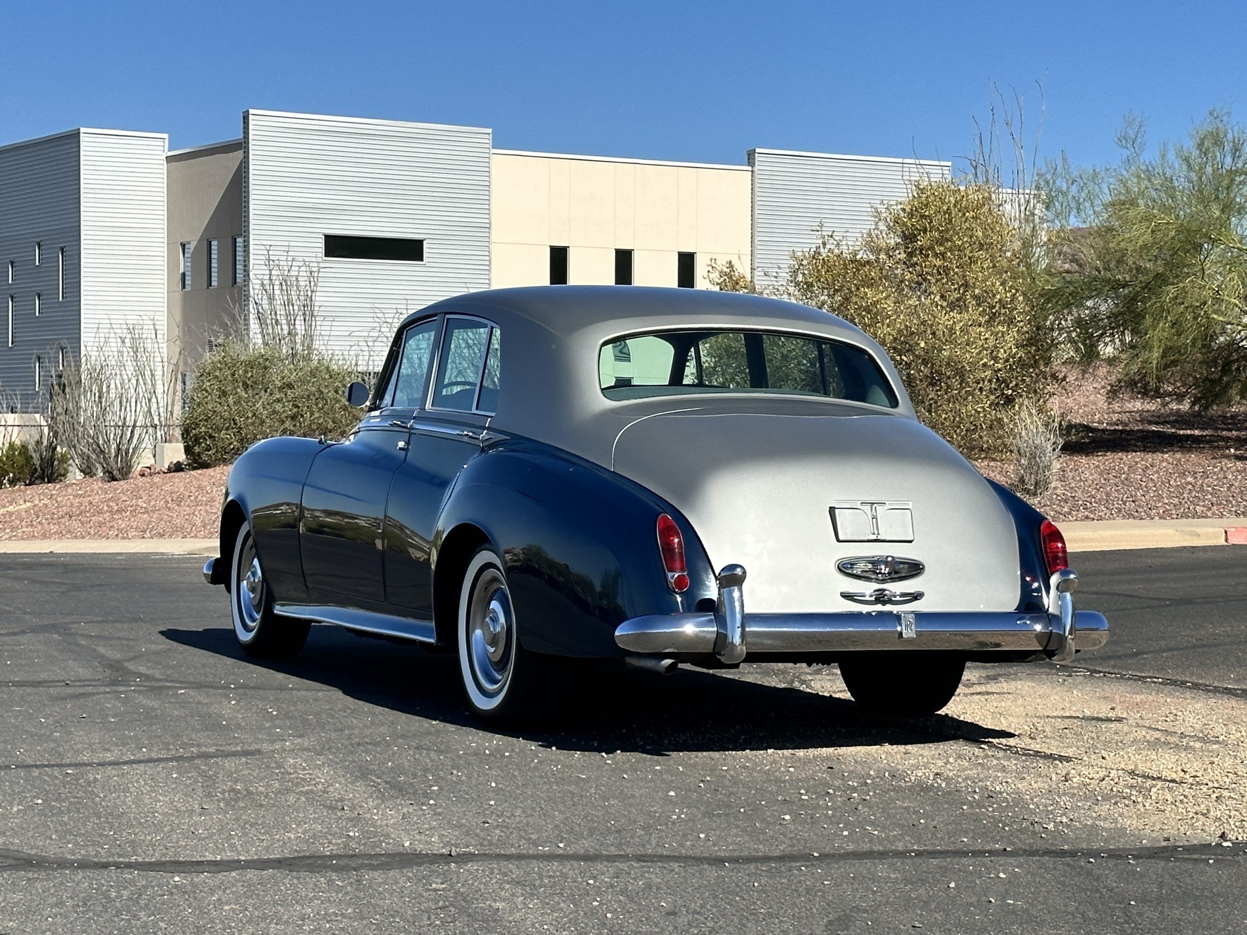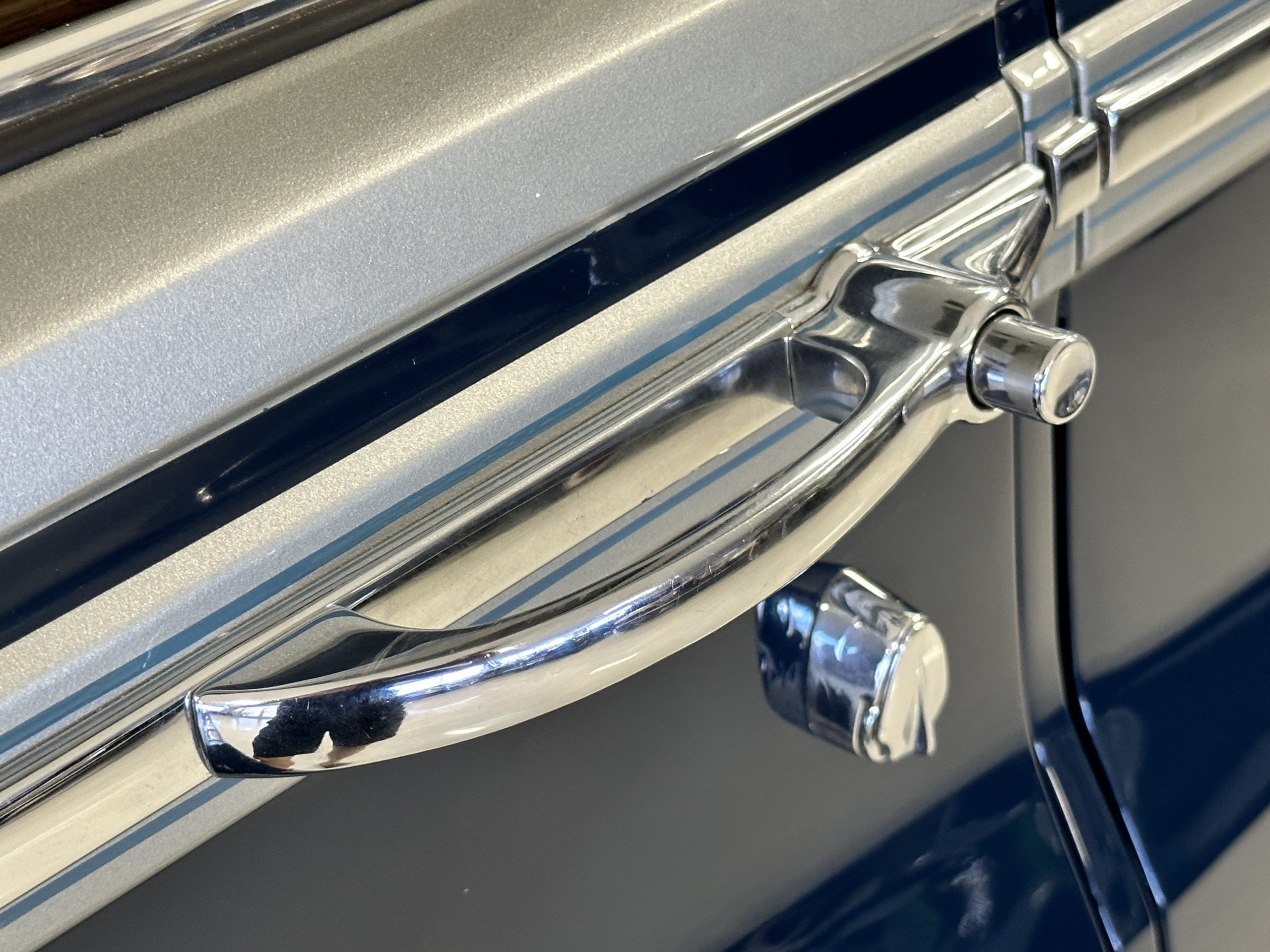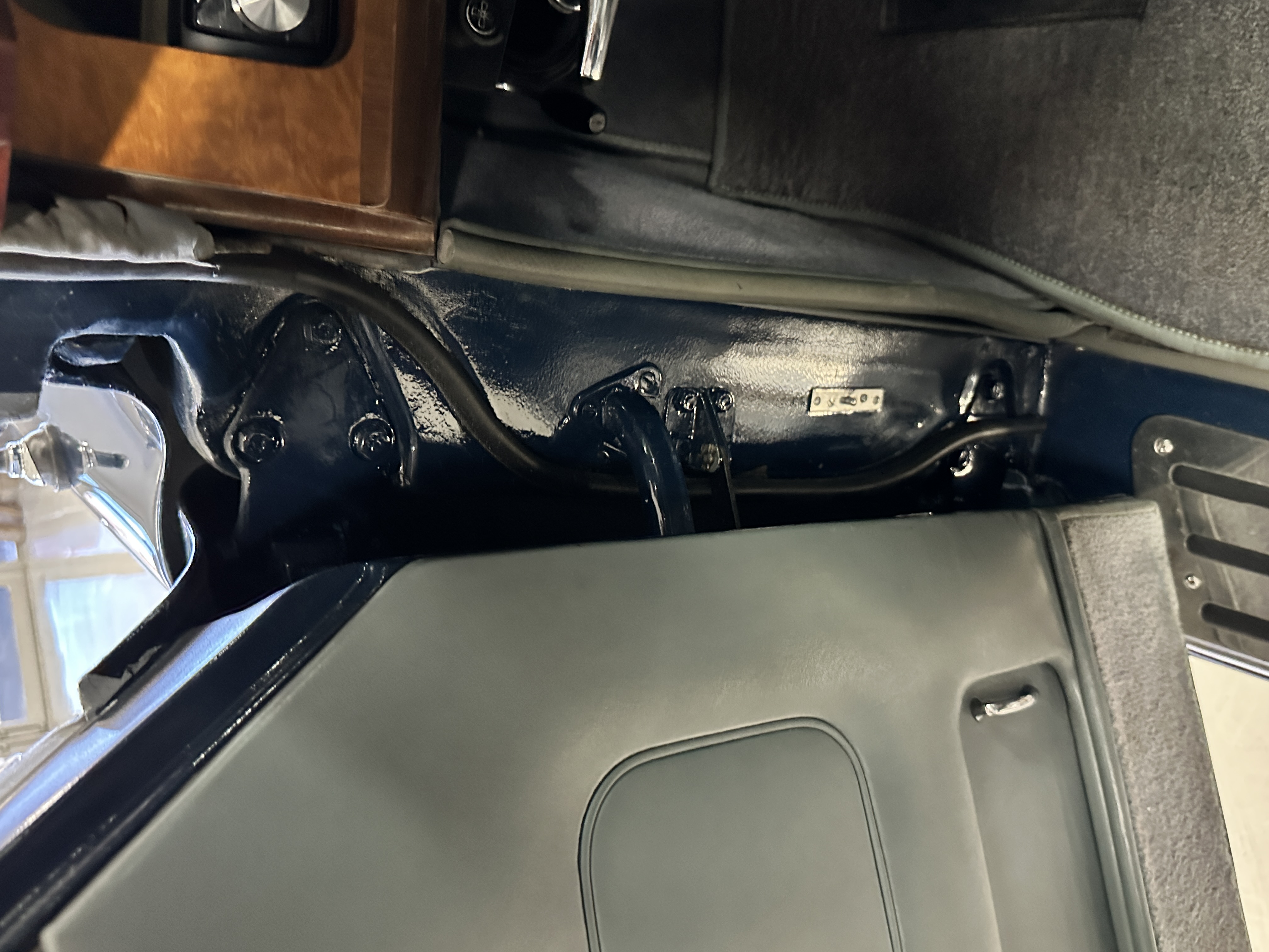 The livery is stunning in its newly painted two-toned Shell Gray over Dark Blue with Light Blue pinstriping. The paint is gorgeous and was done correctly as per the factory scheme for two toned Silver Clouds. The chrome and stainless-steel trim are beautiful and there are only minimal small dings in the bumper overriders. The wide white walled Coker American Classic radials allow for a comfortable and safe ride. Overall, the exterior is in excellent condition.