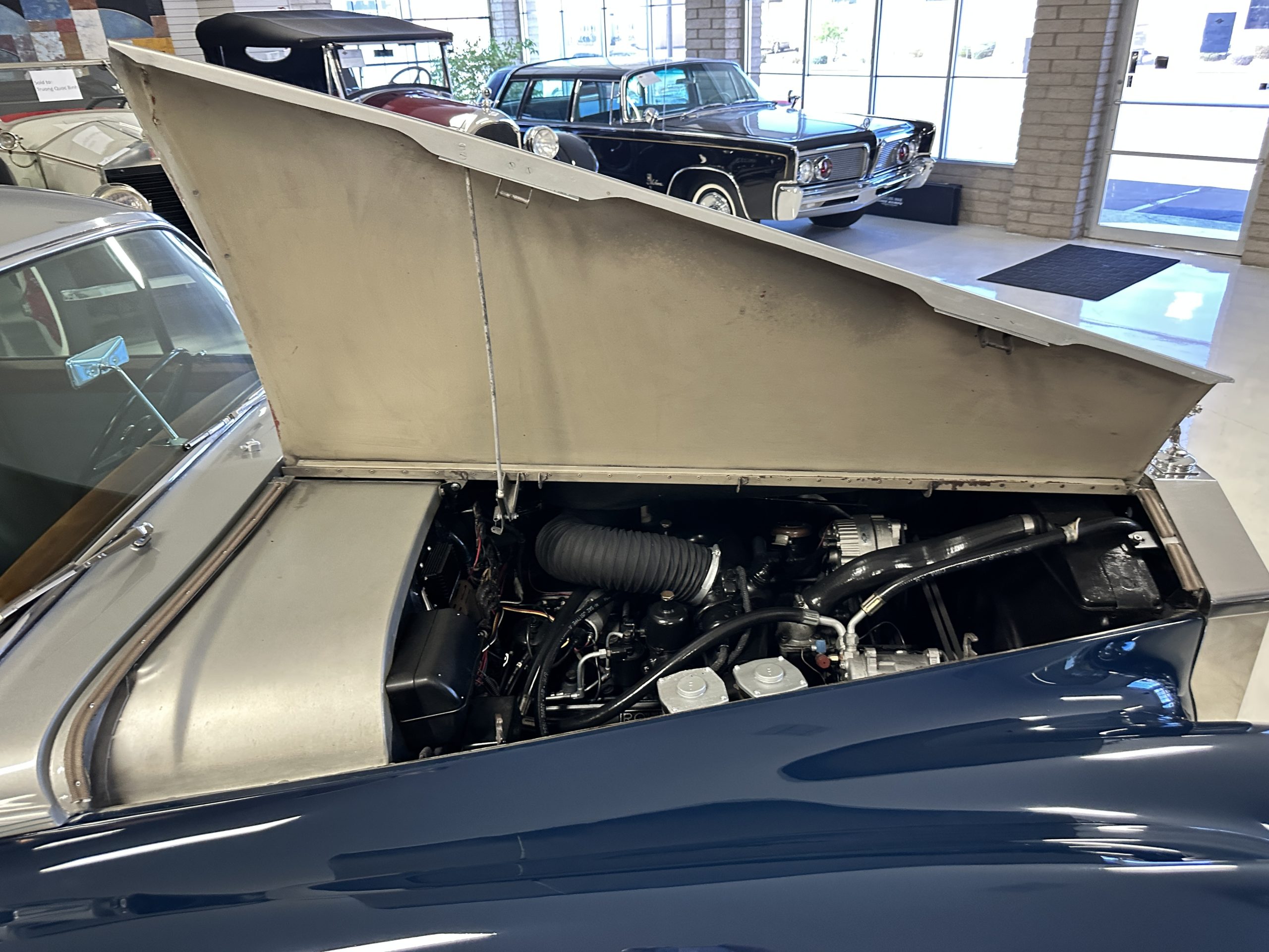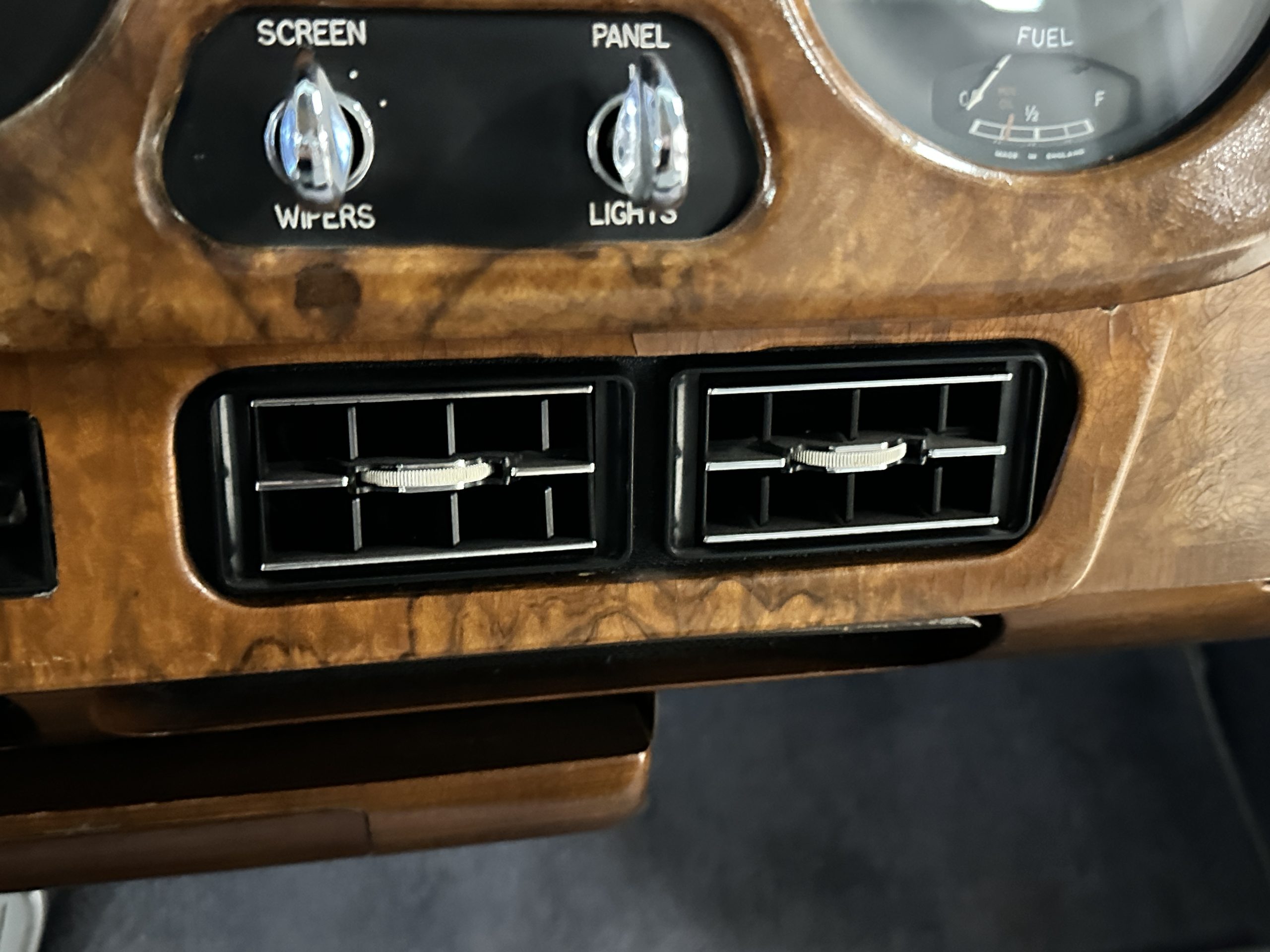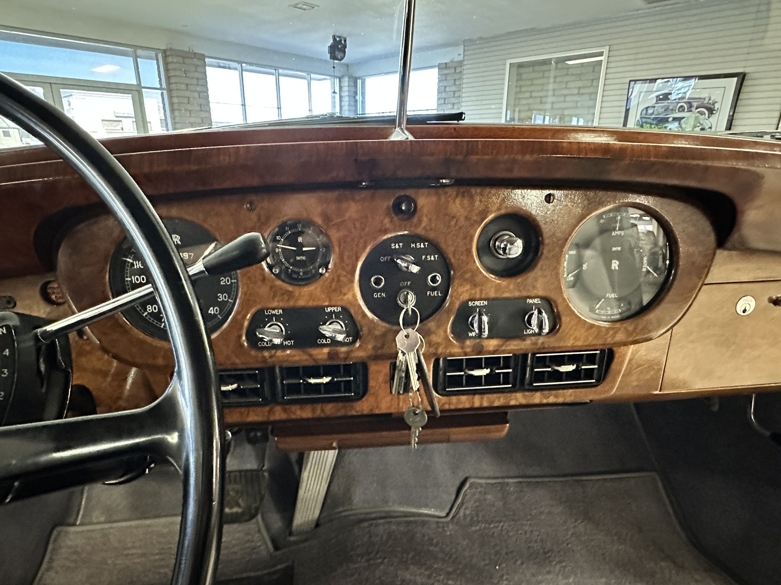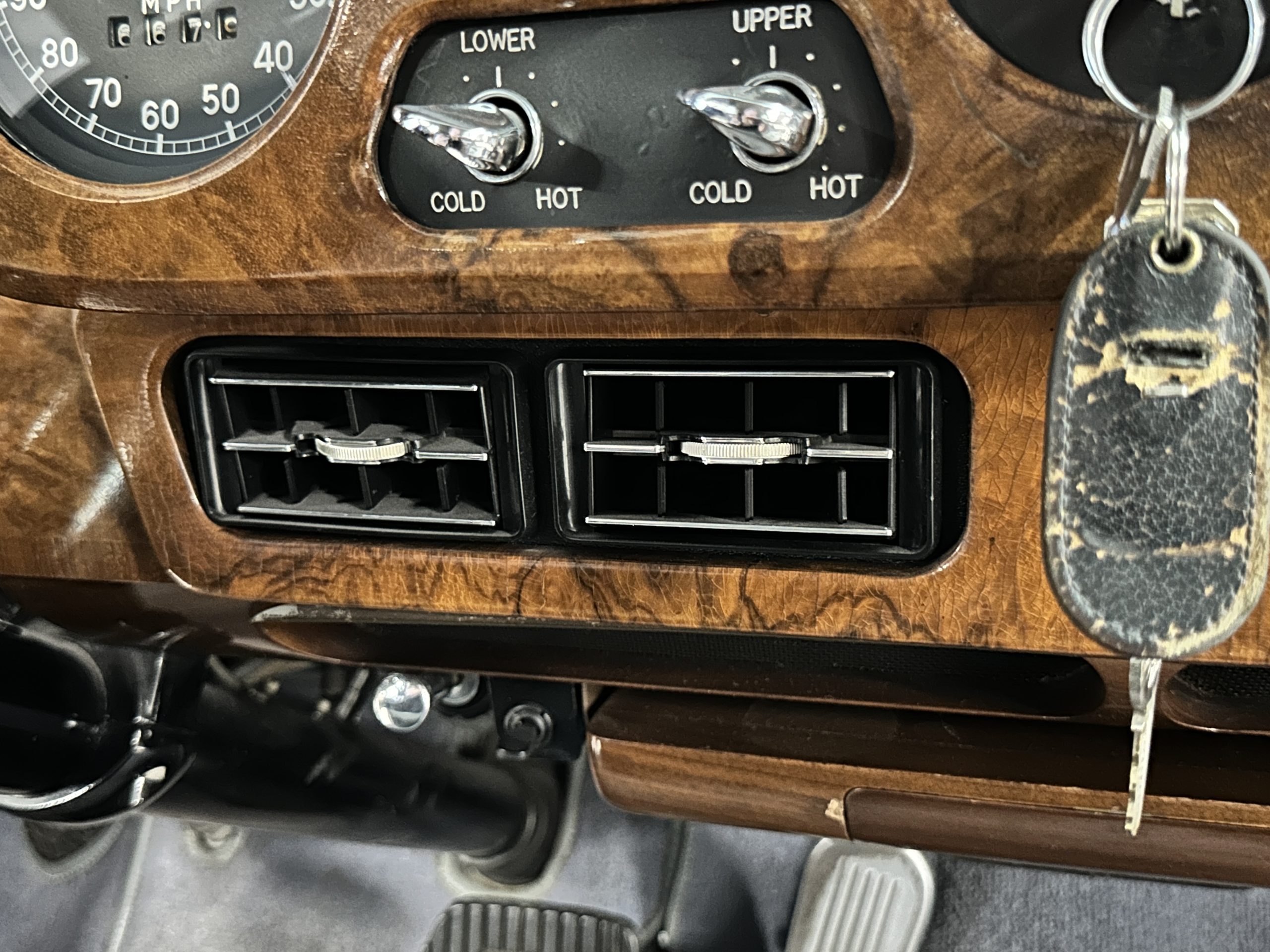 The engine compartment has been recently detailed and looks very nice. The venerable 6.23-liter V8 proved to be the longest produced V8 in automobile history. It has proven to be very robust, powerful and smooth. The Rolls has been fully serviced including tune up, hoses and fluid changes, air conditioning recharge and service. The Rolls starts easily warm or cold and is comfortable to drive even with the air conditioning on and in our 100 degrees plus F temperatures. Even in 100-degree temperatures, the oil pressure and operating temperatures were strong, which one would expect from a well maintained 81,000-mile Silver Cloud. The front and rear mounted air conditioning has been converted to 134a refrigerant and work very well.