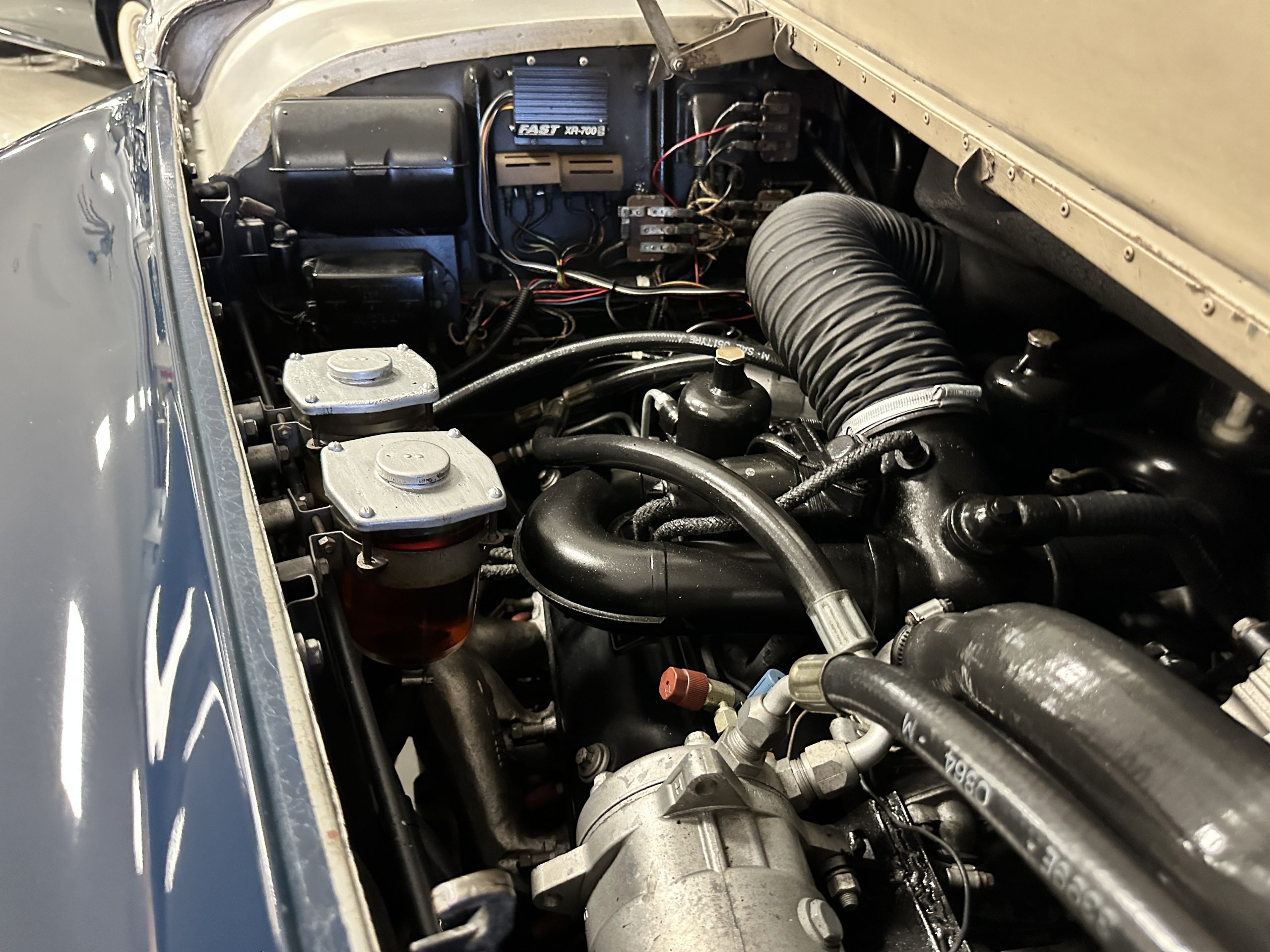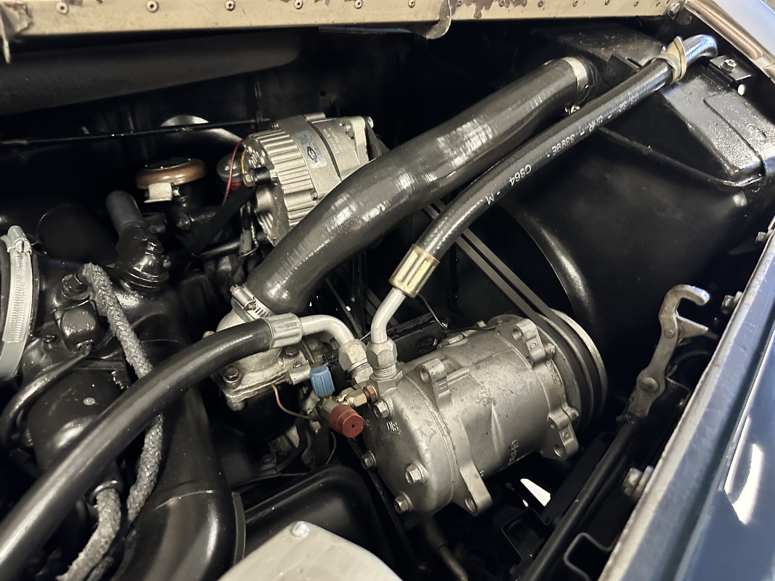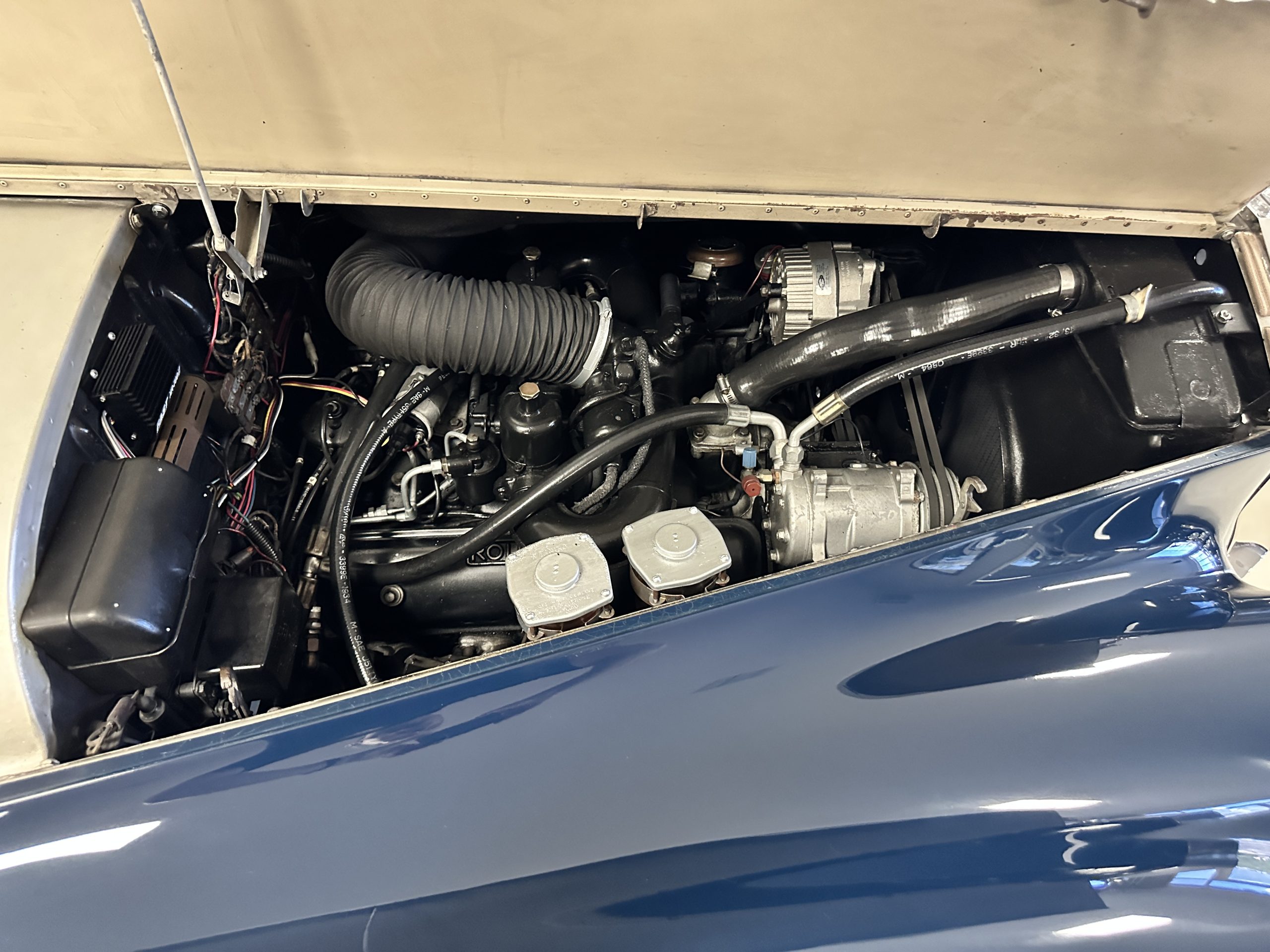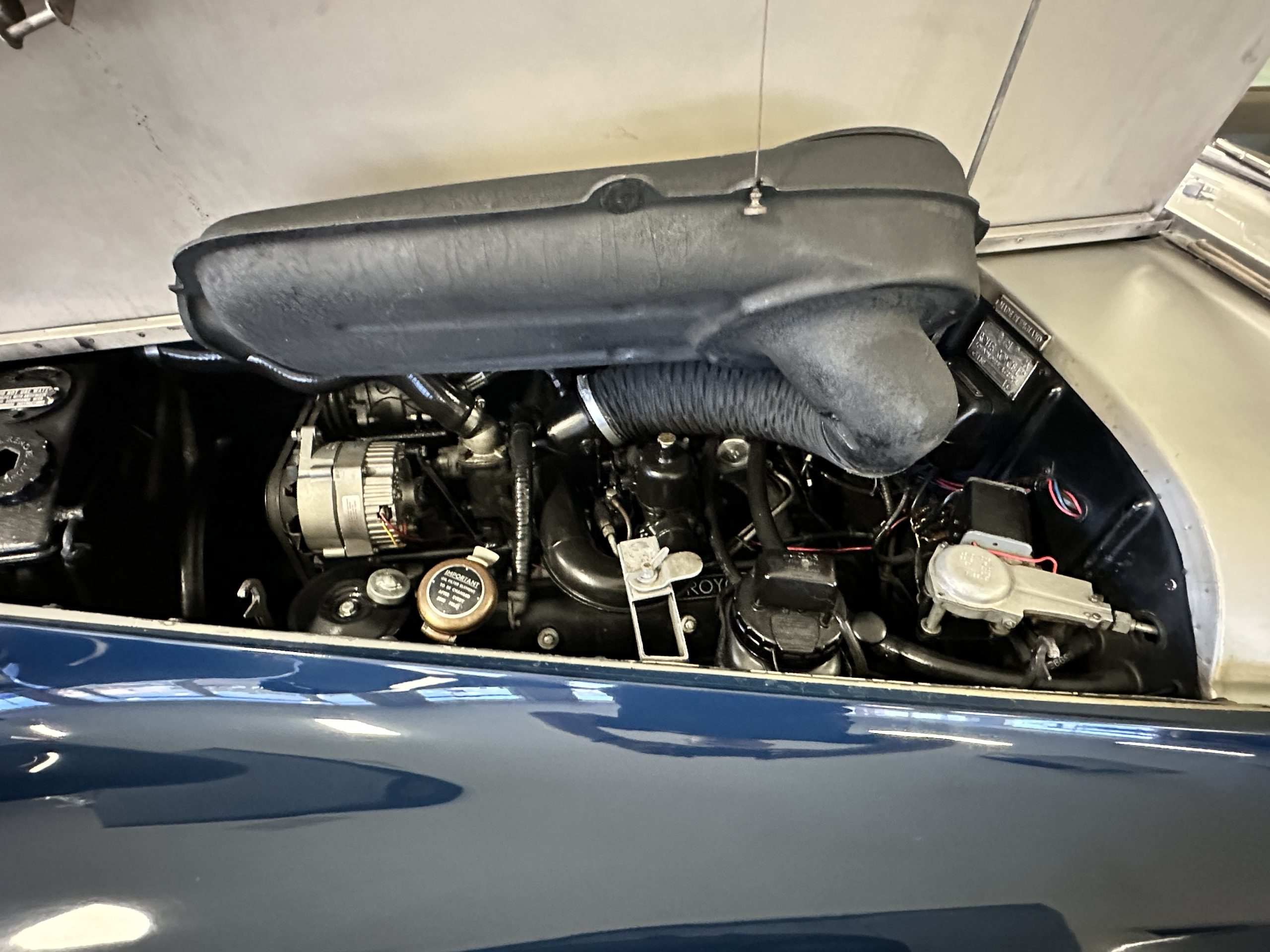 The engine compartment has been recently detailed and looks very nice. The venerable 6.23-liter V8 proved to be the longest produced V8 in automobile history. It has proven to be very robust, powerful and smooth. The Rolls has been fully serviced including tune up, hoses and fluid changes, air conditioning recharge and service. The Rolls starts easily warm or cold and is comfortable to drive even with the air conditioning on and in our 100 degrees plus F temperatures. Even in 100-degree temperatures, the oil pressure and operating temperatures were strong, which one would expect from a well maintained 81,000-mile Silver Cloud. The front and rear mounted air conditioning has been converted to 134a refrigerant and work very well.