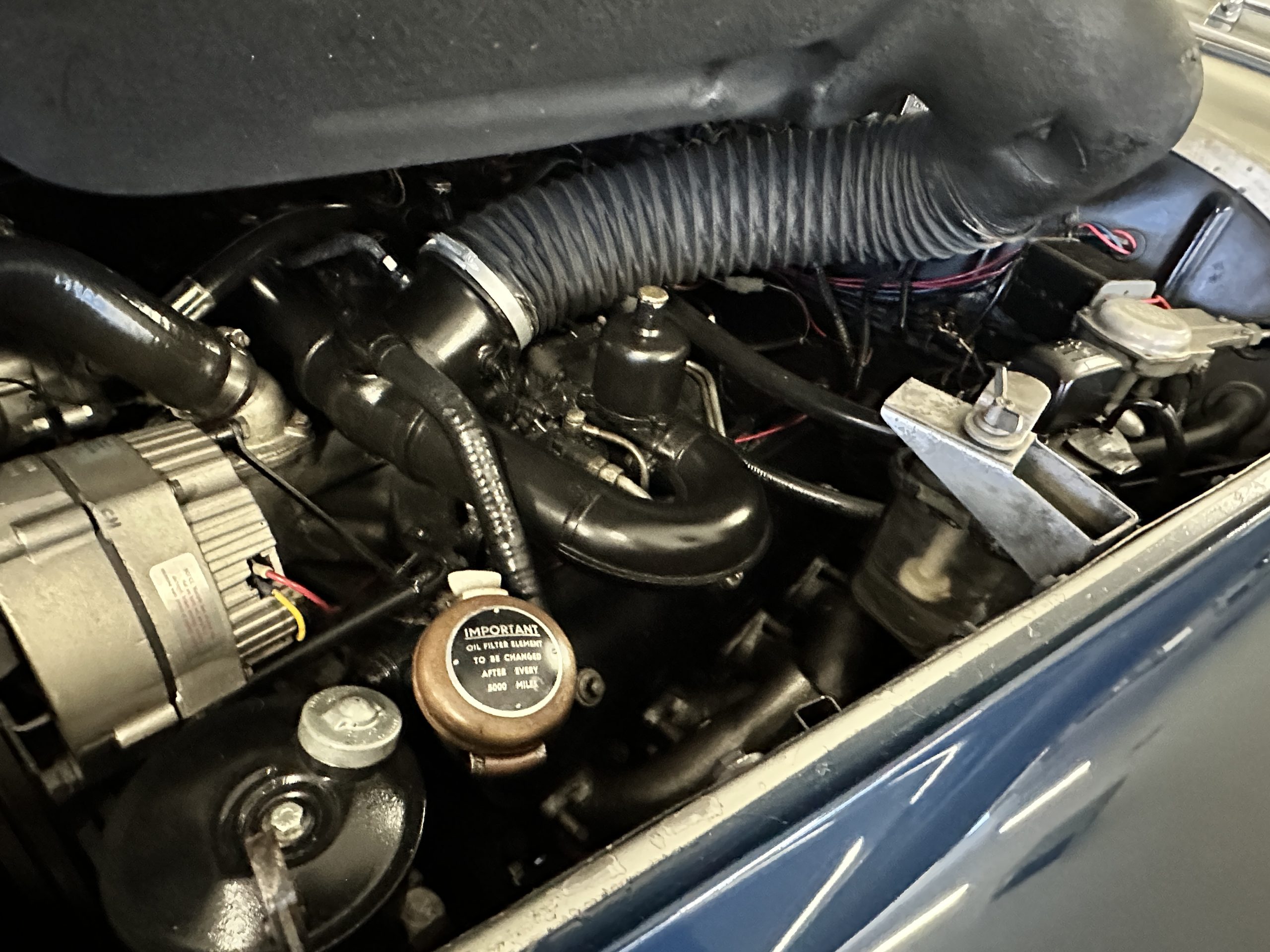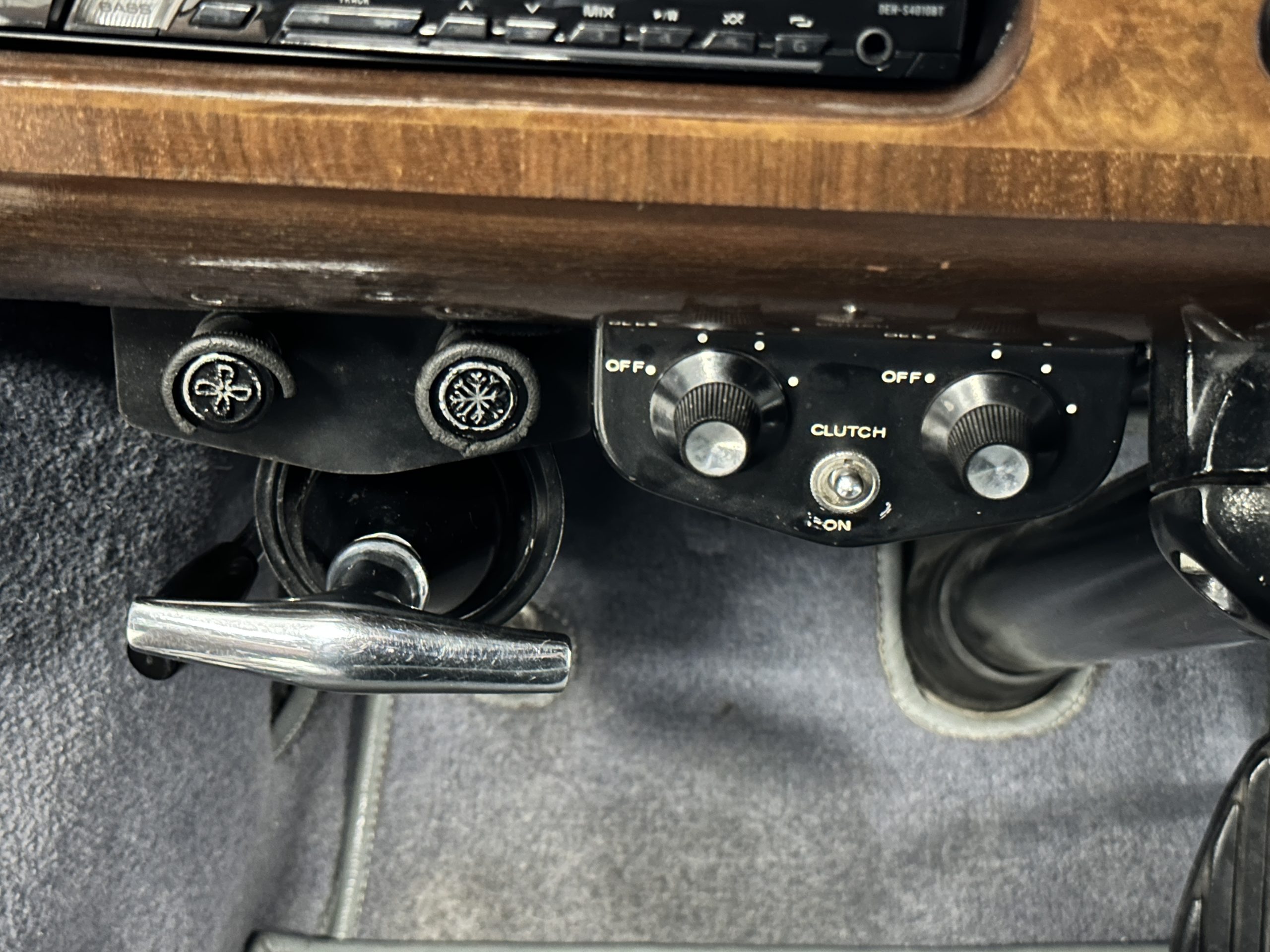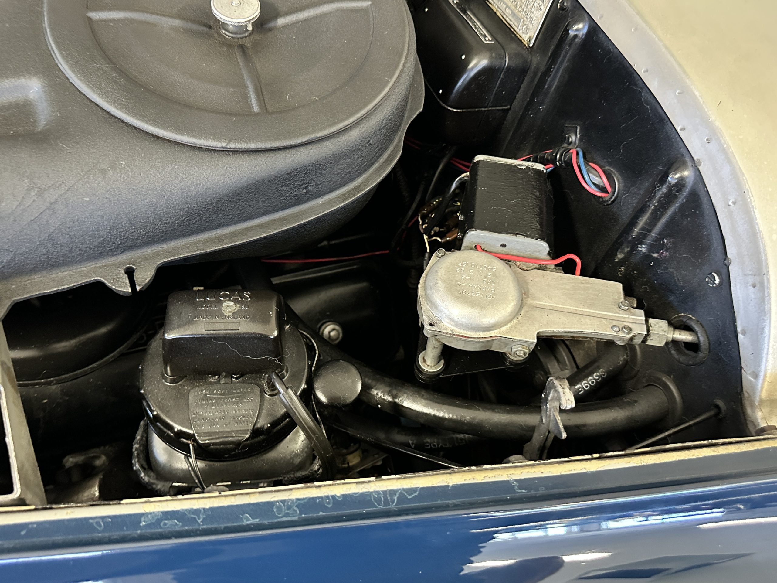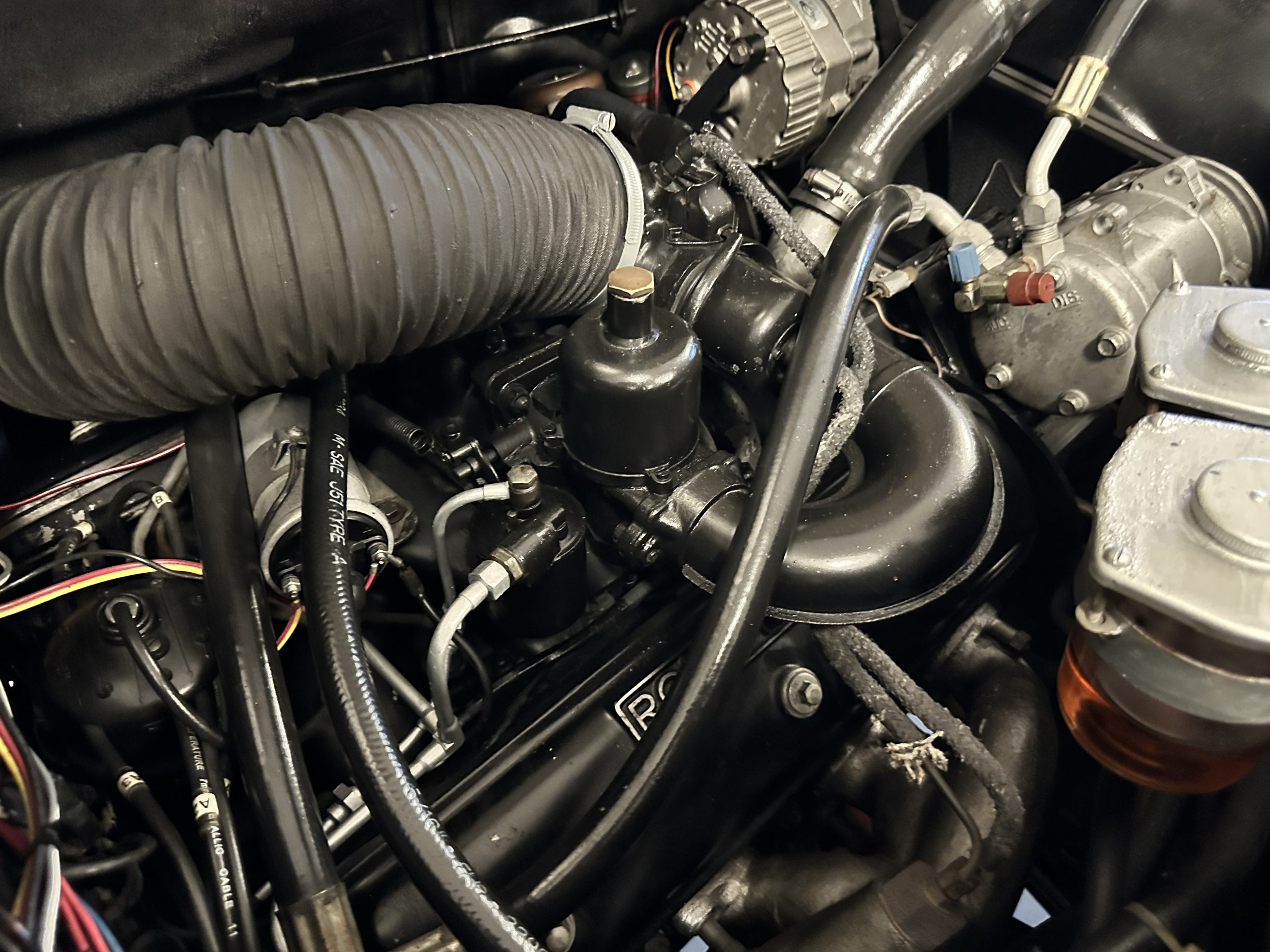 The engine compartment has been recently detailed and looks very nice. The venerable 6.23-liter V8 proved to be the longest produced V8 in automobile history. It has proven to be very robust, powerful and smooth. The Rolls has been fully serviced including tune up, hoses and fluid changes, air conditioning recharge and service. The Rolls starts easily warm or cold and is comfortable to drive even with the air conditioning on and in our 100 degrees plus F temperatures. Even in 100-degree temperatures, the oil pressure and operating temperatures were strong, which one would expect from a well maintained 81,000-mile Silver Cloud. The front and rear mounted air conditioning has been converted to 134a refrigerant and work very well.