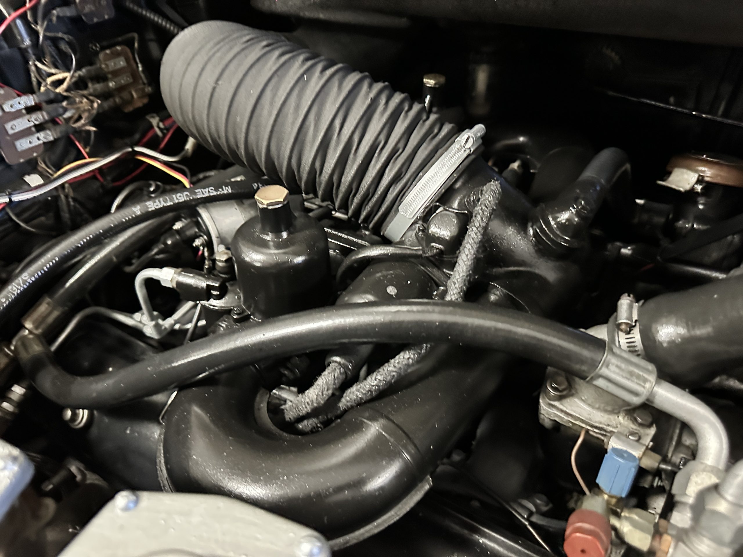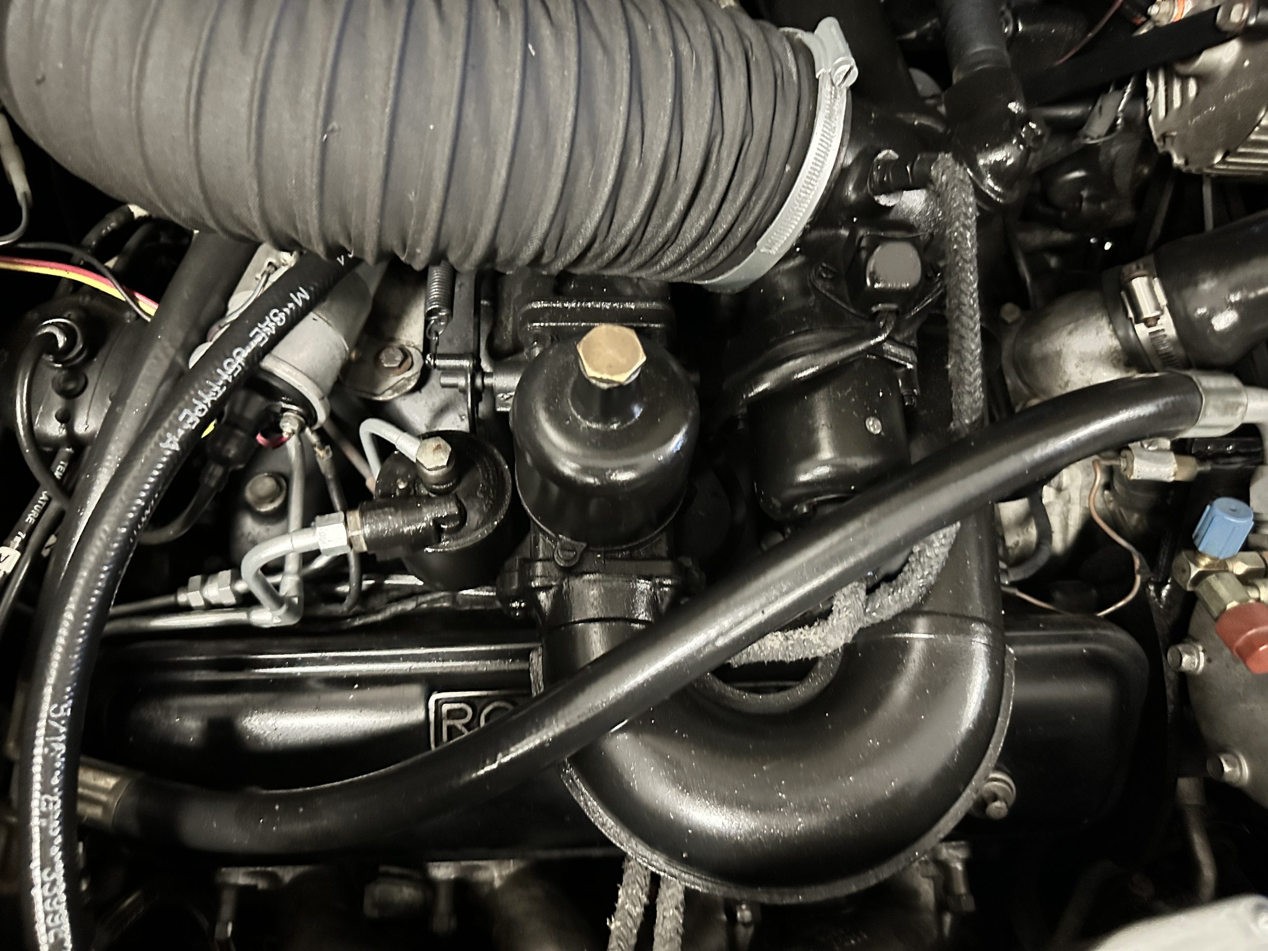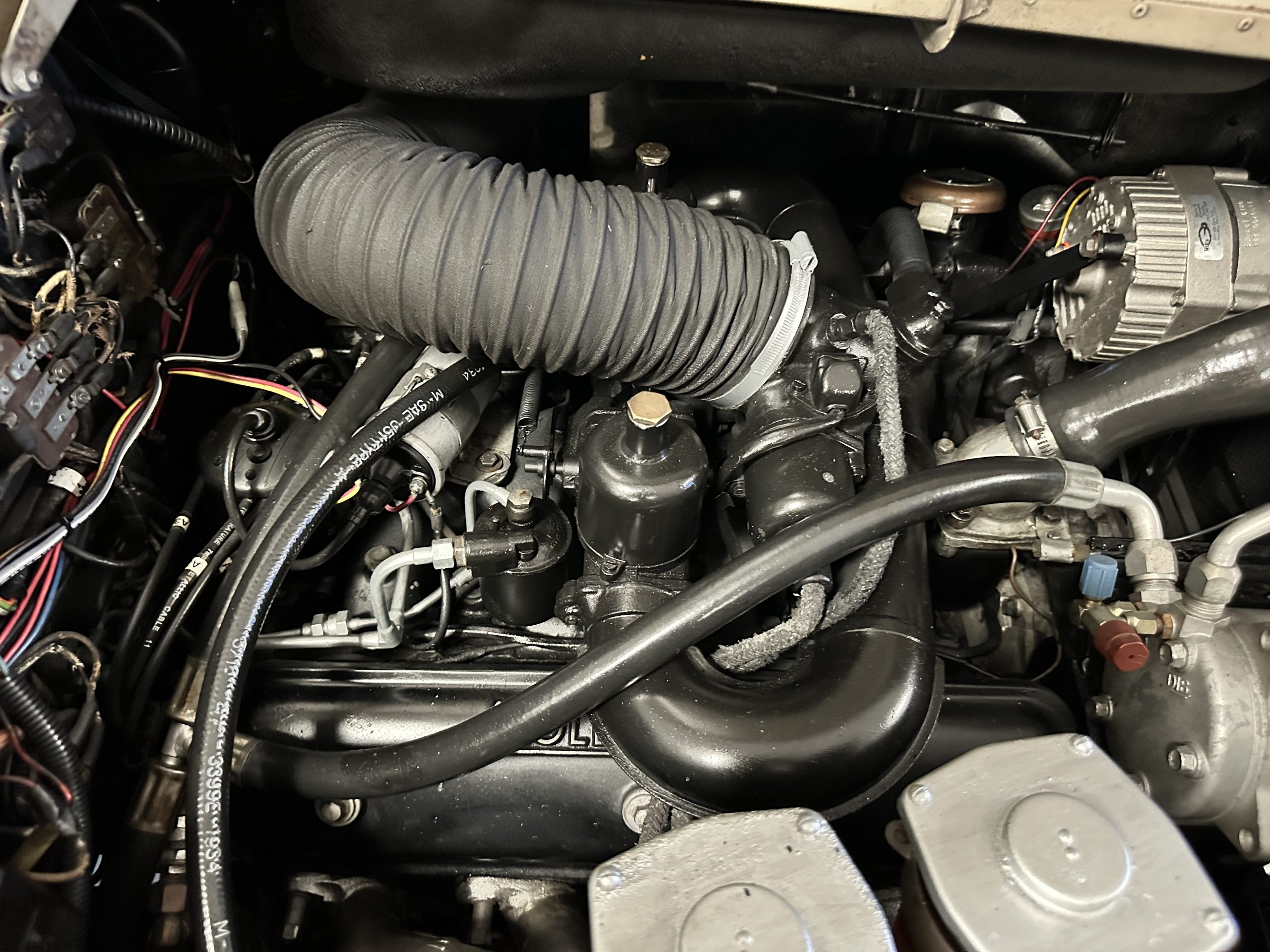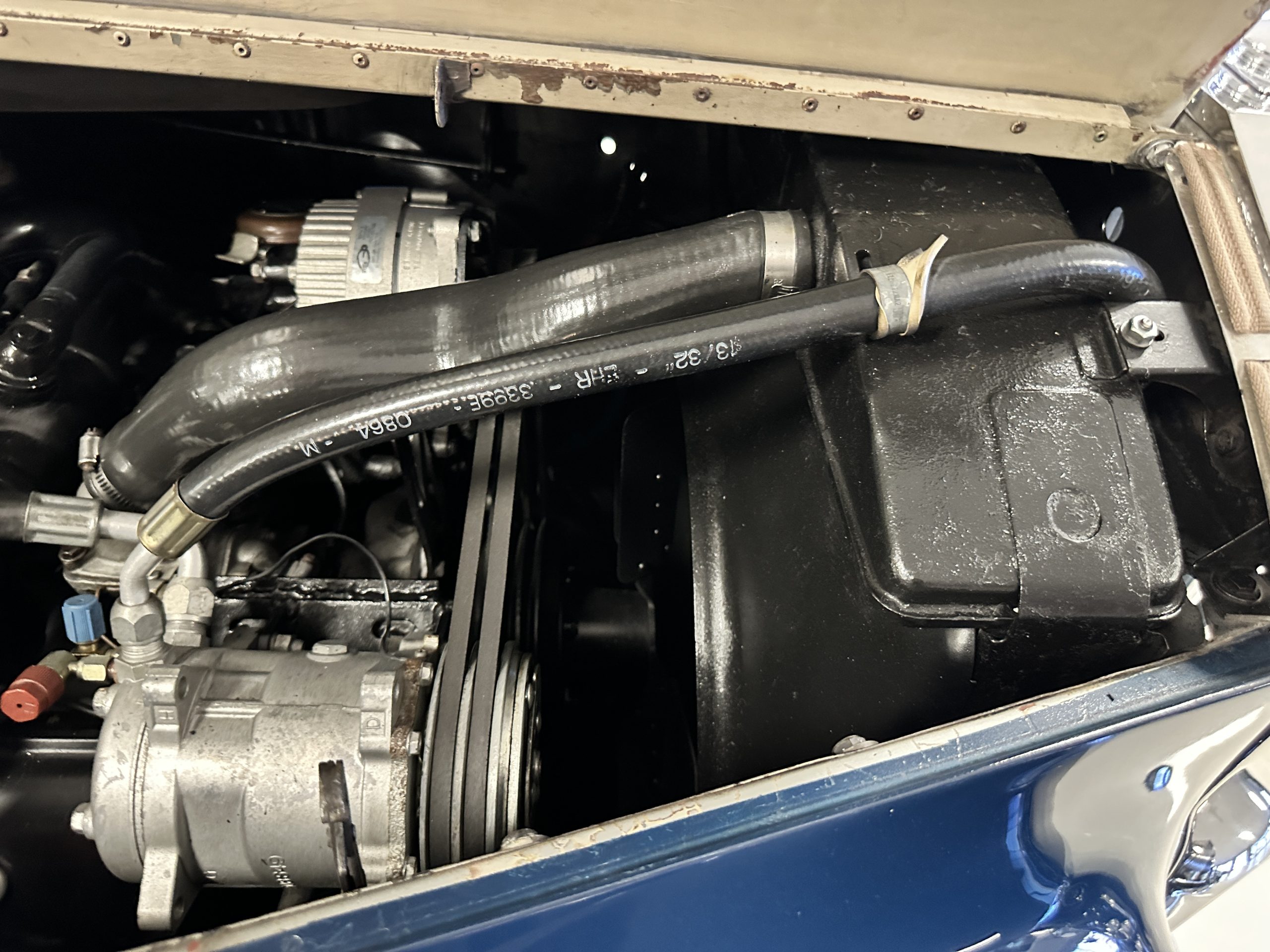 The engine compartment has been recently detailed and looks very nice. The venerable 6.23-liter V8 proved to be the longest produced V8 in automobile history. It has proven to be very robust, powerful and smooth. The Rolls has been fully serviced including tune up, hoses and fluid changes, air conditioning recharge and service. The Rolls starts easily warm or cold and is comfortable to drive even with the air conditioning on and in our 100 degrees plus F temperatures. Even in 100-degree temperatures, the oil pressure and operating temperatures were strong, which one would expect from a well maintained 81,000-mile Silver Cloud. The front and rear mounted air conditioning has been converted to 134a refrigerant and work very well.