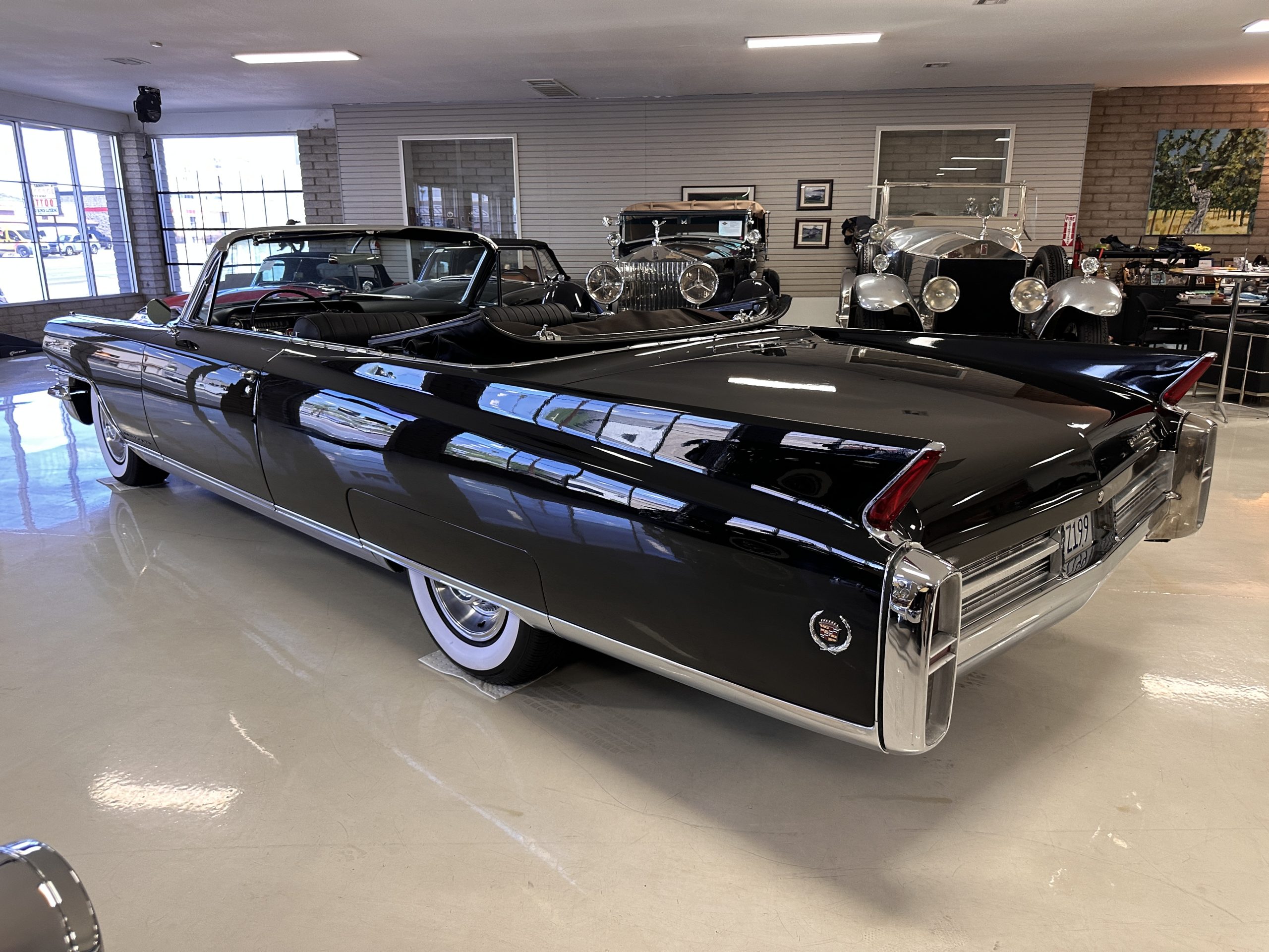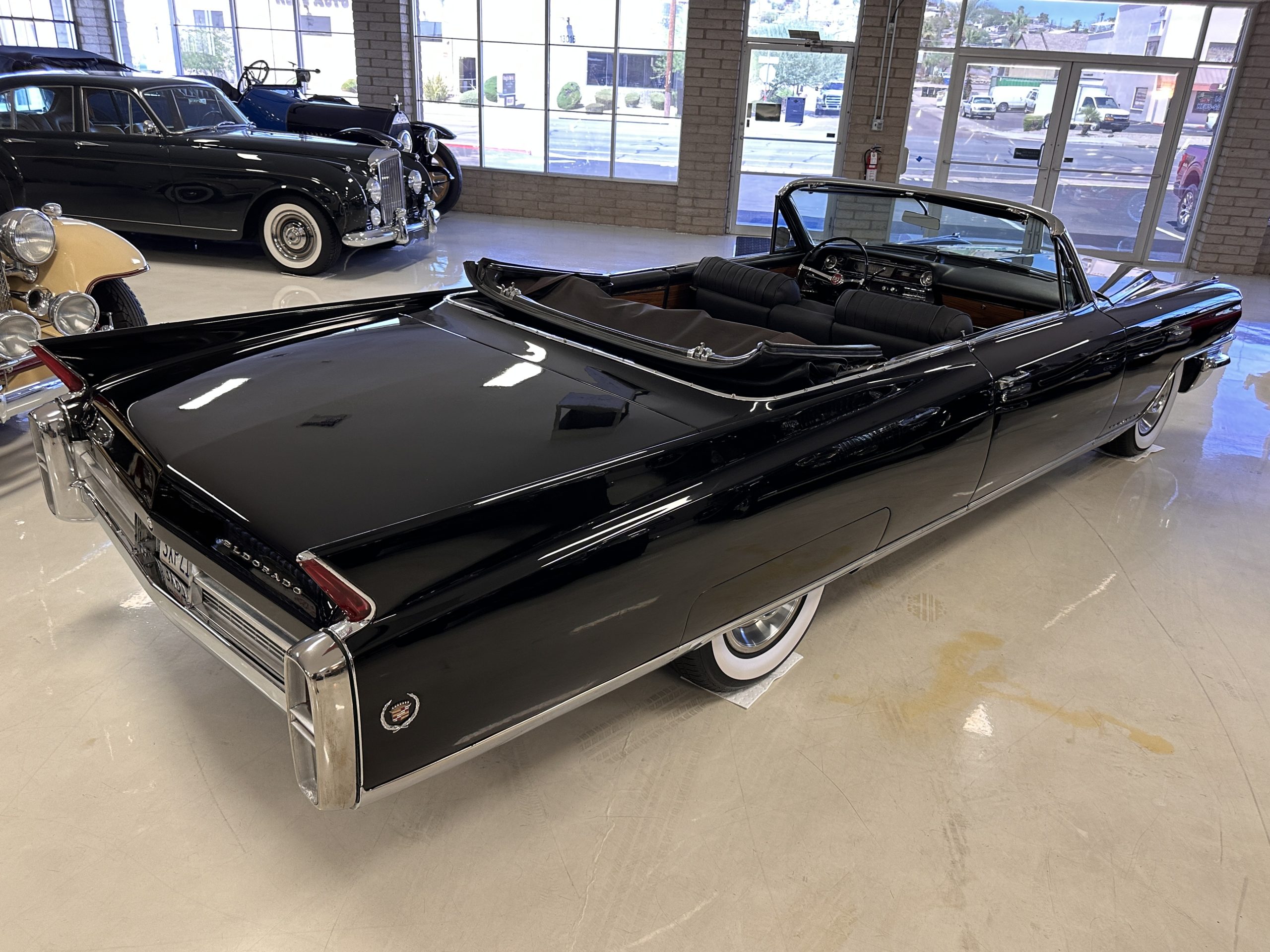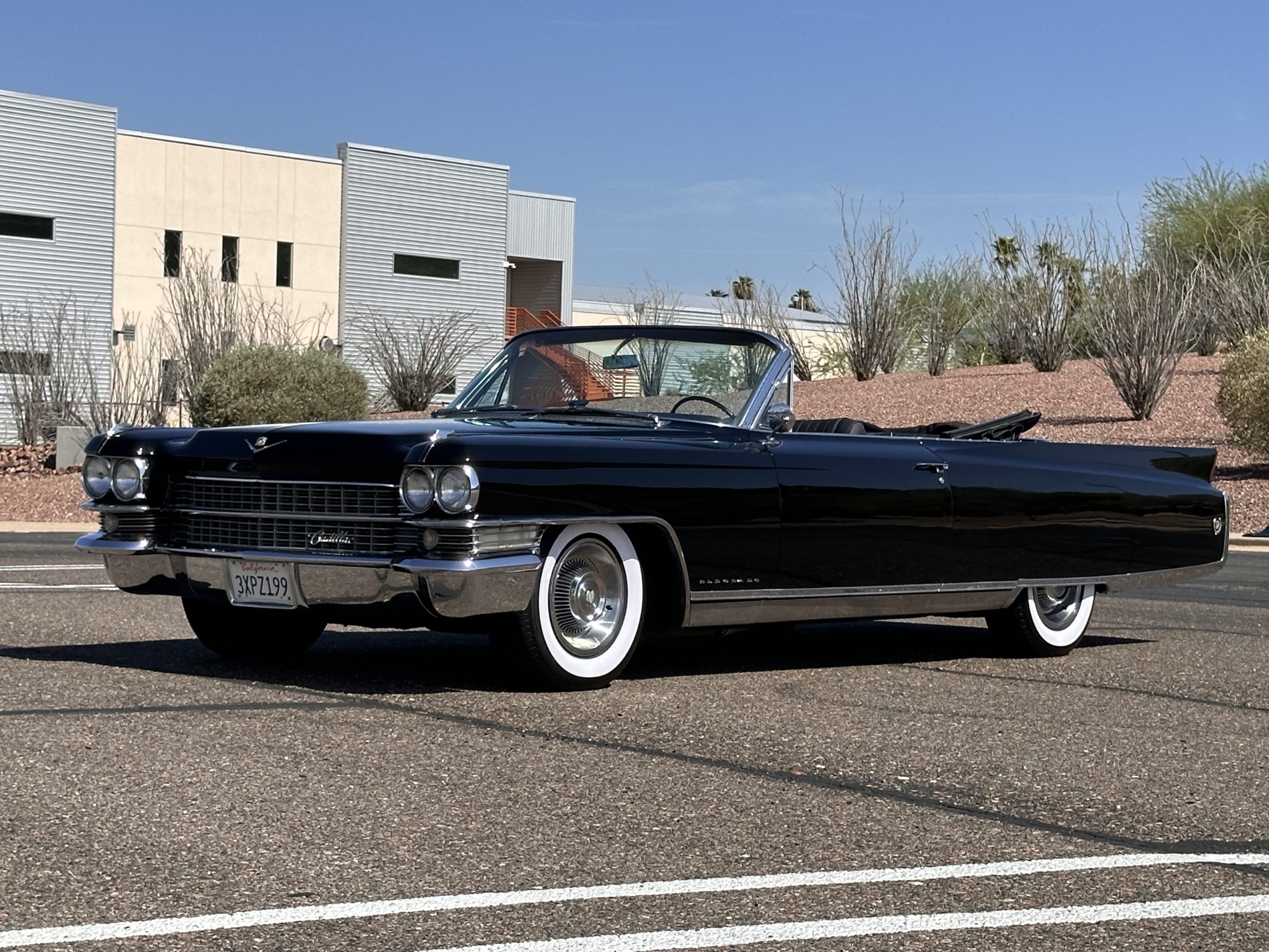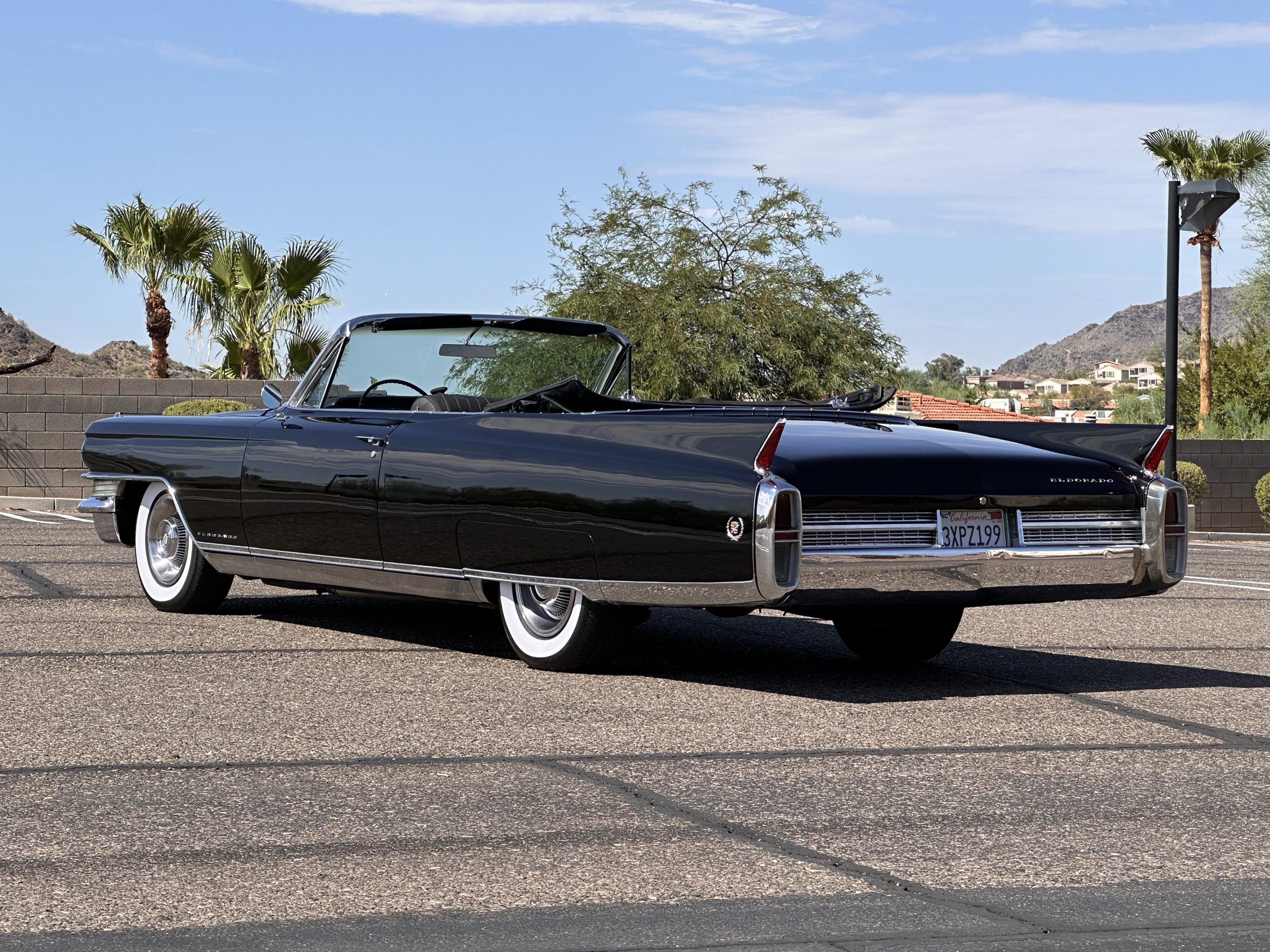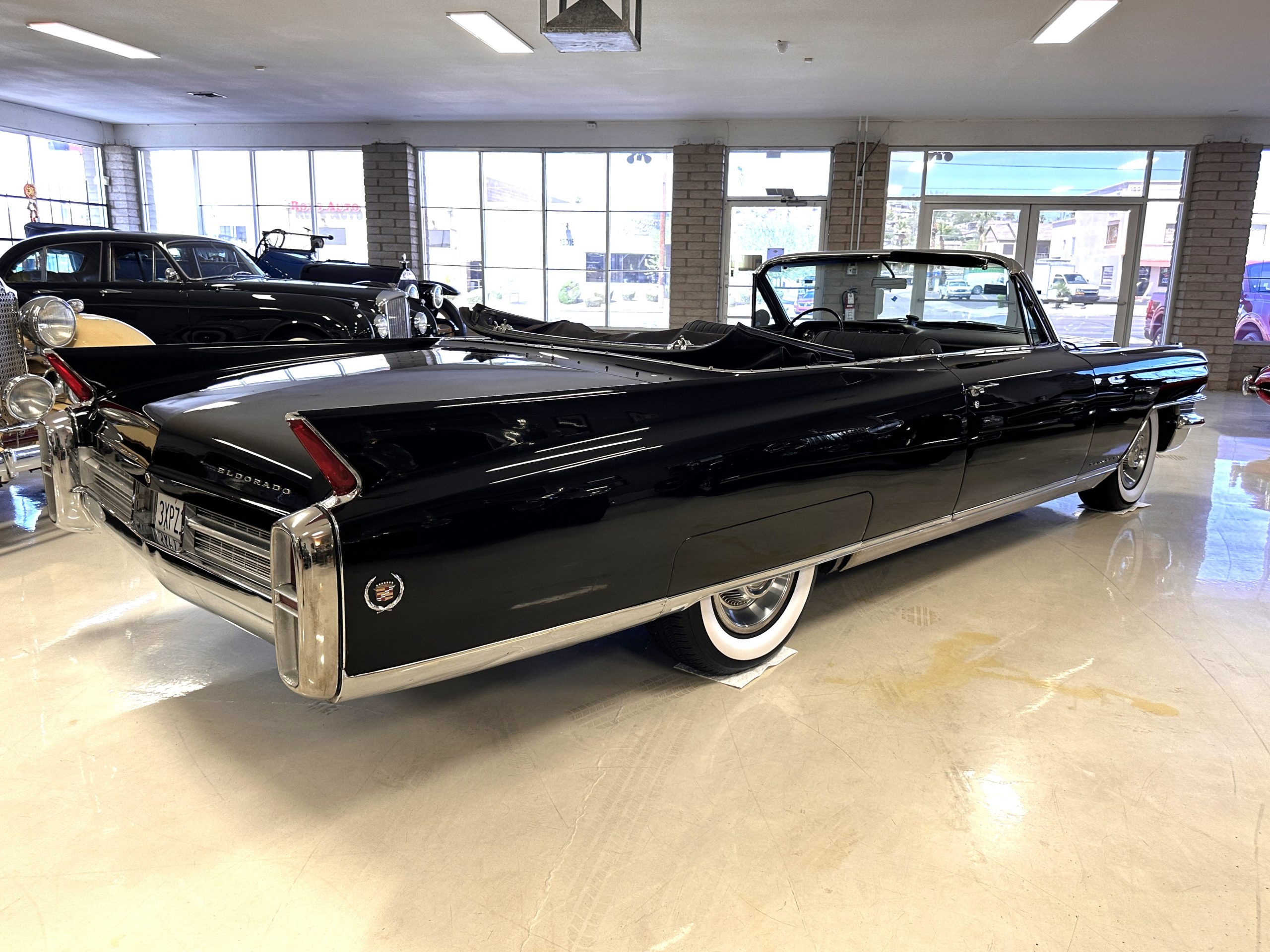 HISTORY OF THIS ELDORADO: According to the factory build records, this Eldorado Biarritz was built on March 4th, 1963, and delivered new to the Los Angeles W Seventh Street Branch (Outlet Code 811910). Still retaining its original engine number 089852 (build records matches present engine). Build records and the Trim Tag show original Ebony Black paint, black convertible top and black leather interior.