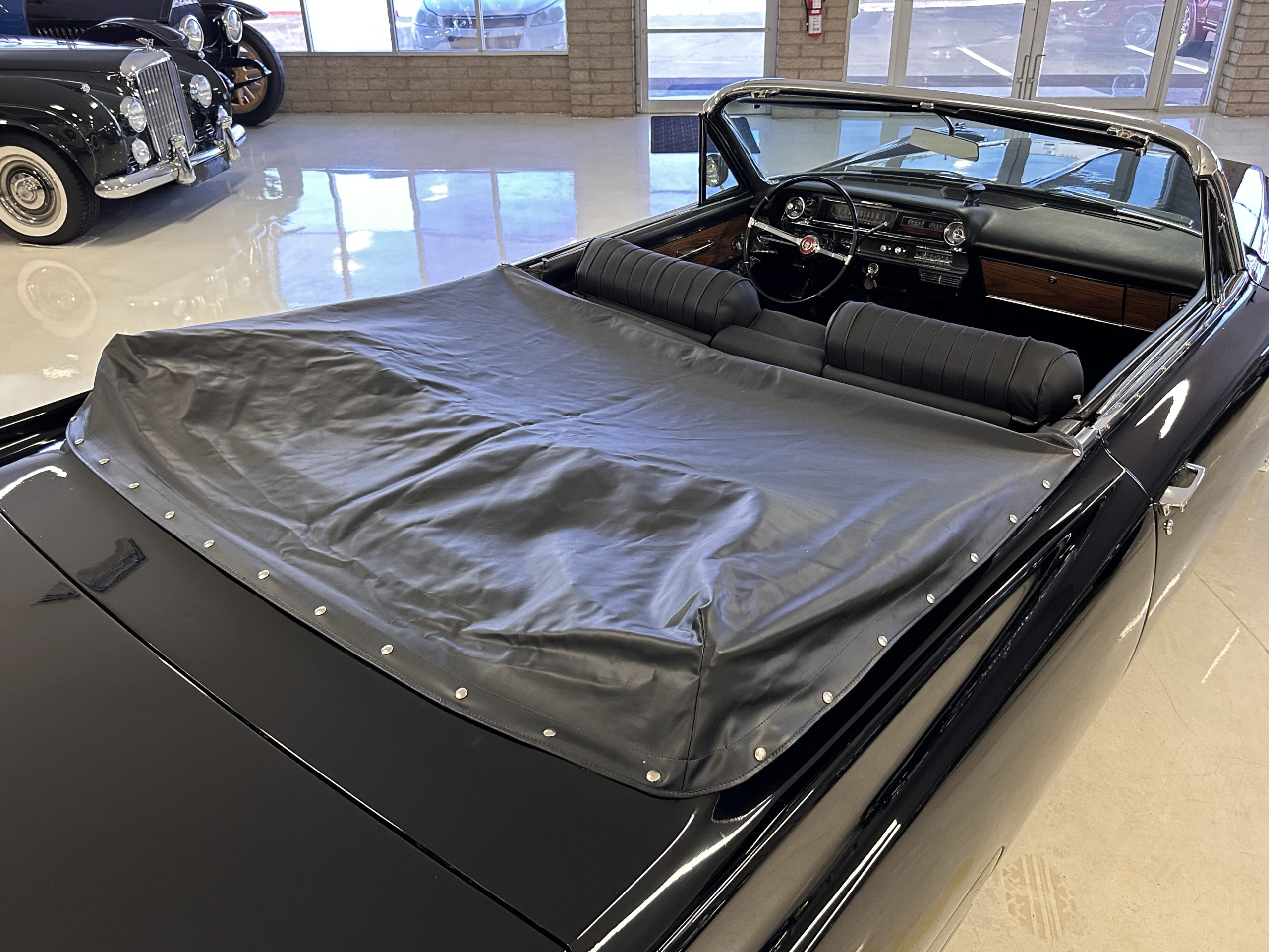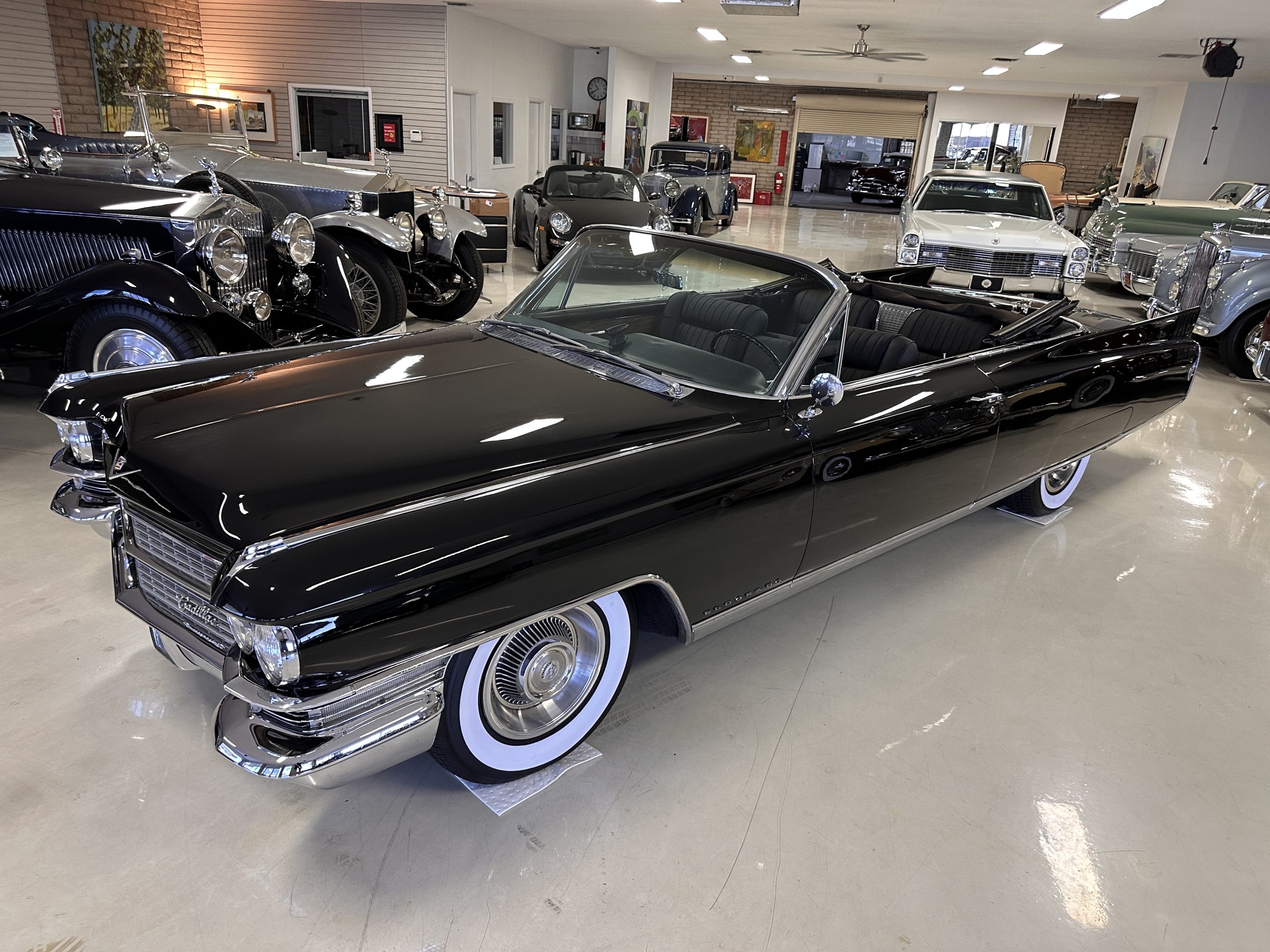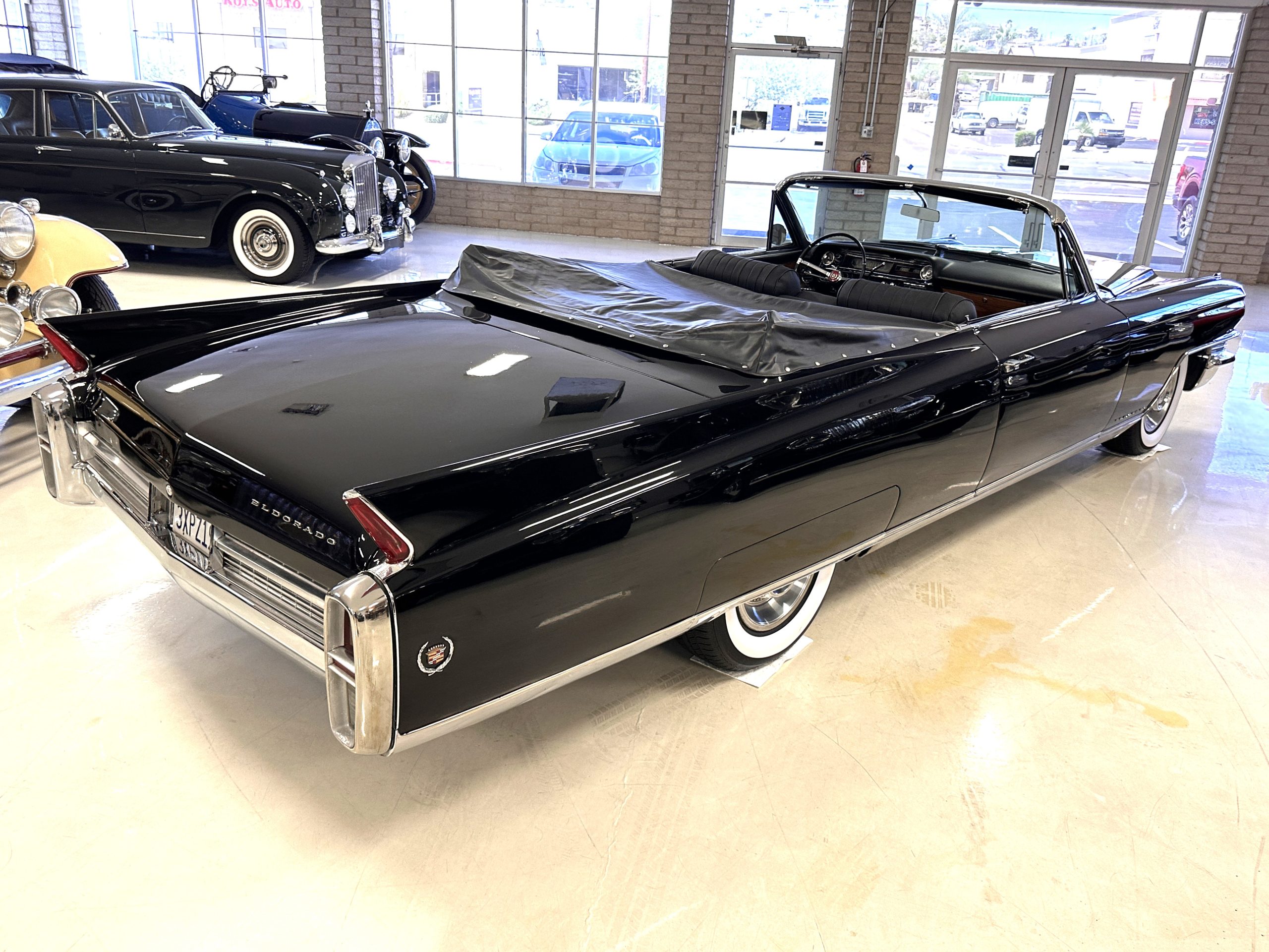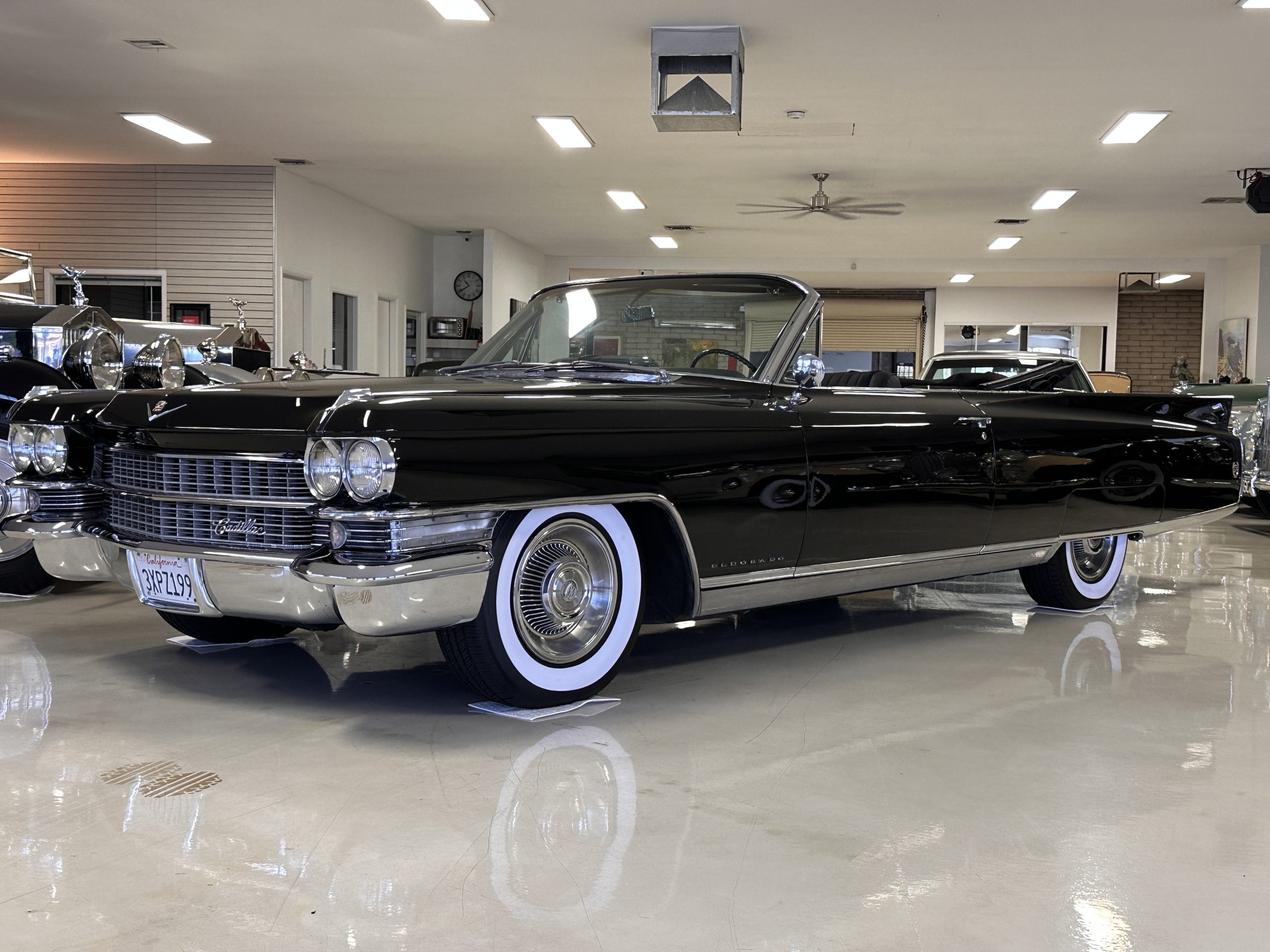 HISTORY OF THIS ELDORADO: According to the factory build records, this Eldorado Biarritz was built on March 4th, 1963, and delivered new to the Los Angeles W Seventh Street Branch (Outlet Code 811910). Still retaining its original engine number 089852 (build records matches present engine). Build records and the Trim Tag show original Ebony Black paint, black convertible top and black leather interior.