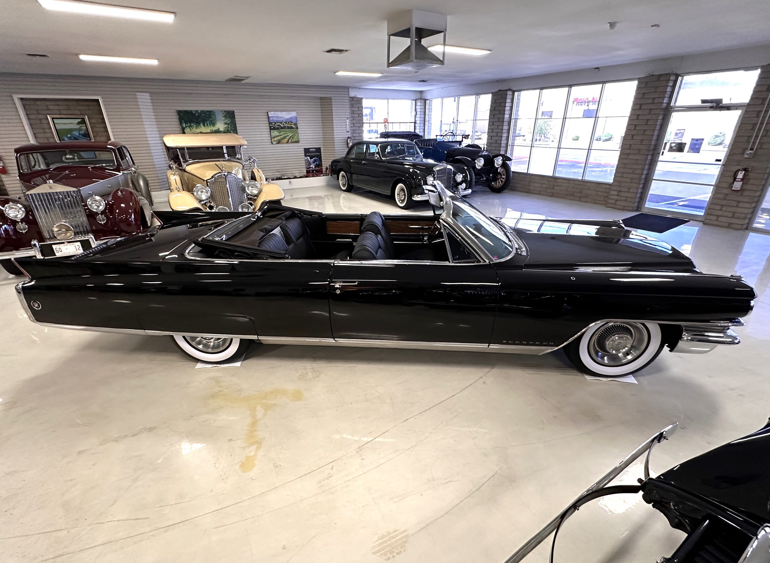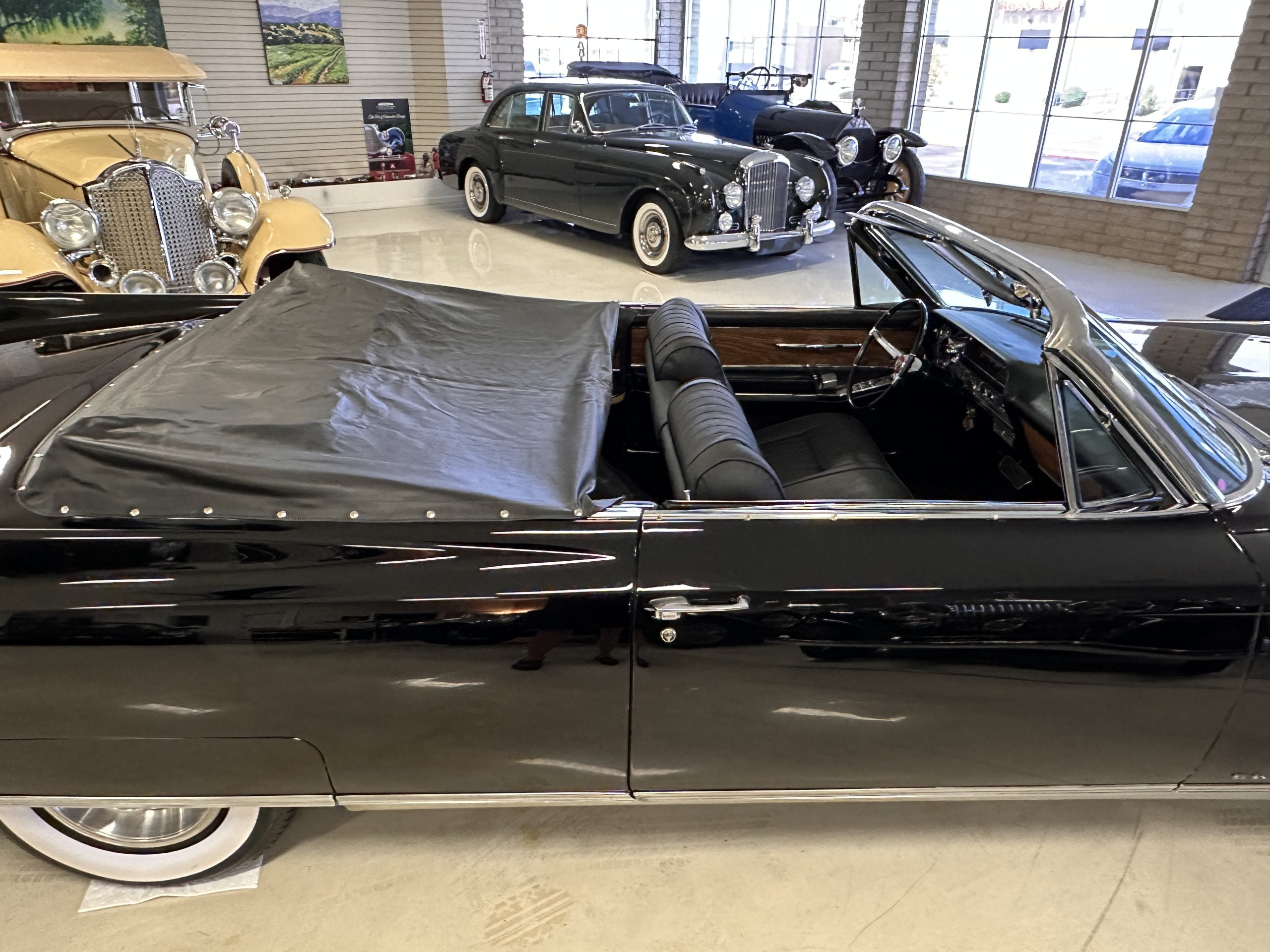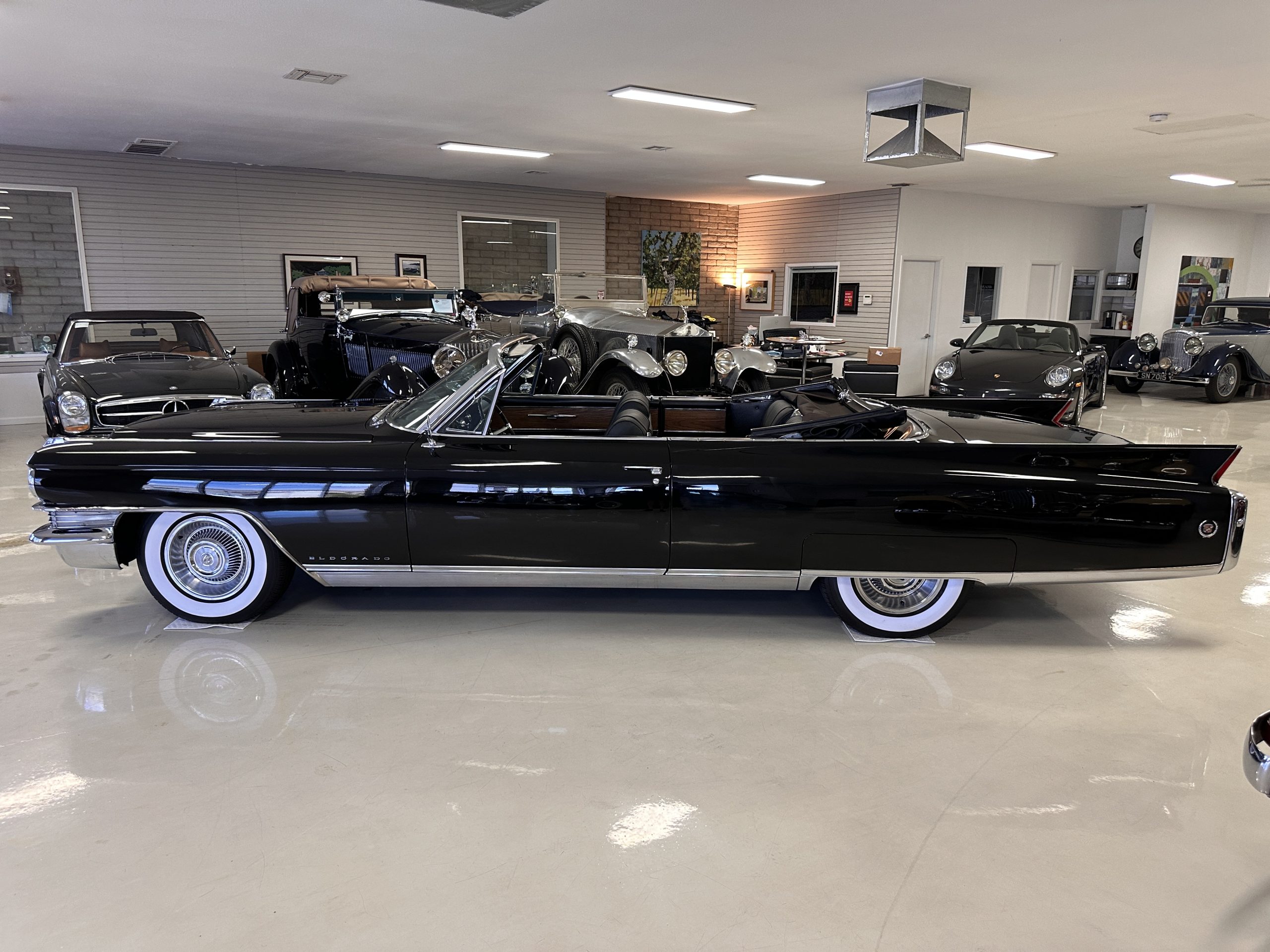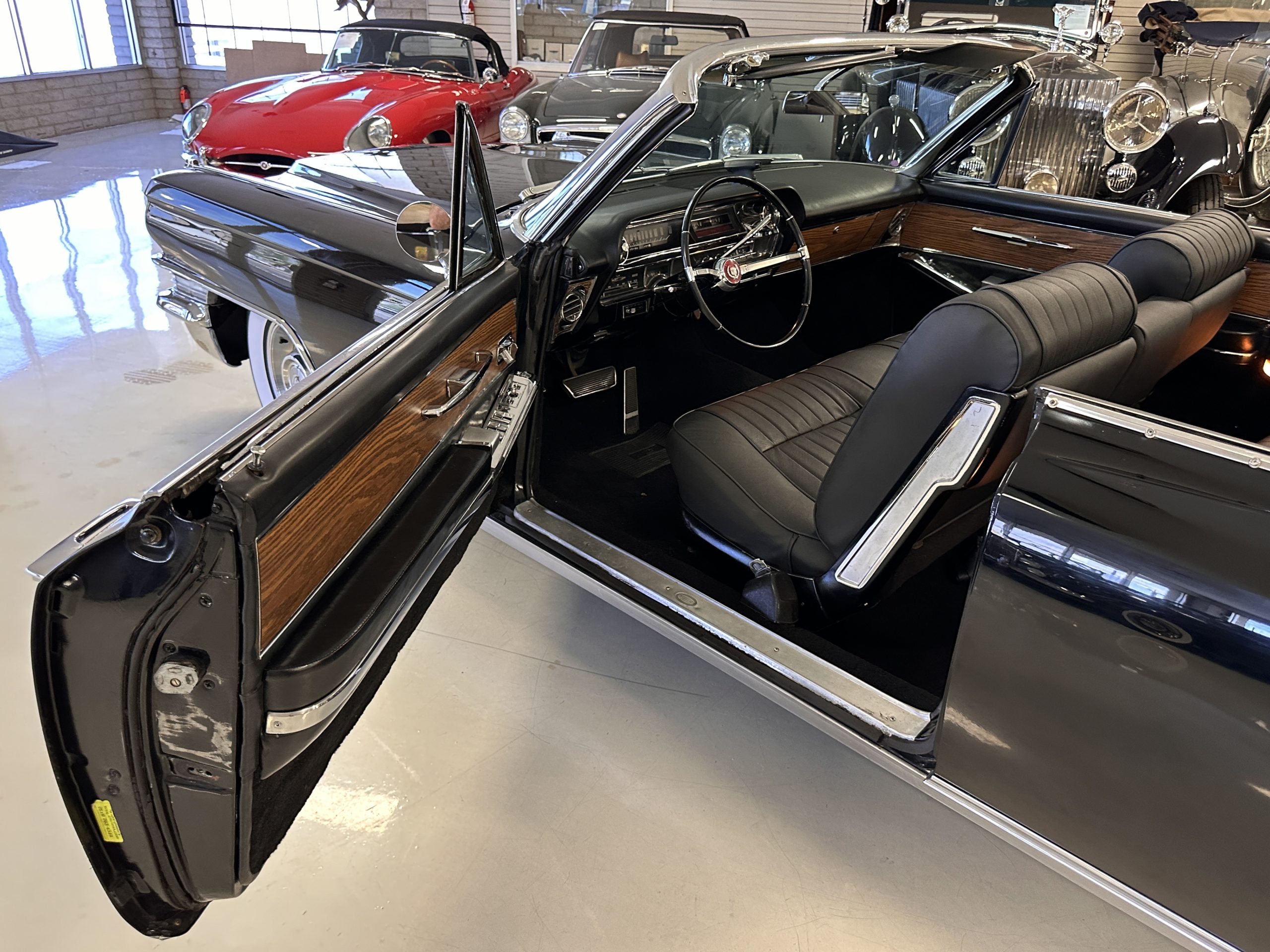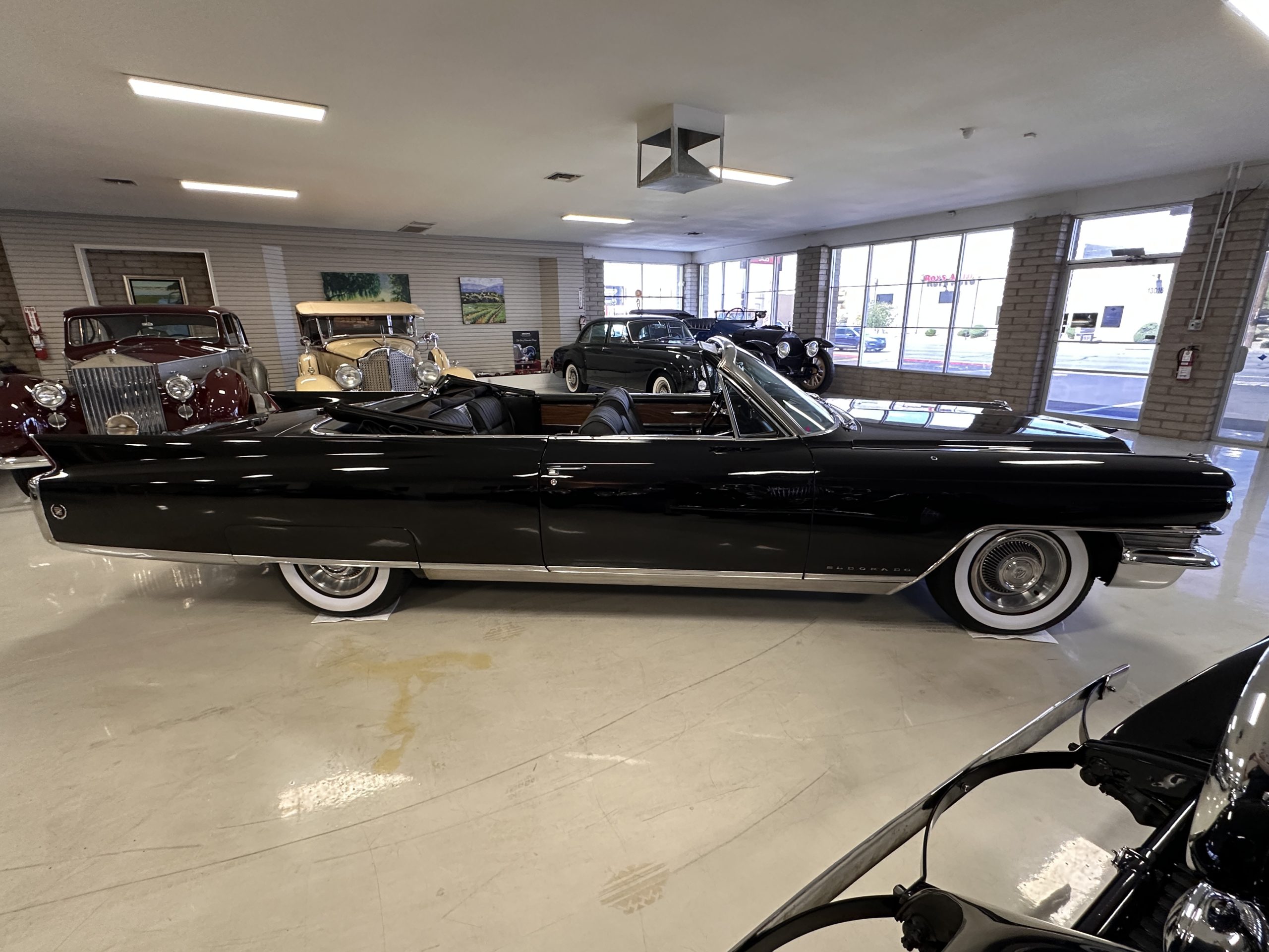HISTORY OF THIS ELDORADO: According to the factory build records, this Eldorado Biarritz was built on March 4th, 1963, and delivered new to the Los Angeles W Seventh Street Branch (Outlet Code 811910). Still retaining its original engine number 089852 (build records matches present engine). Build records and the Trim Tag show original Ebony Black paint, black convertible top and black leather interior.