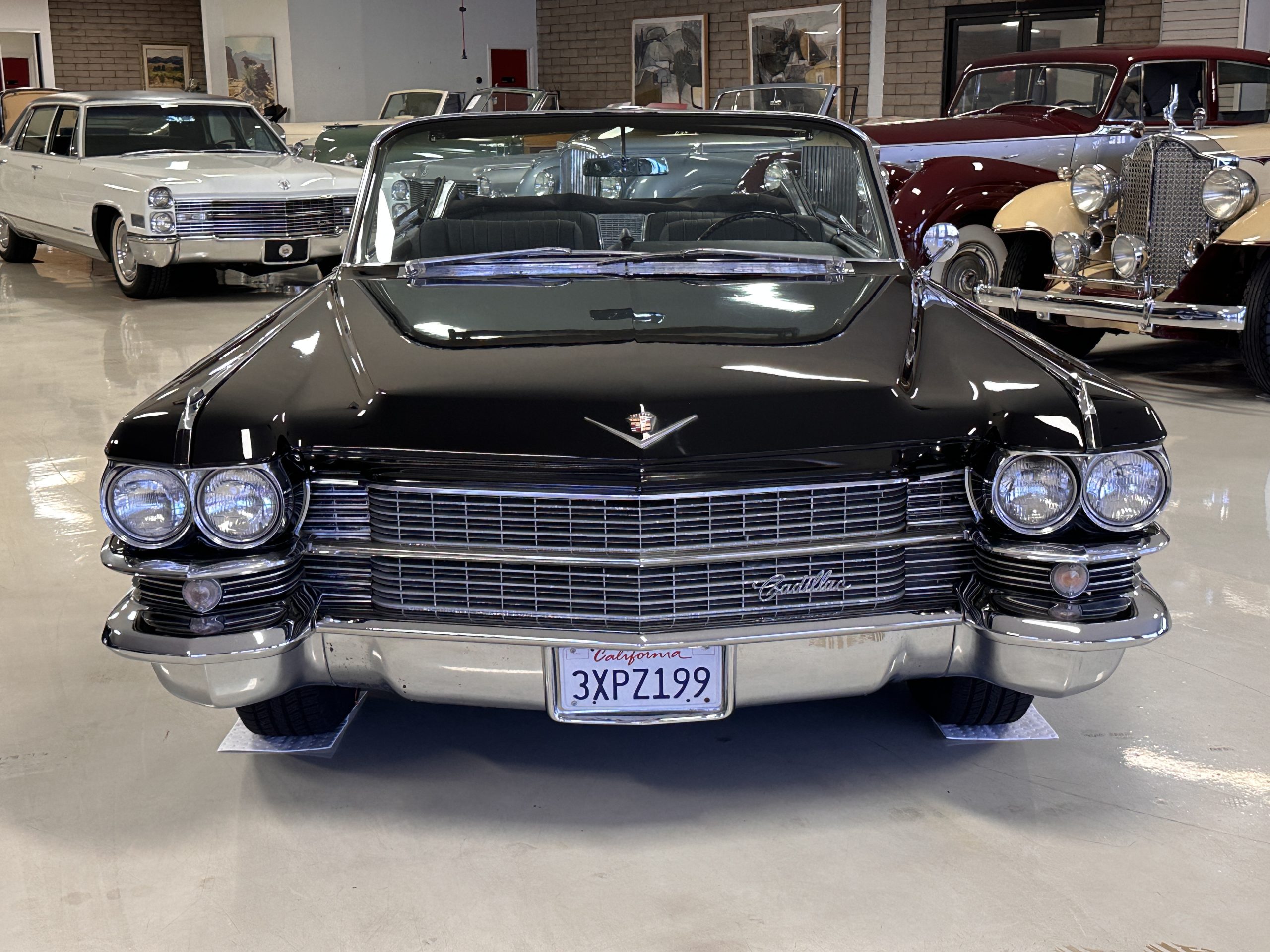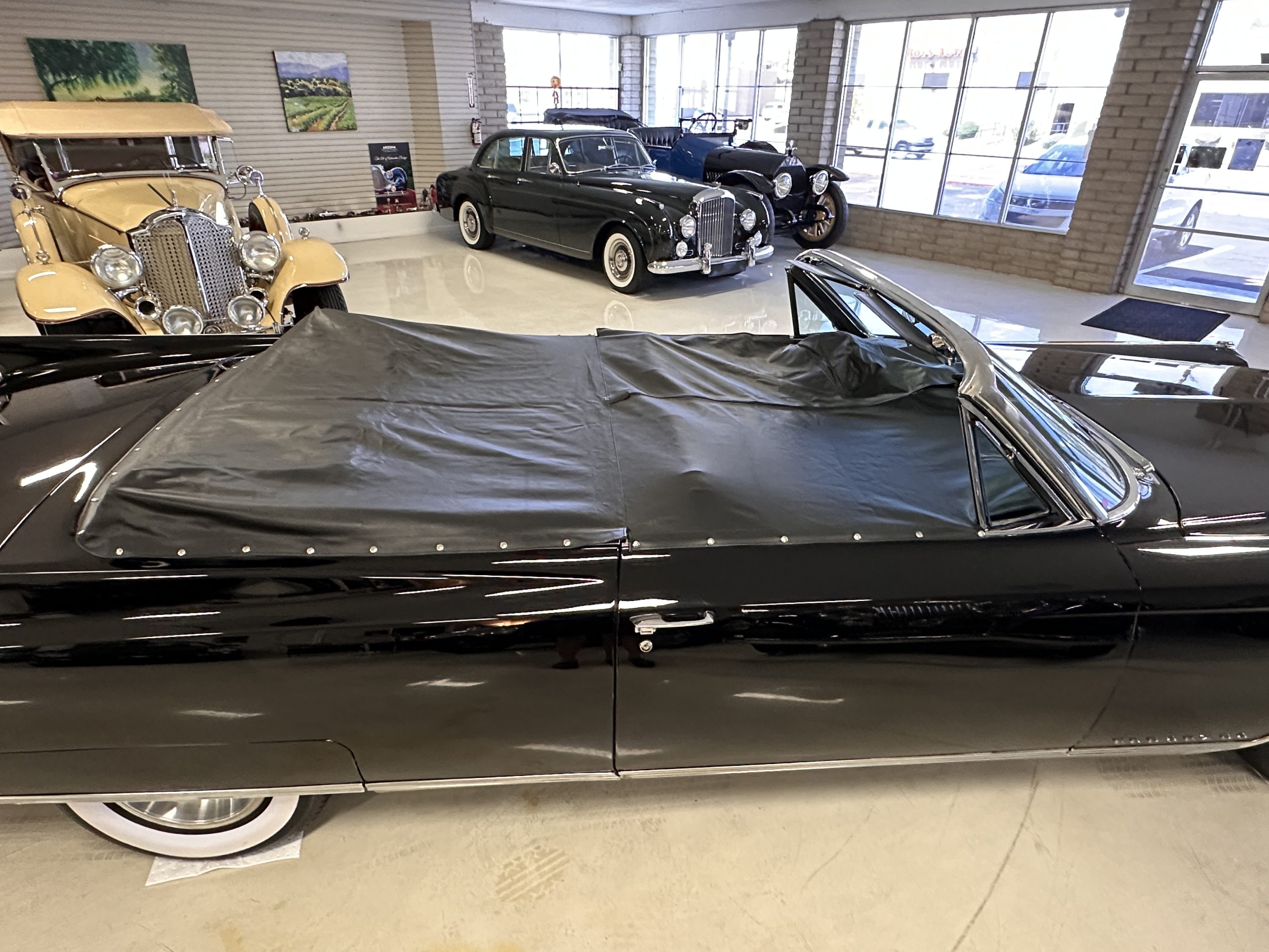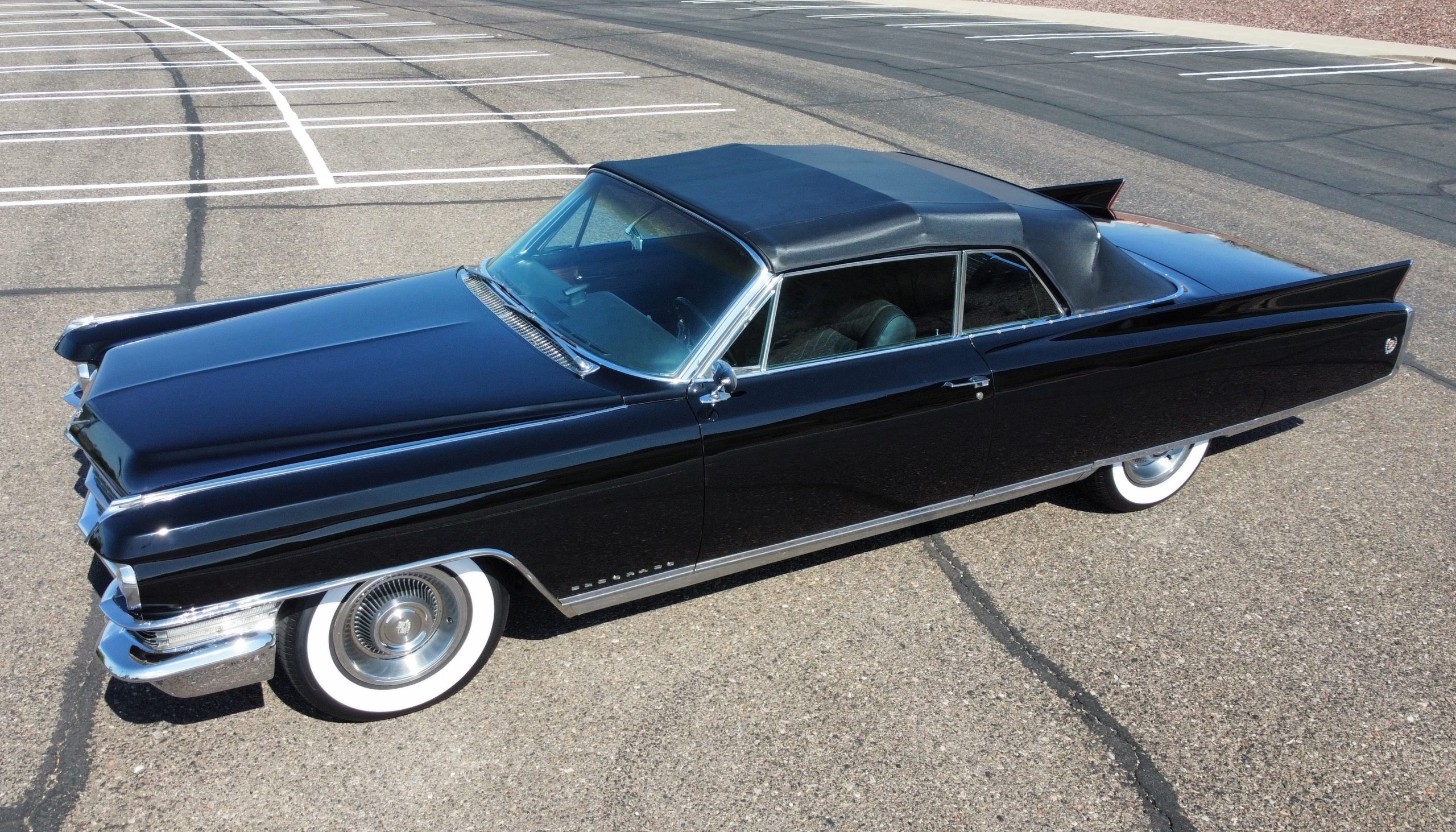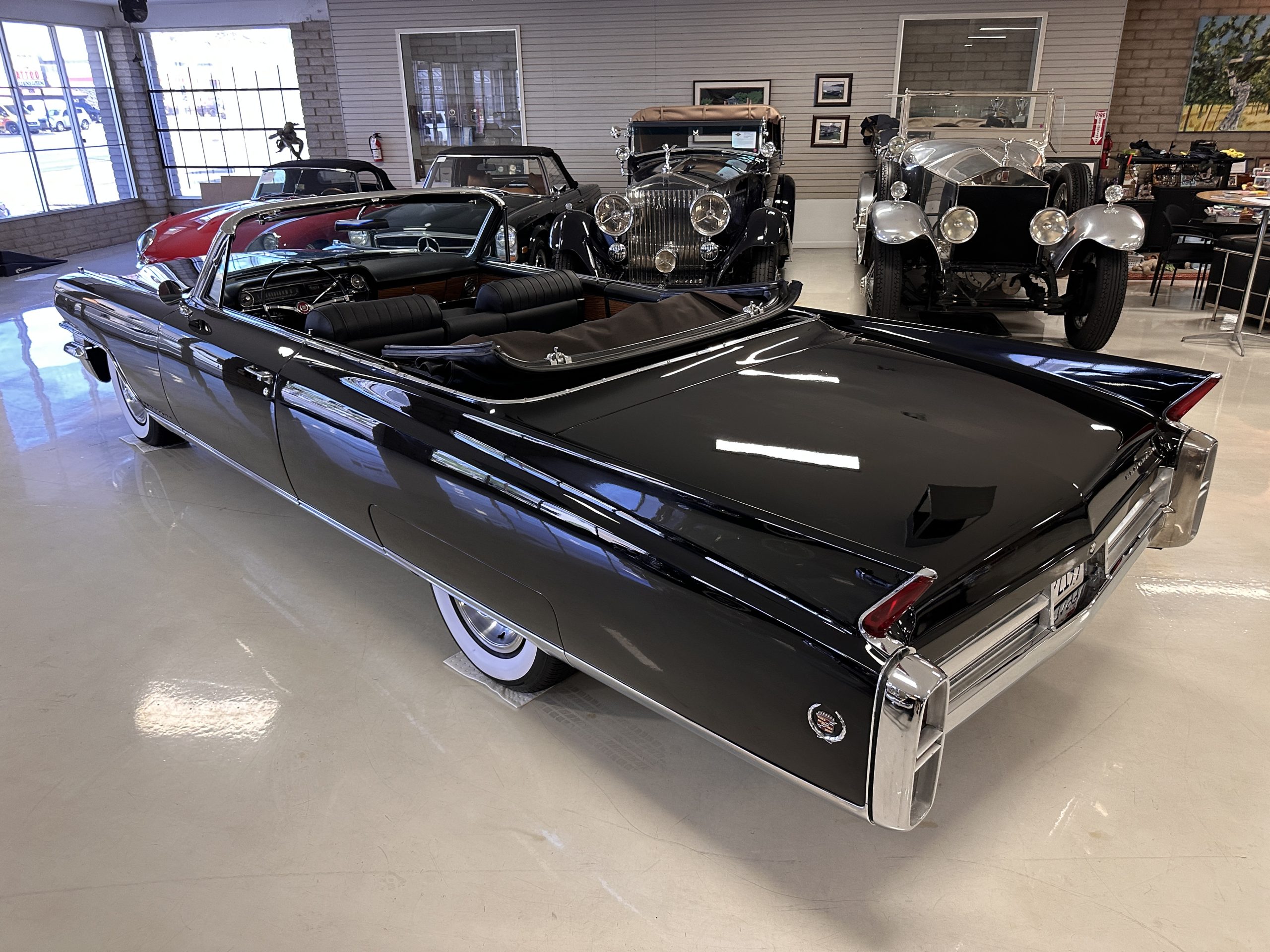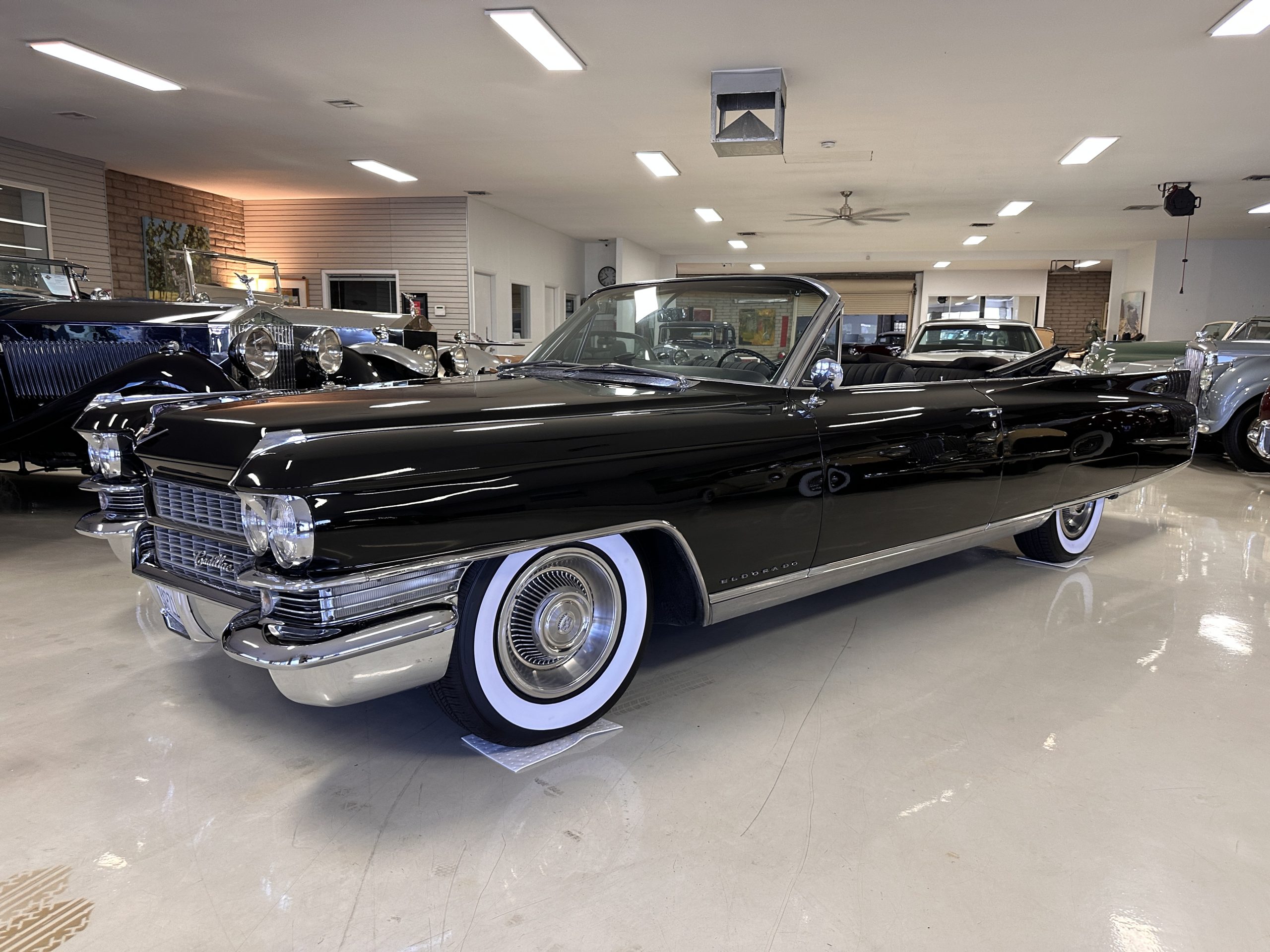 HISTORY OF THIS ELDORADO: According to the factory build records, this Eldorado Biarritz was built on March 4th, 1963, and delivered new to the Los Angeles W Seventh Street Branch (Outlet Code 811910). Still retaining its original engine number 089852 (build records matches present engine). Build records and the Trim Tag show original Ebony Black paint, black convertible top and black leather interior.